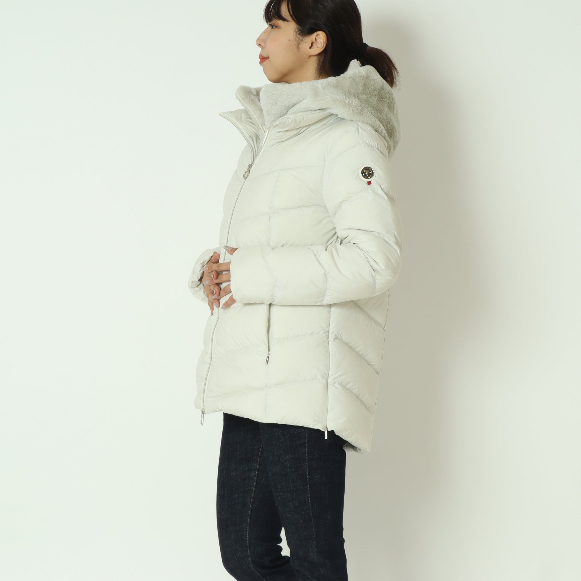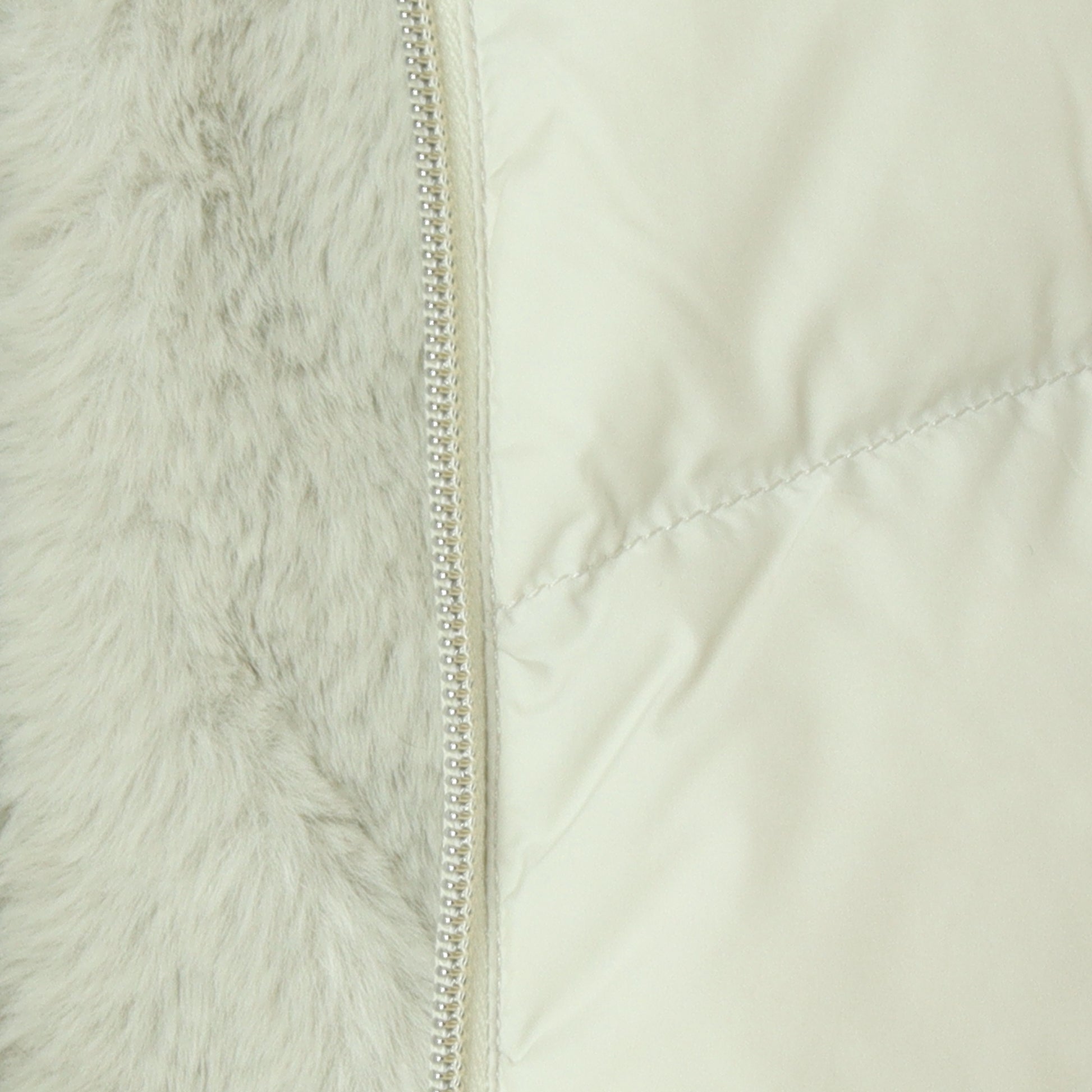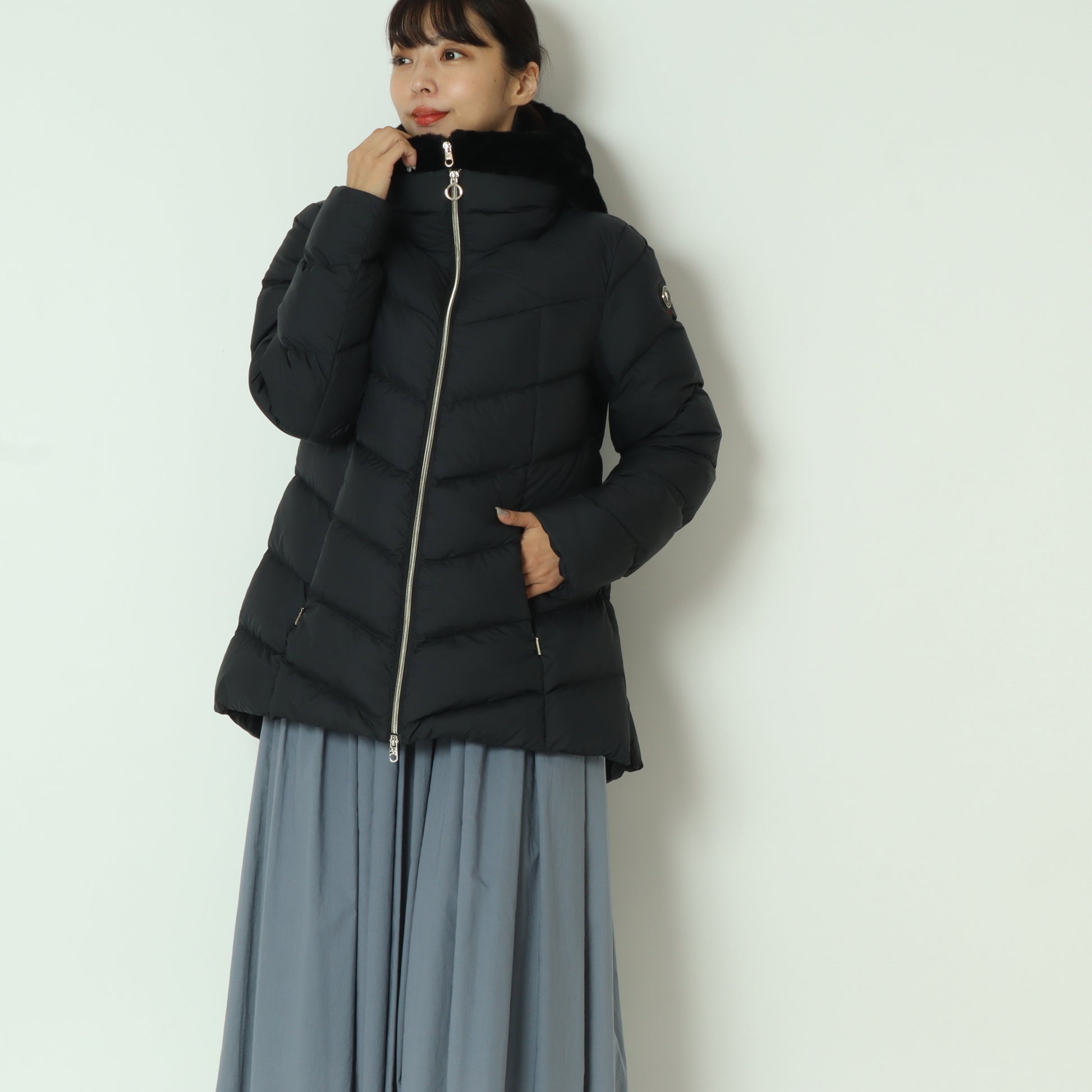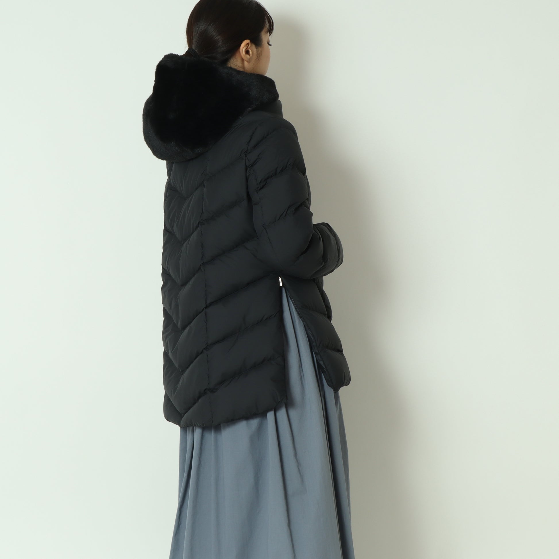 フードとフェイクファーのビブは取り外し可能で、シーンやお好みに合わせてアレンジできます。中央のダブルスライダーコイルジッパーにはカスタムプラーが付いており、スタイリッシュさと機能性を両立しています。