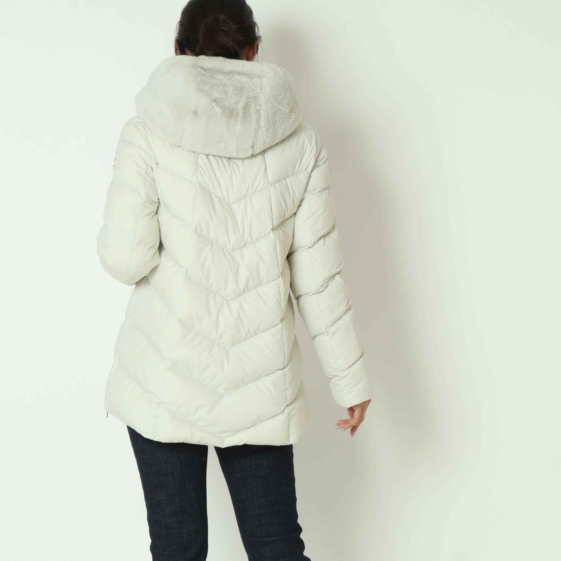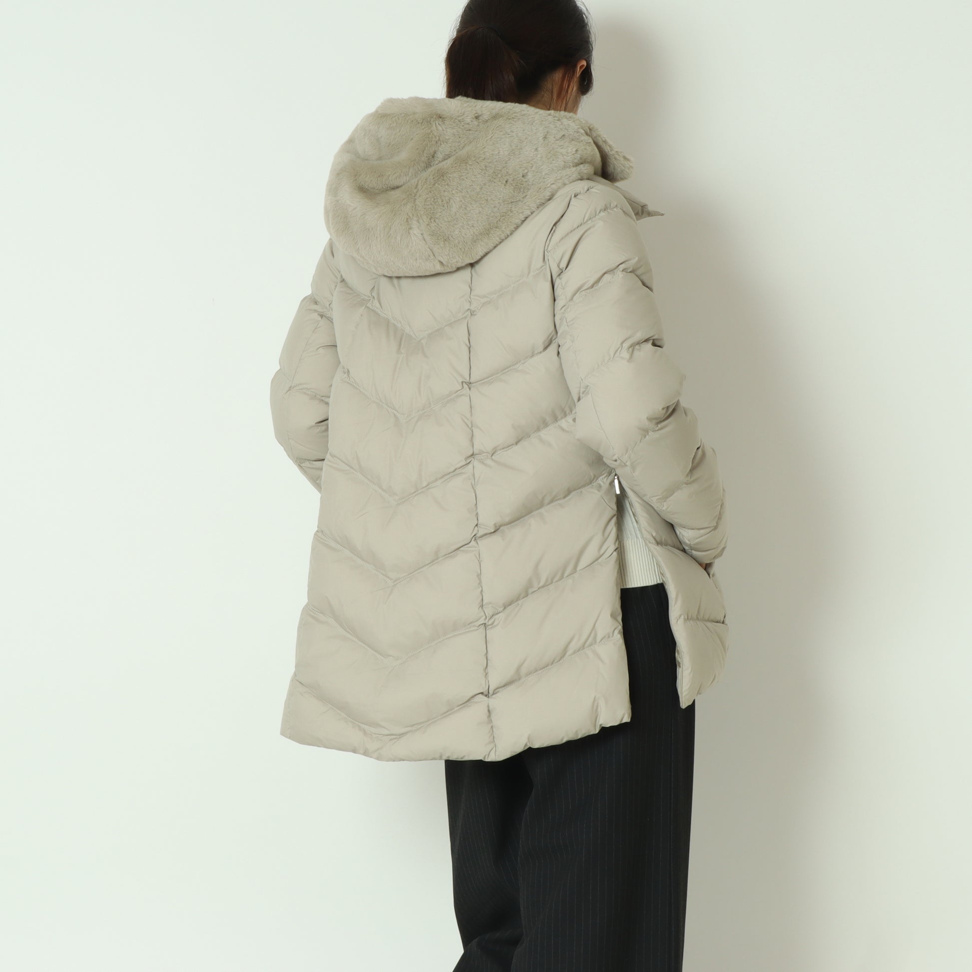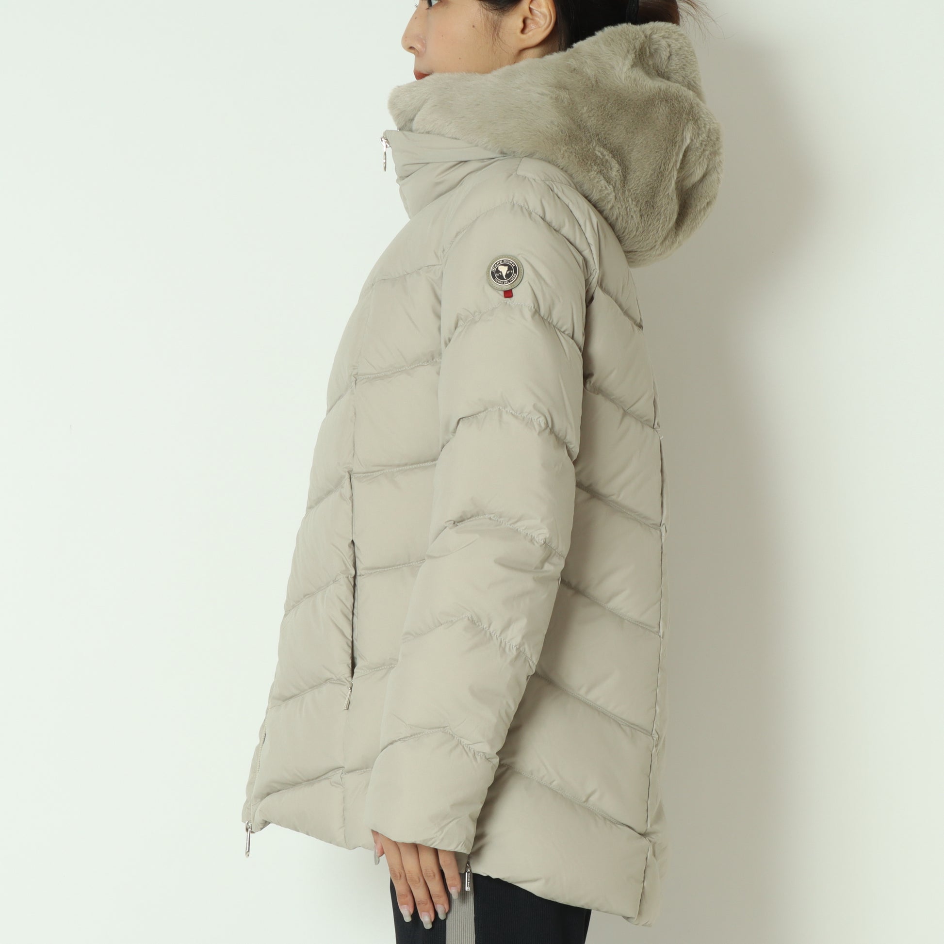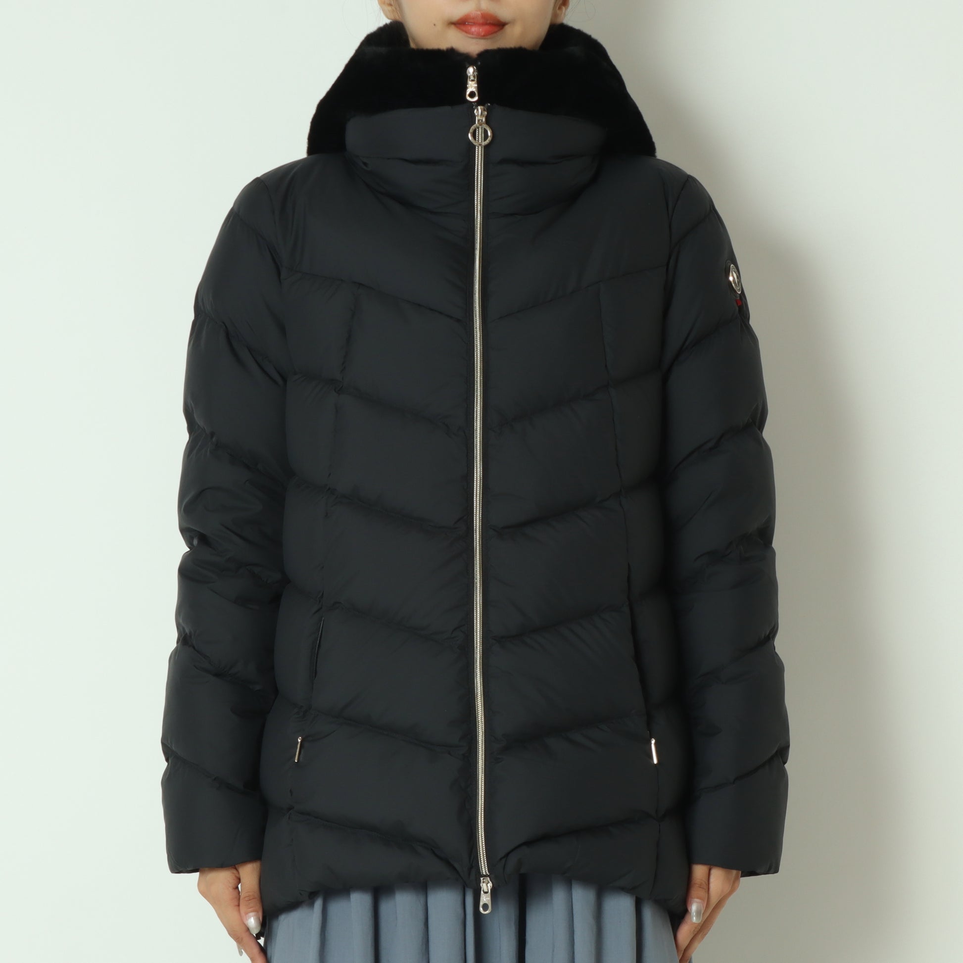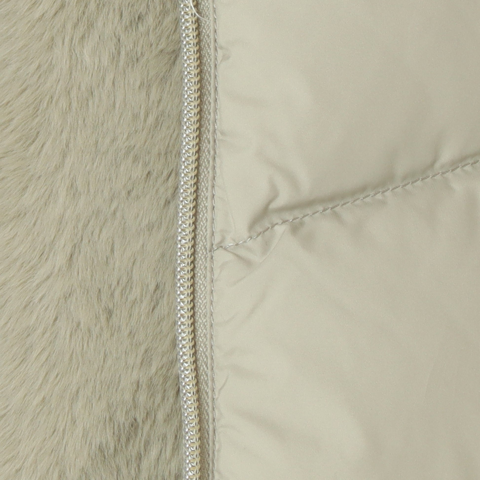 フードとフェイクファーのビブは取り外し可能で、シーンやお好みに合わせてアレンジできます。中央のダブルスライダーコイルジッパーにはカスタムプラーが付いており、スタイリッシュさと機能性を両立しています。