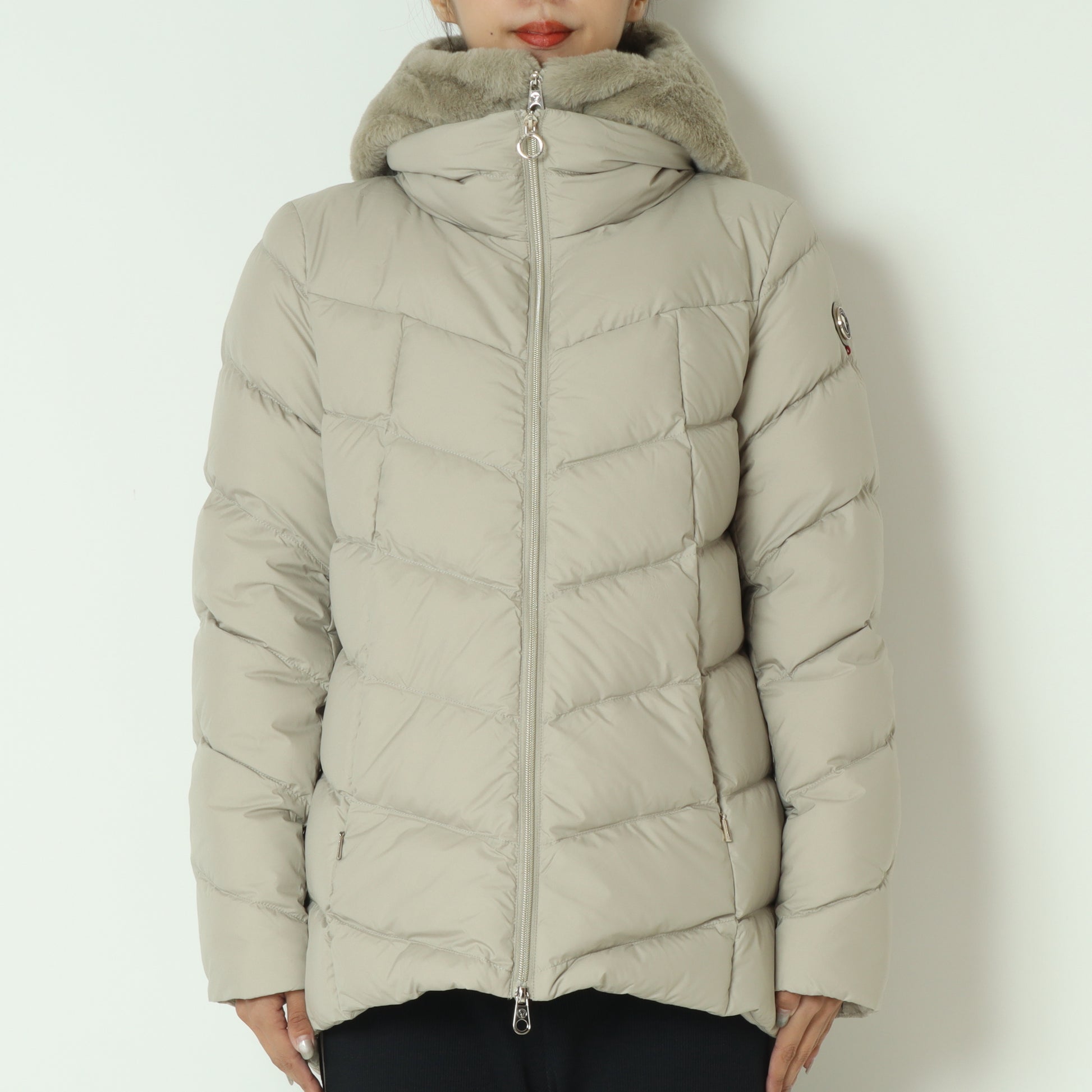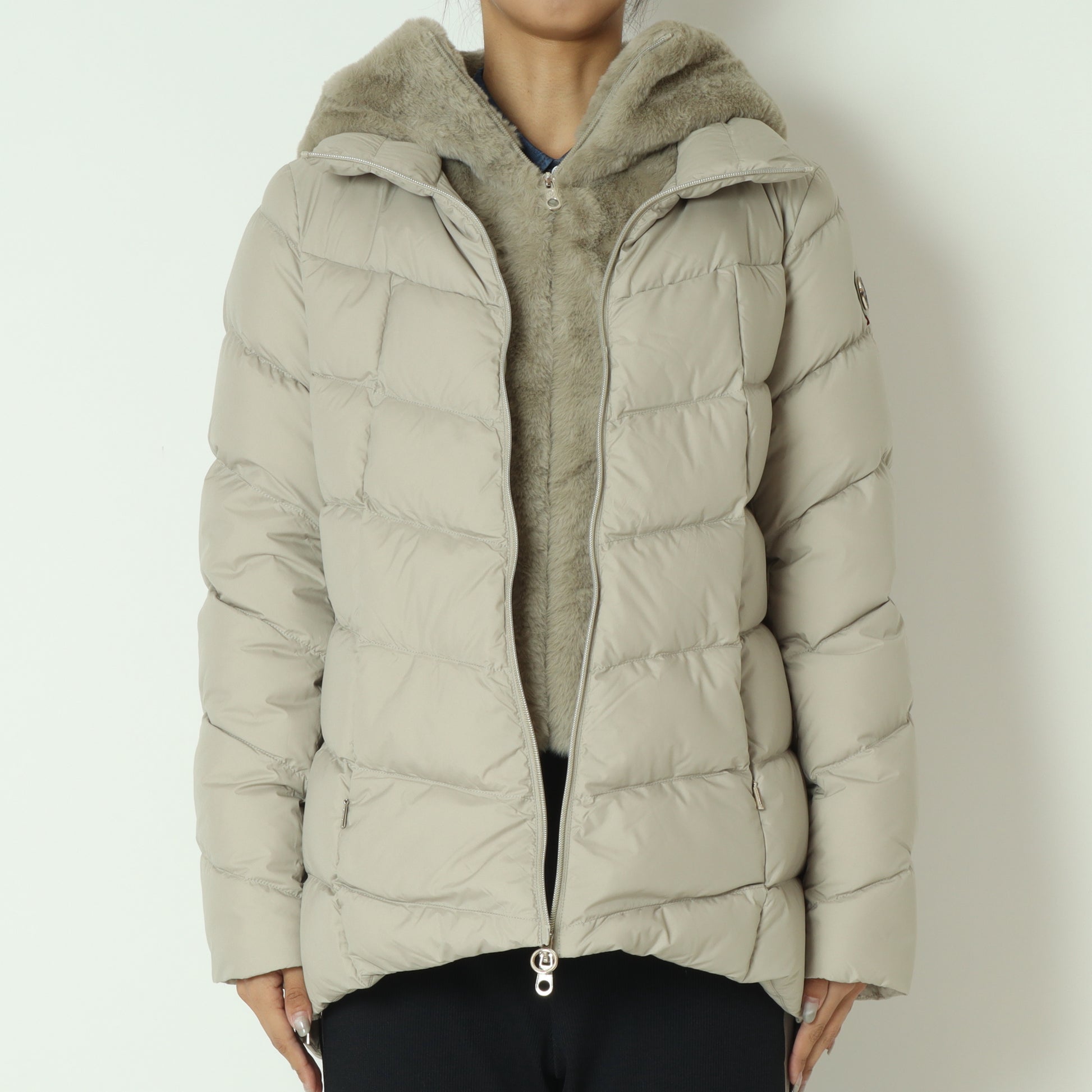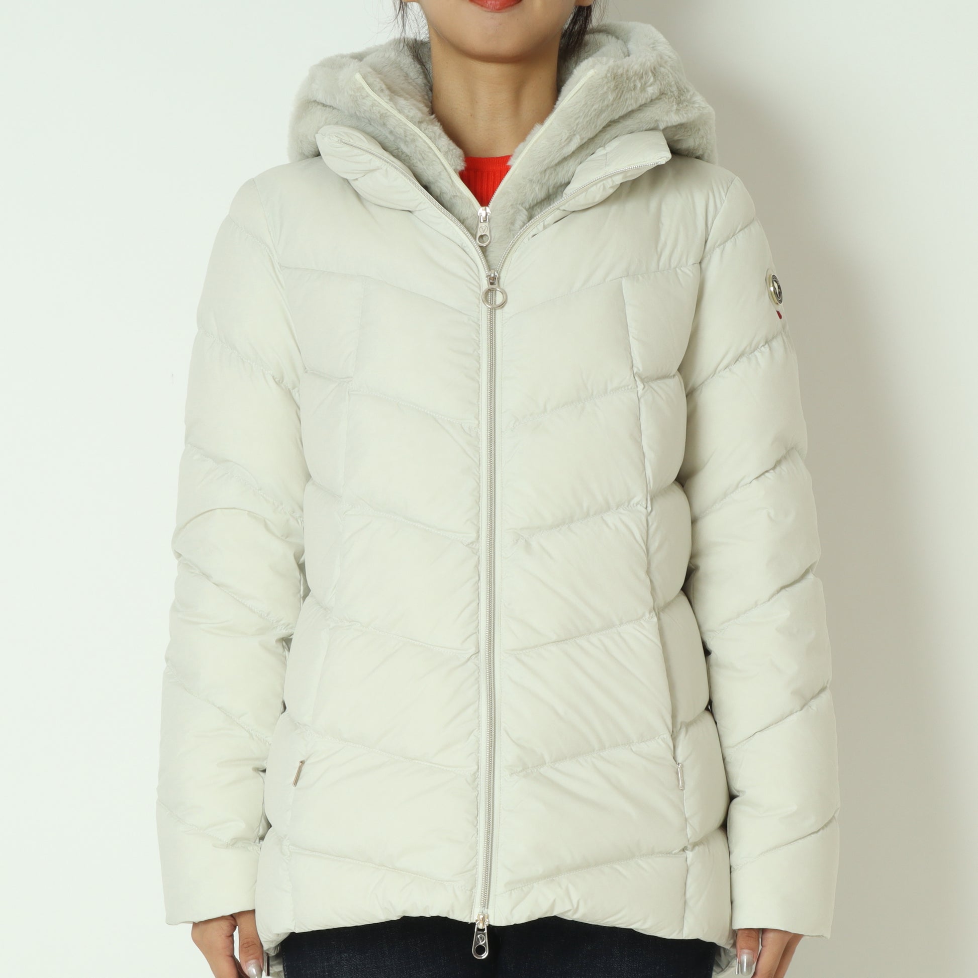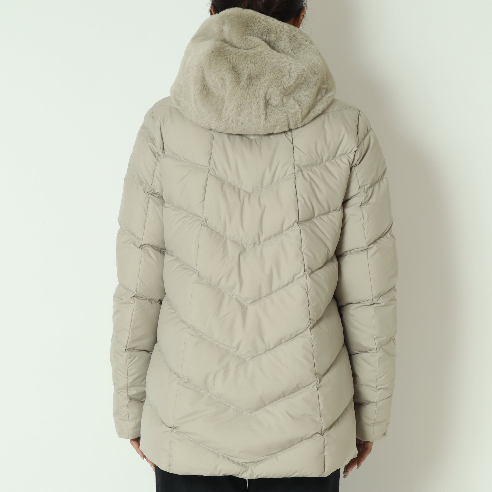 フードとフェイクファーのビブは取り外し可能で、シーンやお好みに合わせてアレンジできます。中央のダブルスライダーコイルジッパーにはカスタムプラーが付いており、スタイリッシュさと機能性を両立しています。