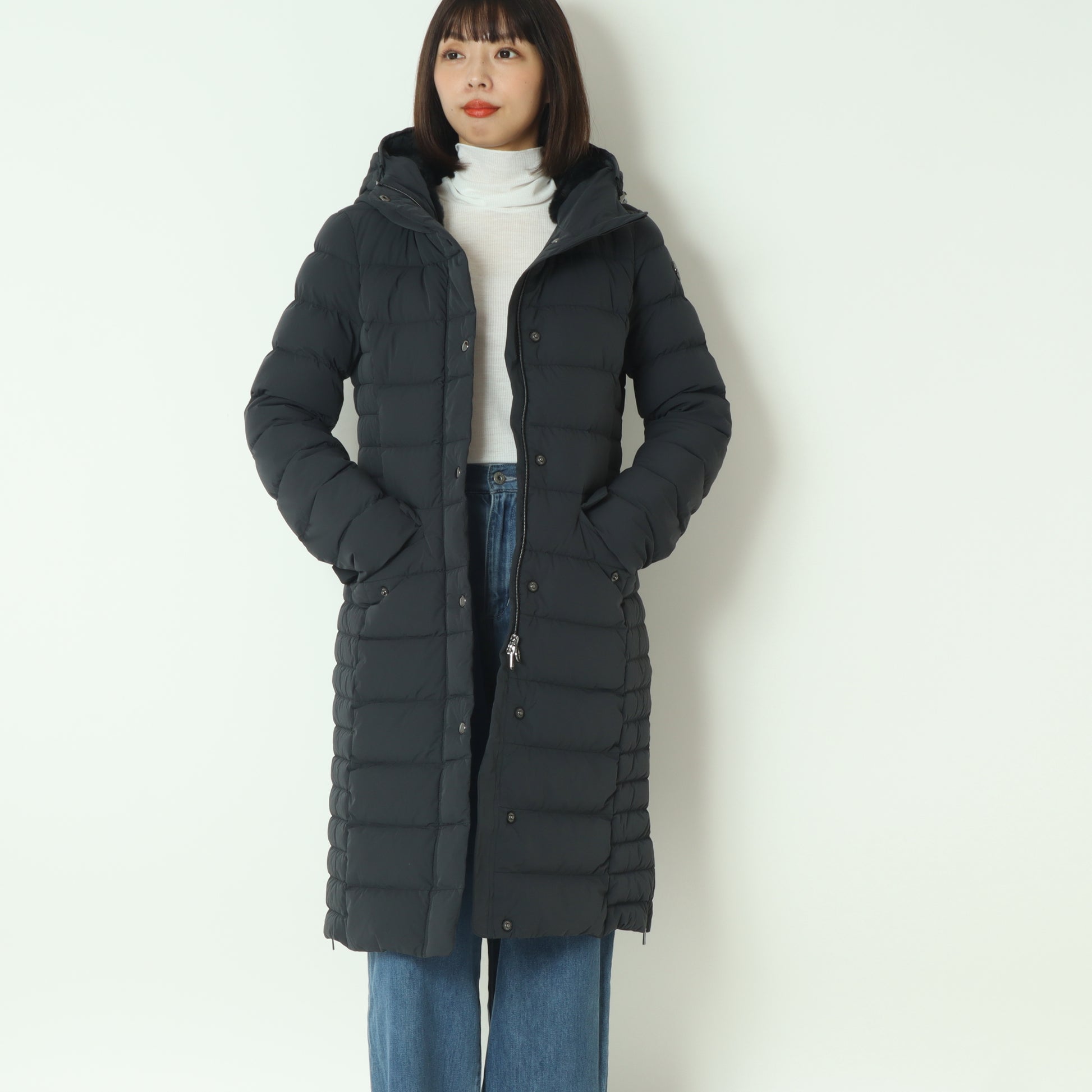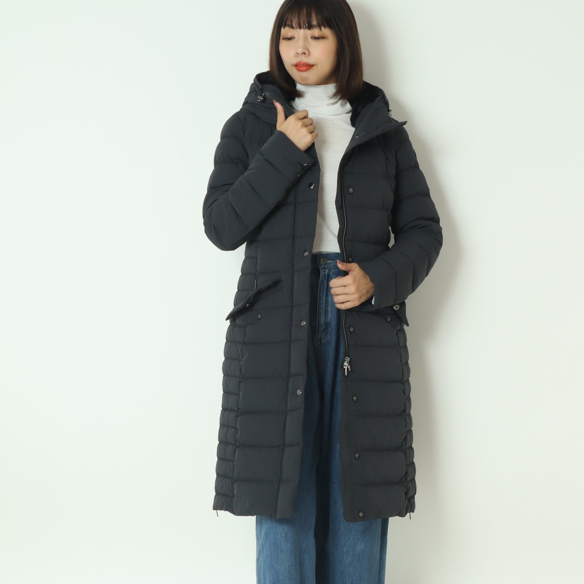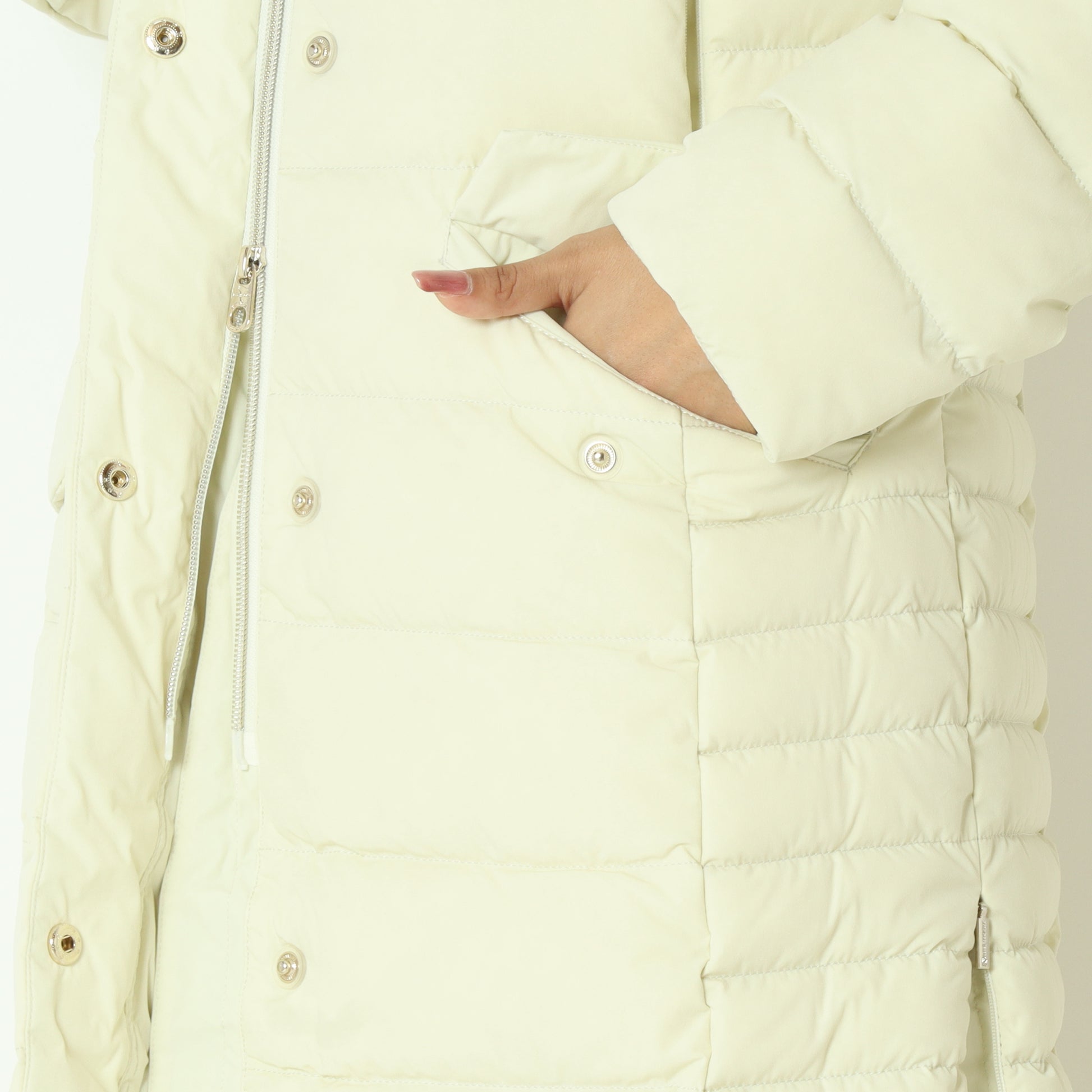 フードのエコファーと袖口のカフが上品なアクセントです。