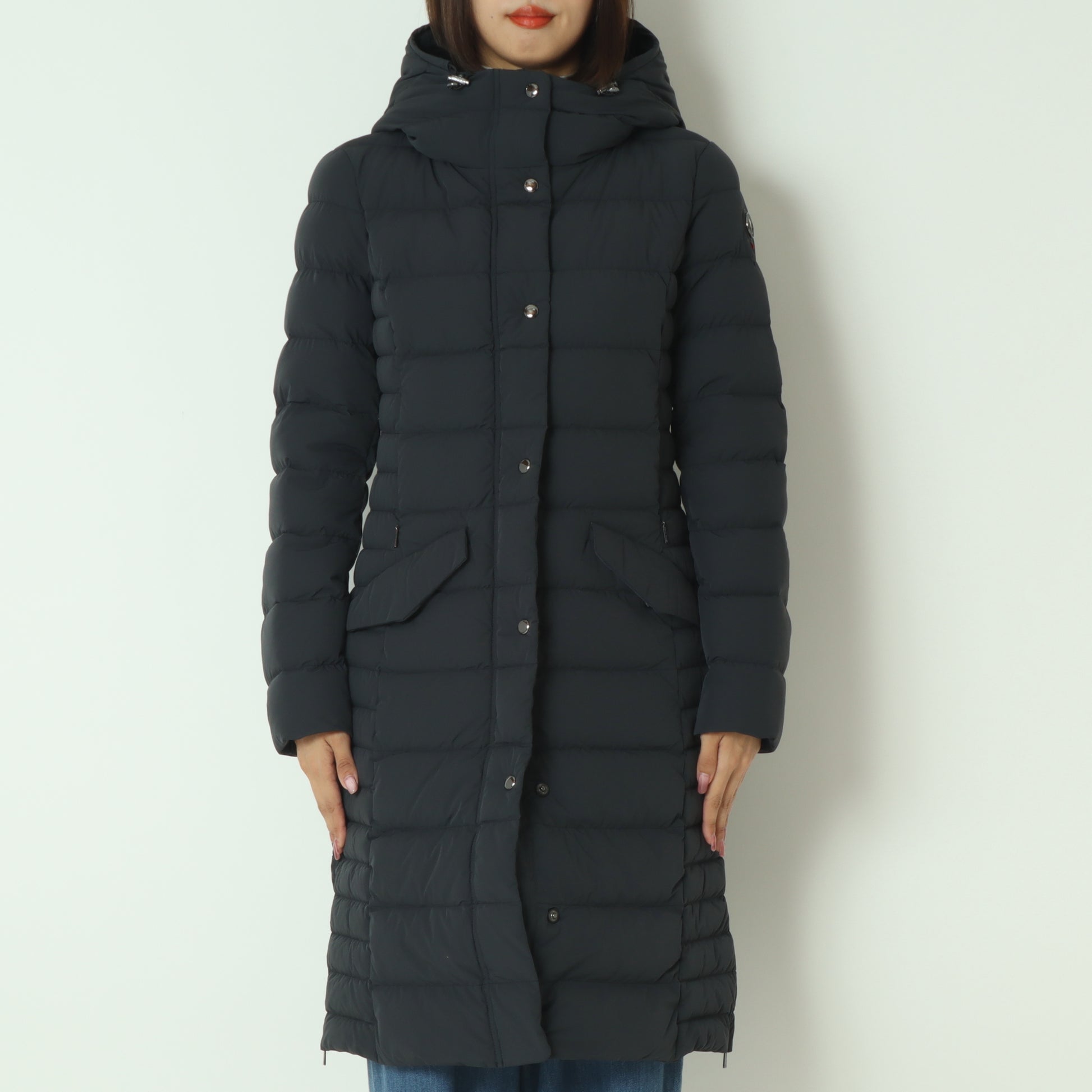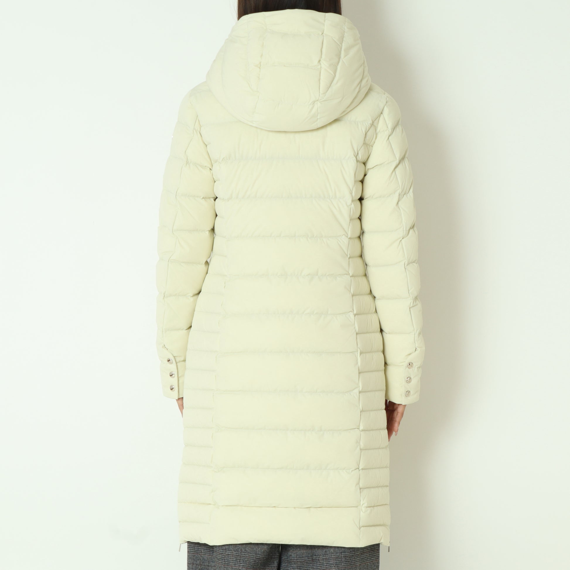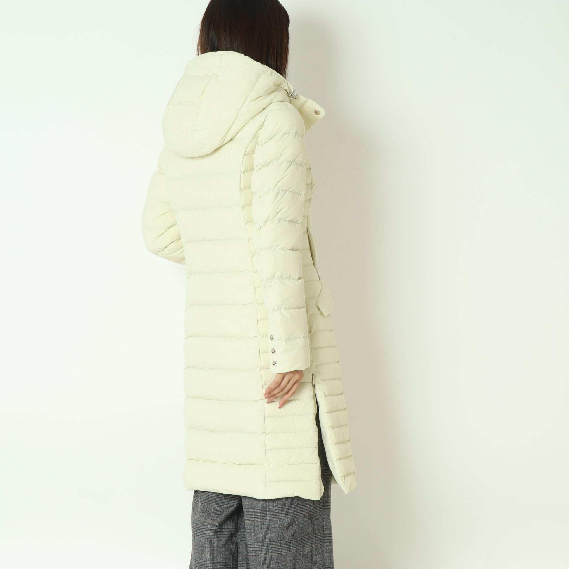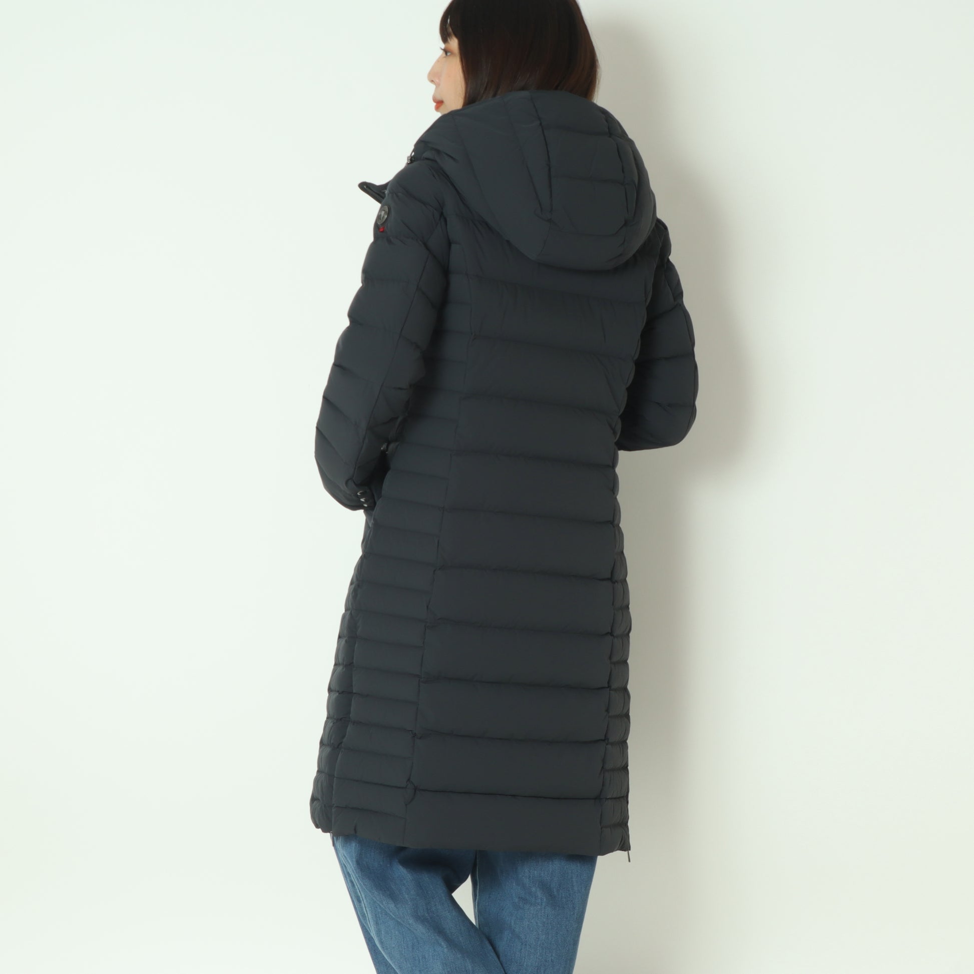 フードのエコファーと袖口のカフが上品なアクセントです。