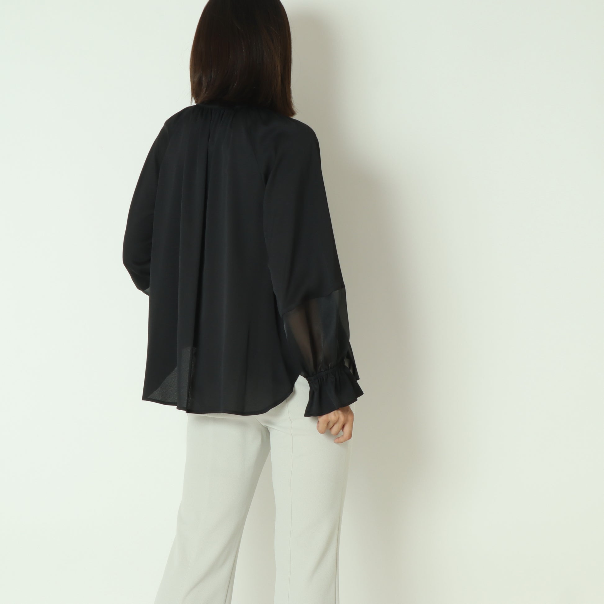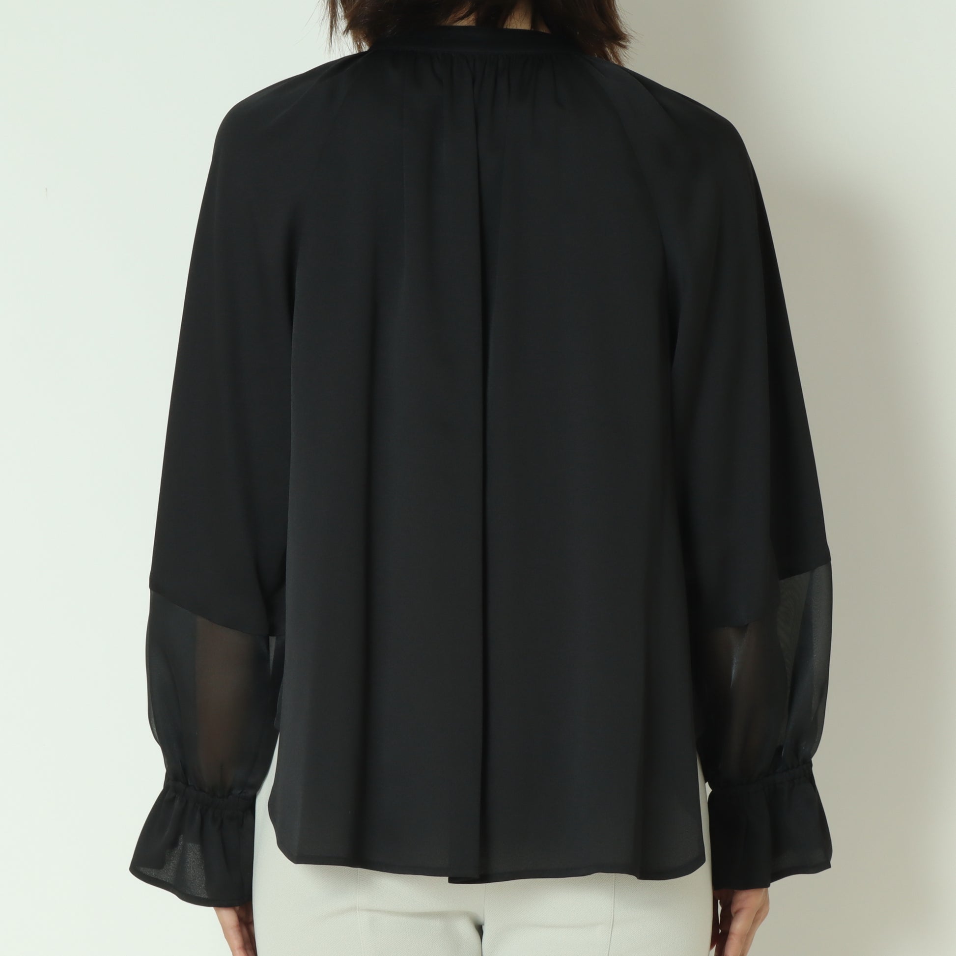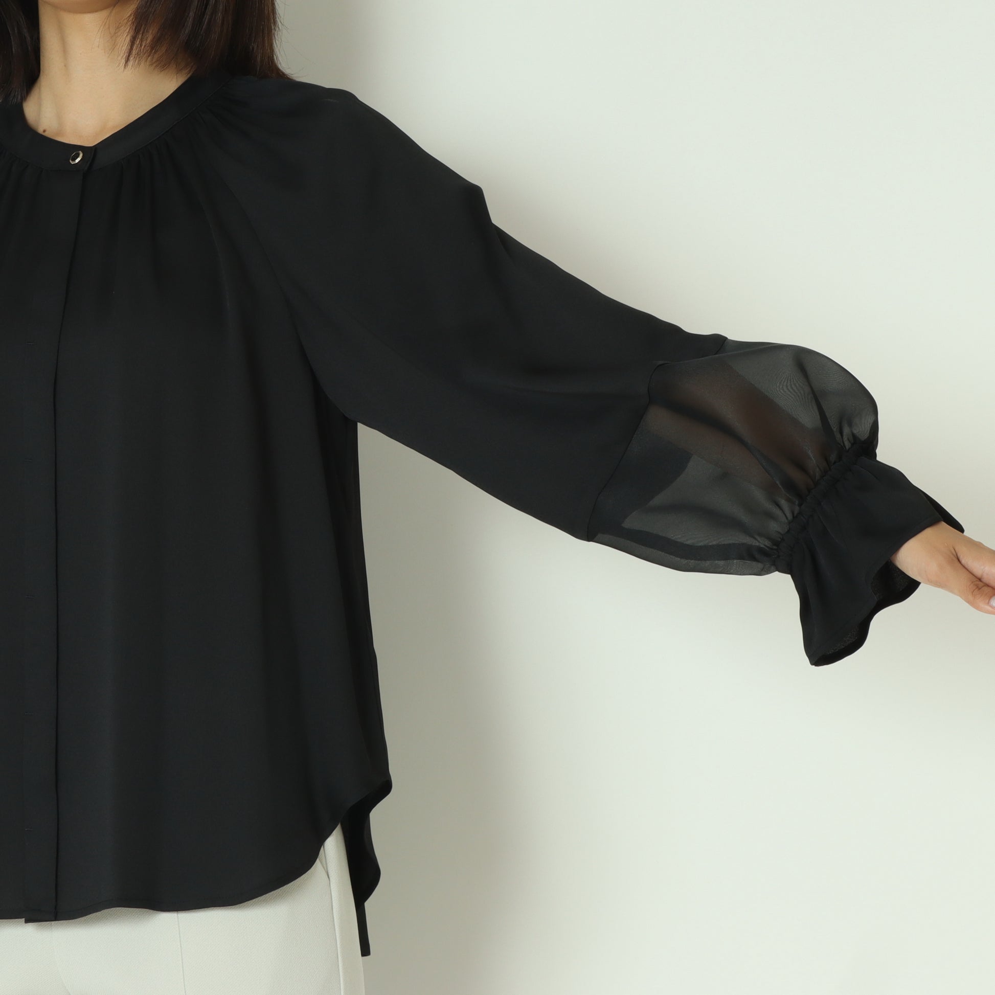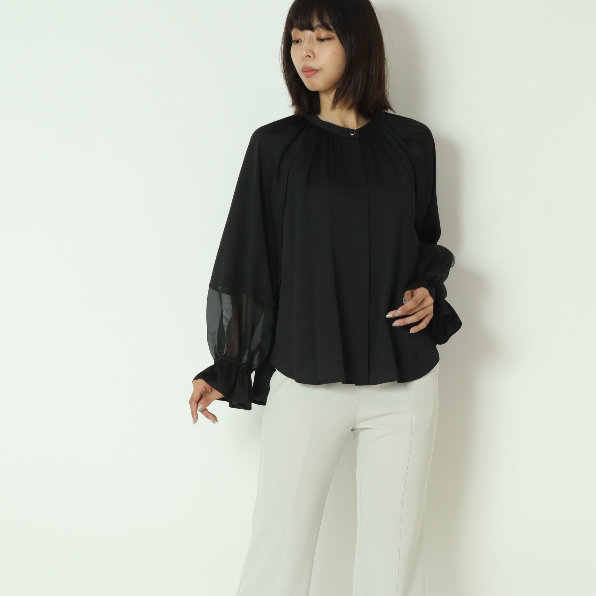 袖のシアー切り替えがアクセントになったふんわりスリーブブラウス。