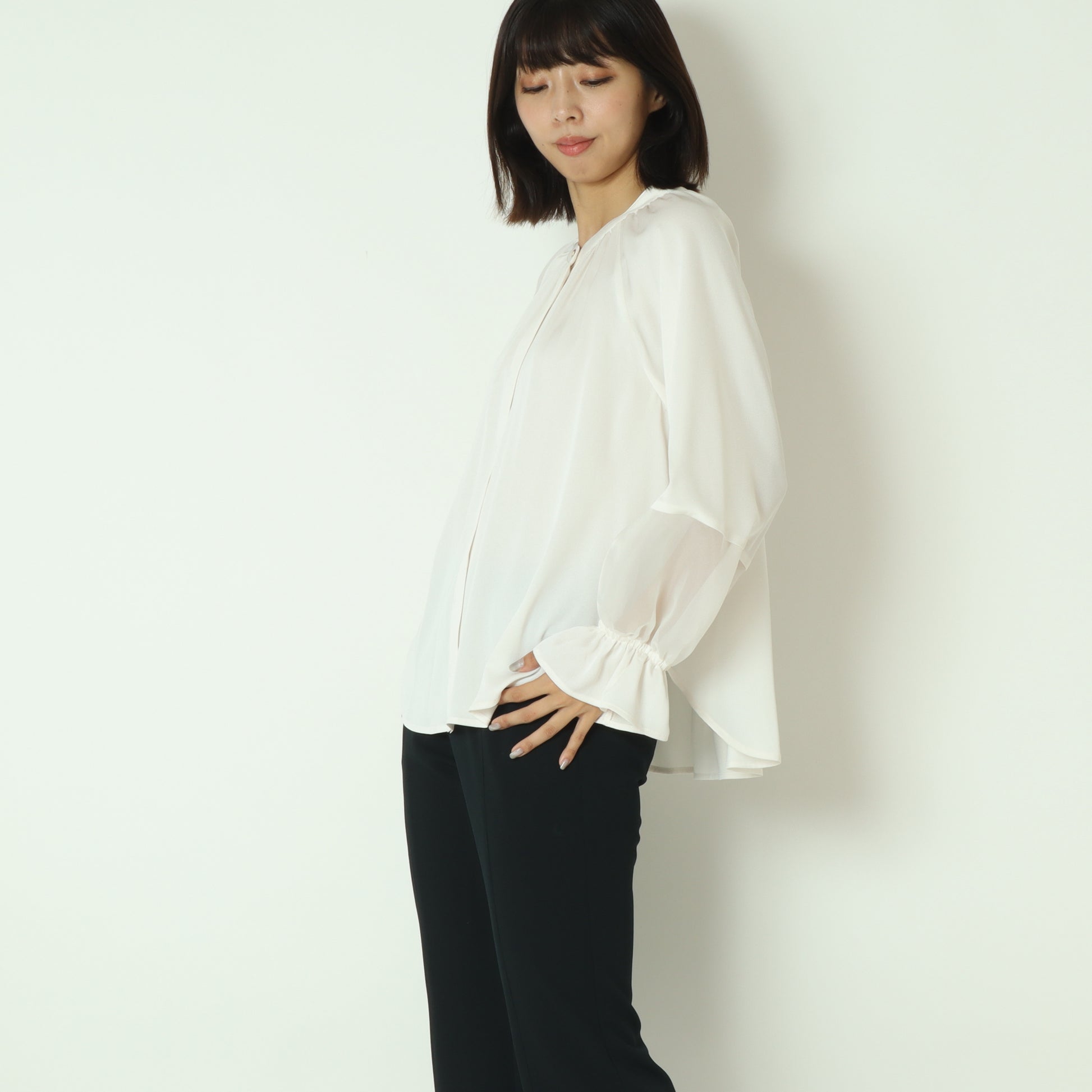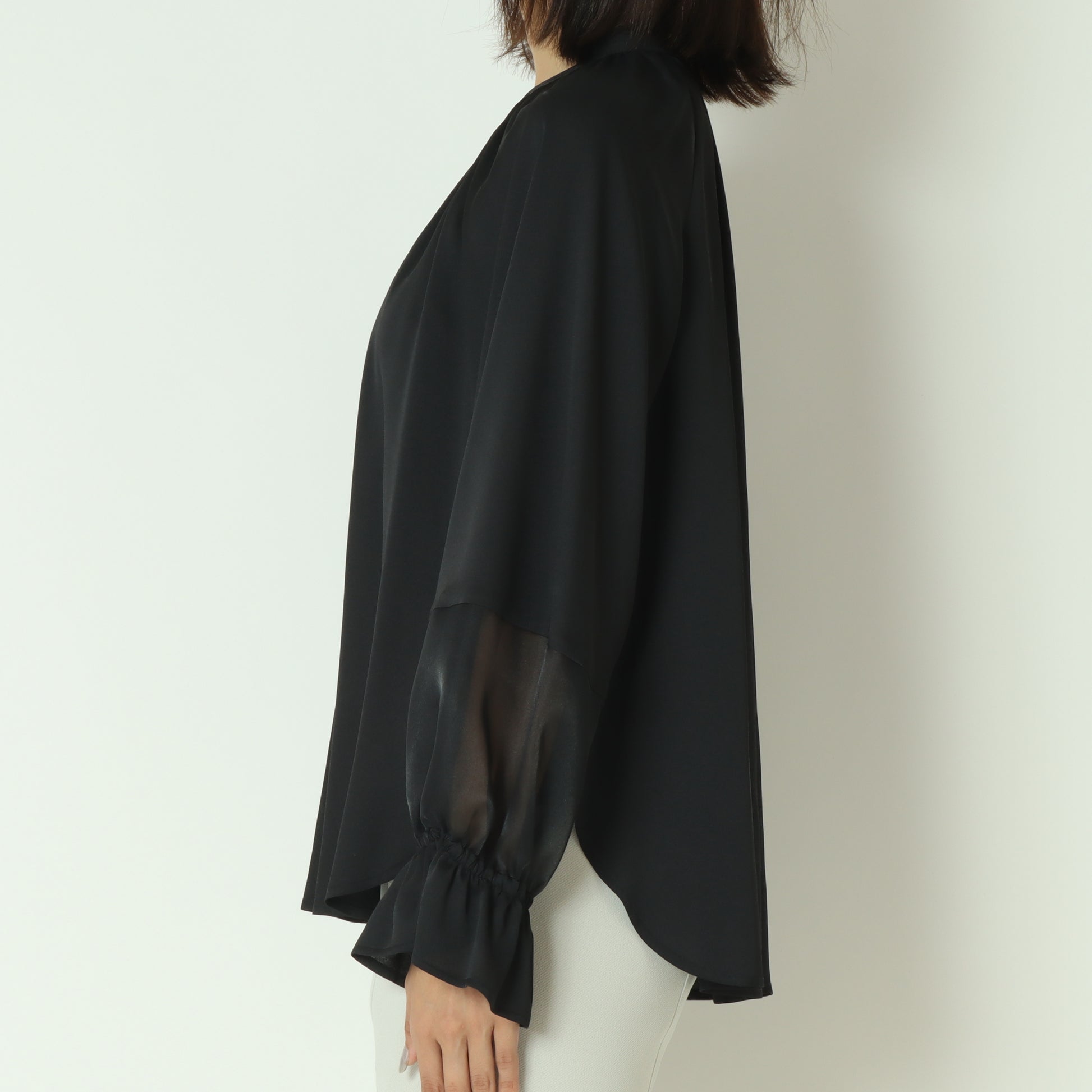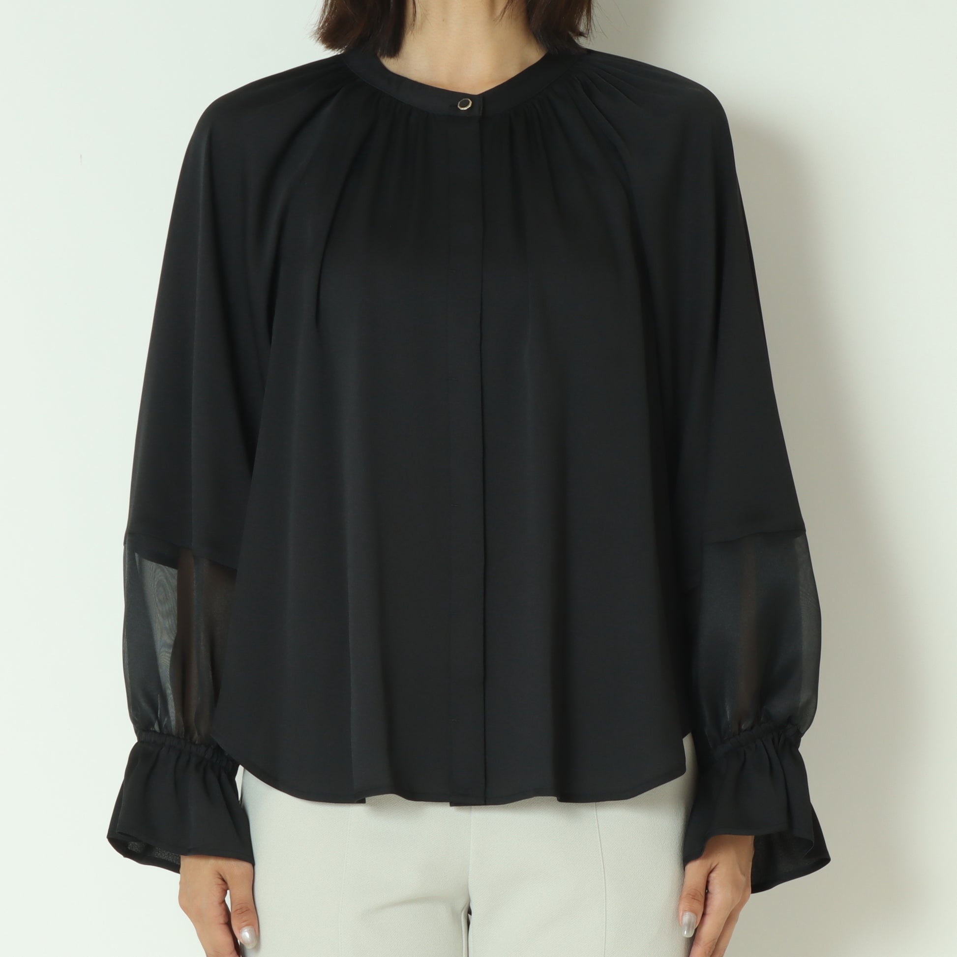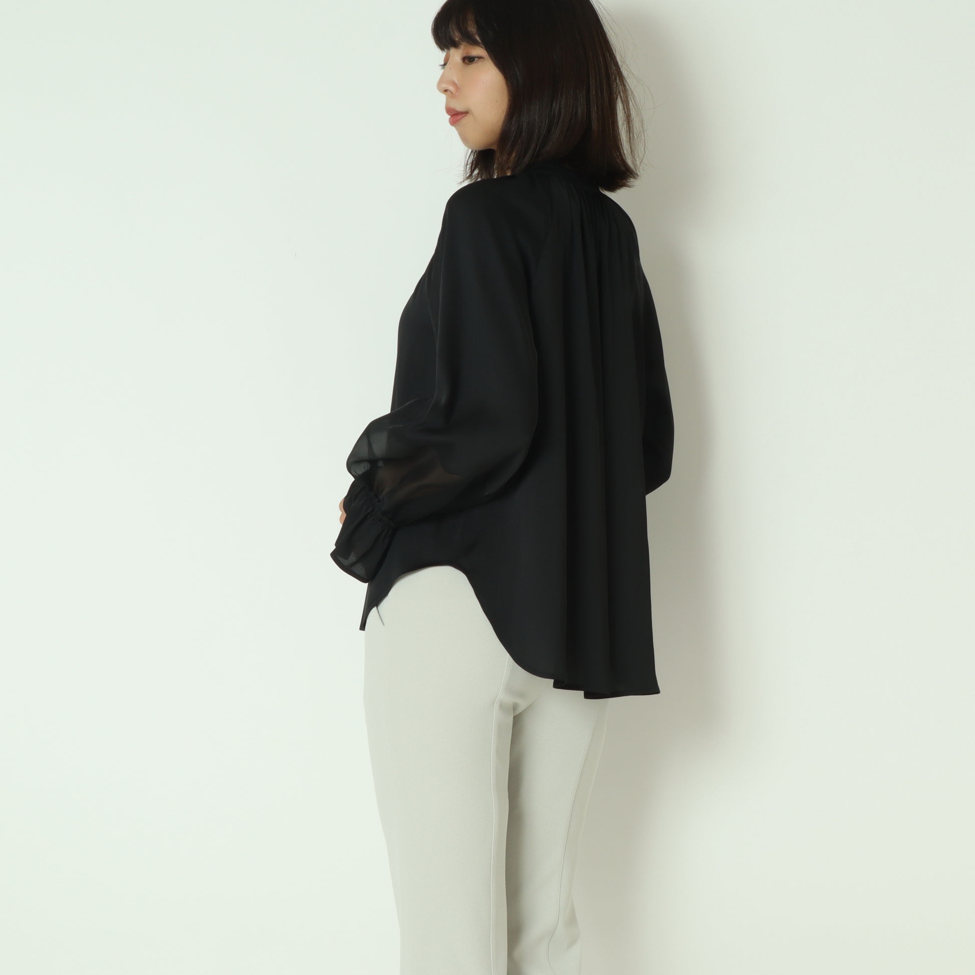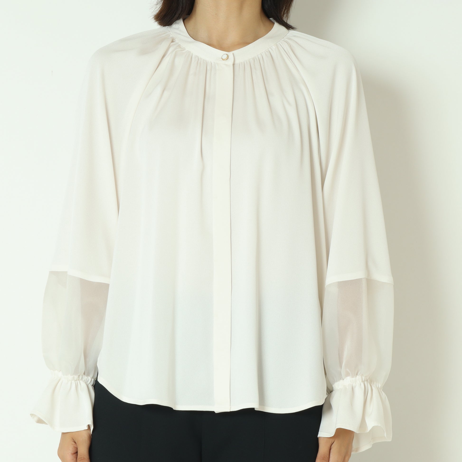 袖のシアー切り替えがアクセントになったふんわりスリーブブラウス。