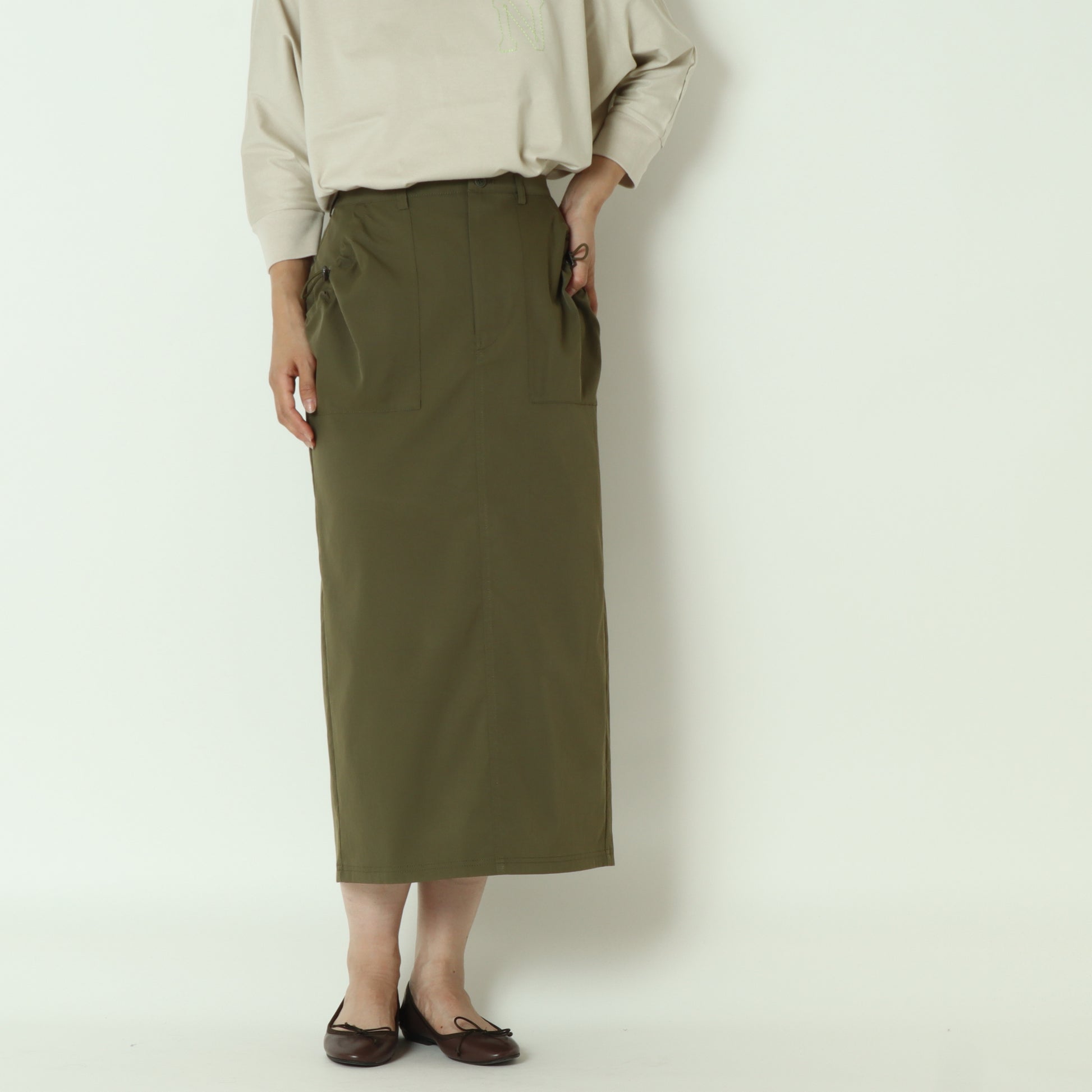 タイトすぎず、程よいナローシルエットのカーゴデザインスカート。
