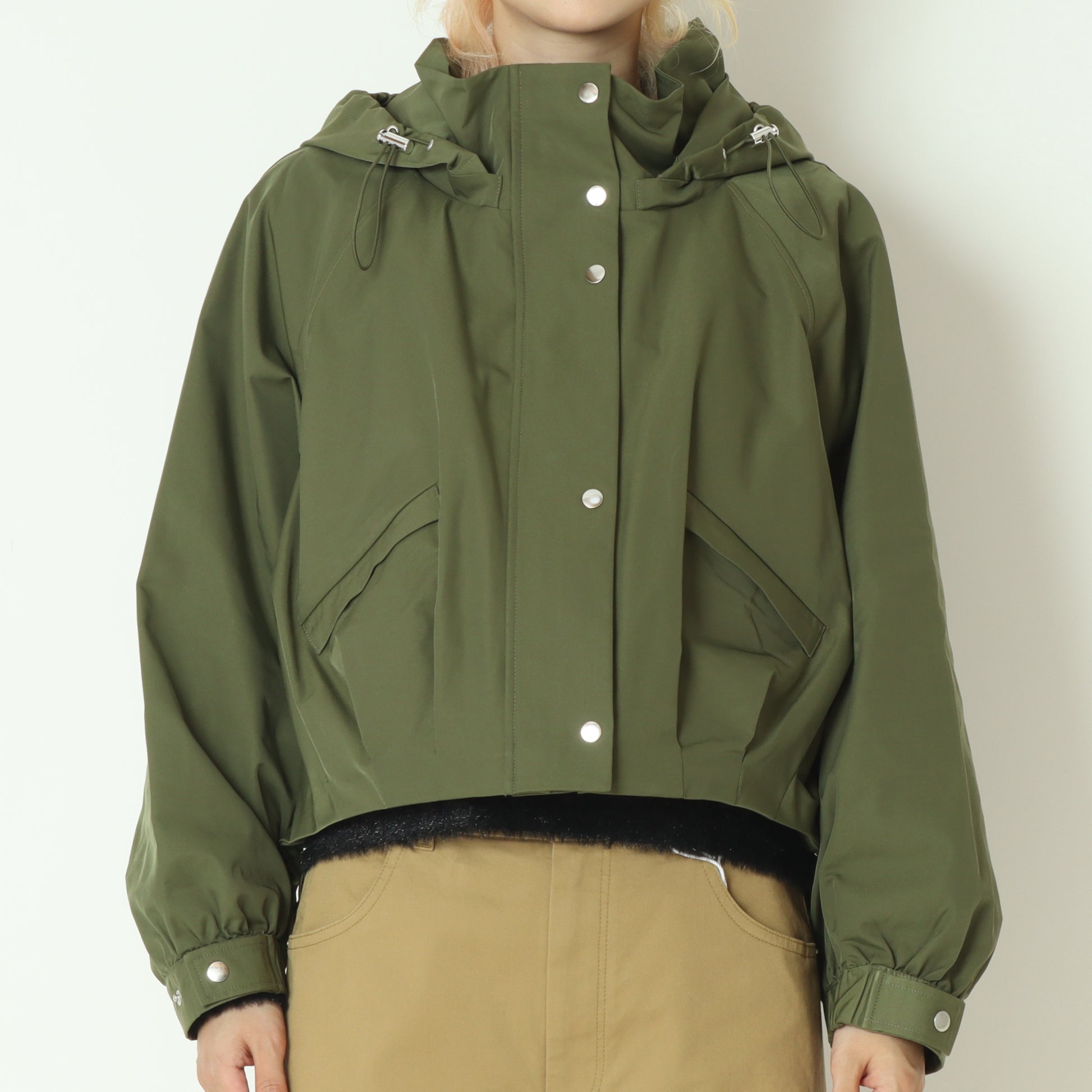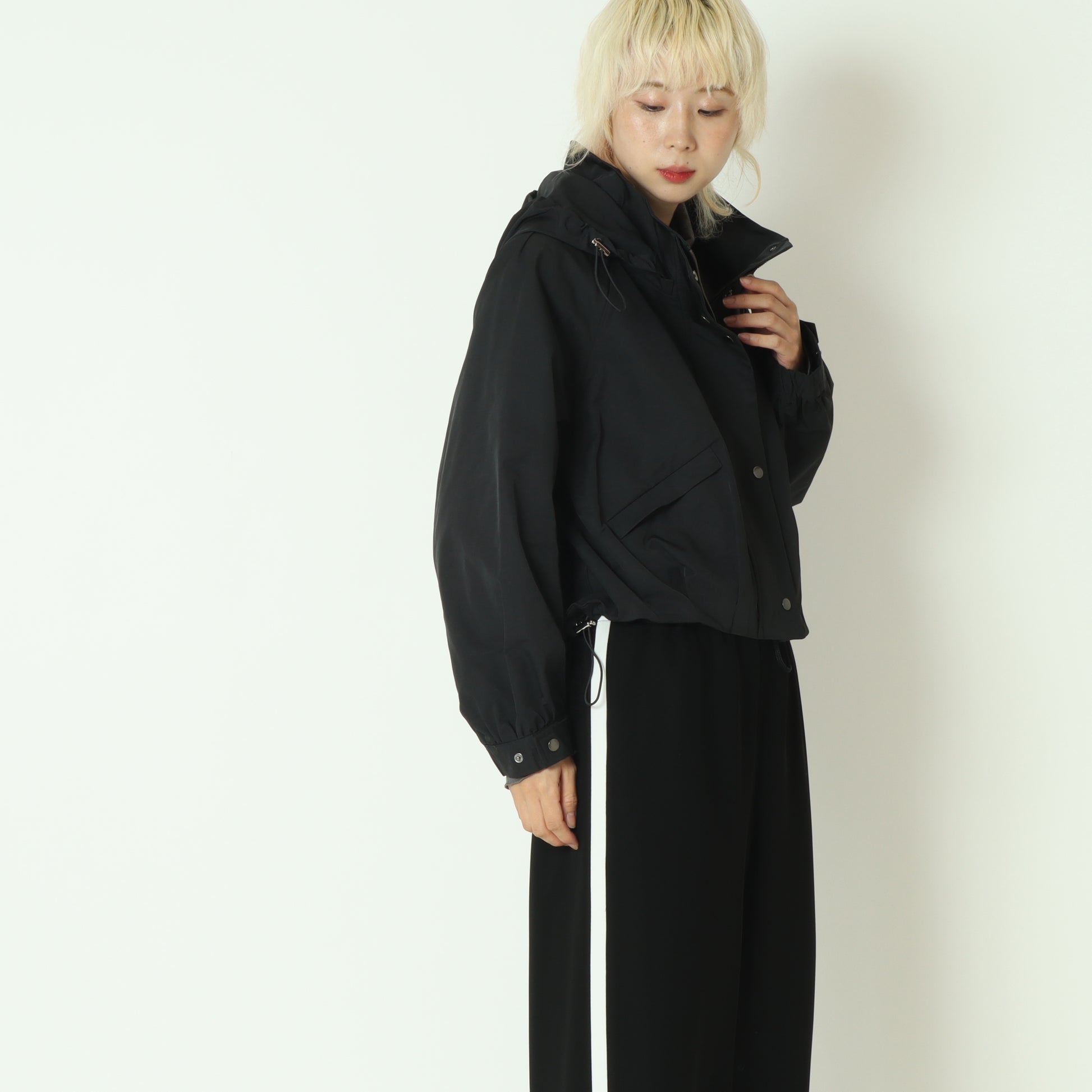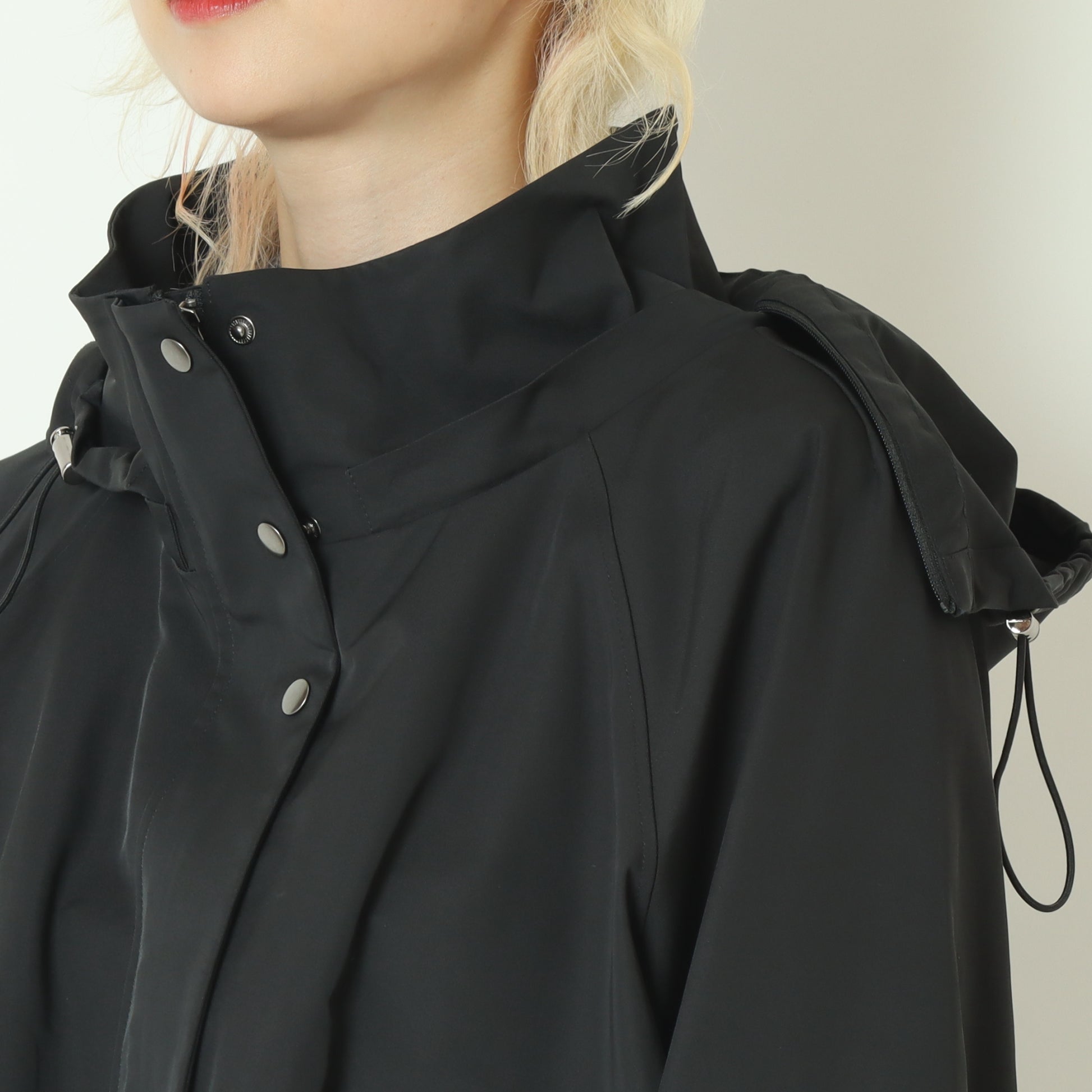 フードと裾はドロスト付きでデザインの微調整が可能、