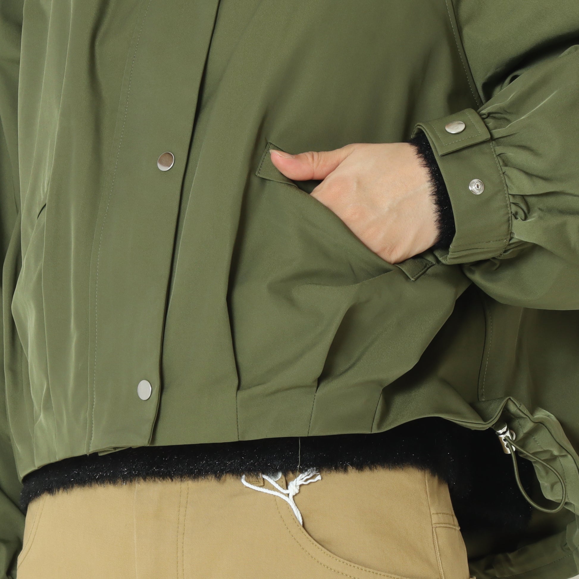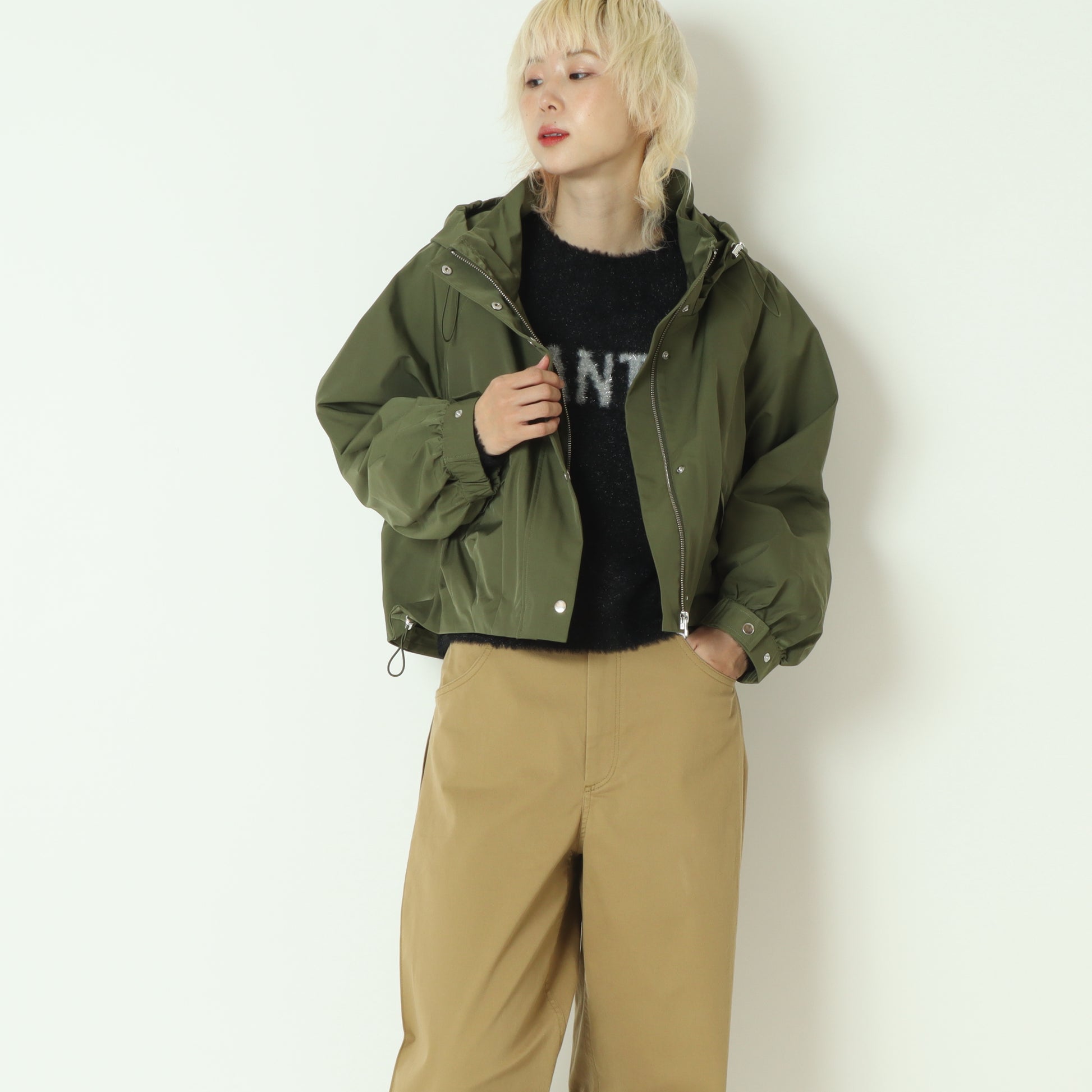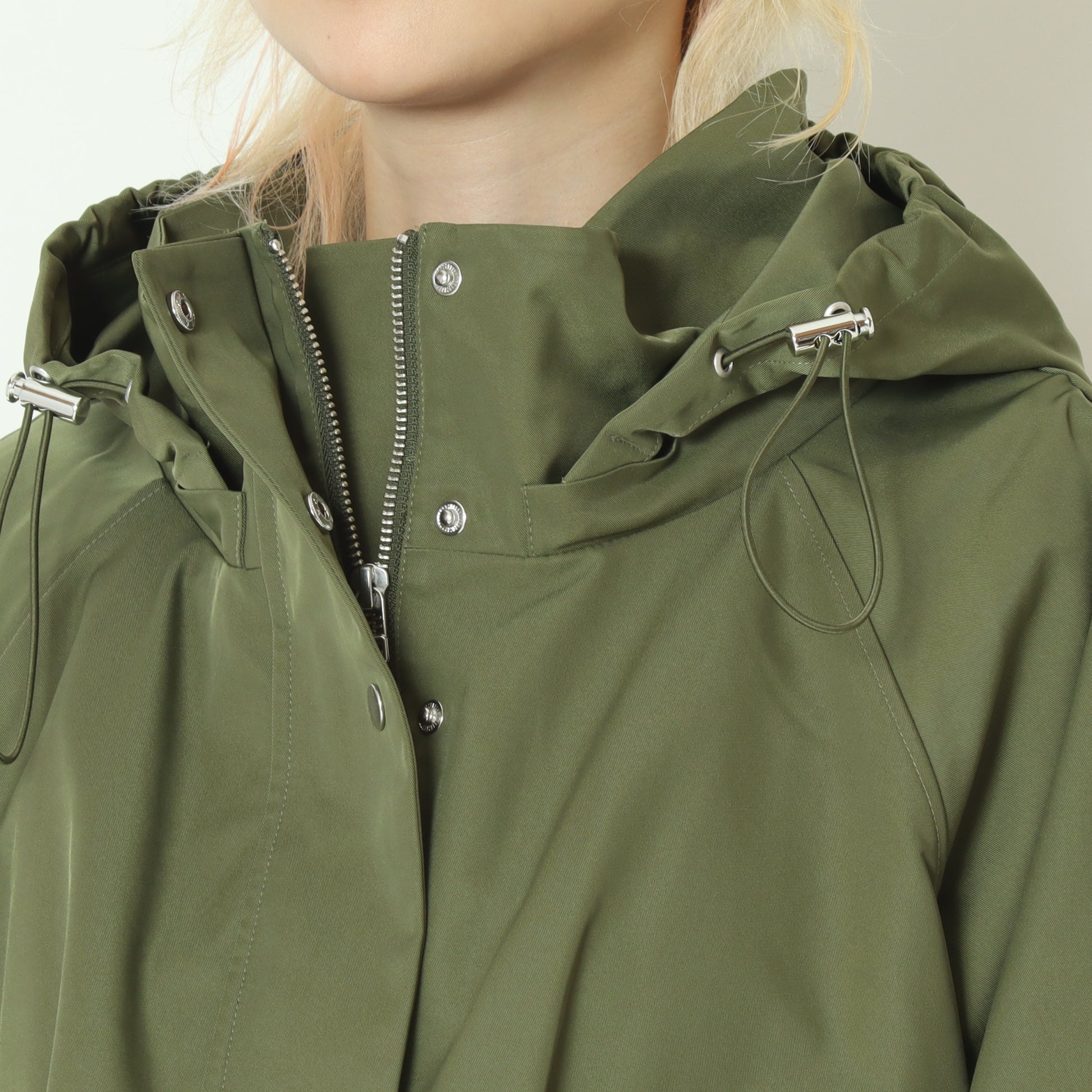 フードと裾はドロスト付きでデザインの微調整が可能、