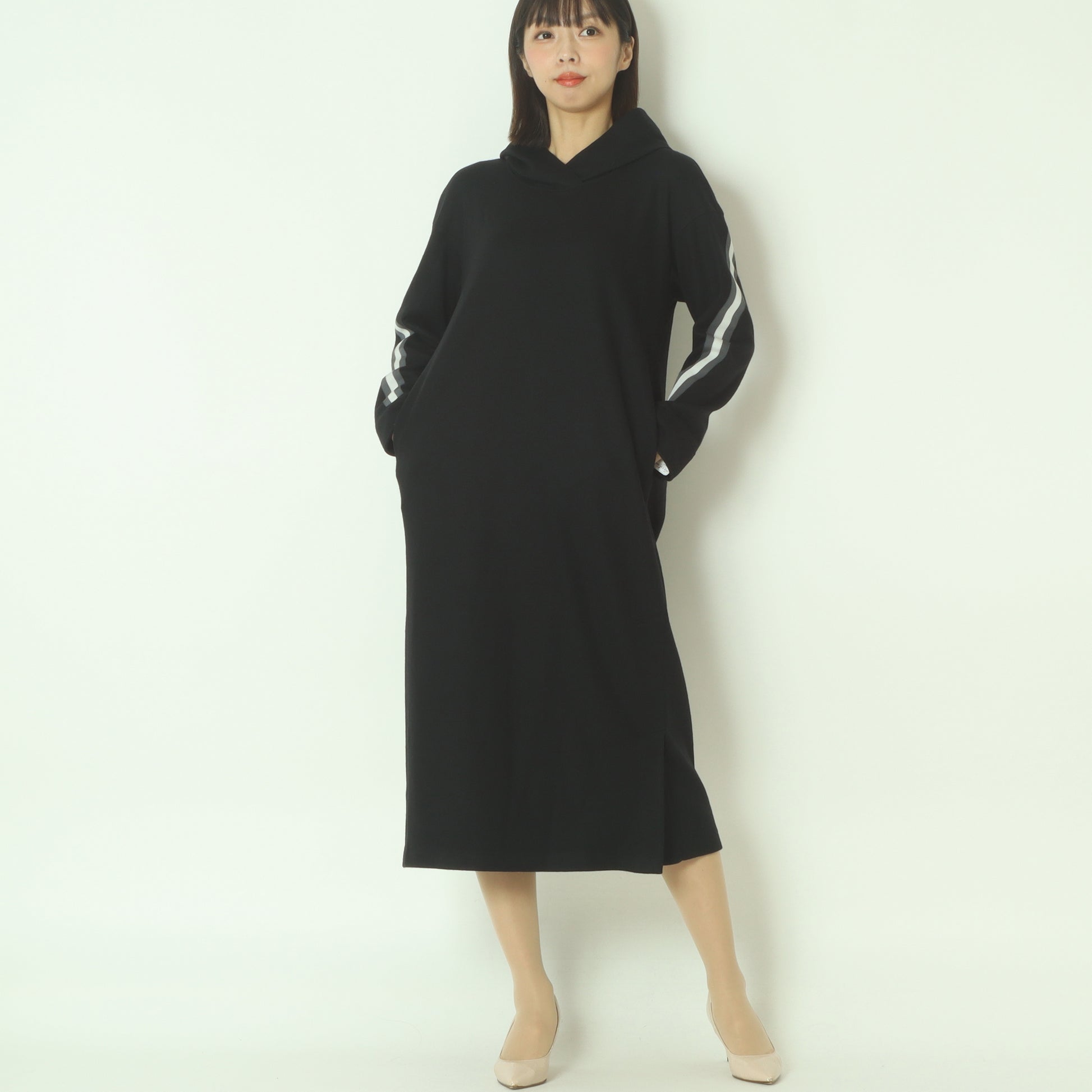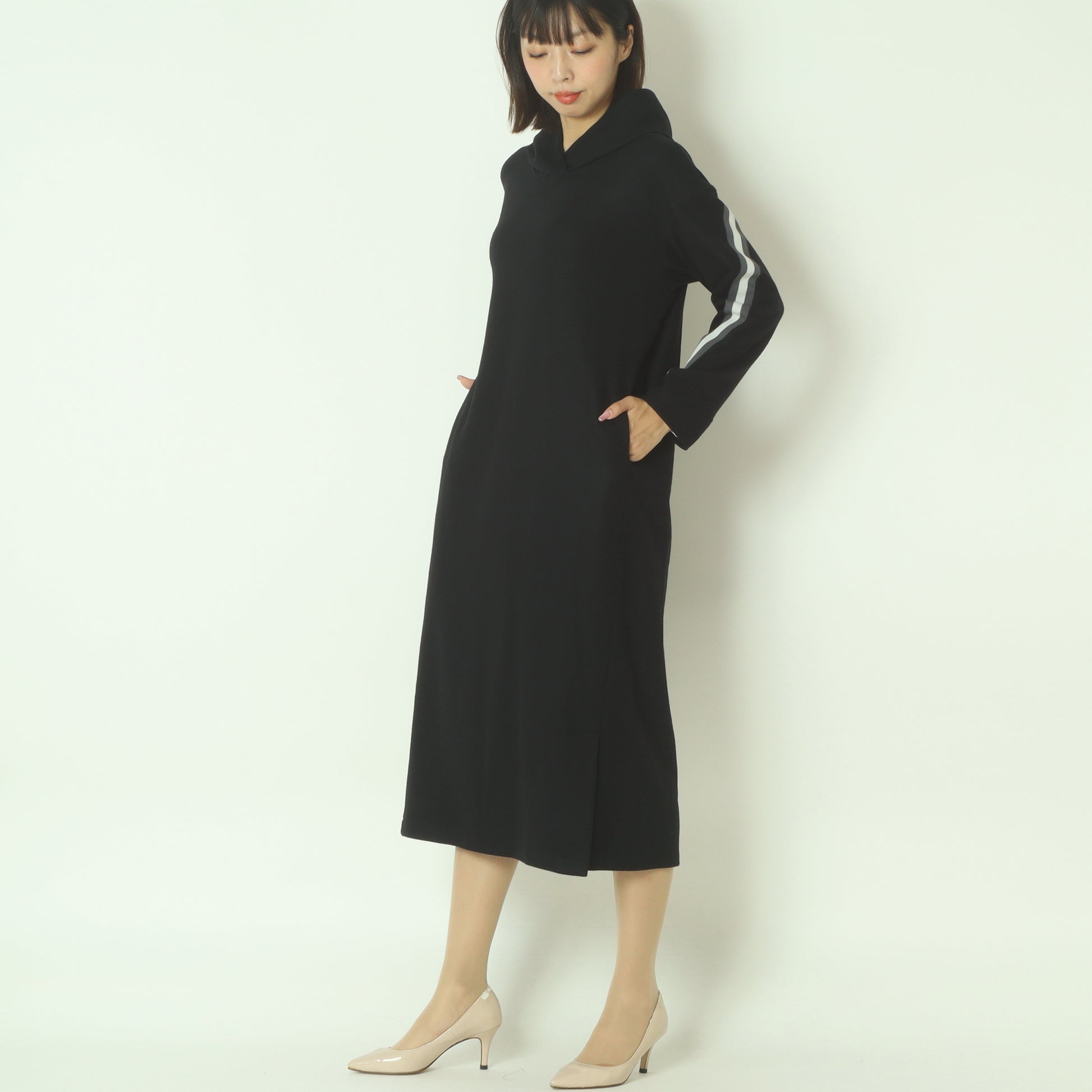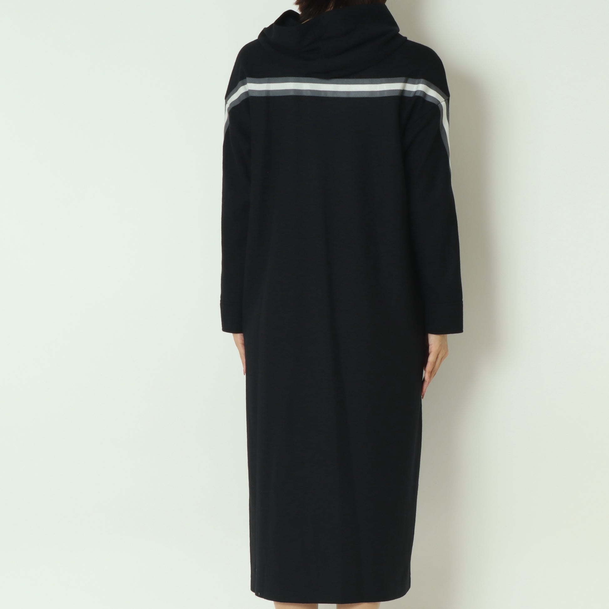 着心地の良いウール素材と配色ラインデザインがアクセントになった上品カジュアルワンピース。