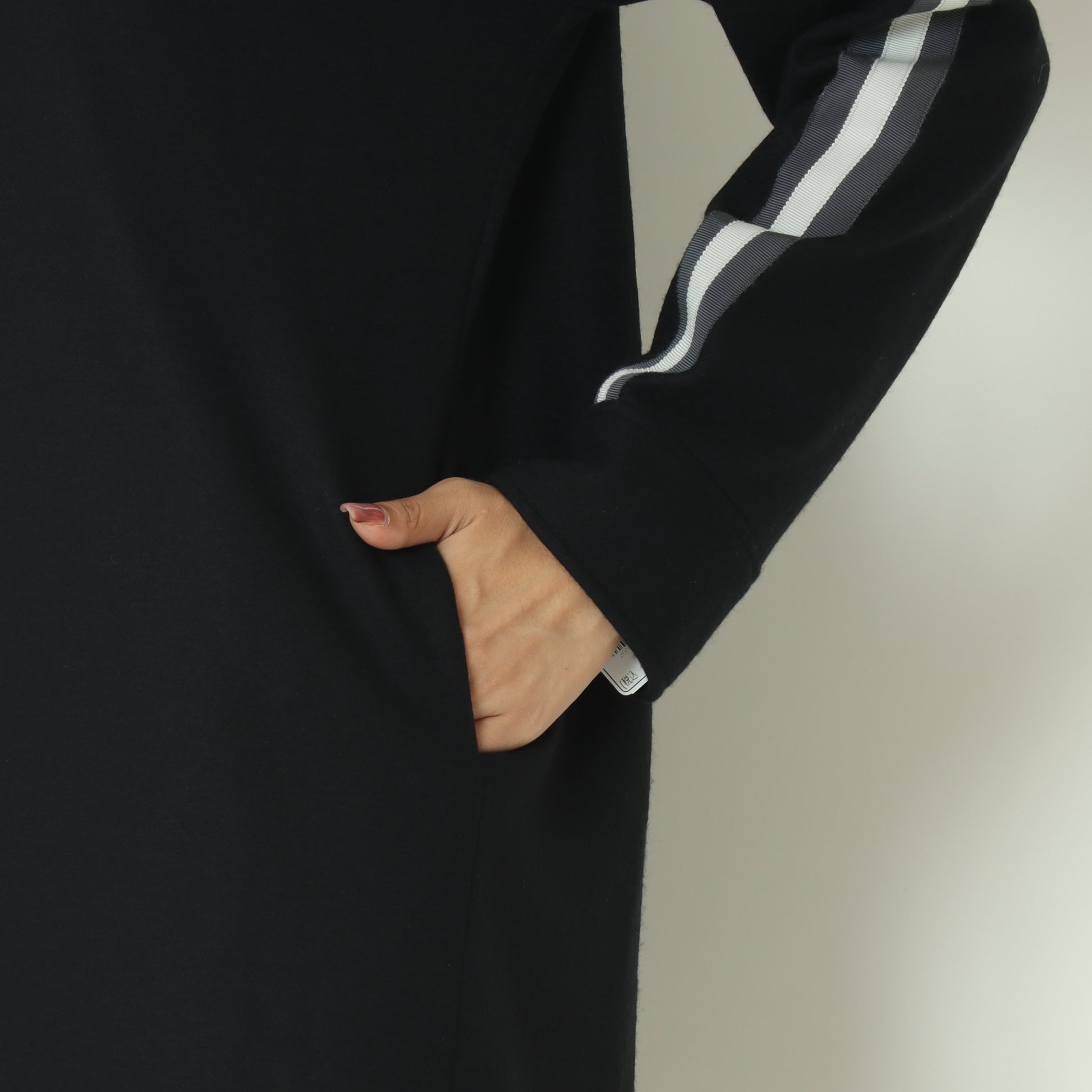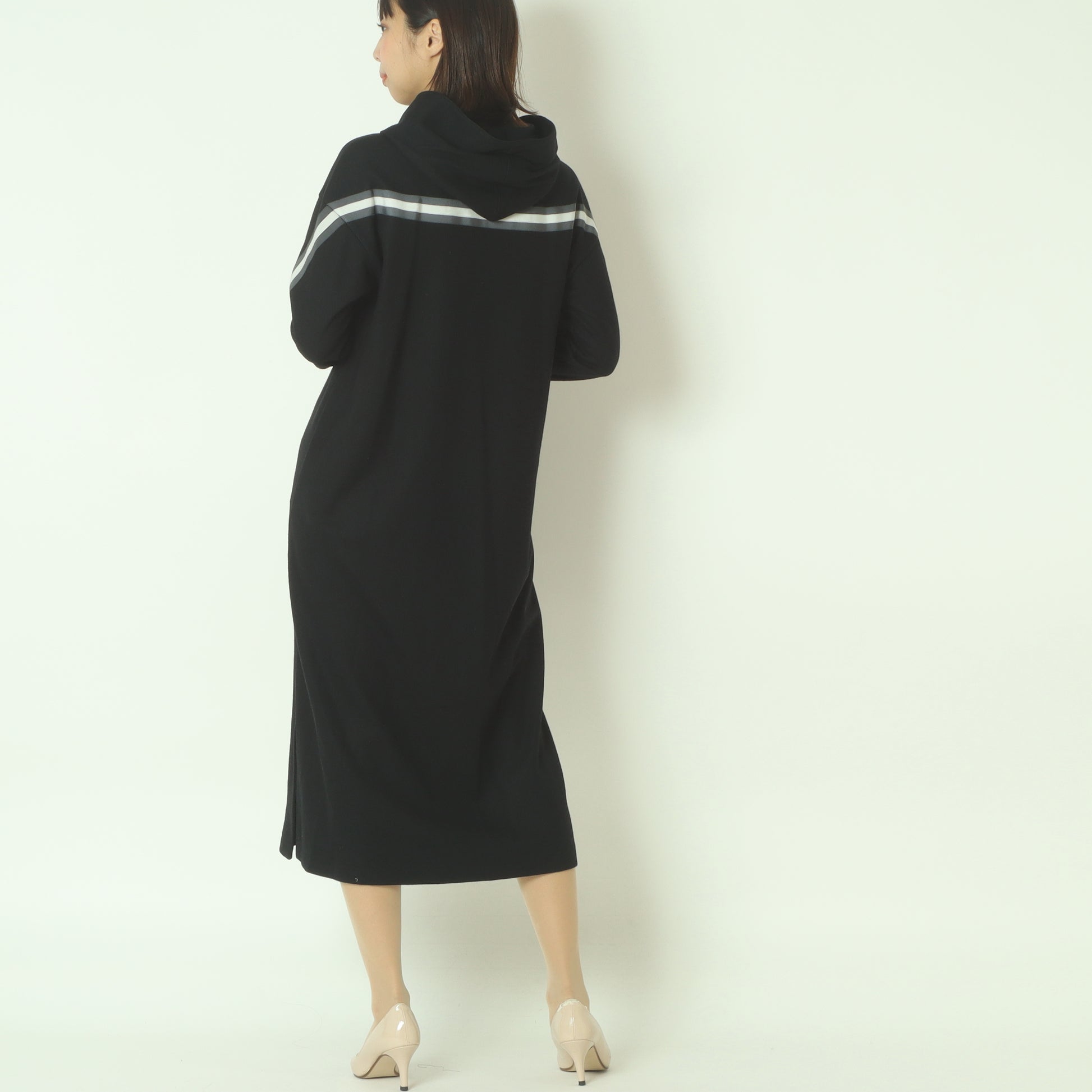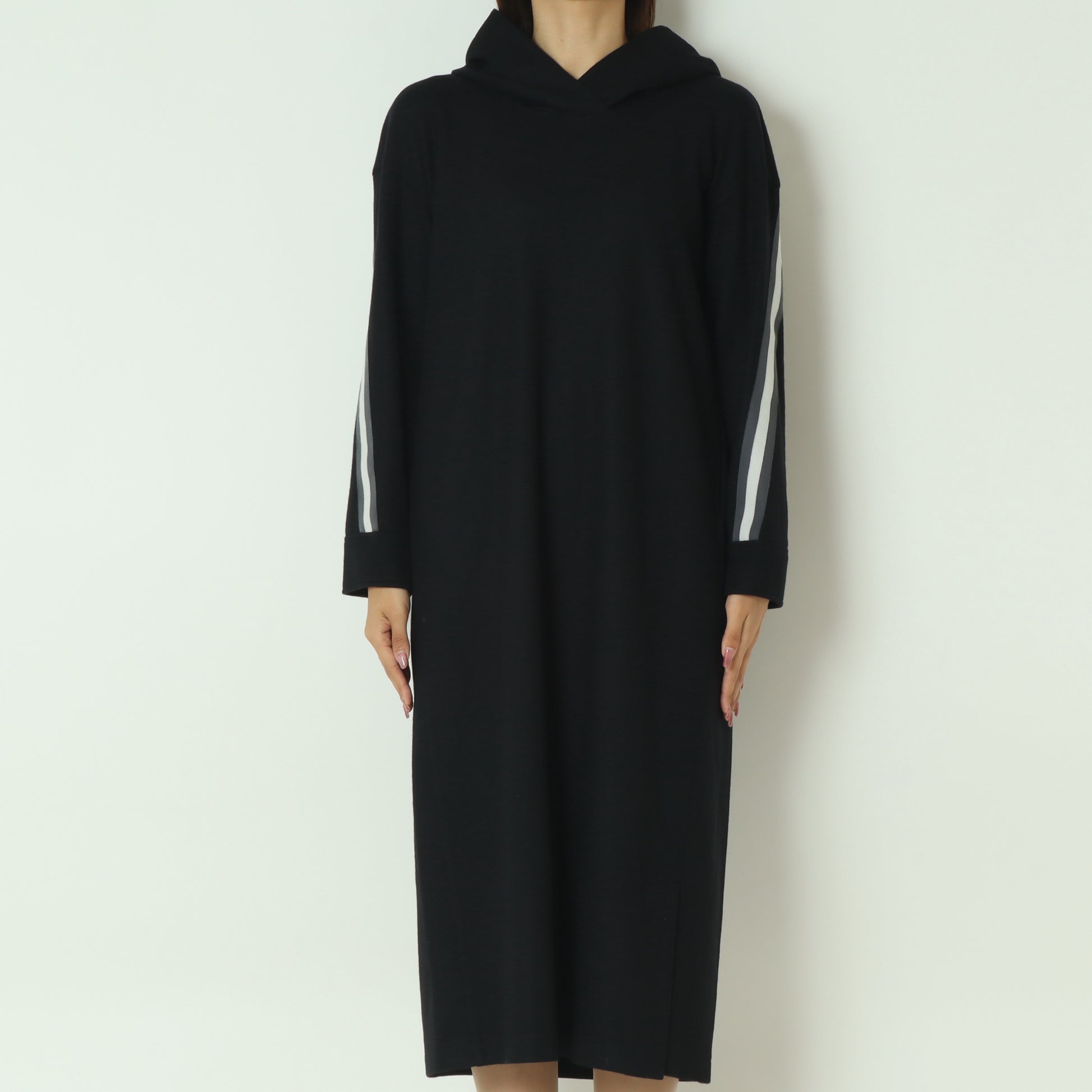 着心地の良いウール素材と配色ラインデザインがアクセントになった上品カジュアルワンピース。