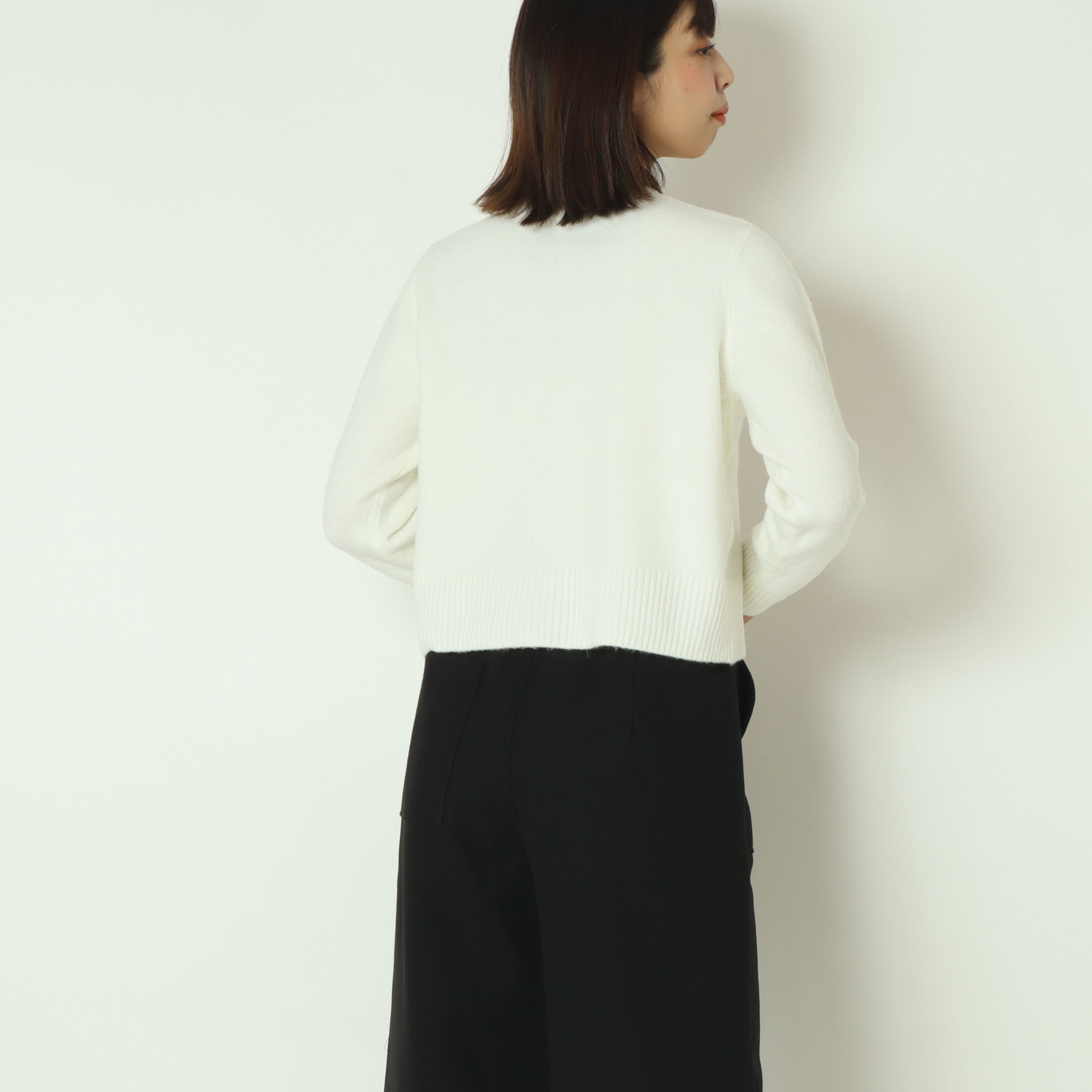 シンプルなクルーネックの襟元は、ハイネックのインナーを合わせて雰囲気を変えて着ていただくのもおすすめ◎
