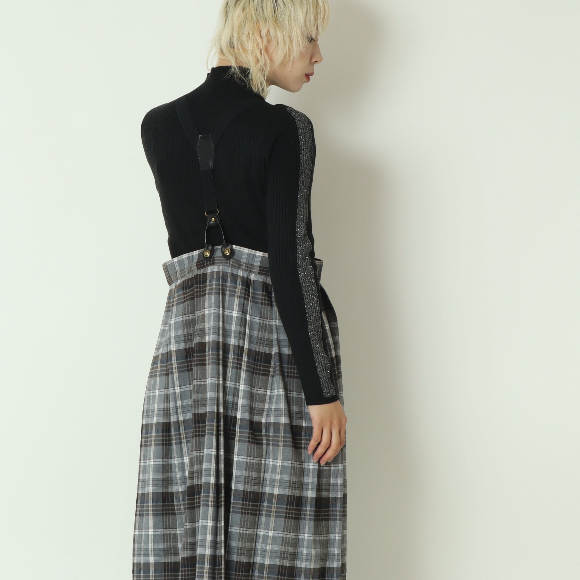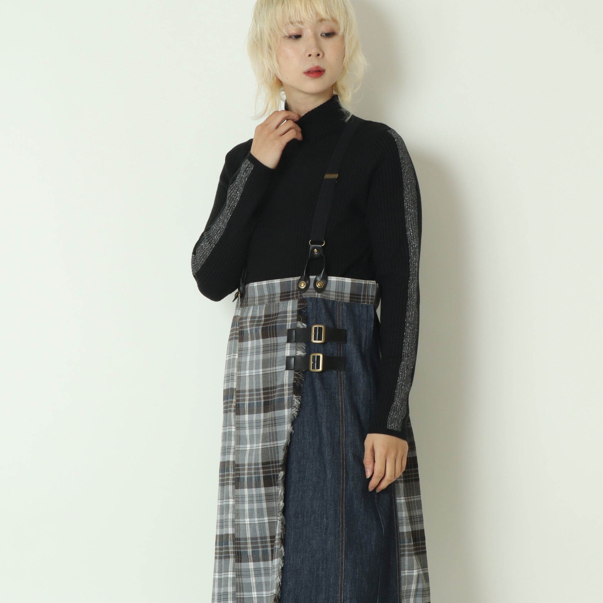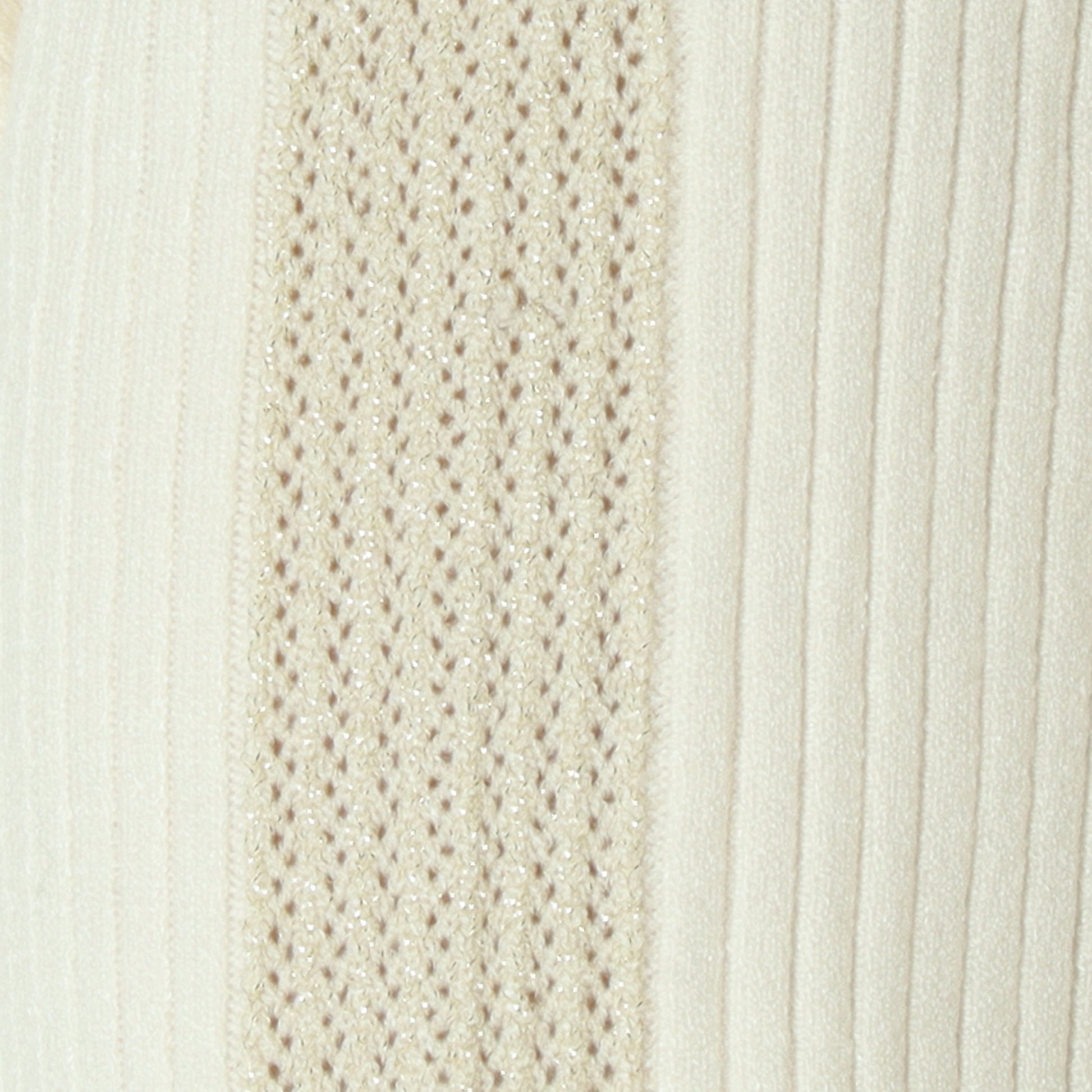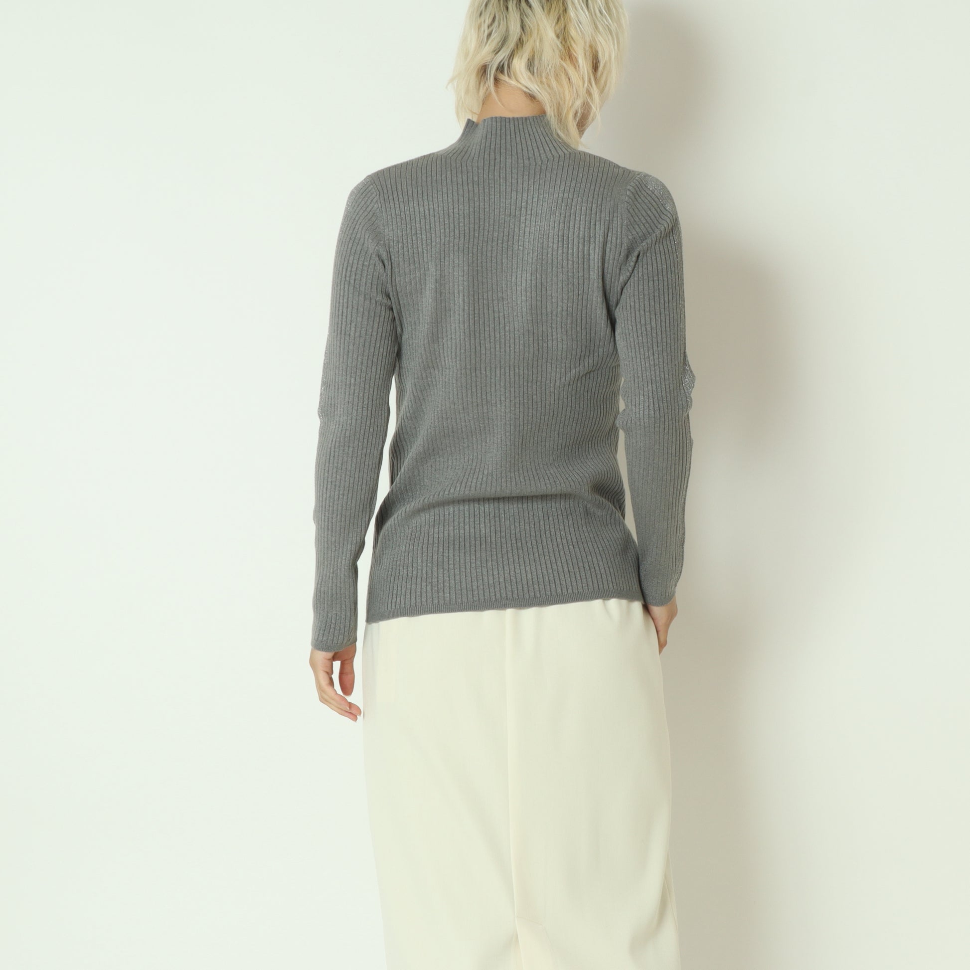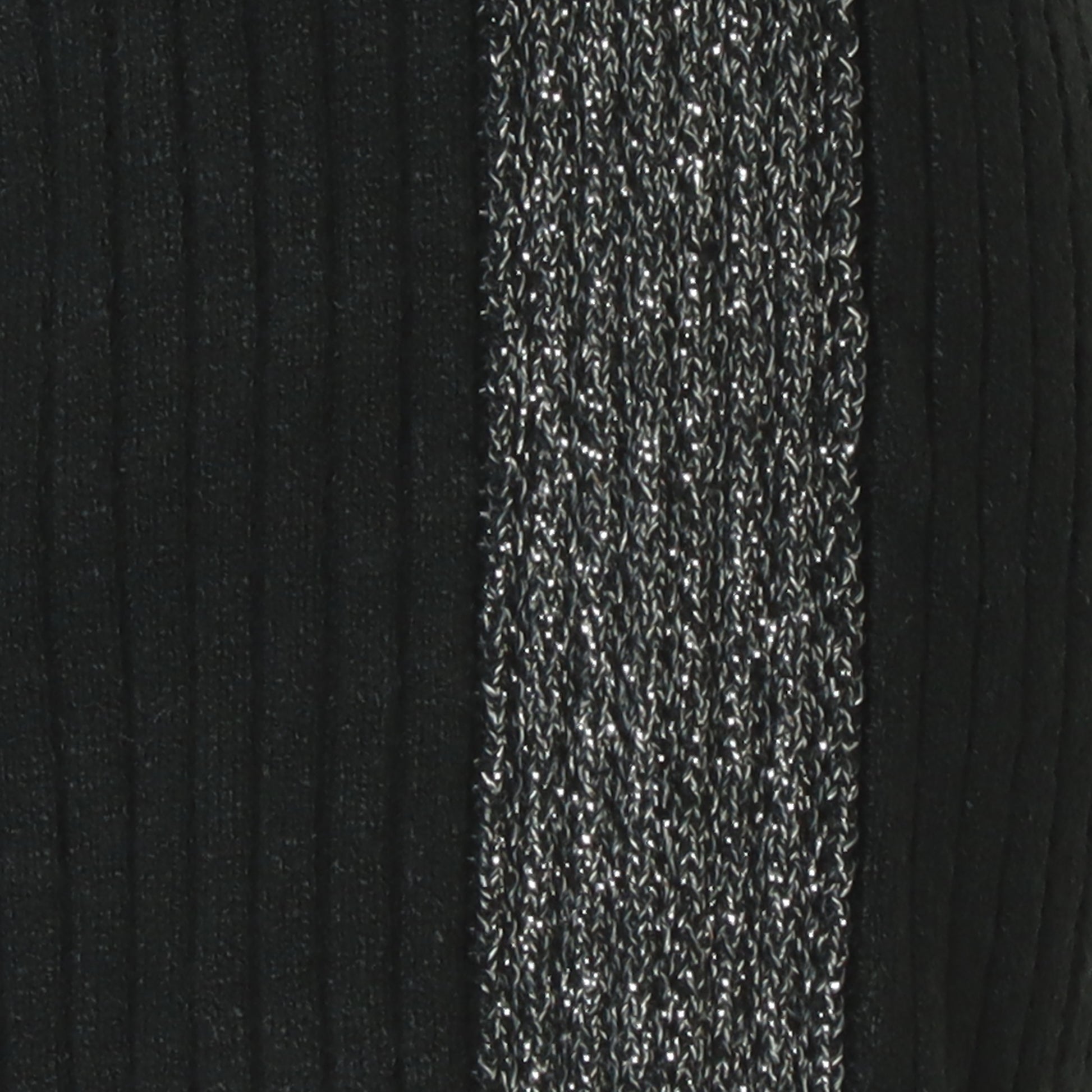 肩から袖口にかけてラメラインの入ったリブニットトップス。
