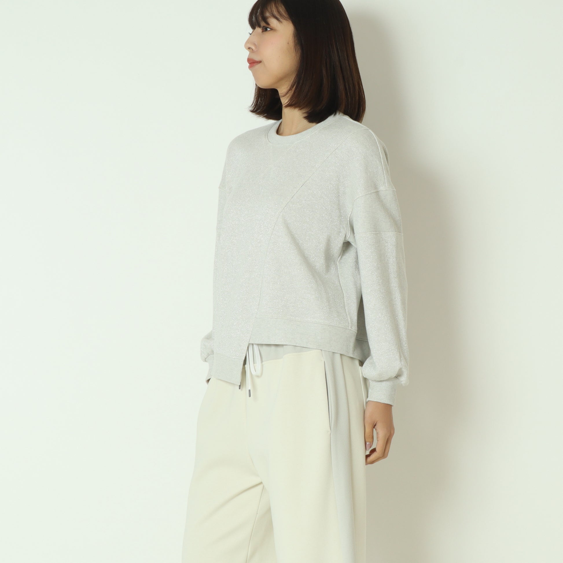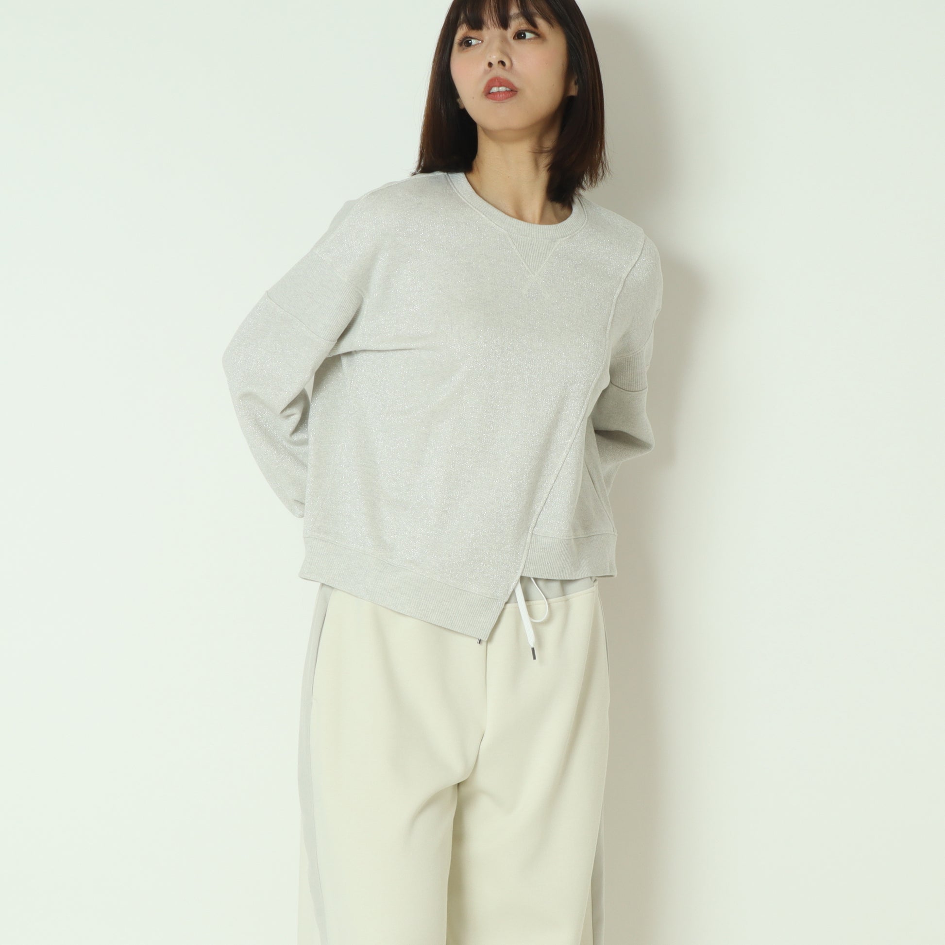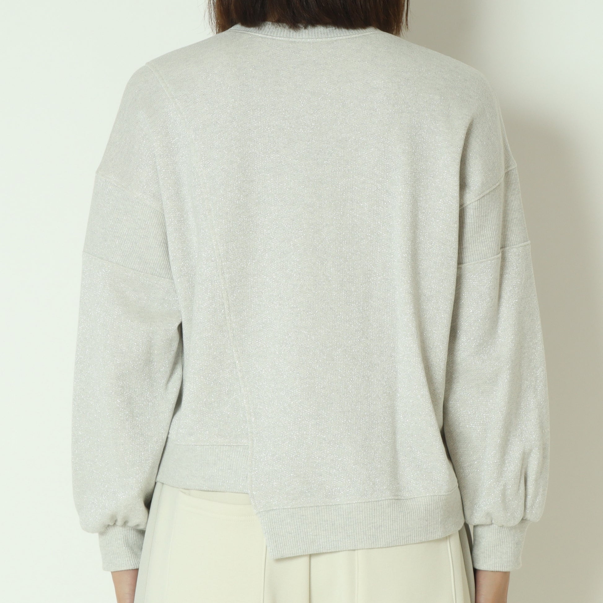 左右不対称のデザインがポイントのラメ素材のスウェット。