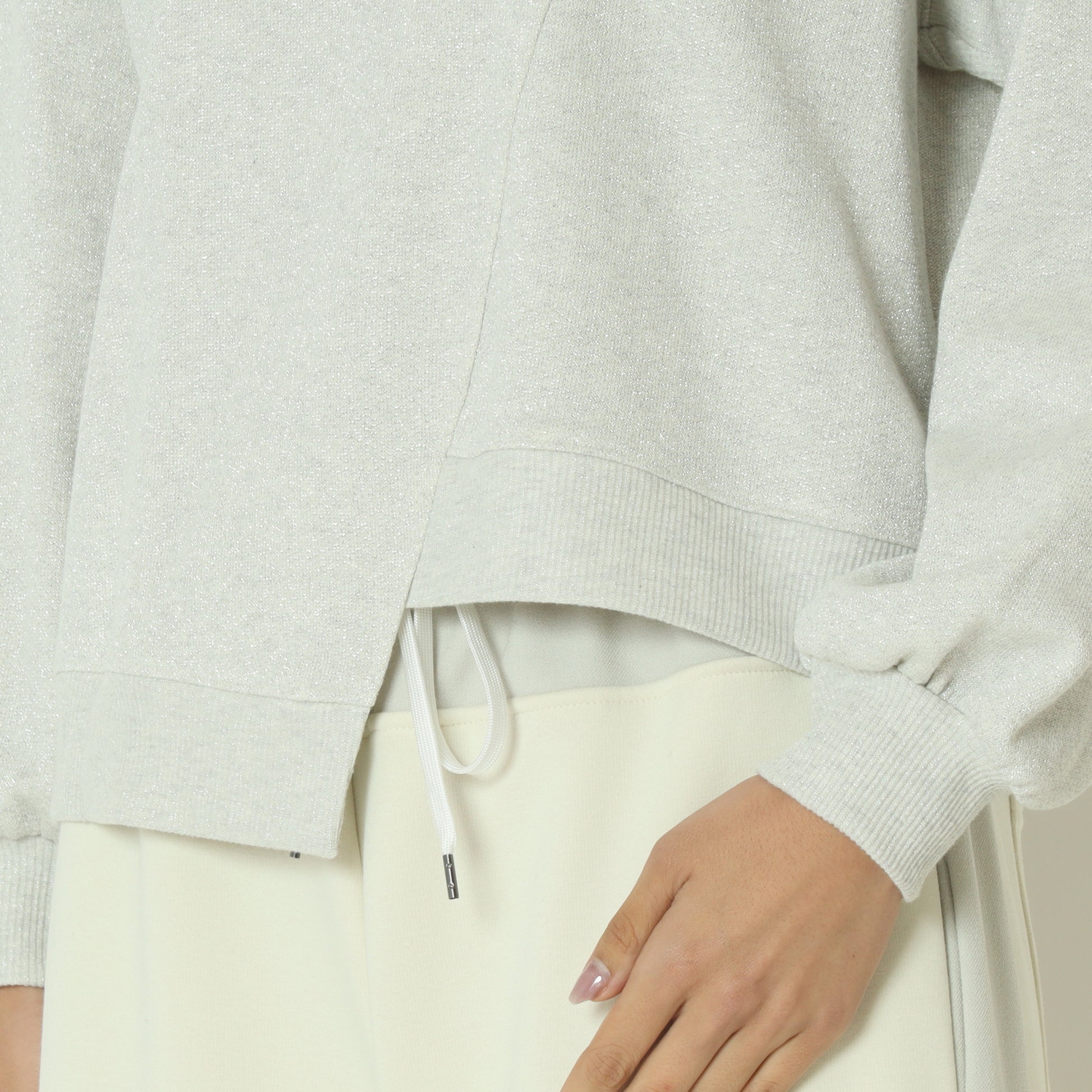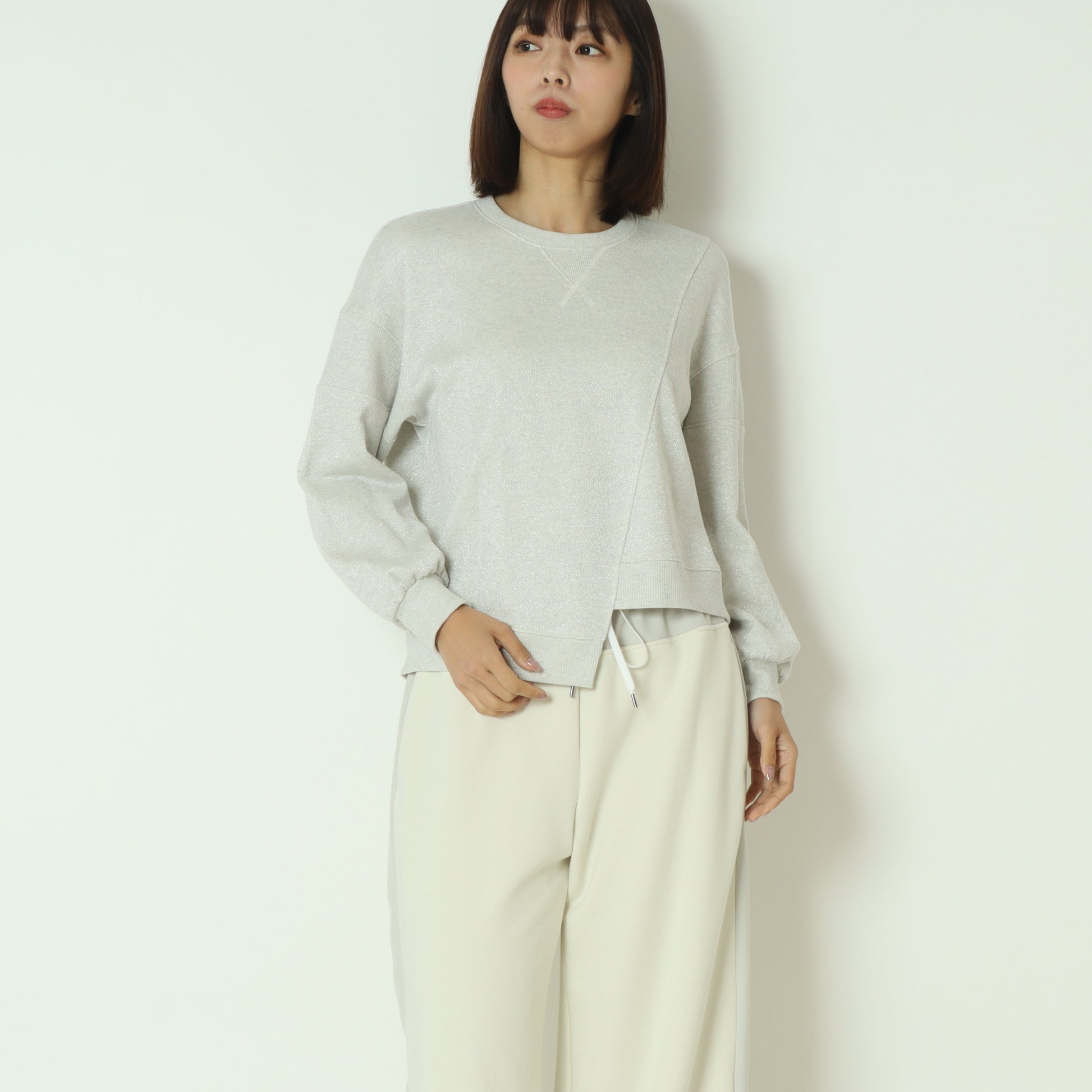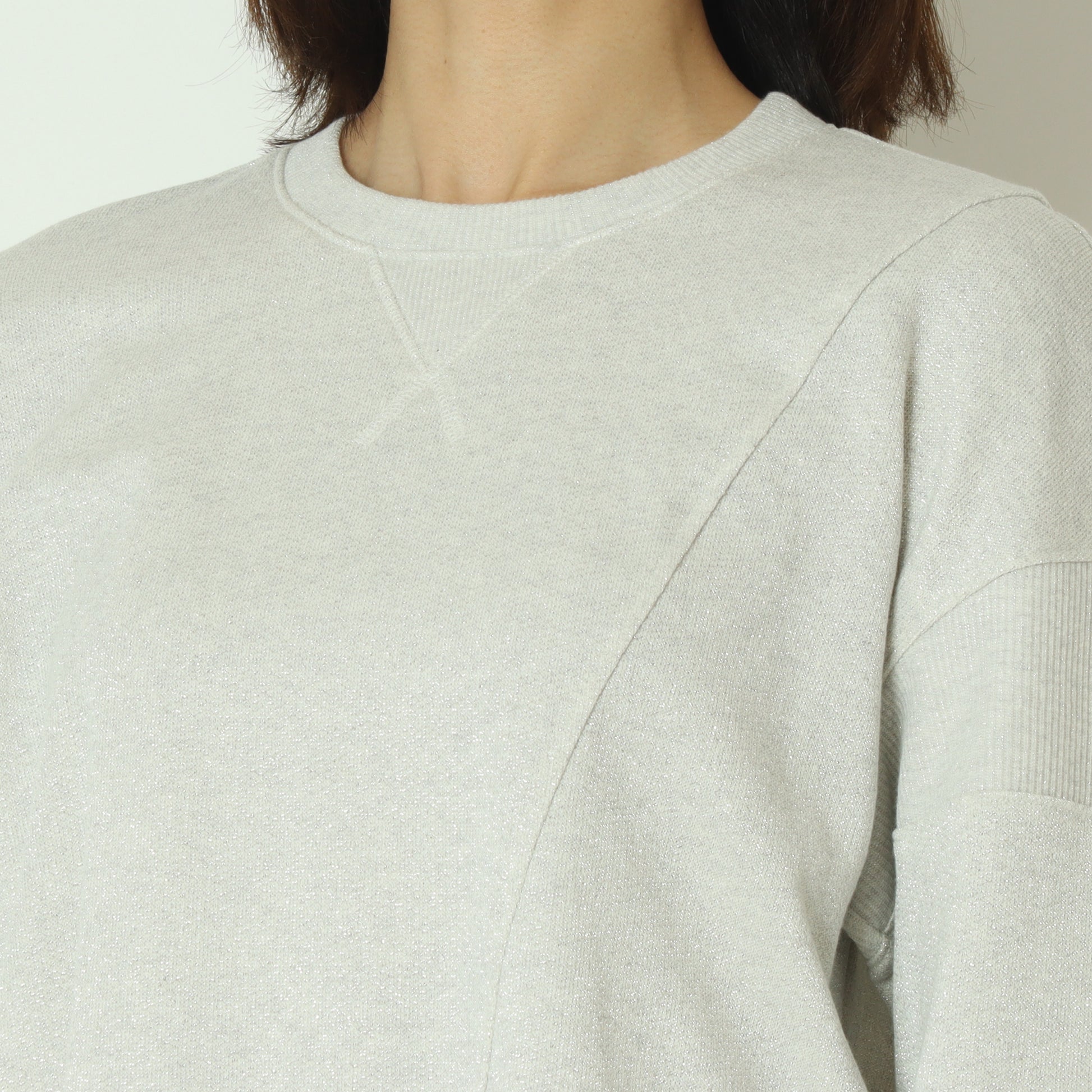 左右不対称のデザインがポイントのラメ素材のスウェット。