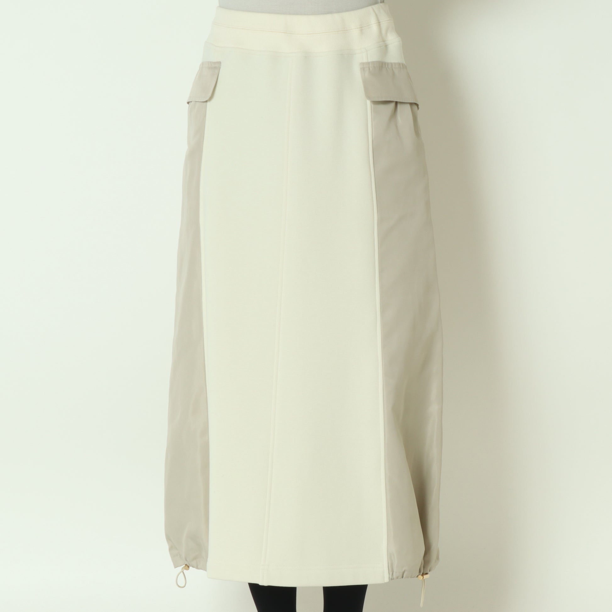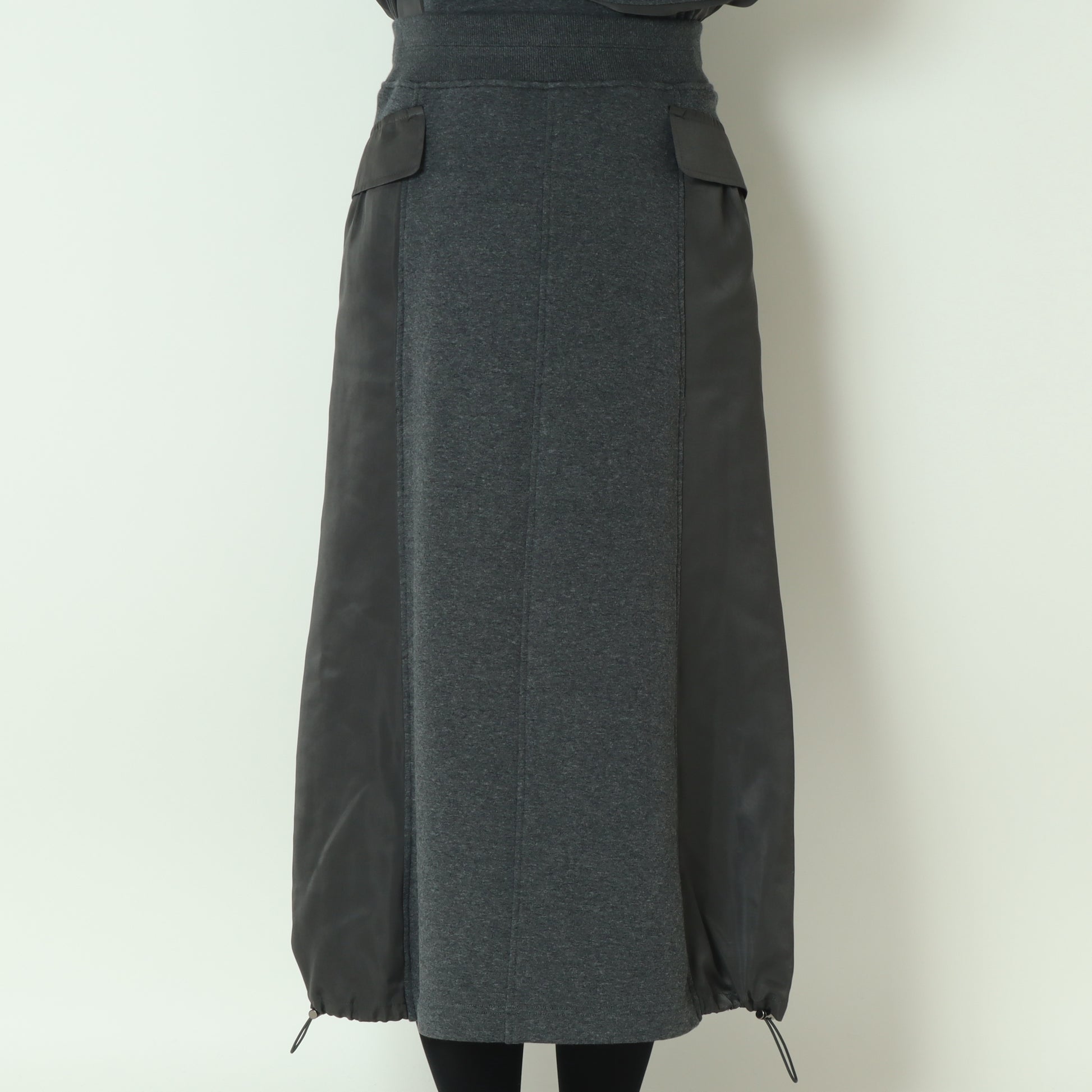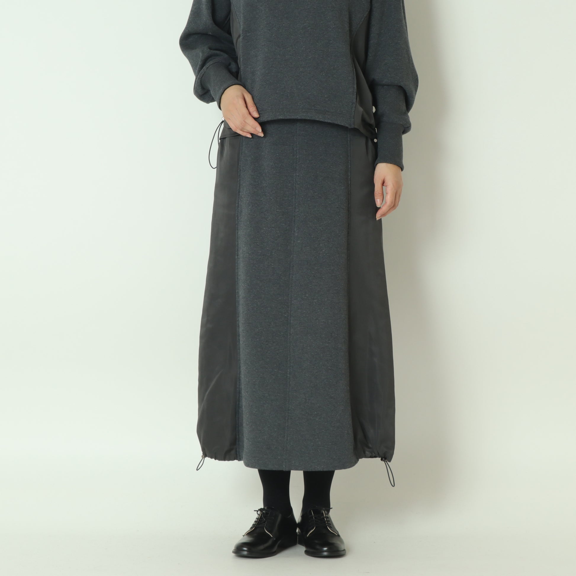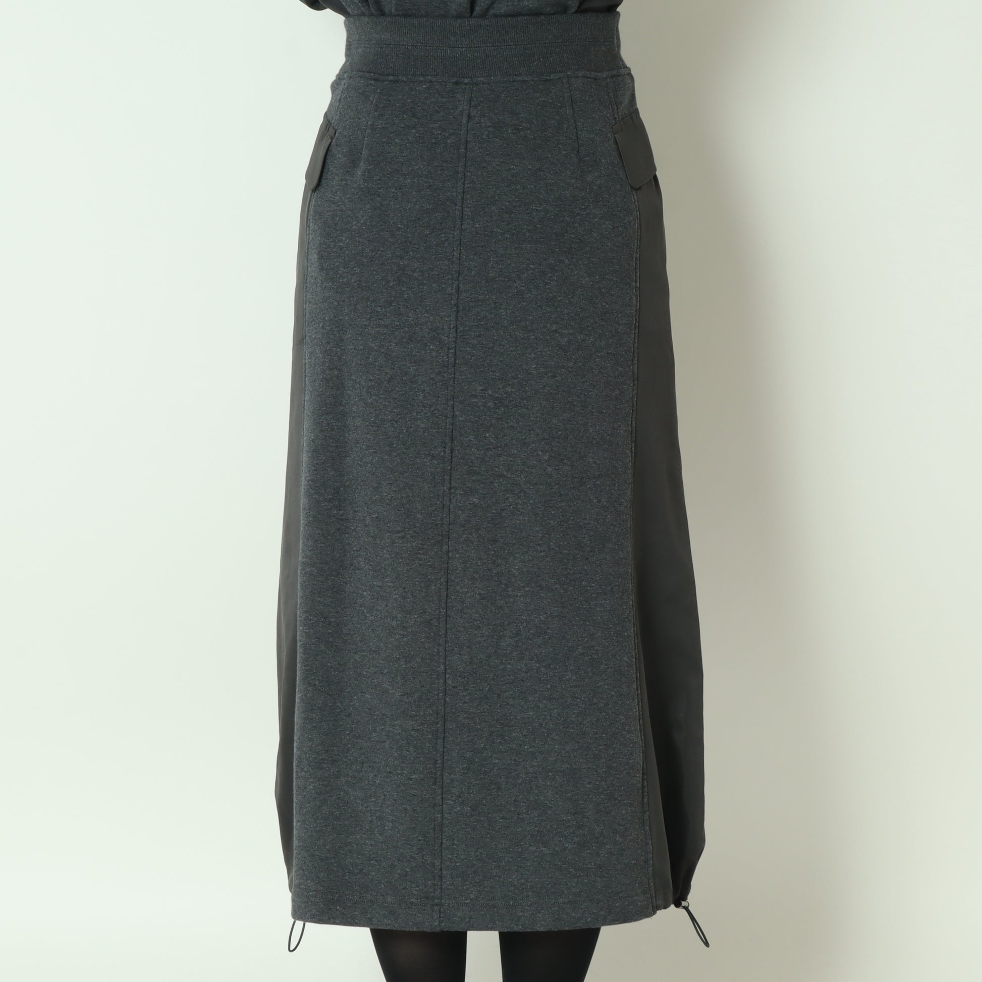 サイドにナイロン素材がドッキングされたスウェットスカート。