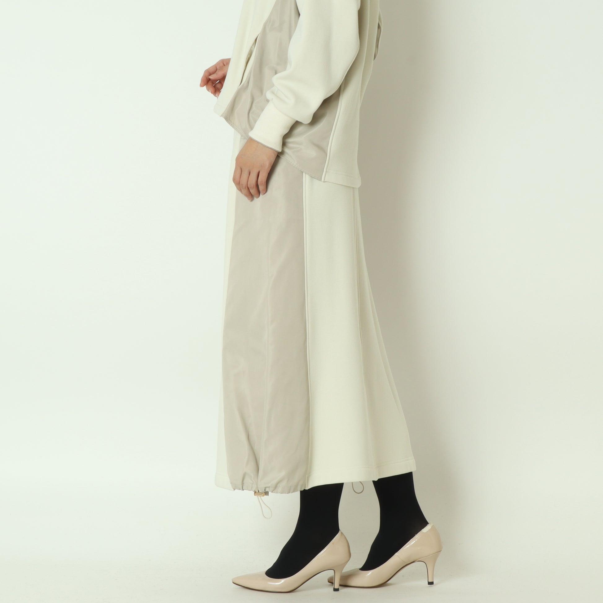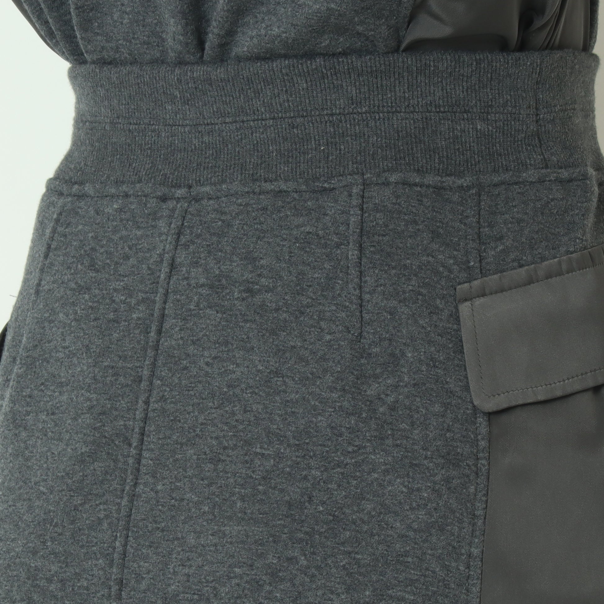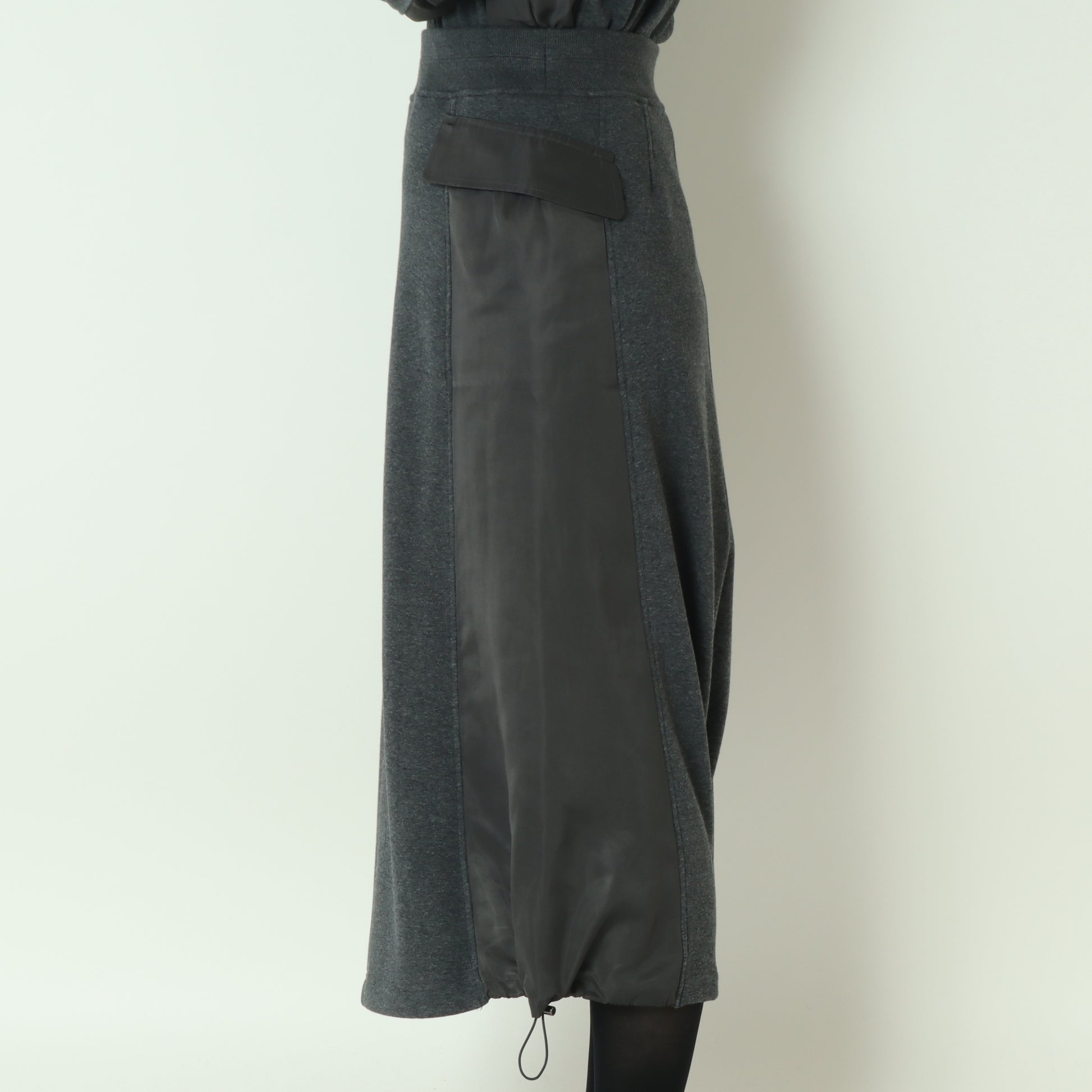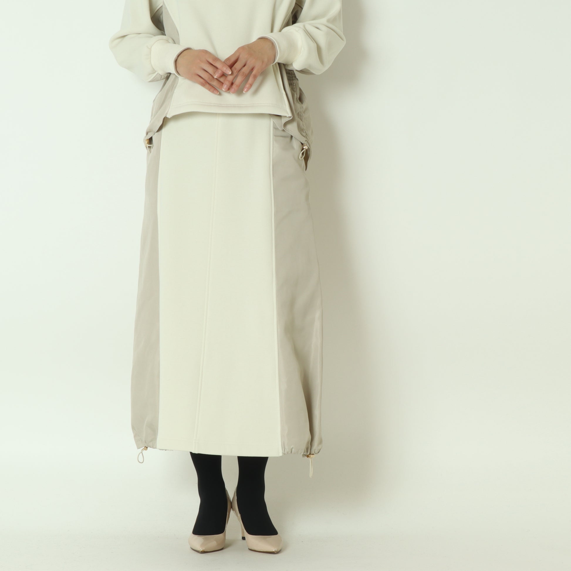サイドにナイロン素材がドッキングされたスウェットスカート。