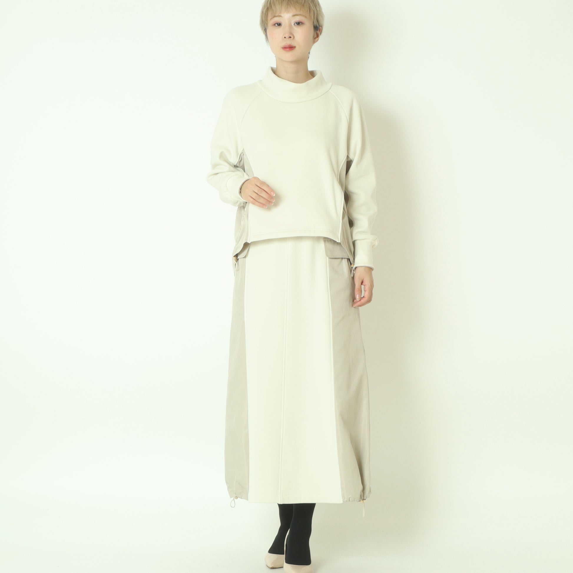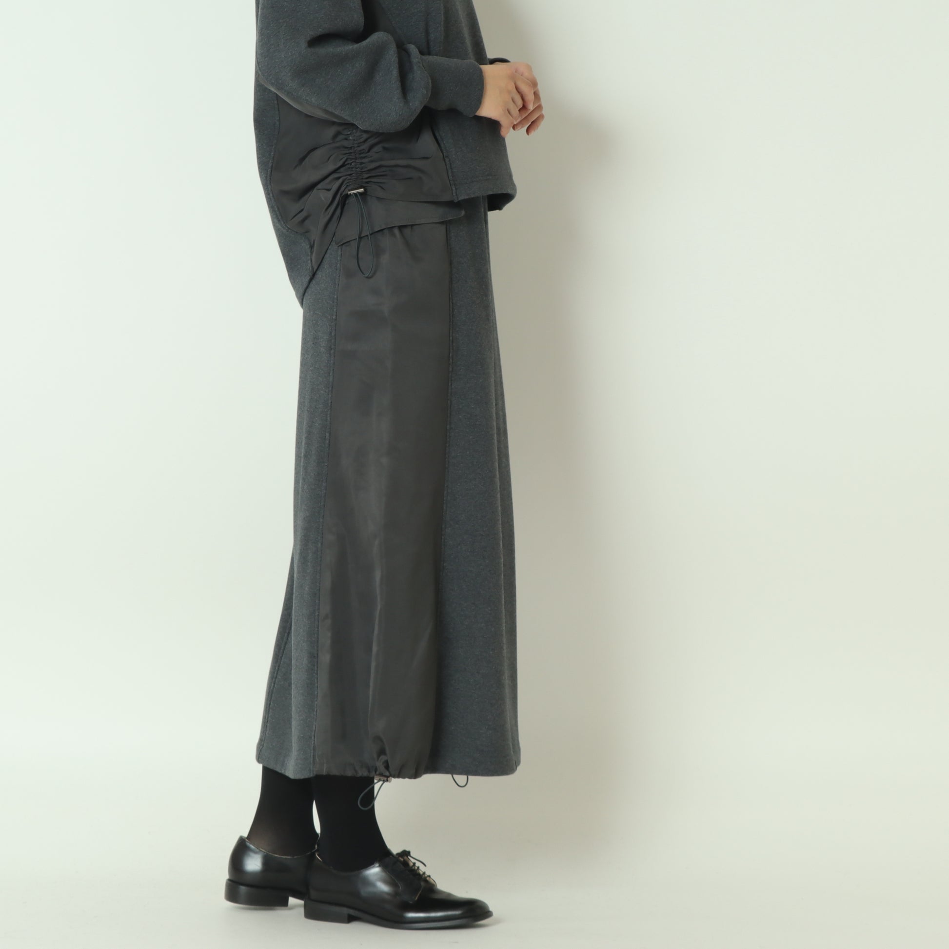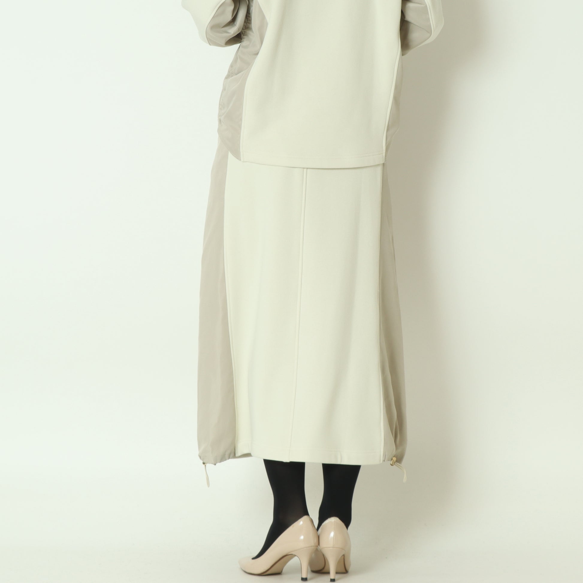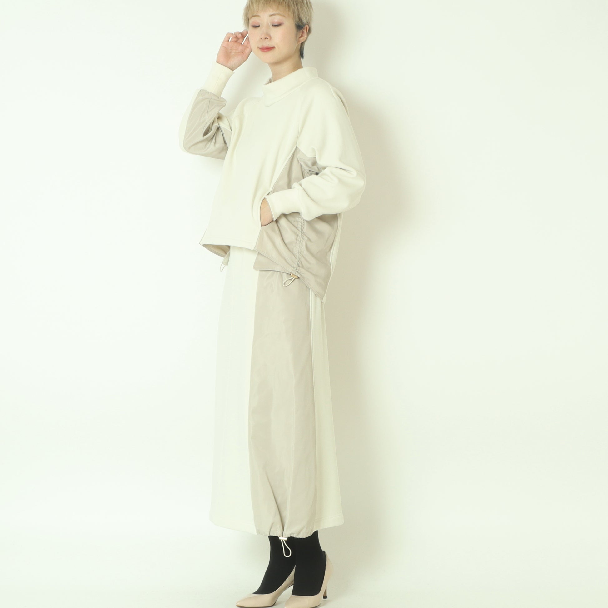サイドにナイロン素材がドッキングされたスウェットスカート。