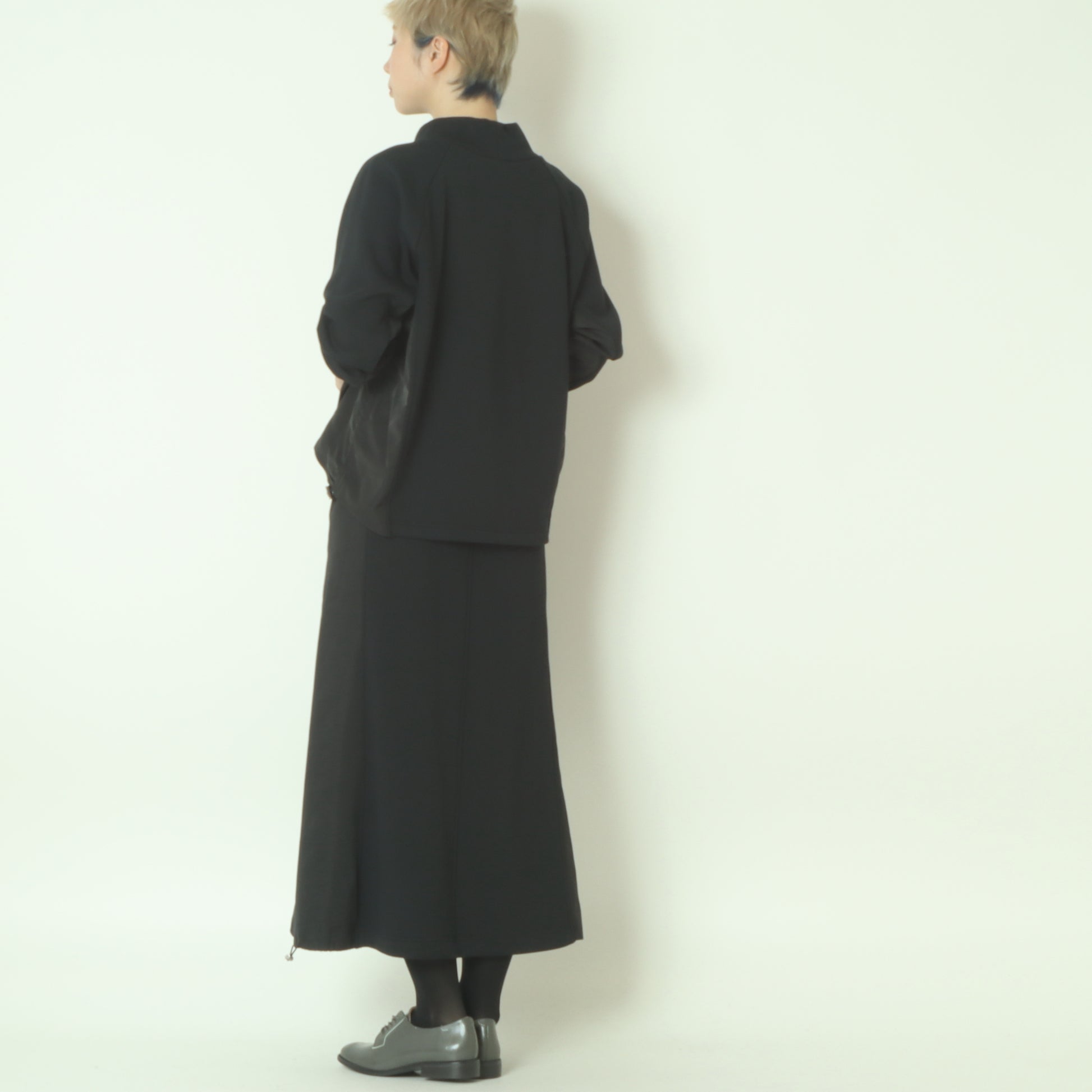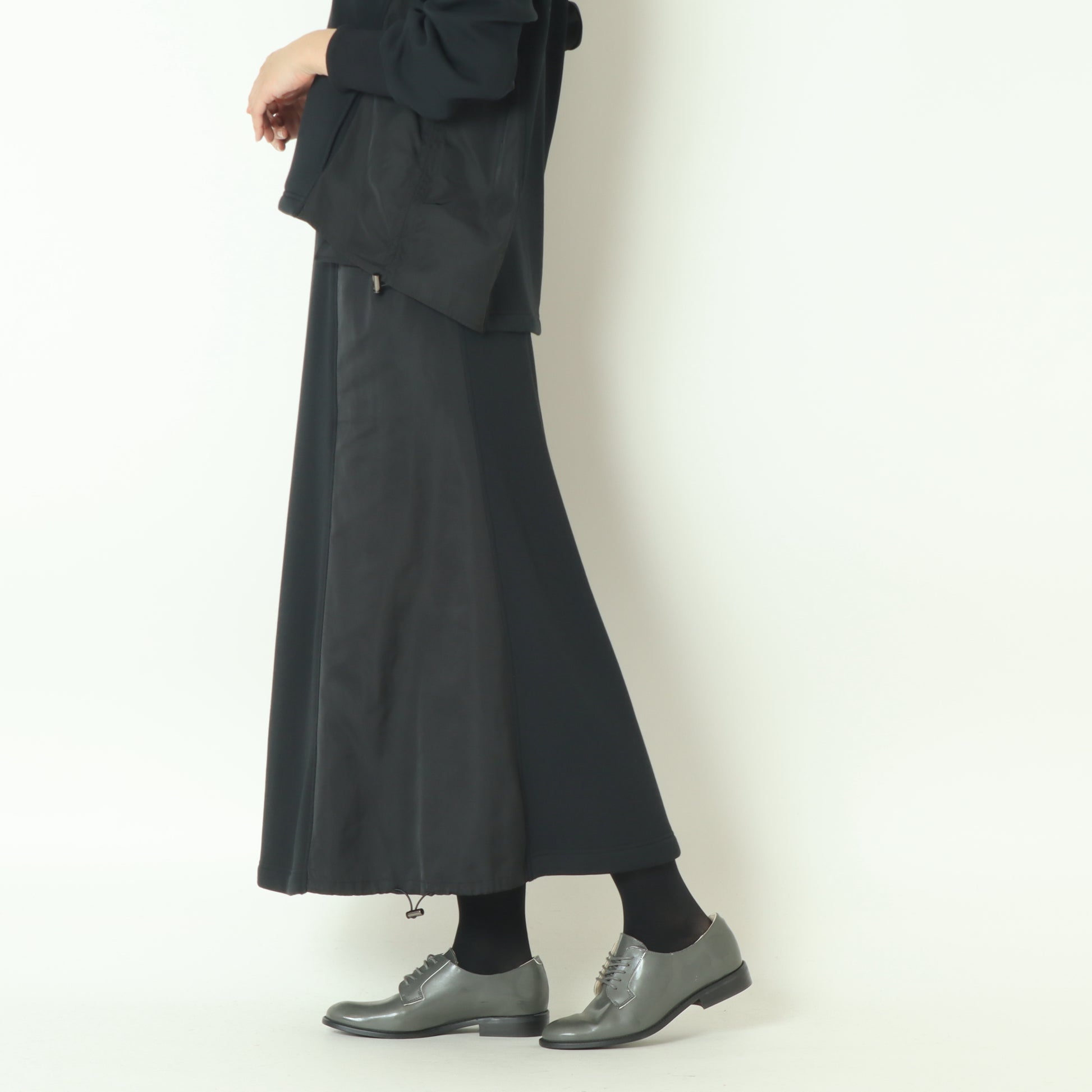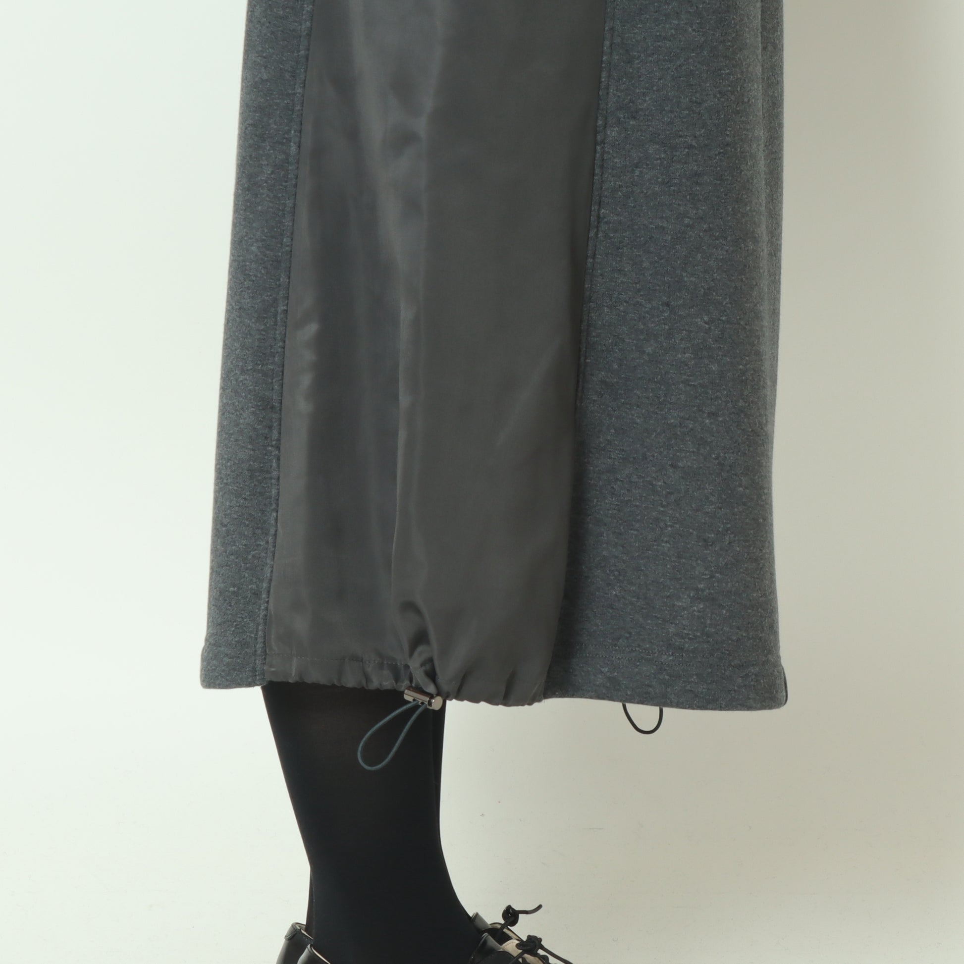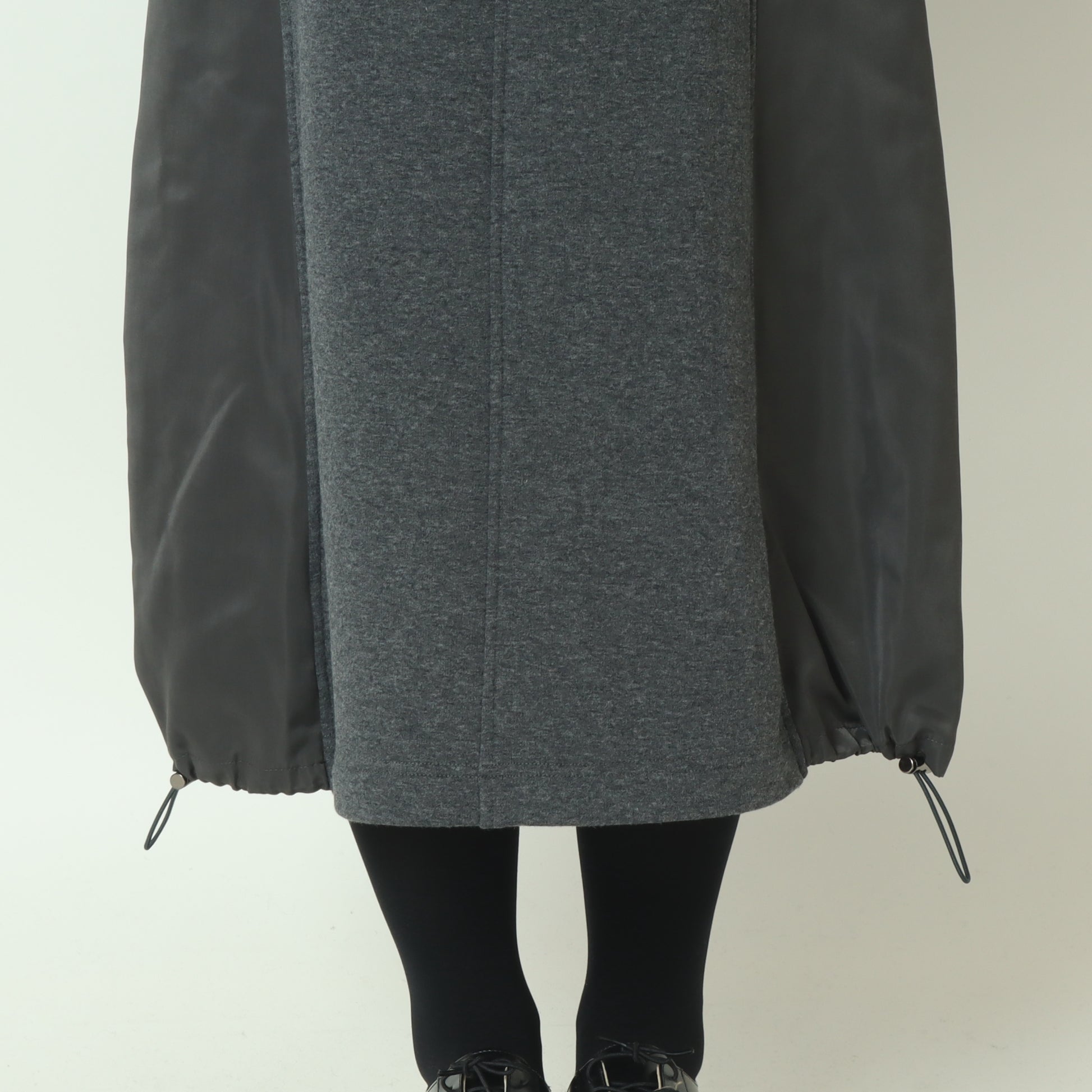 サイドにナイロン素材がドッキングされたスウェットスカート。