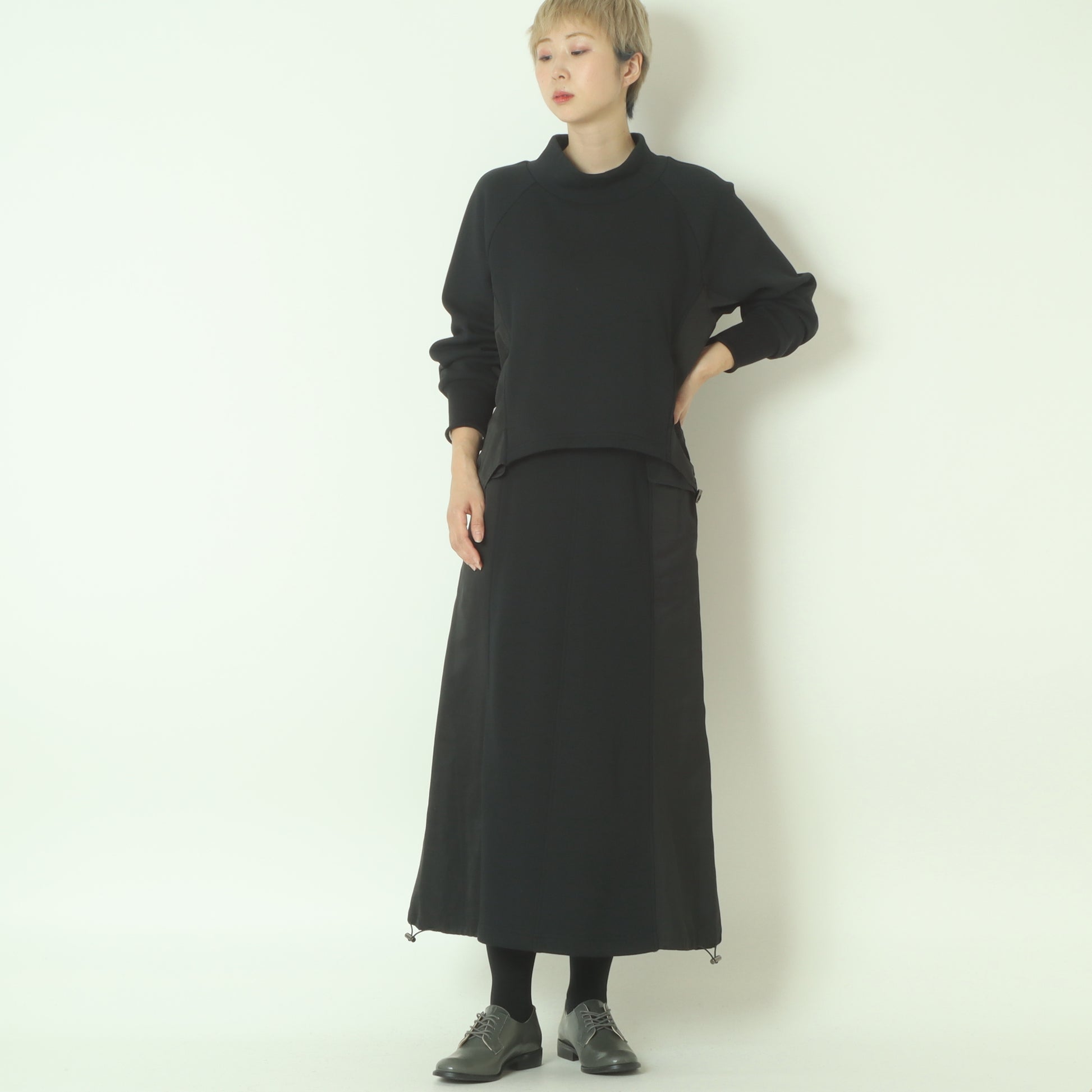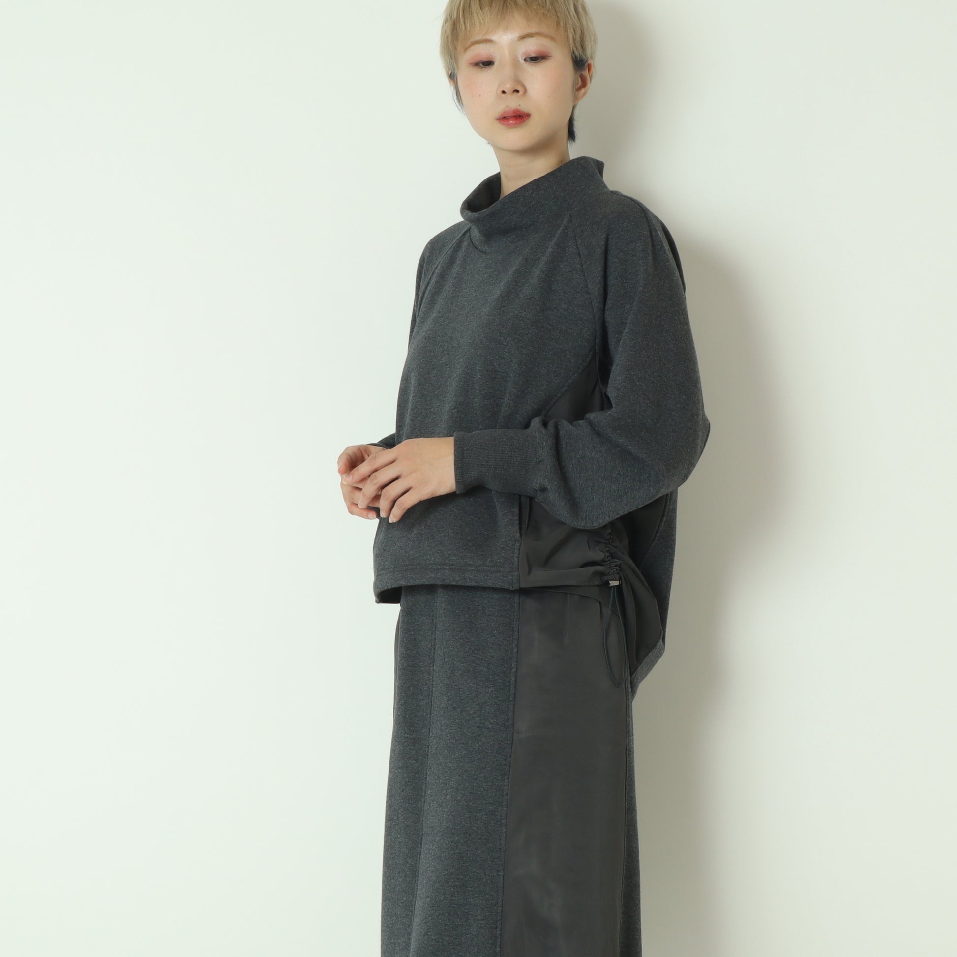 裾のドロストを調節することで、様々なシルエットで着ていただけます。
