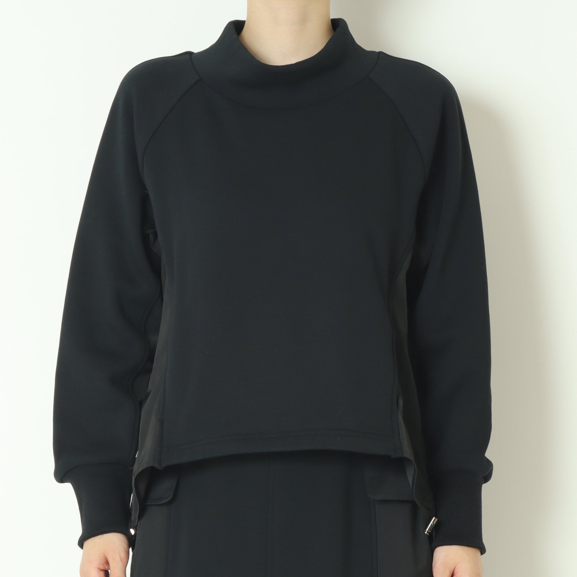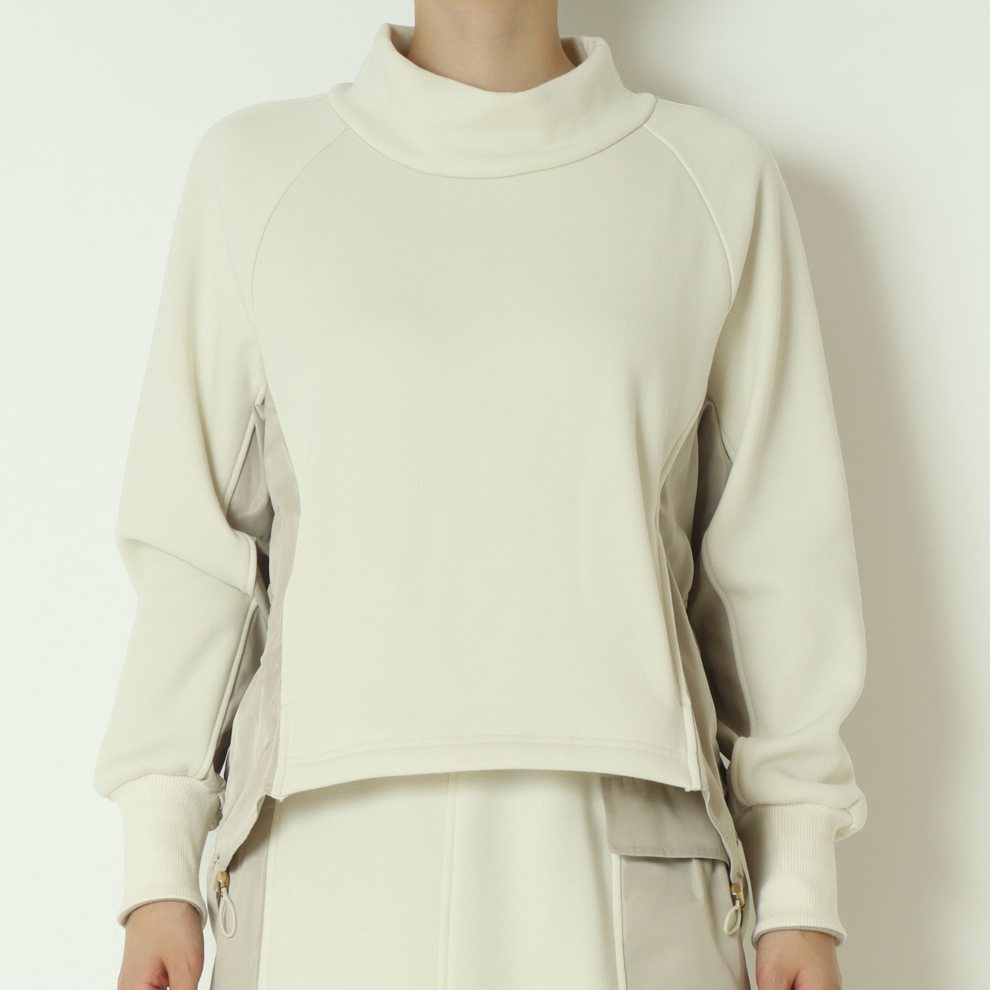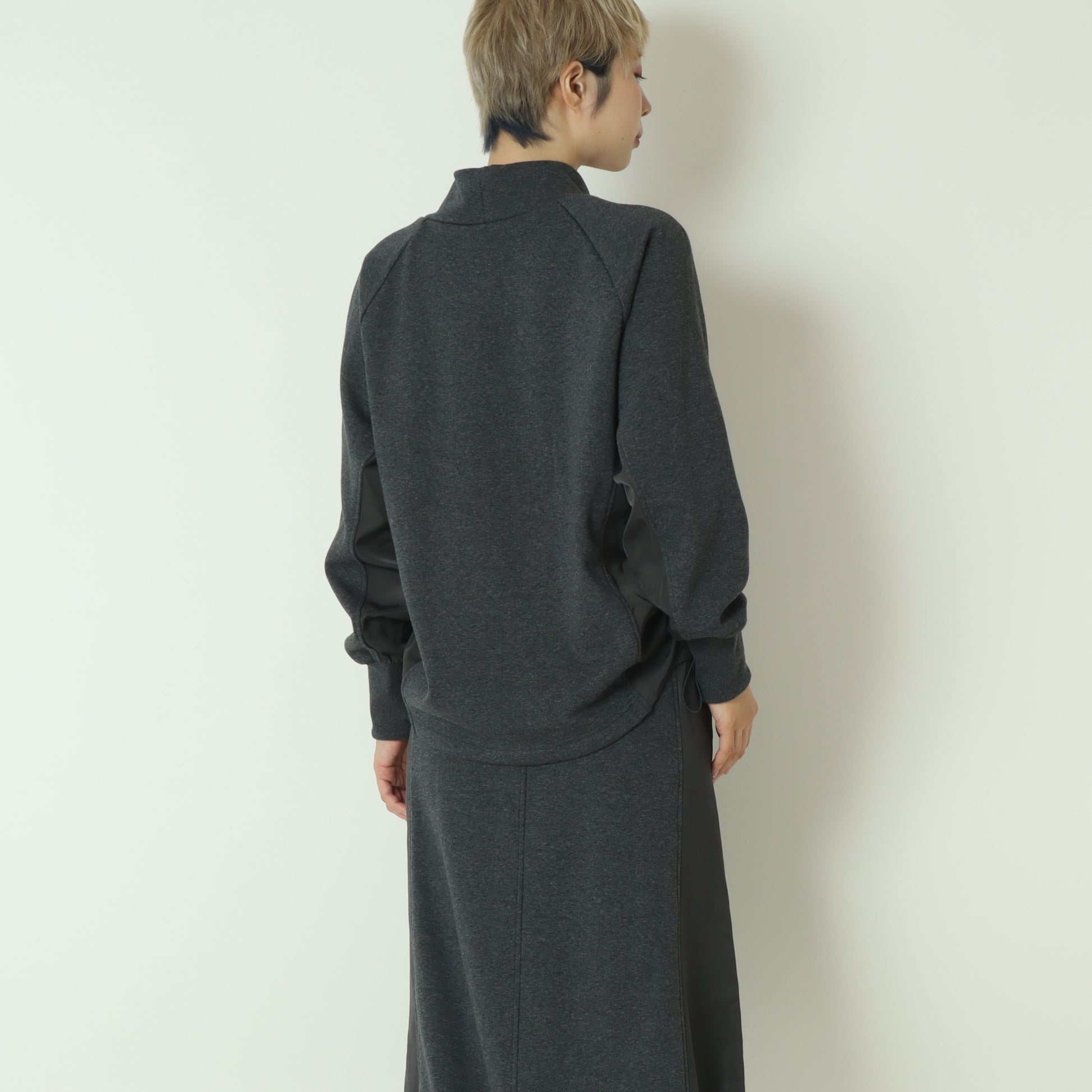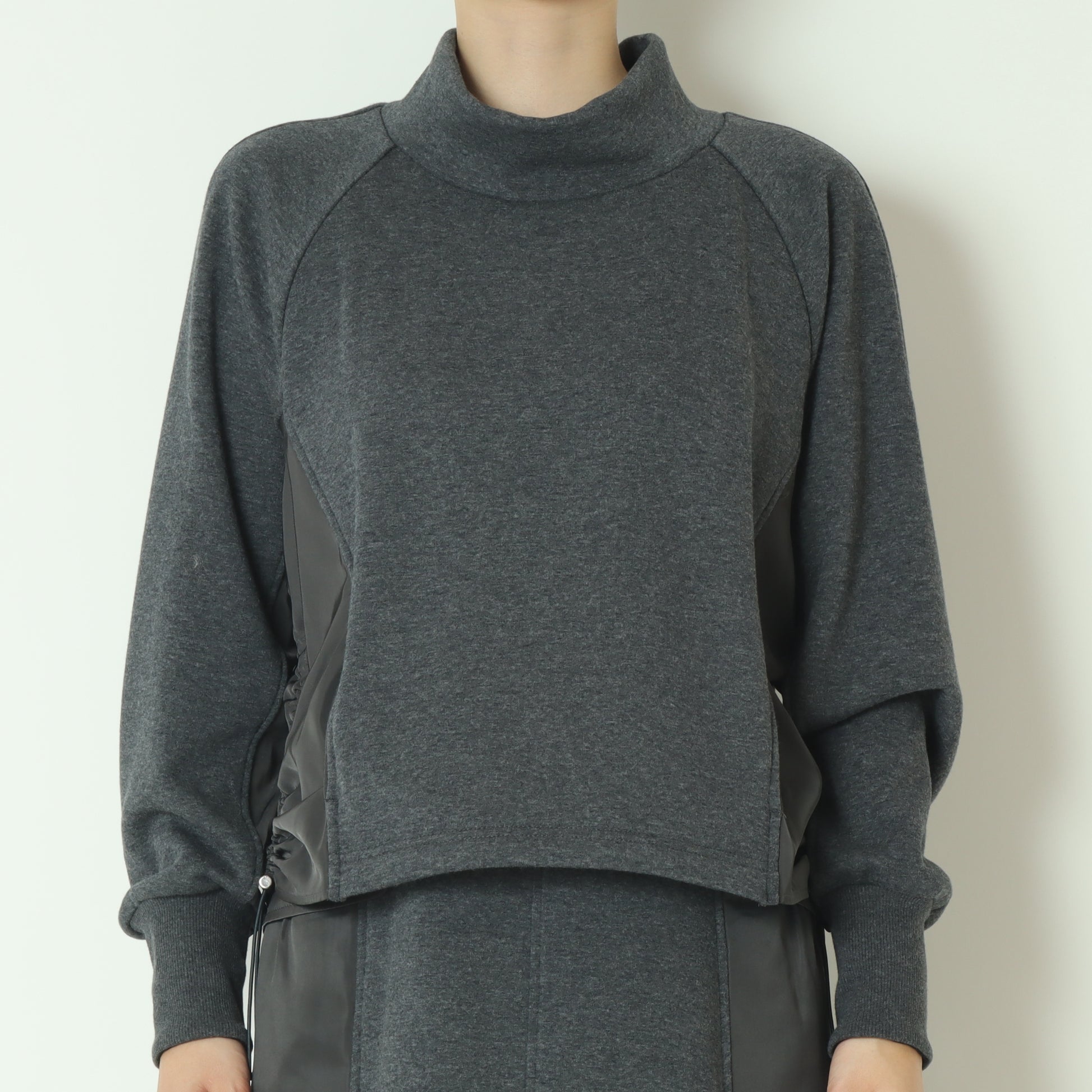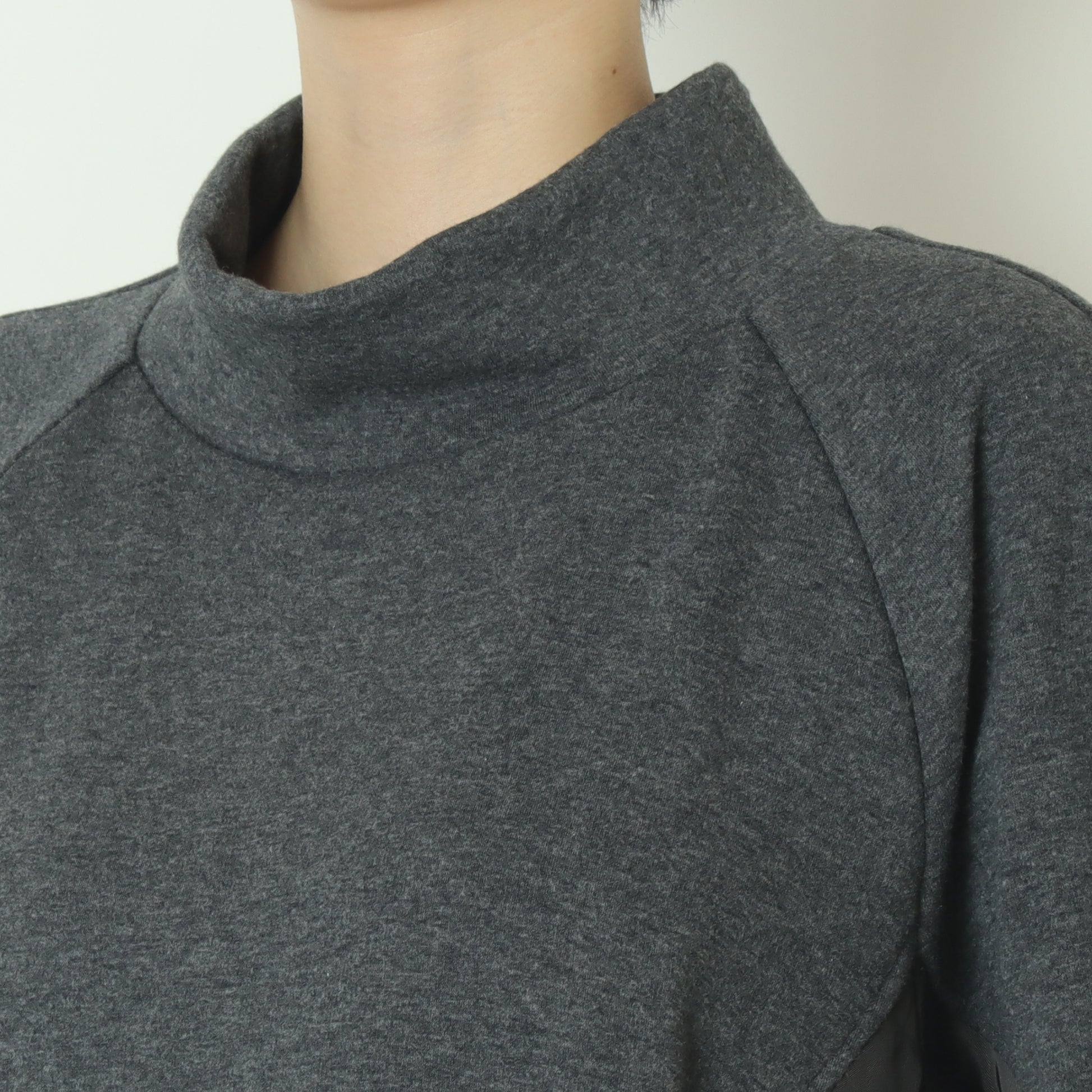 サイドにナイロン素材がドッキングされたスウェットプルオーバー。
