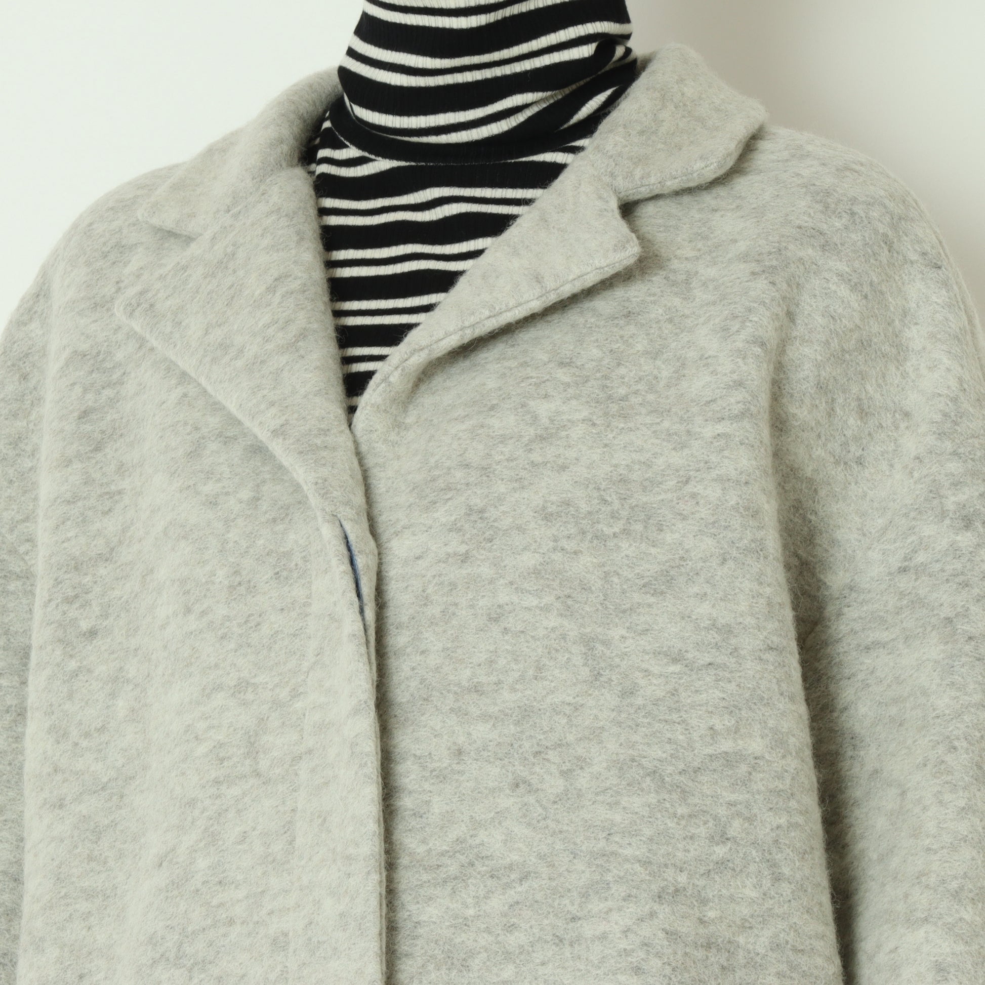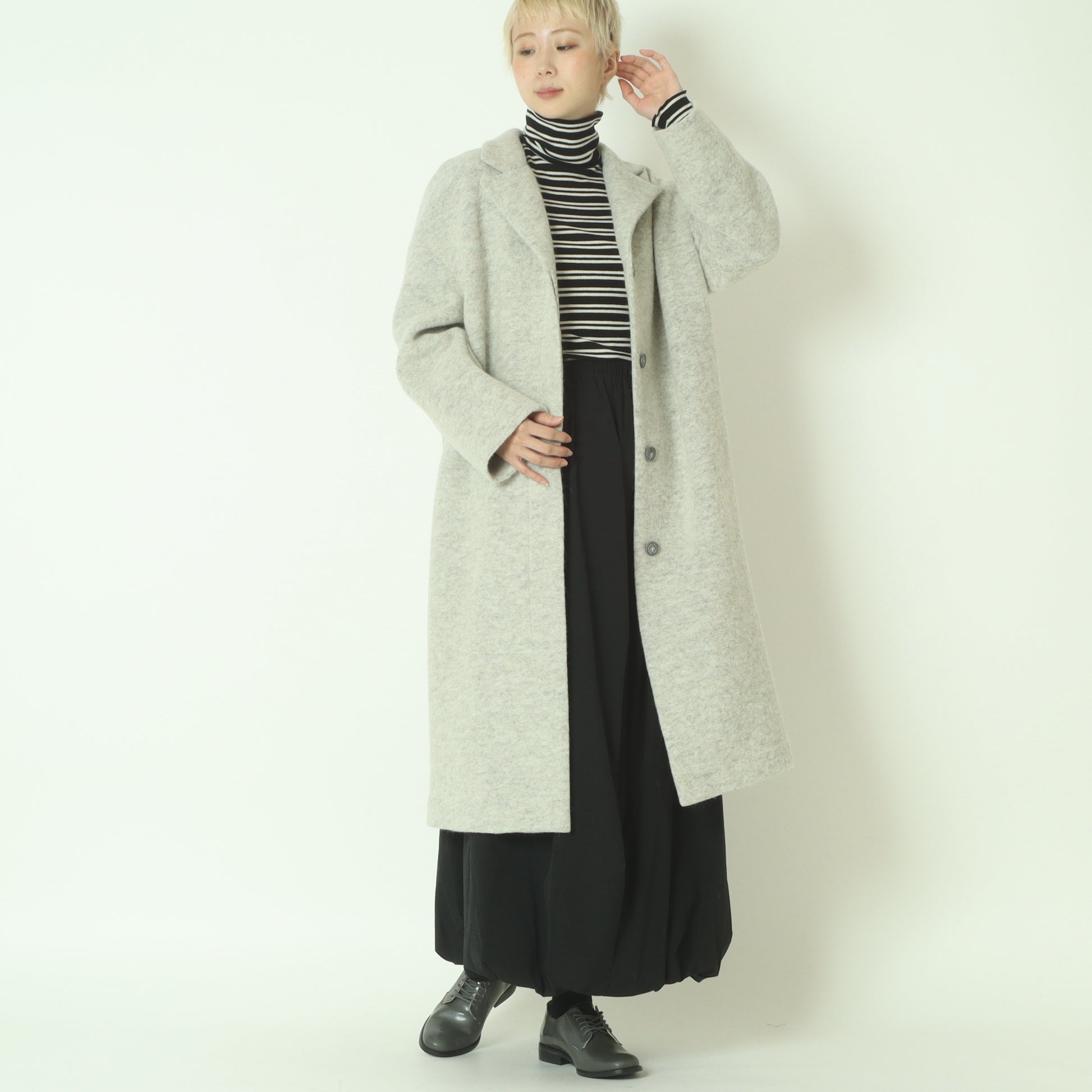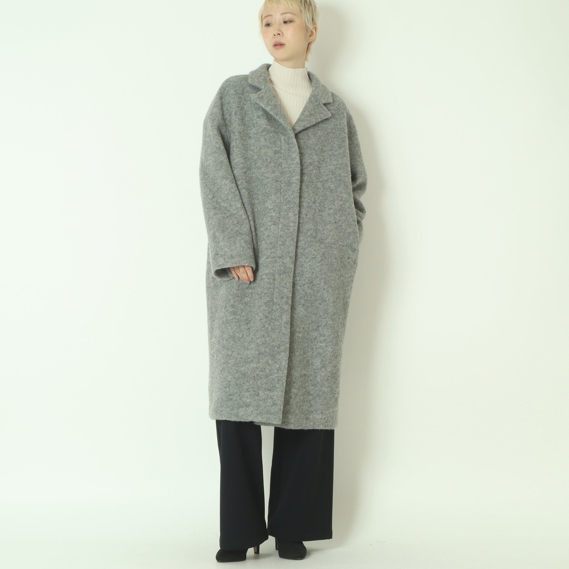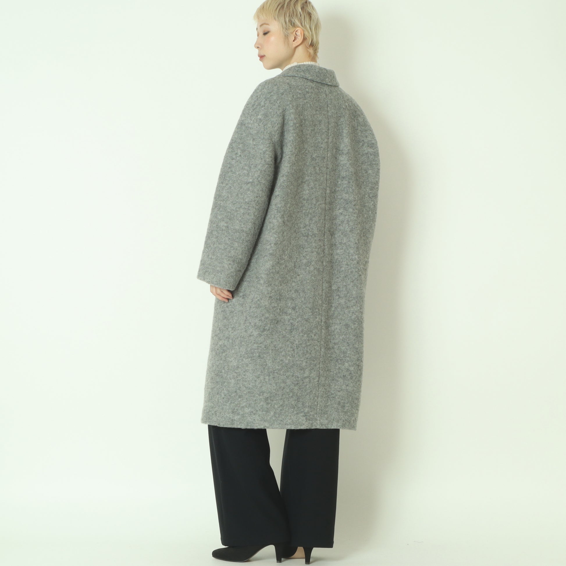柔らかなウール混紡素材を贅沢に使用したコクーンシルエットのロングコート。