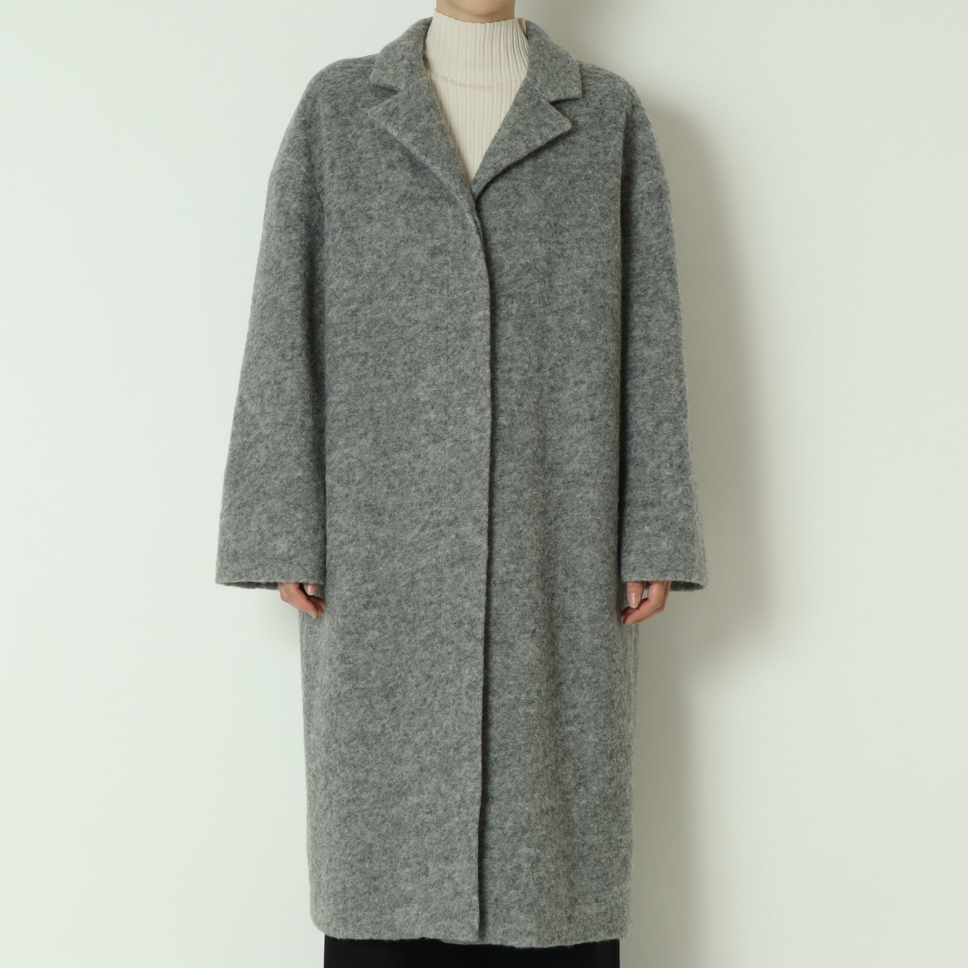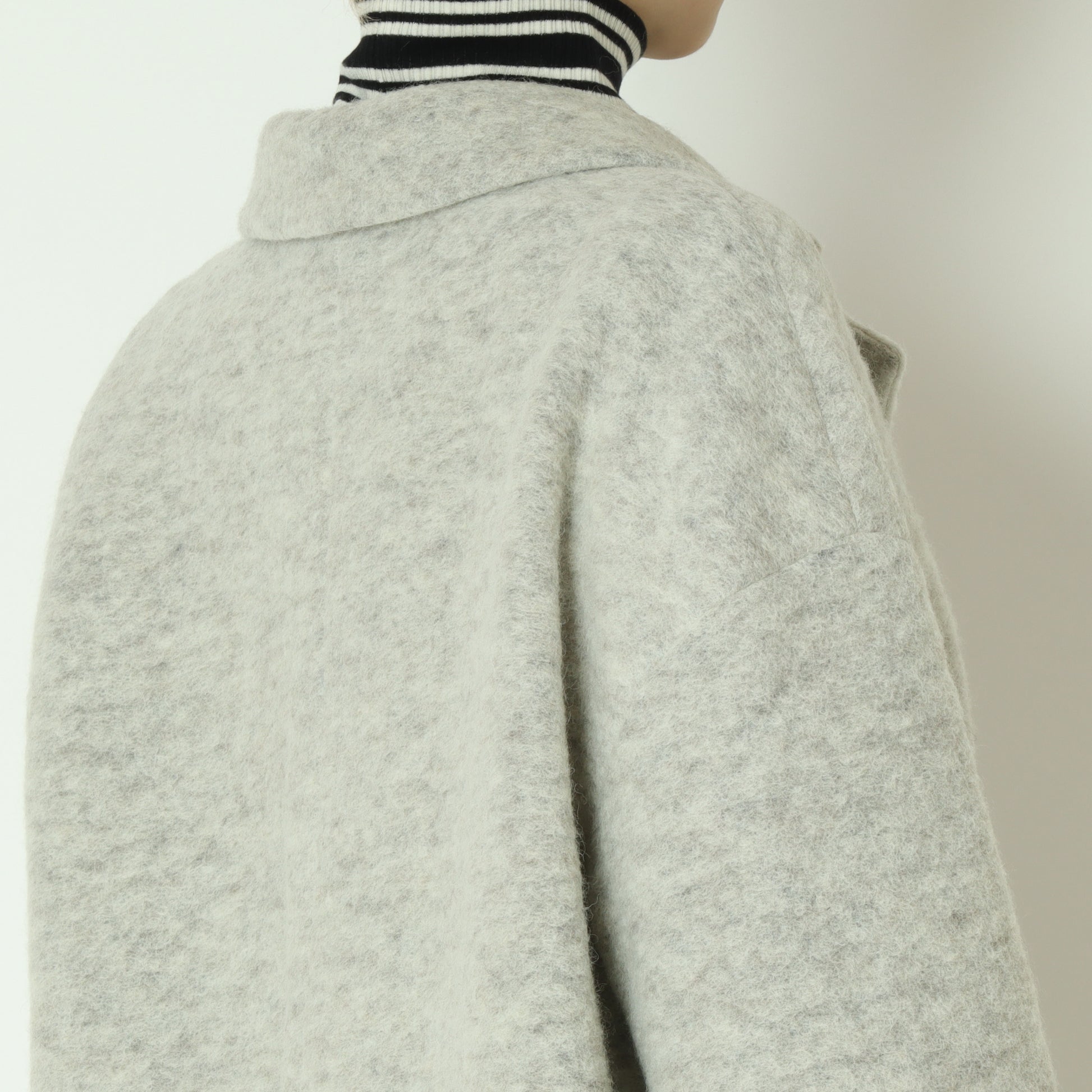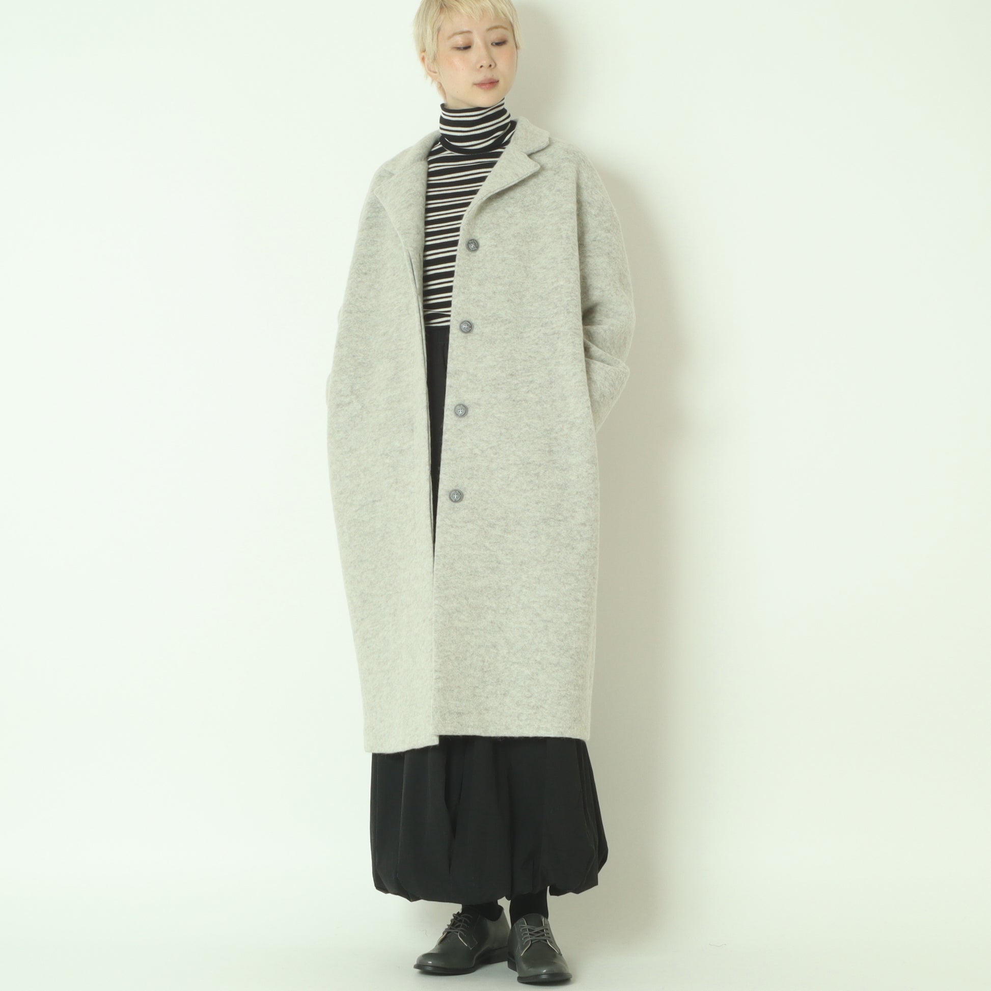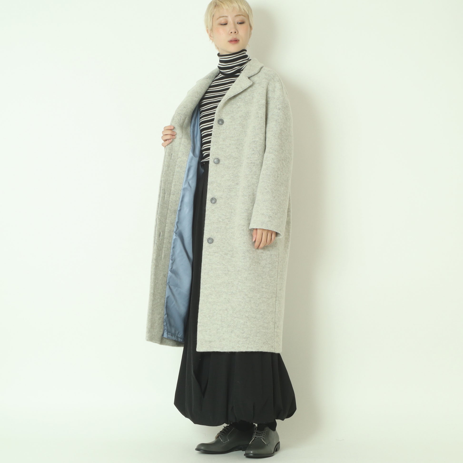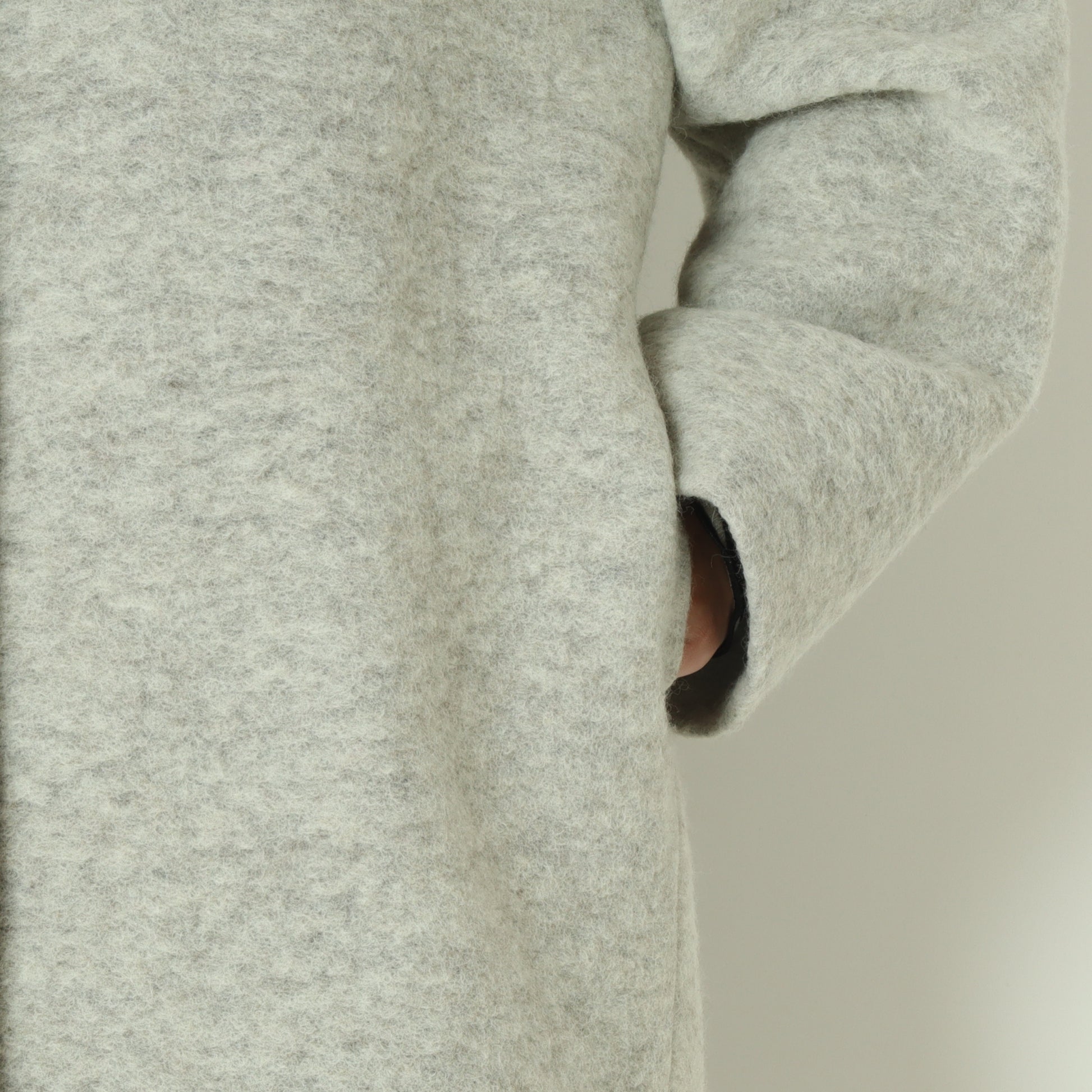 柔らかなウール混紡素材を贅沢に使用したコクーンシルエットのロングコート。