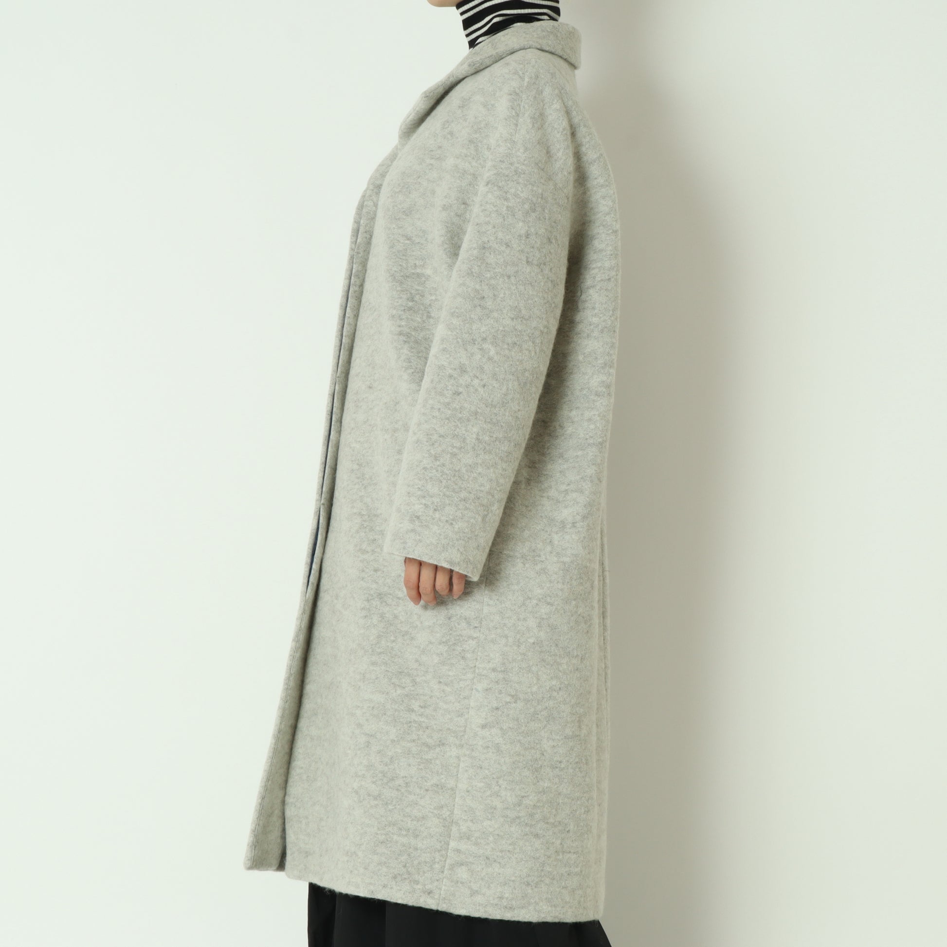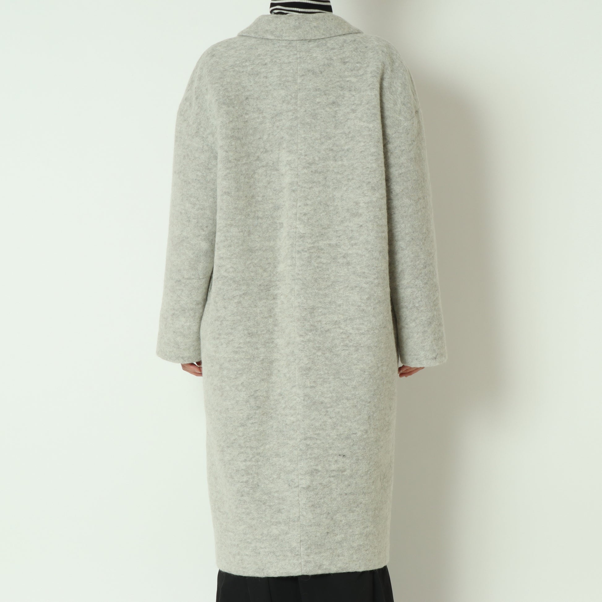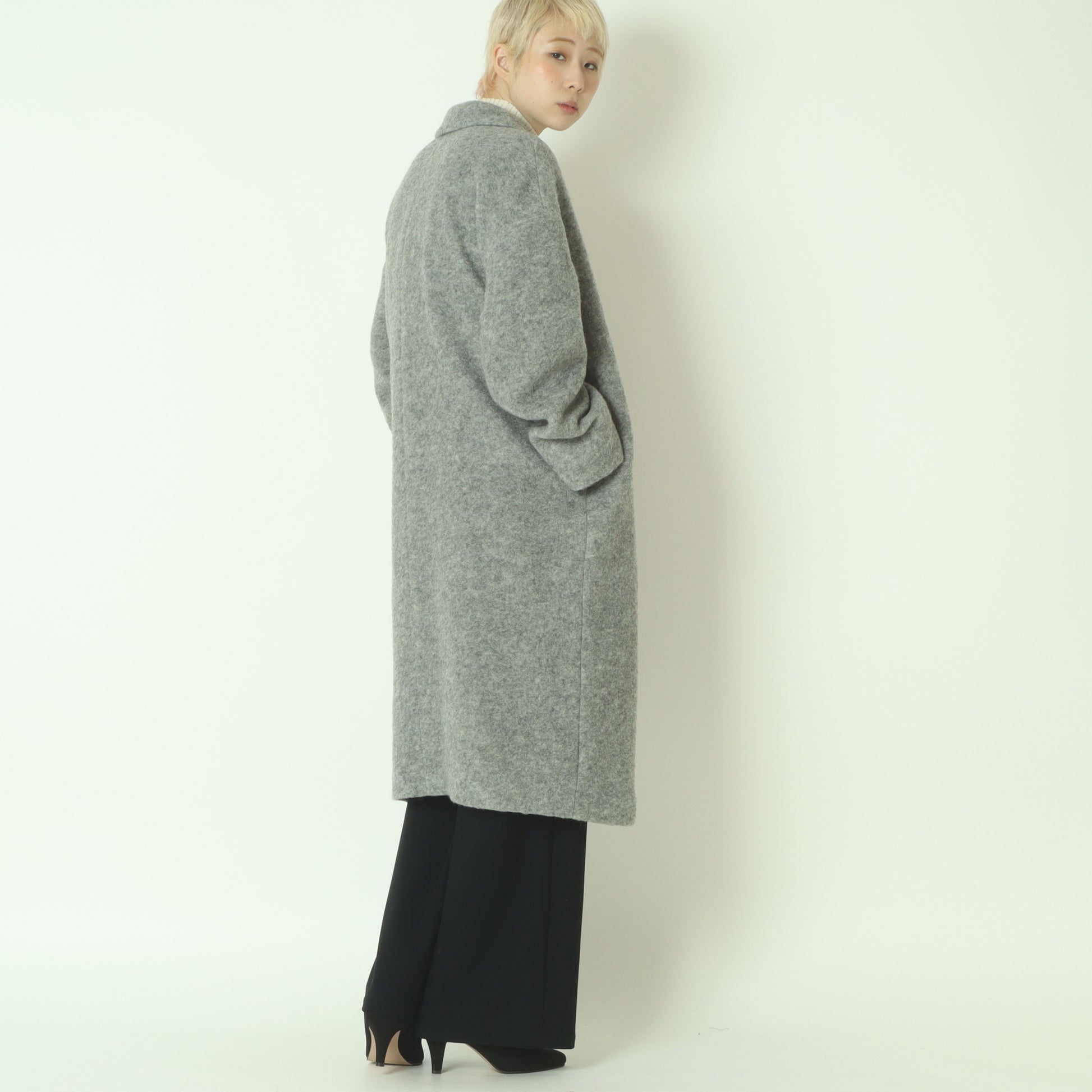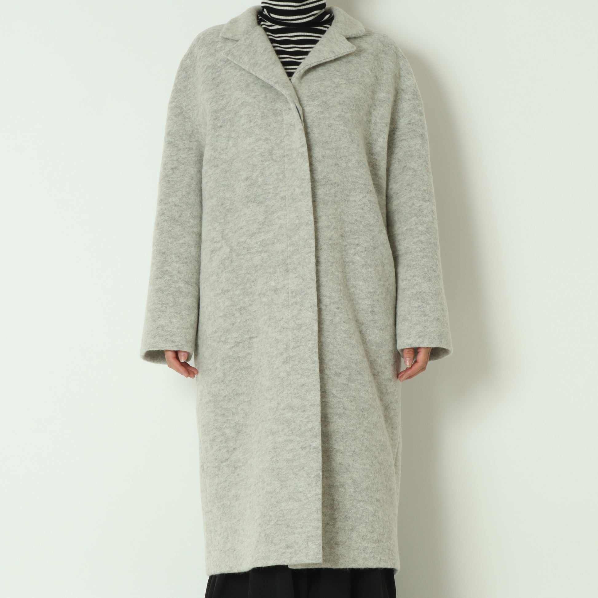 柔らかなウール混紡素材を贅沢に使用したコクーンシルエットのロングコート。