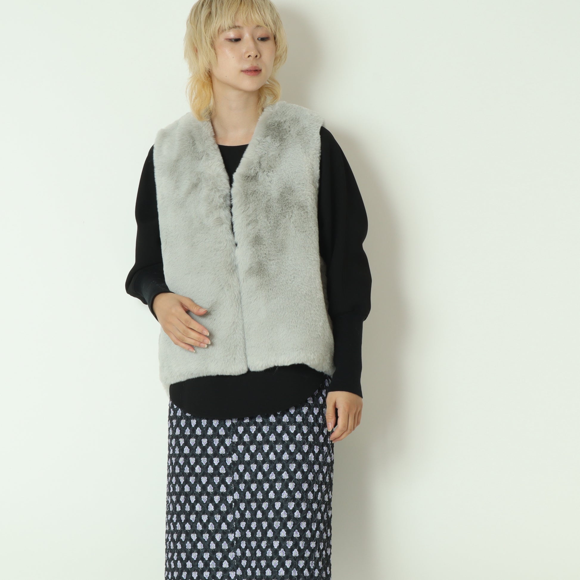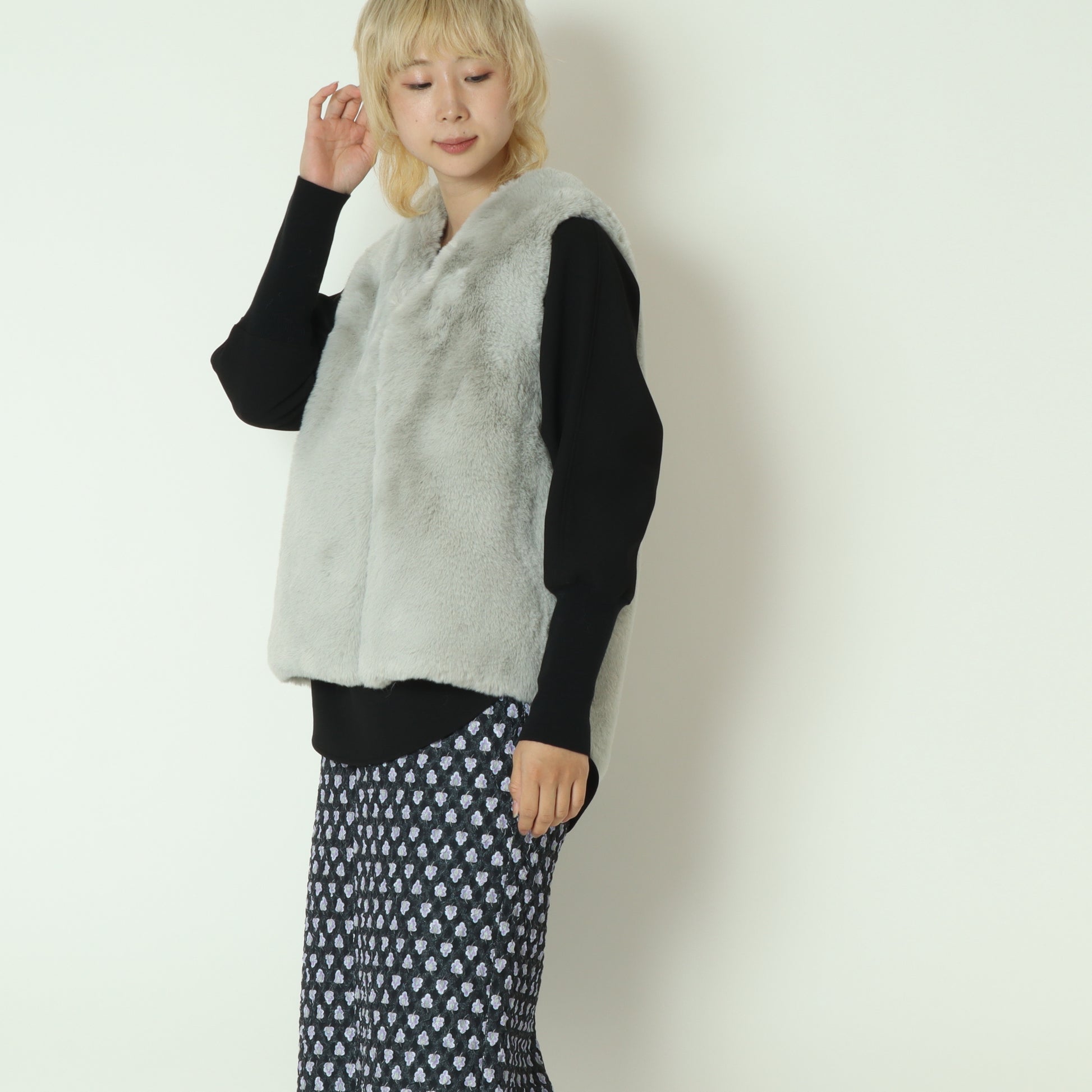 ロンティーに、ワンピースに、スカートに、コーデ問わずさっとプラスでき、上品で高級感のある印象に。