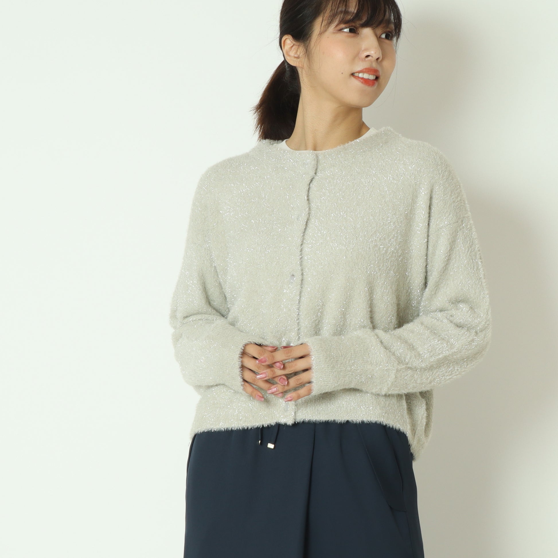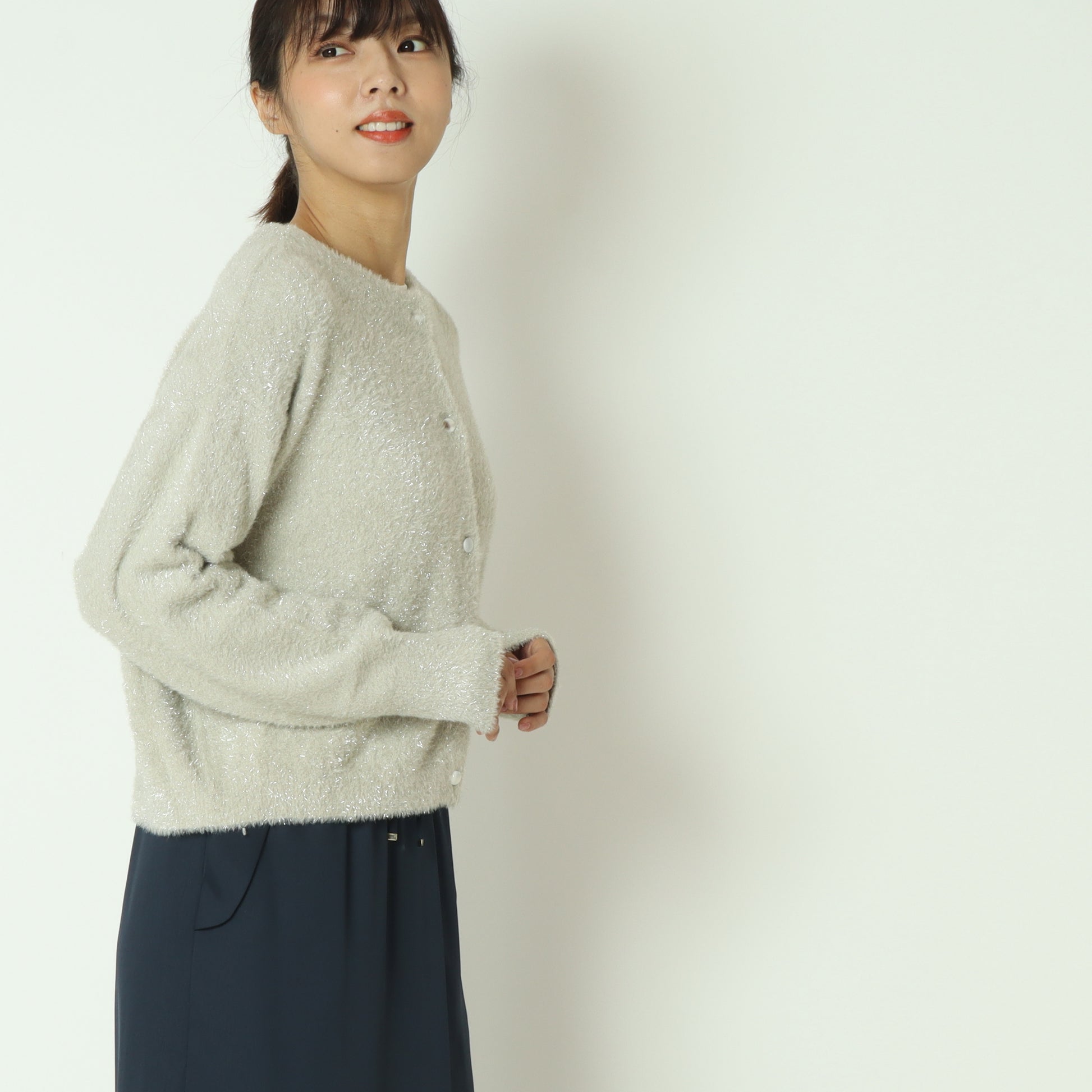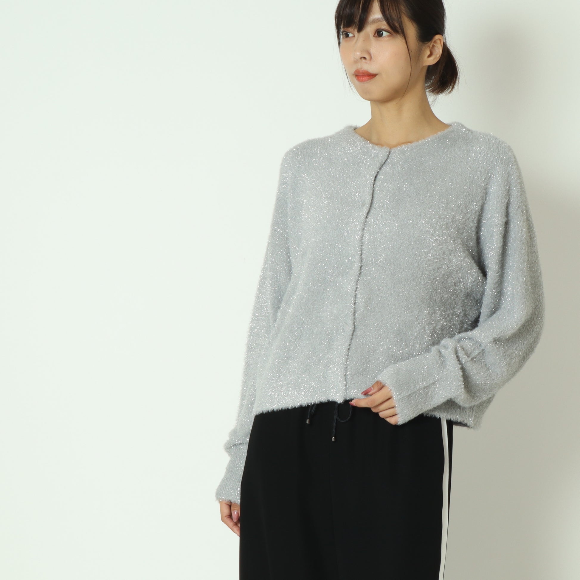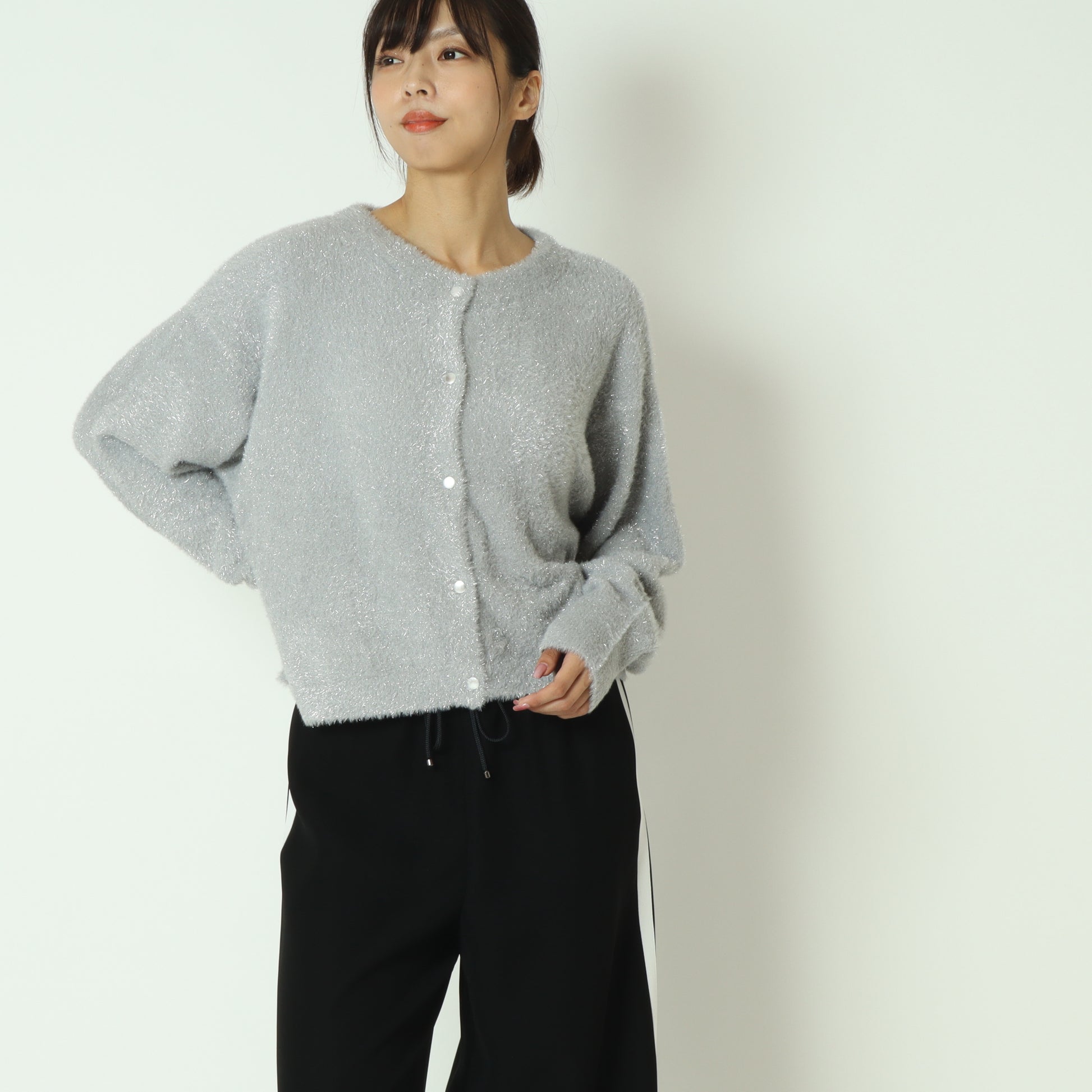 トレンド感のあるラメ&シャギーが特徴のカーディガン。
