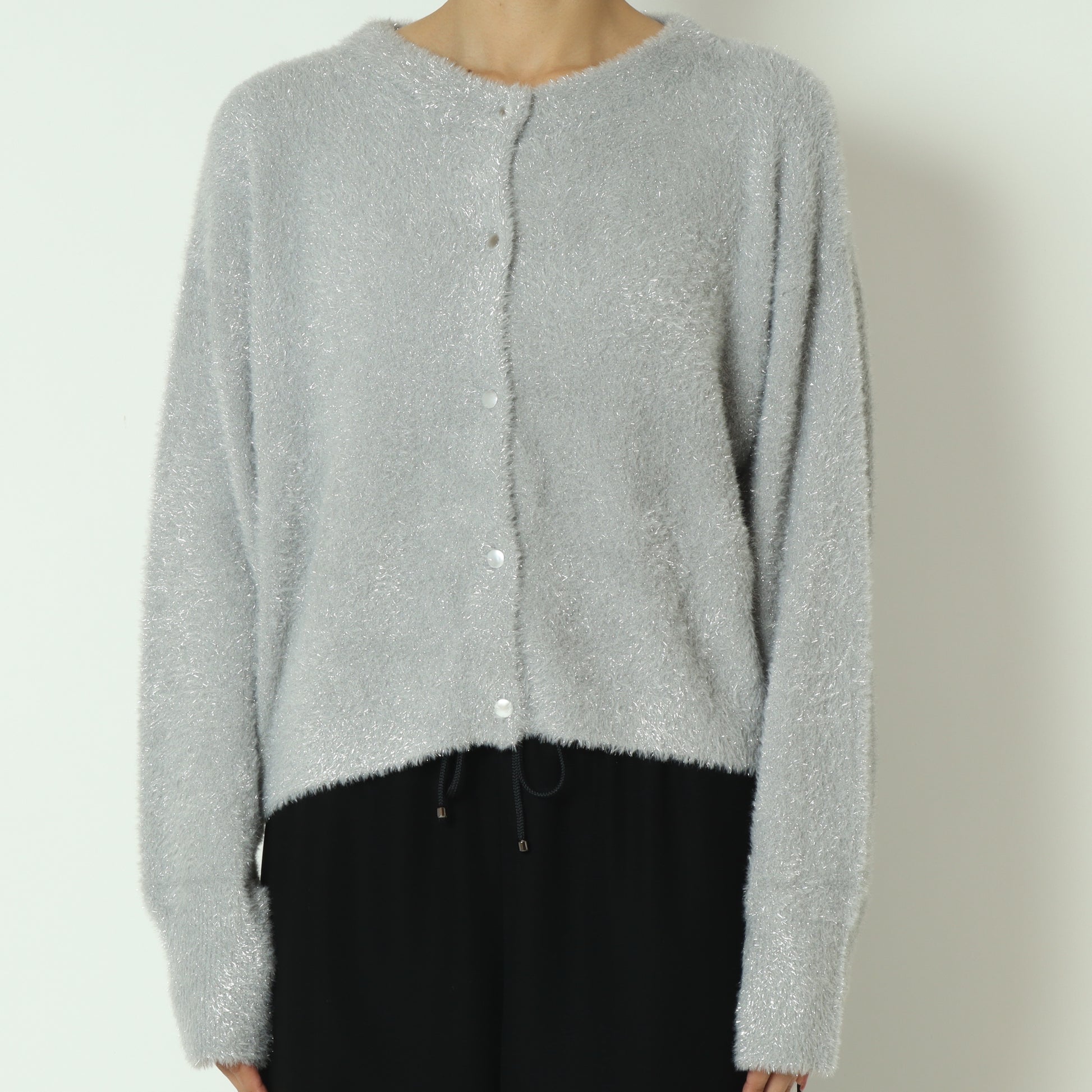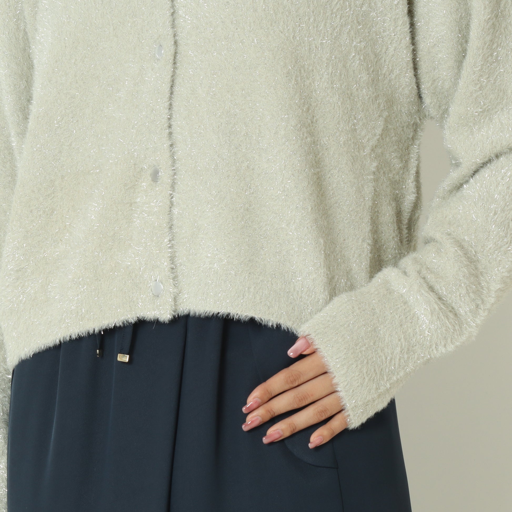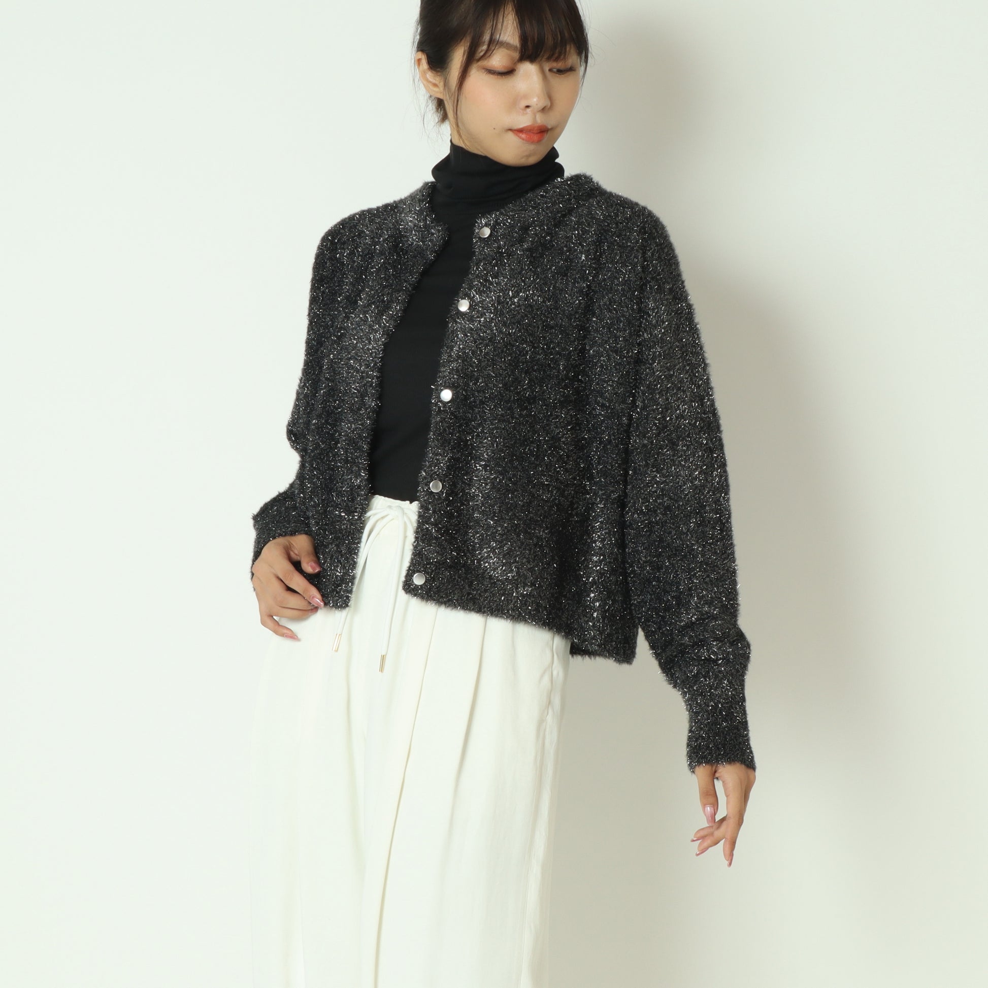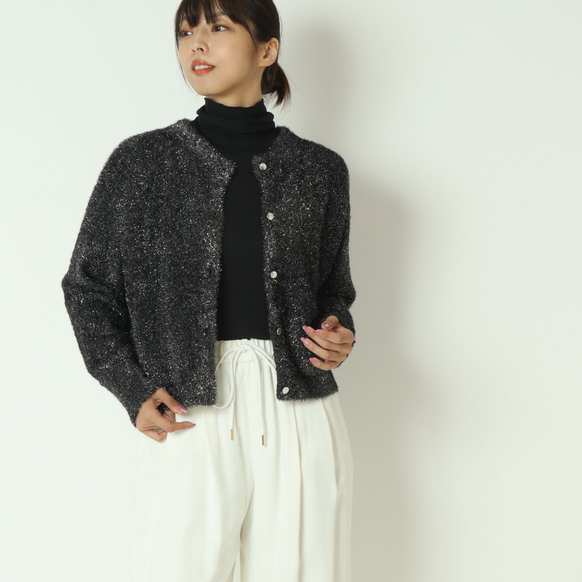 トレンド感のあるラメ&シャギーが特徴のカーディガン。