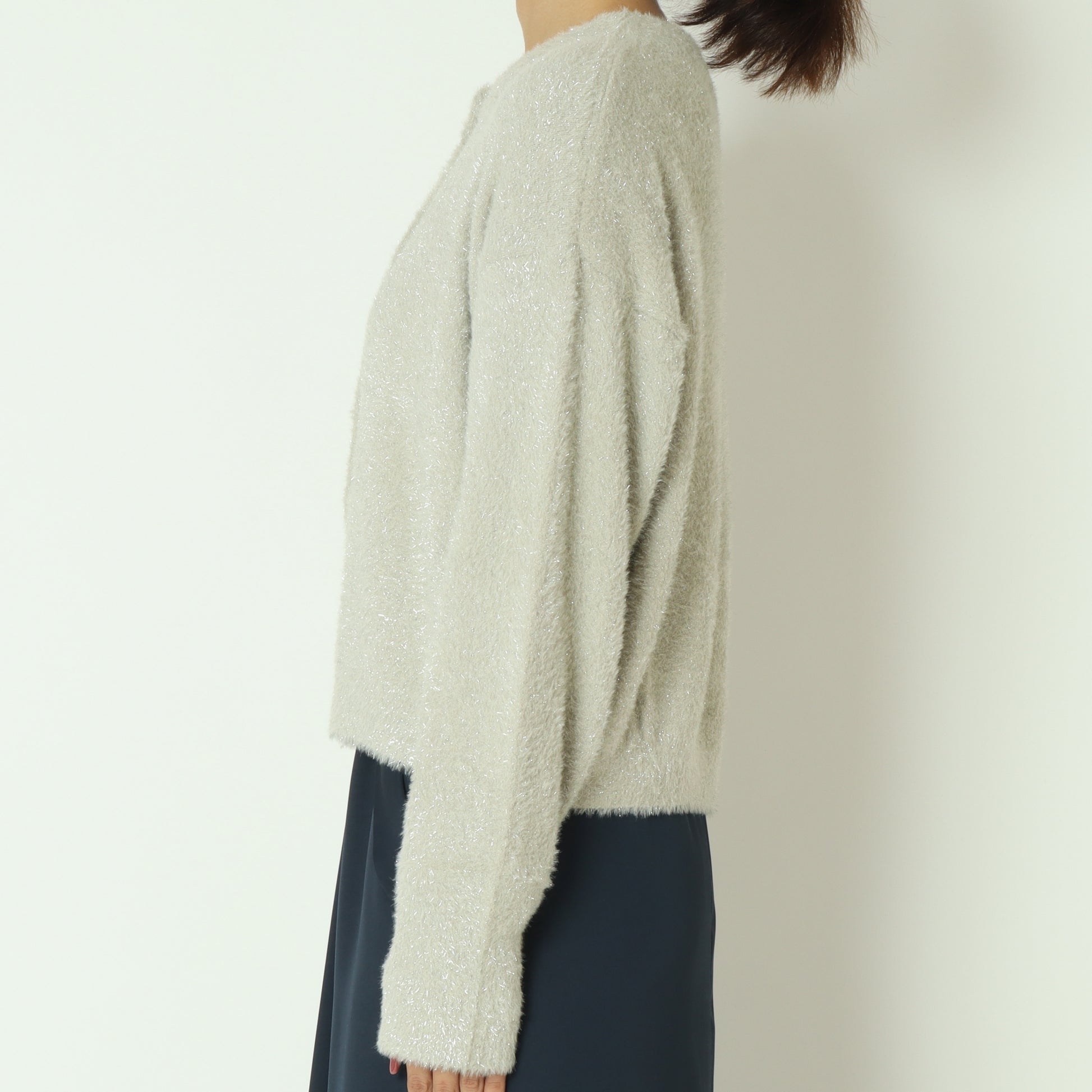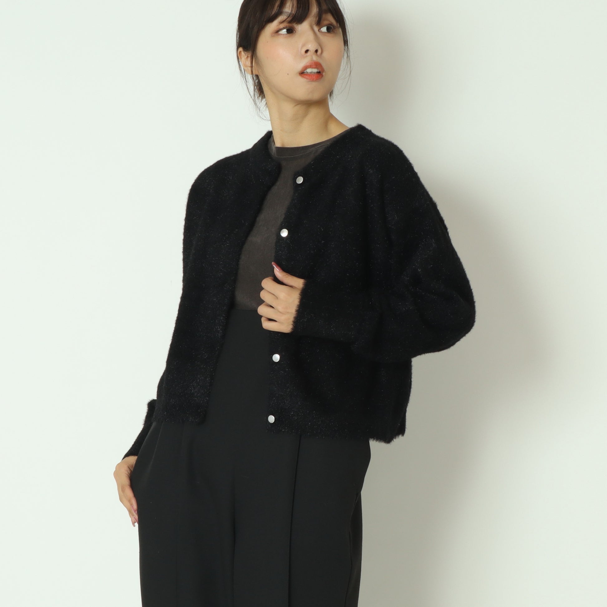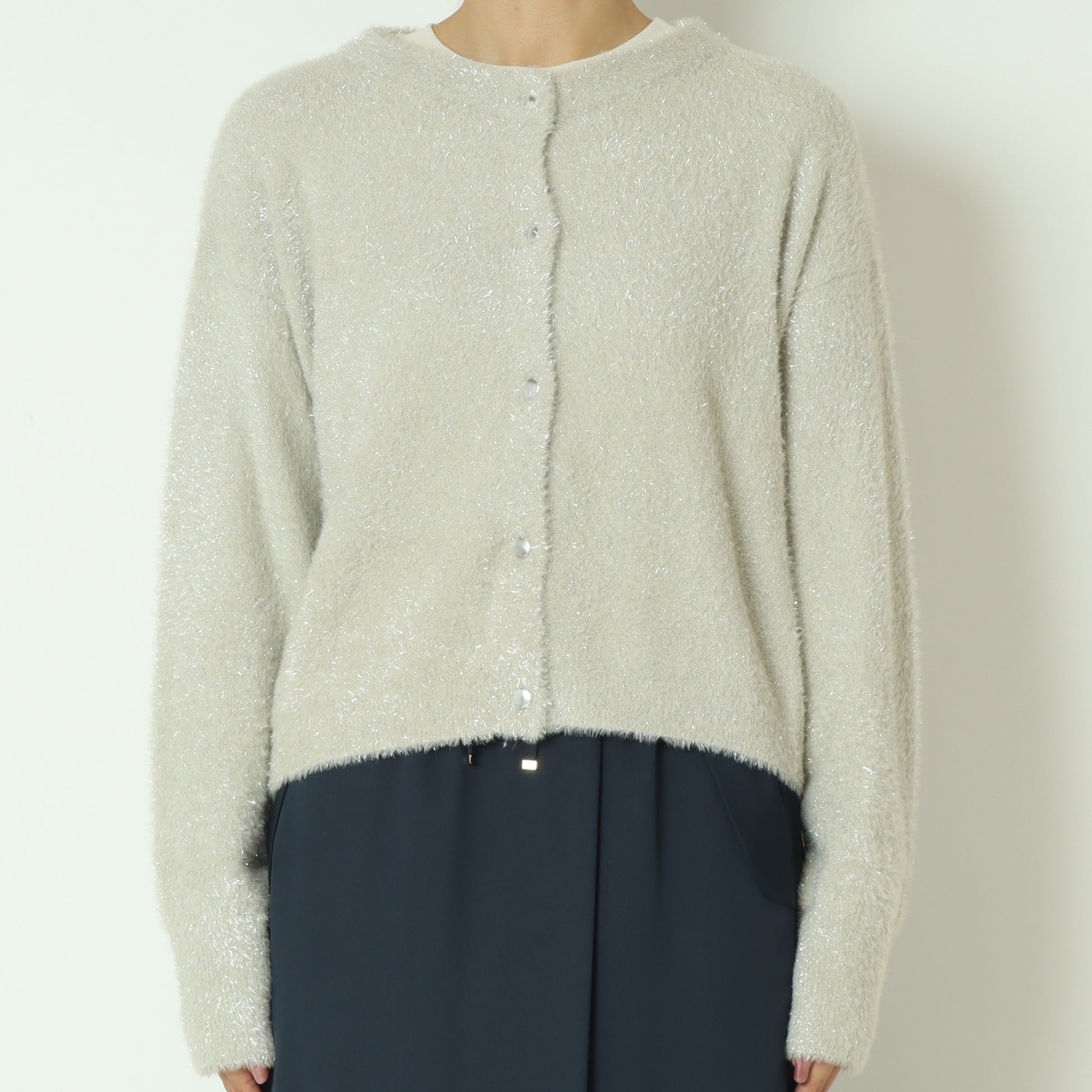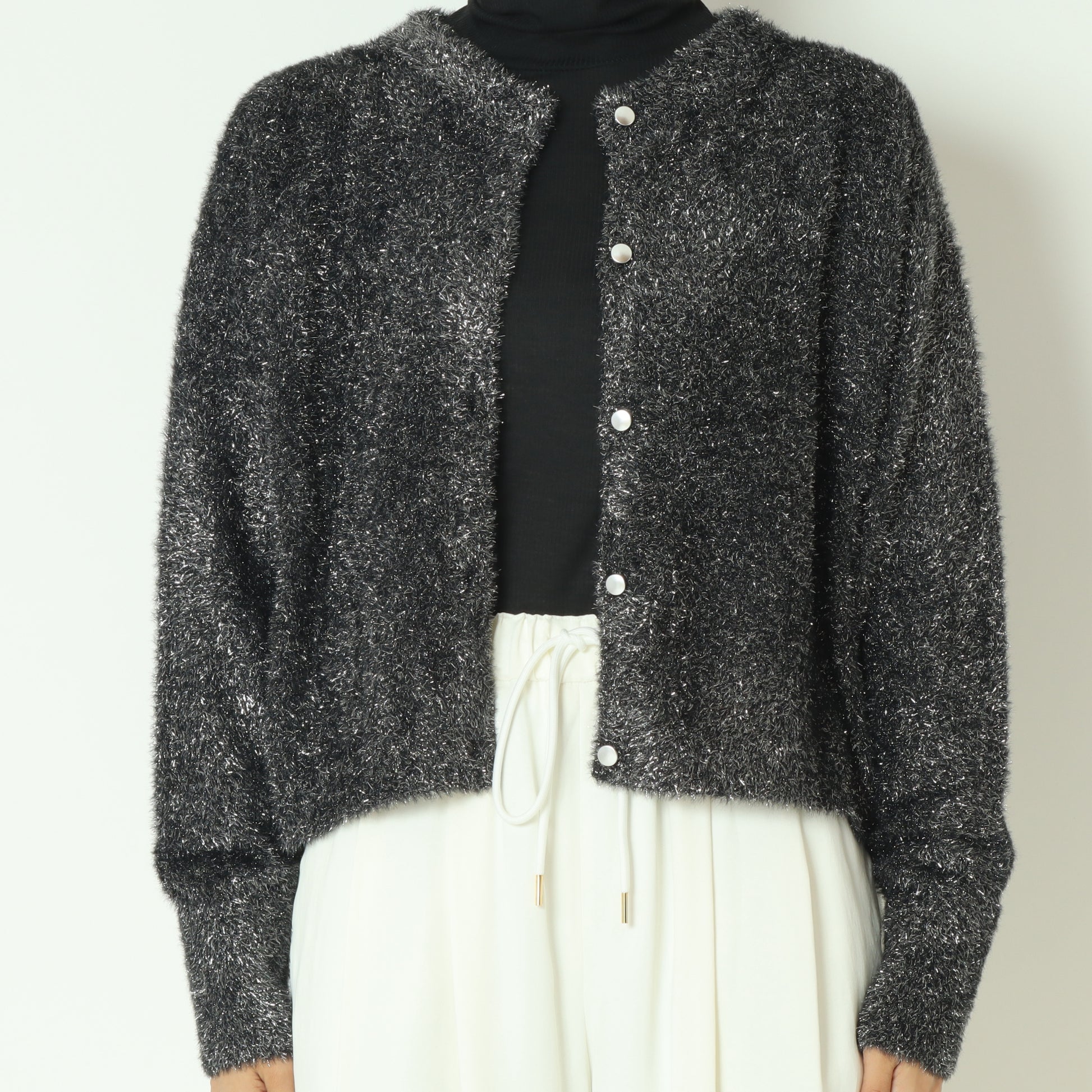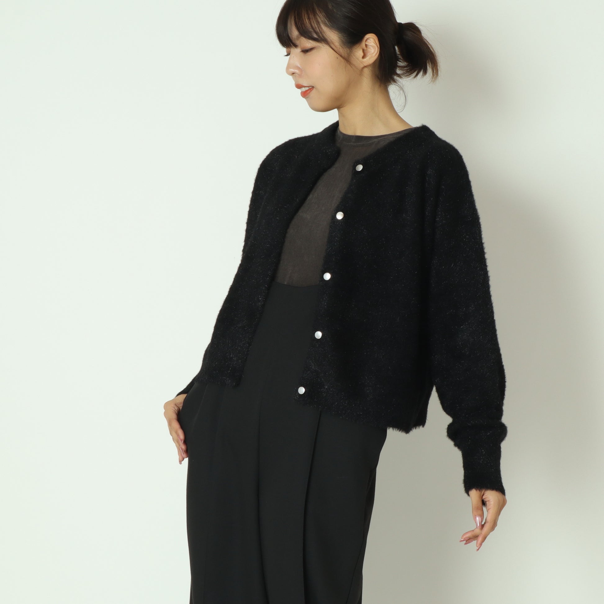 トレンド感のあるラメ&シャギーが特徴のカーディガン。
