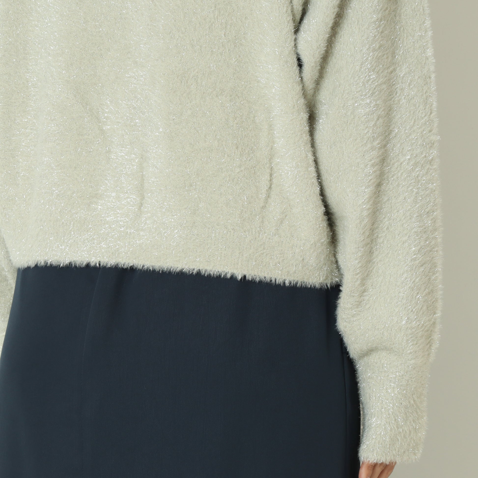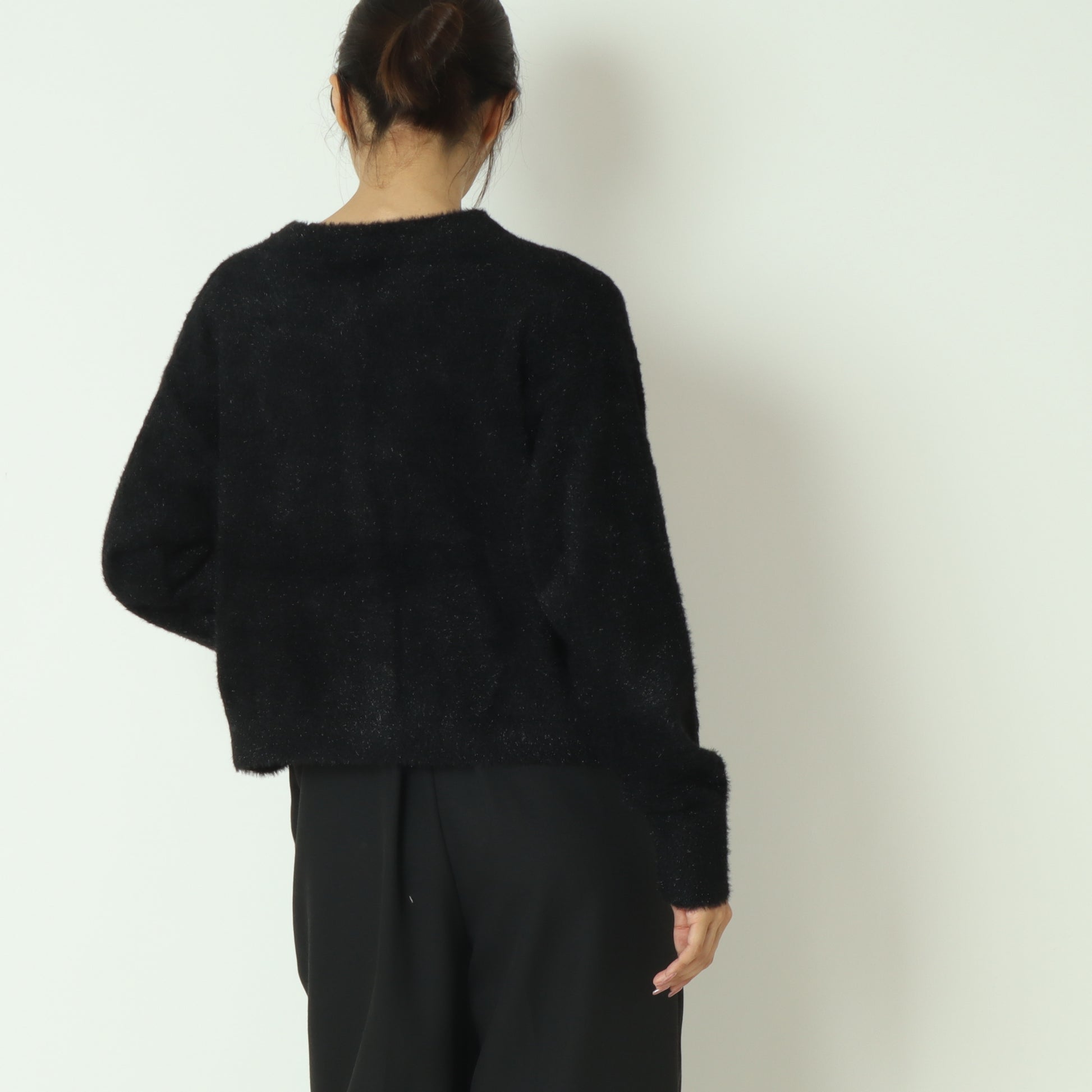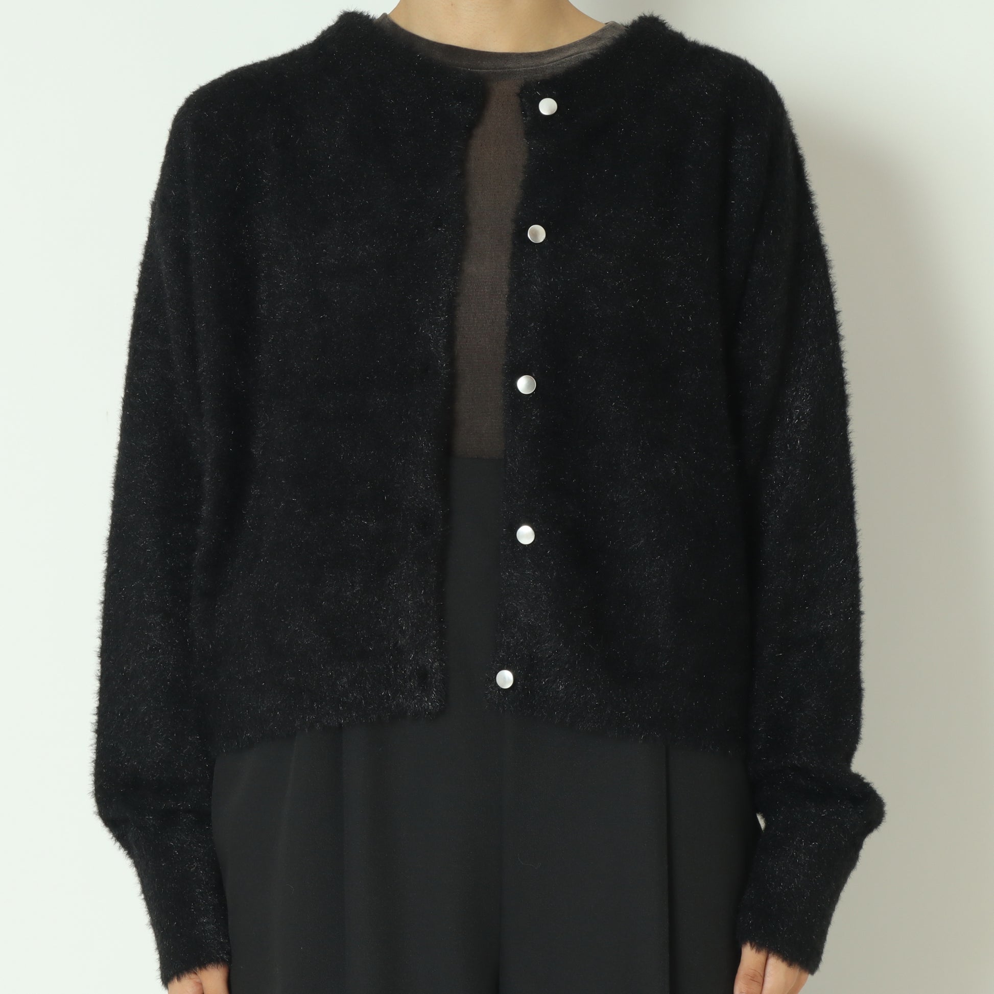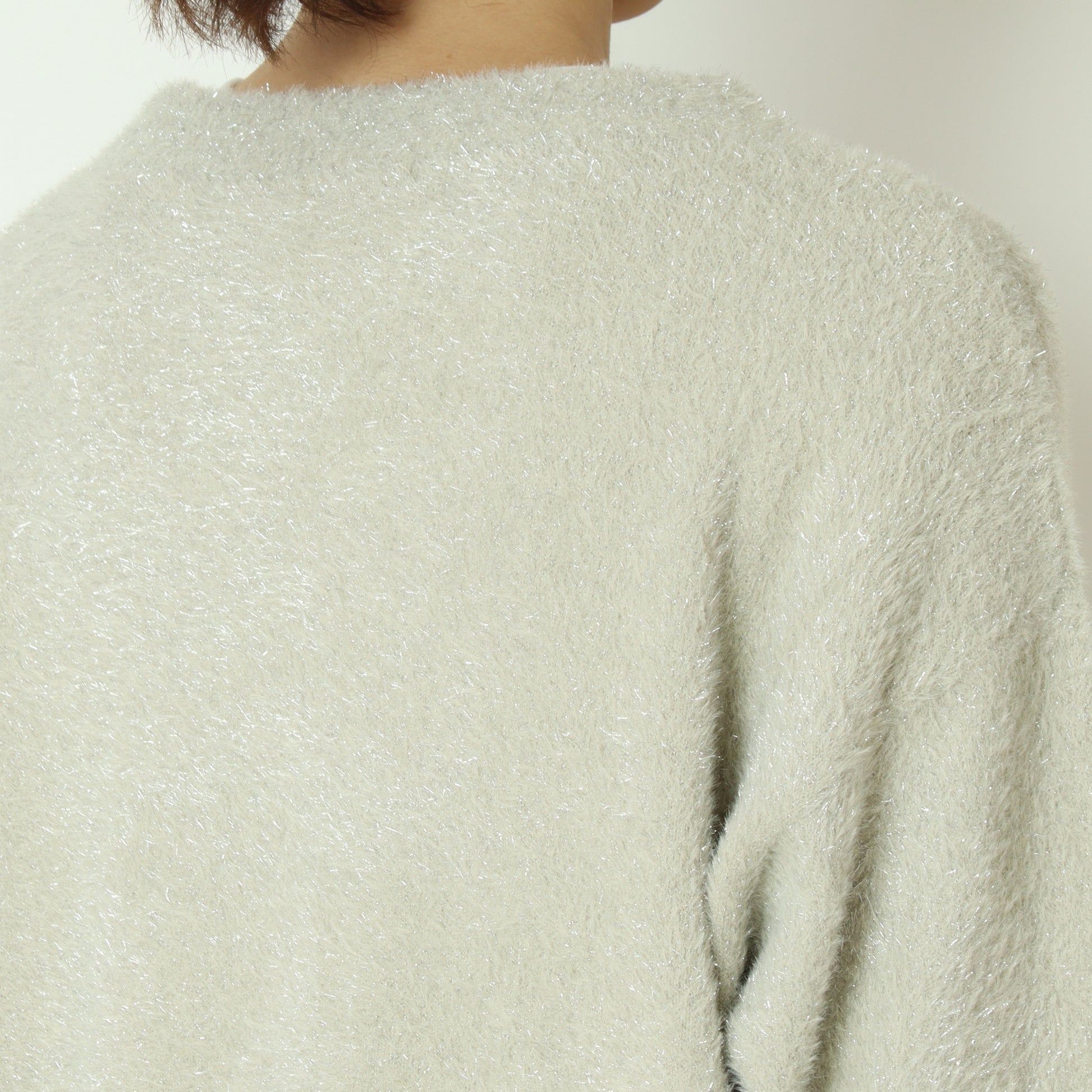 トレンド感のあるラメ&シャギーが特徴のカーディガン。