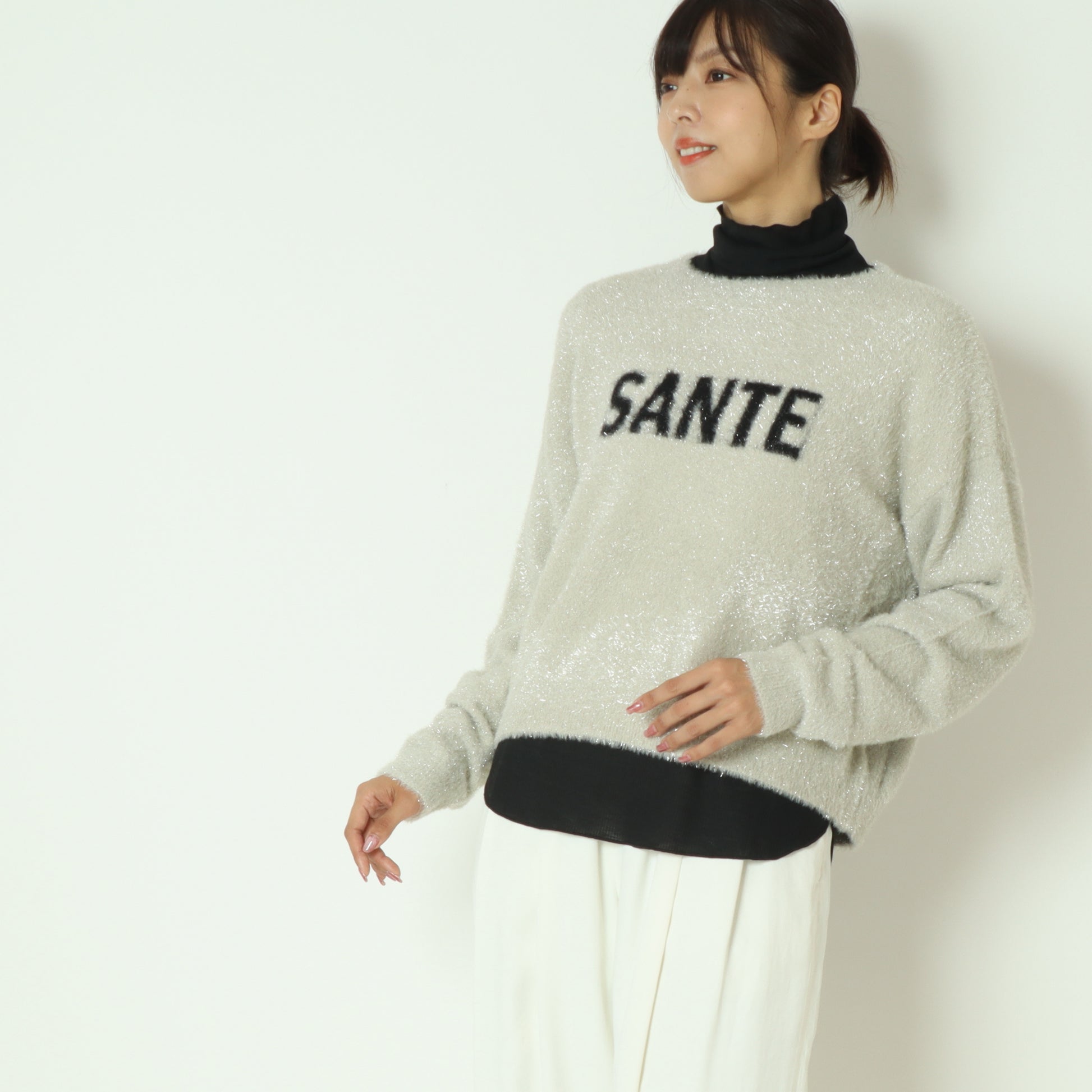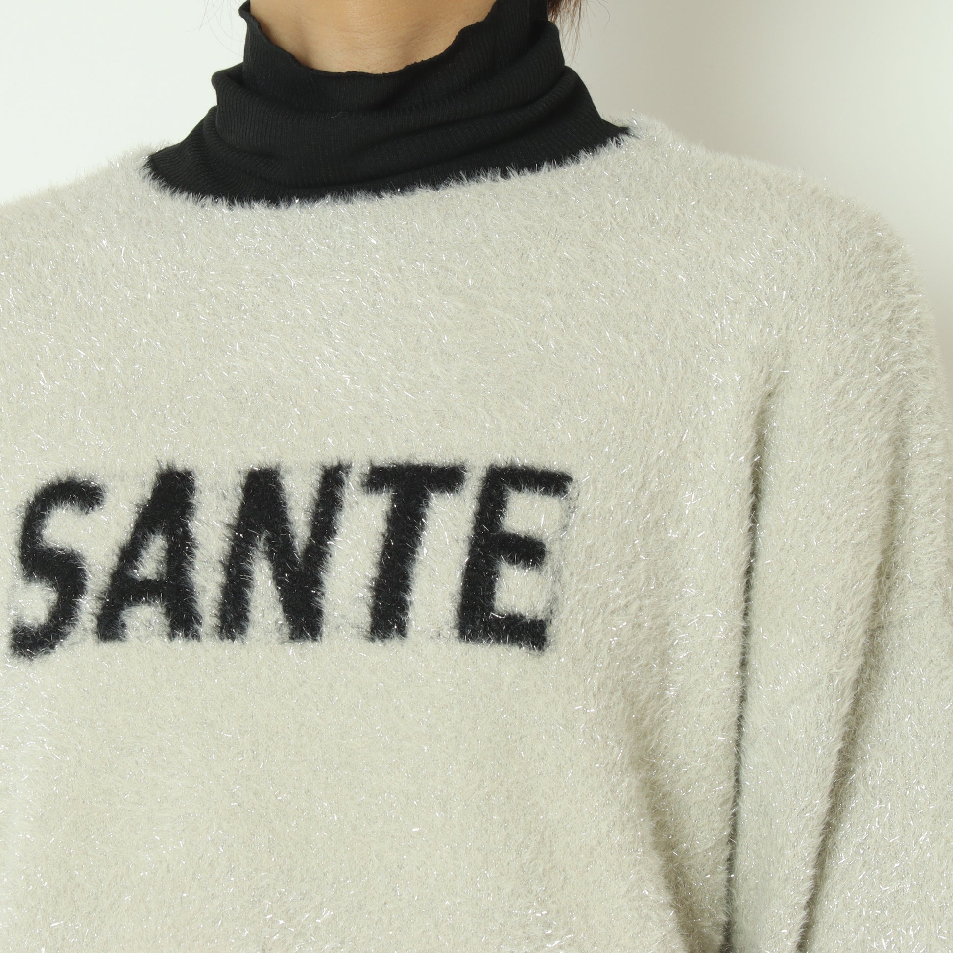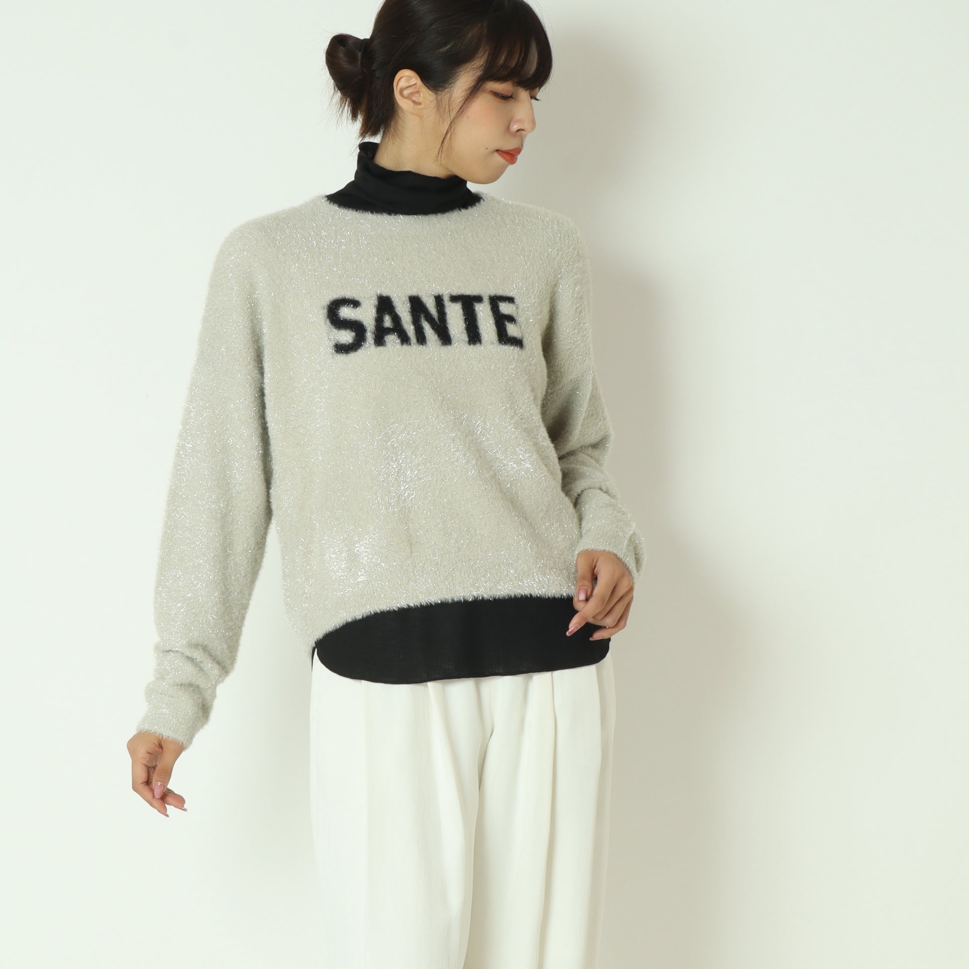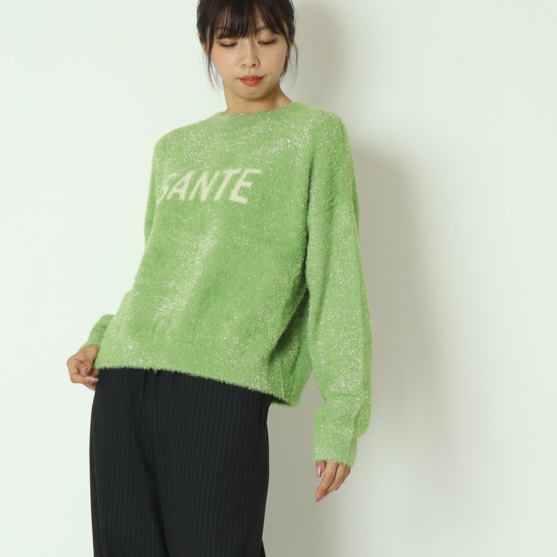 ふんわりと毛羽立った柔らかな手触りと見た目が特徴のラメシャギーロゴニット。