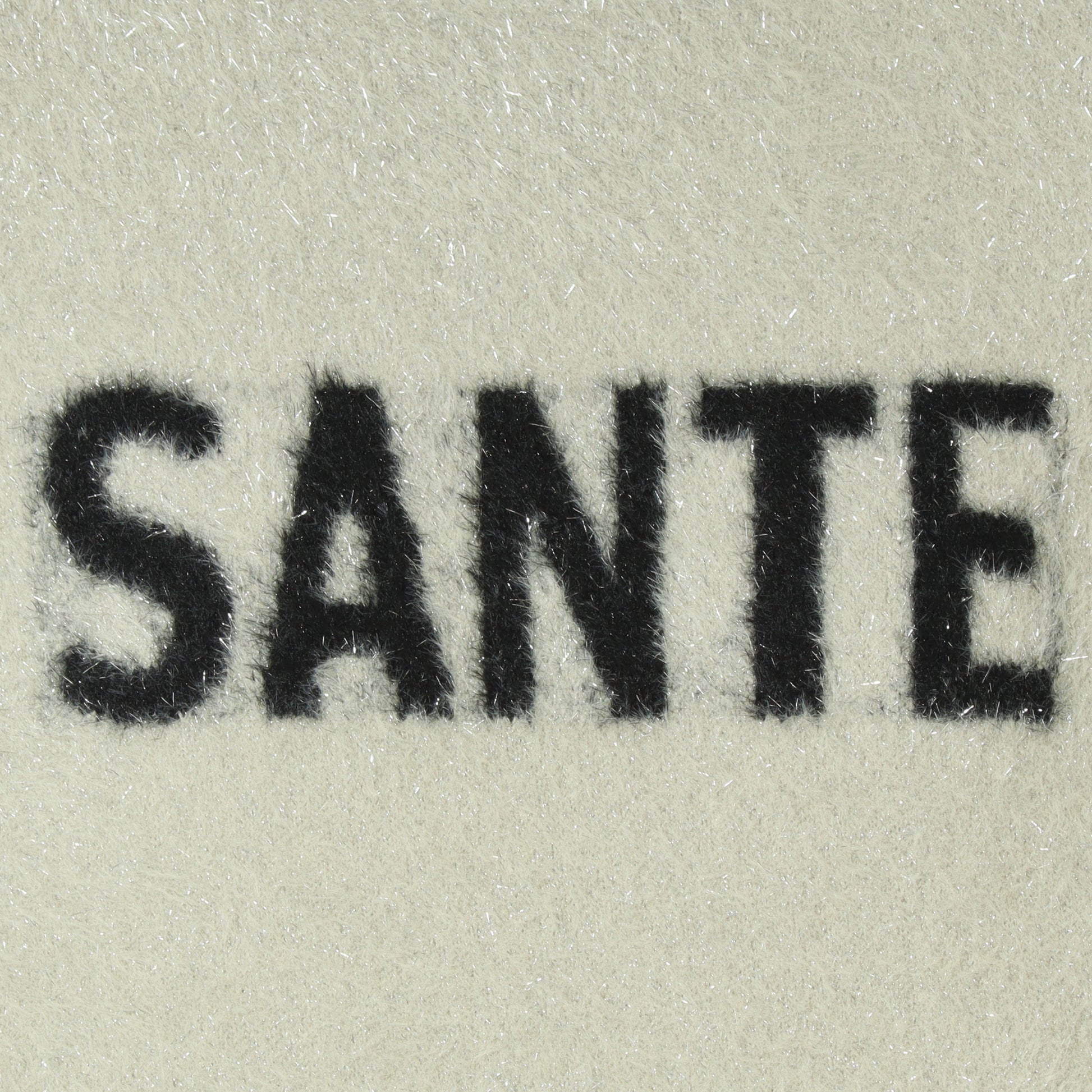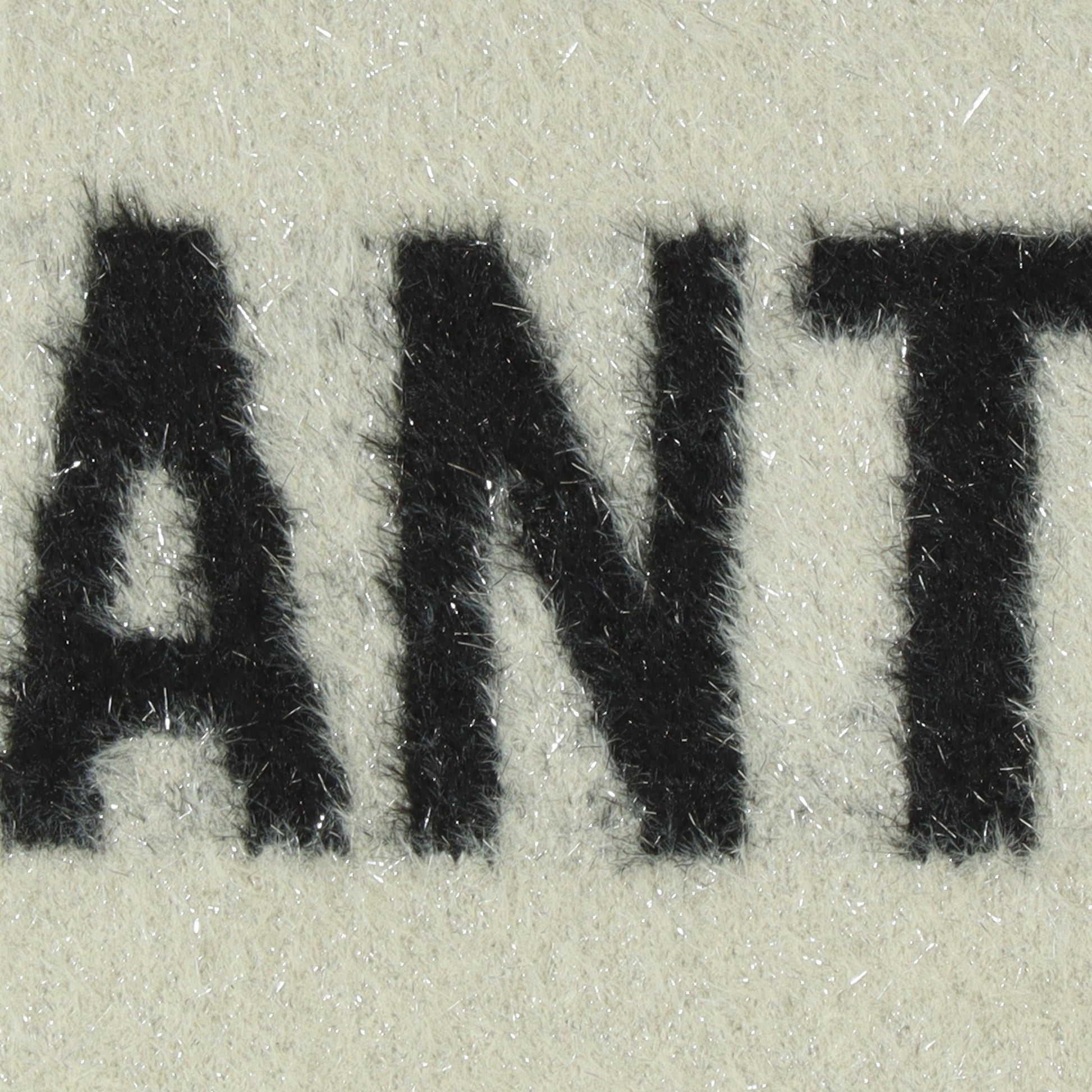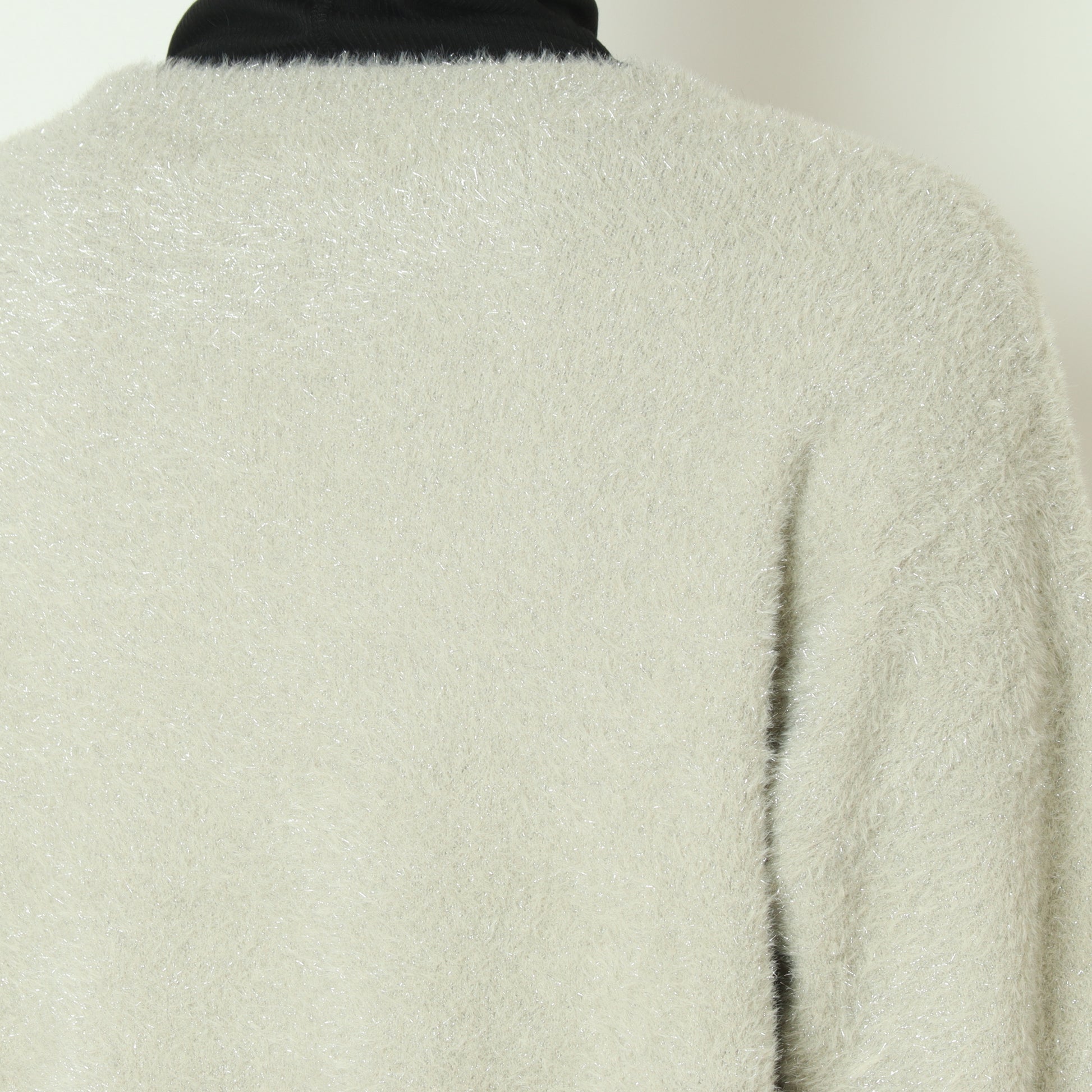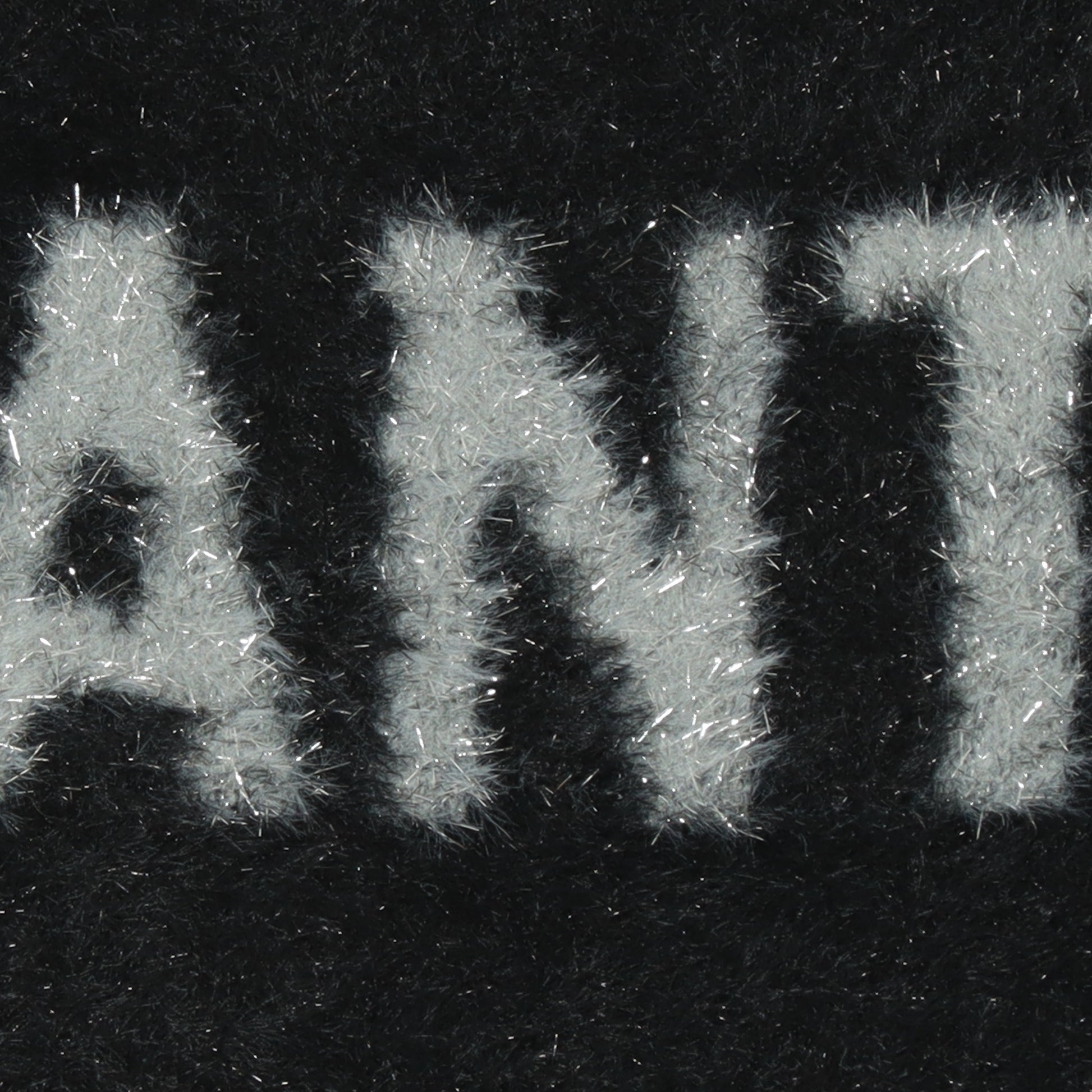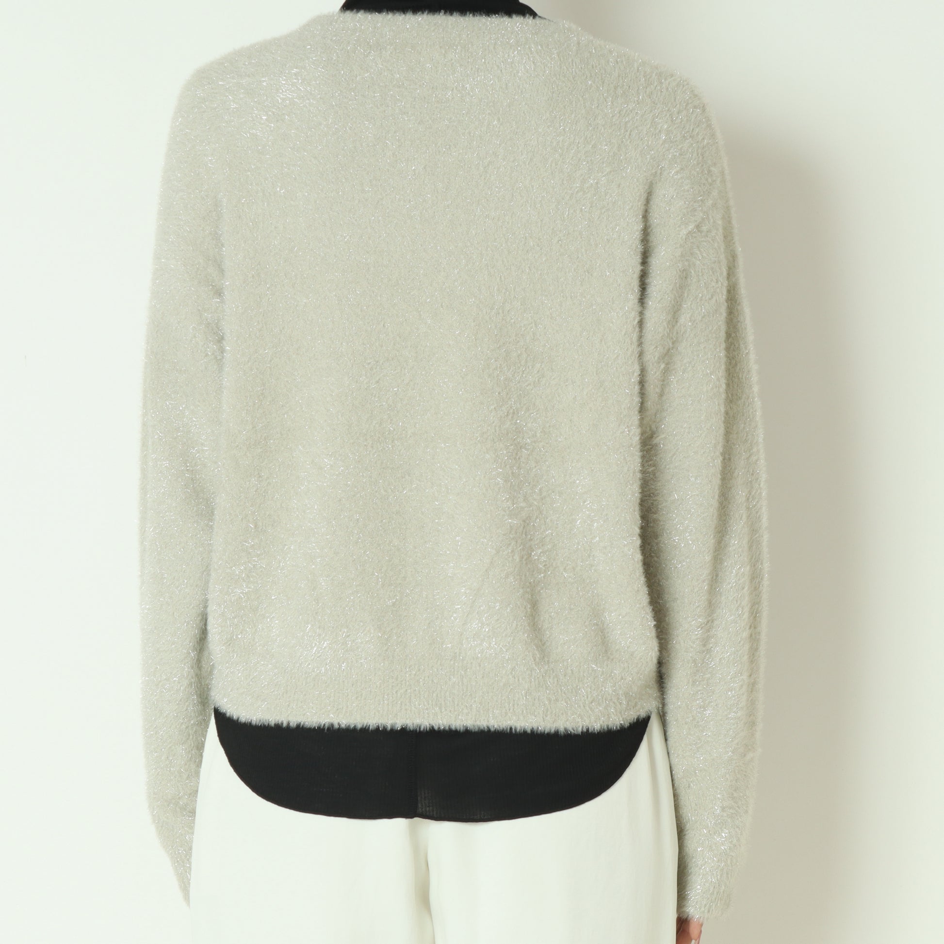 ふんわりと毛羽立った柔らかな手触りと見た目が特徴のラメシャギーロゴニット。