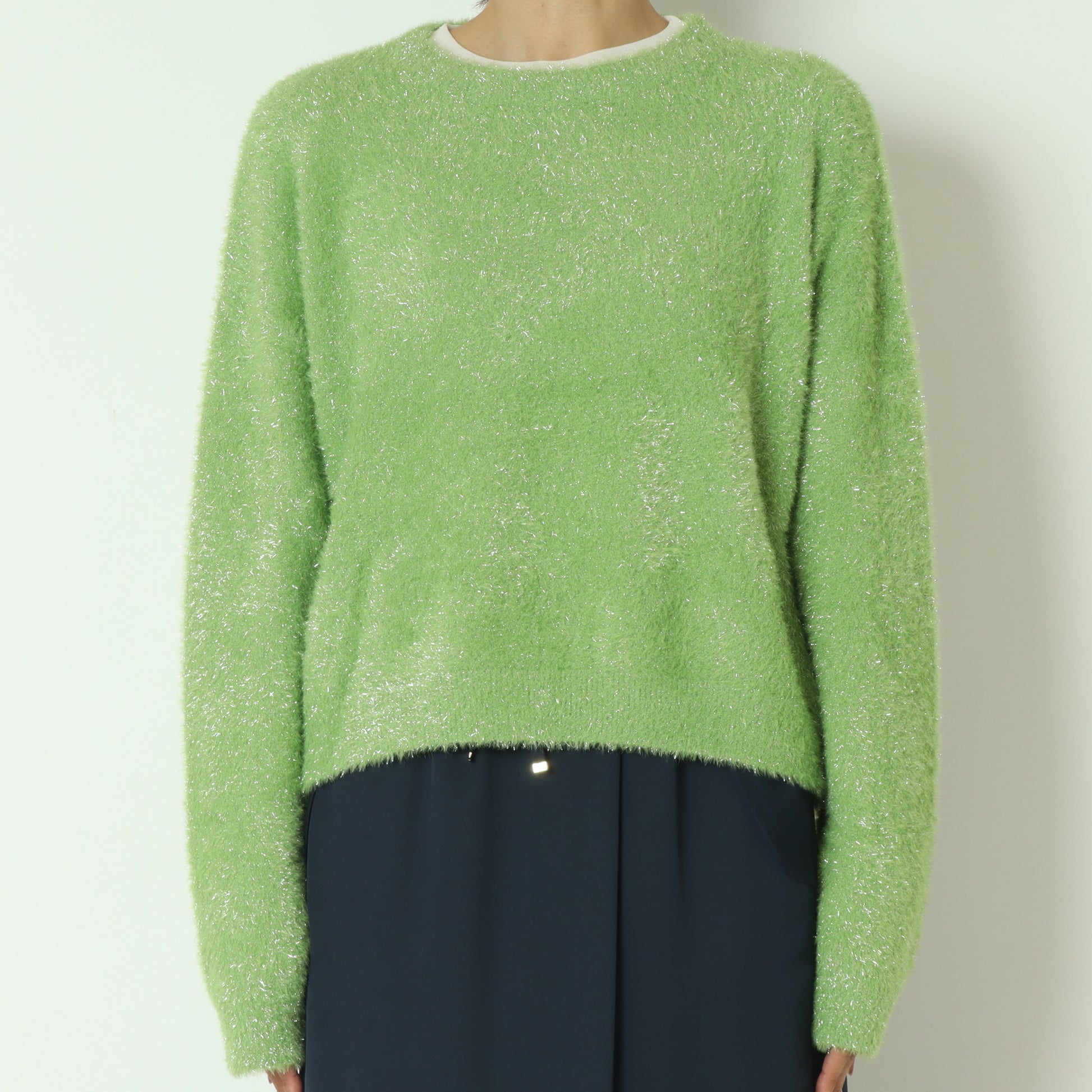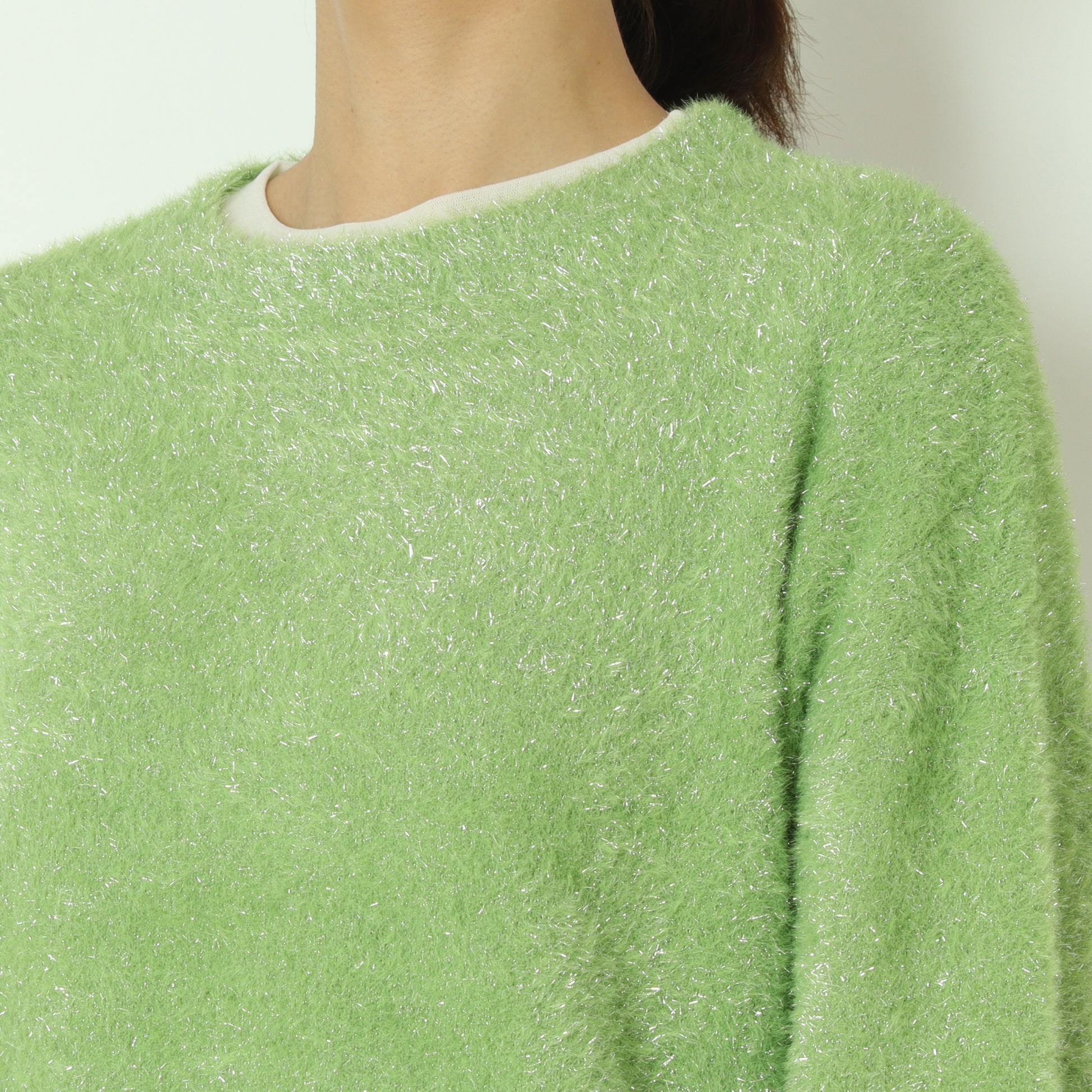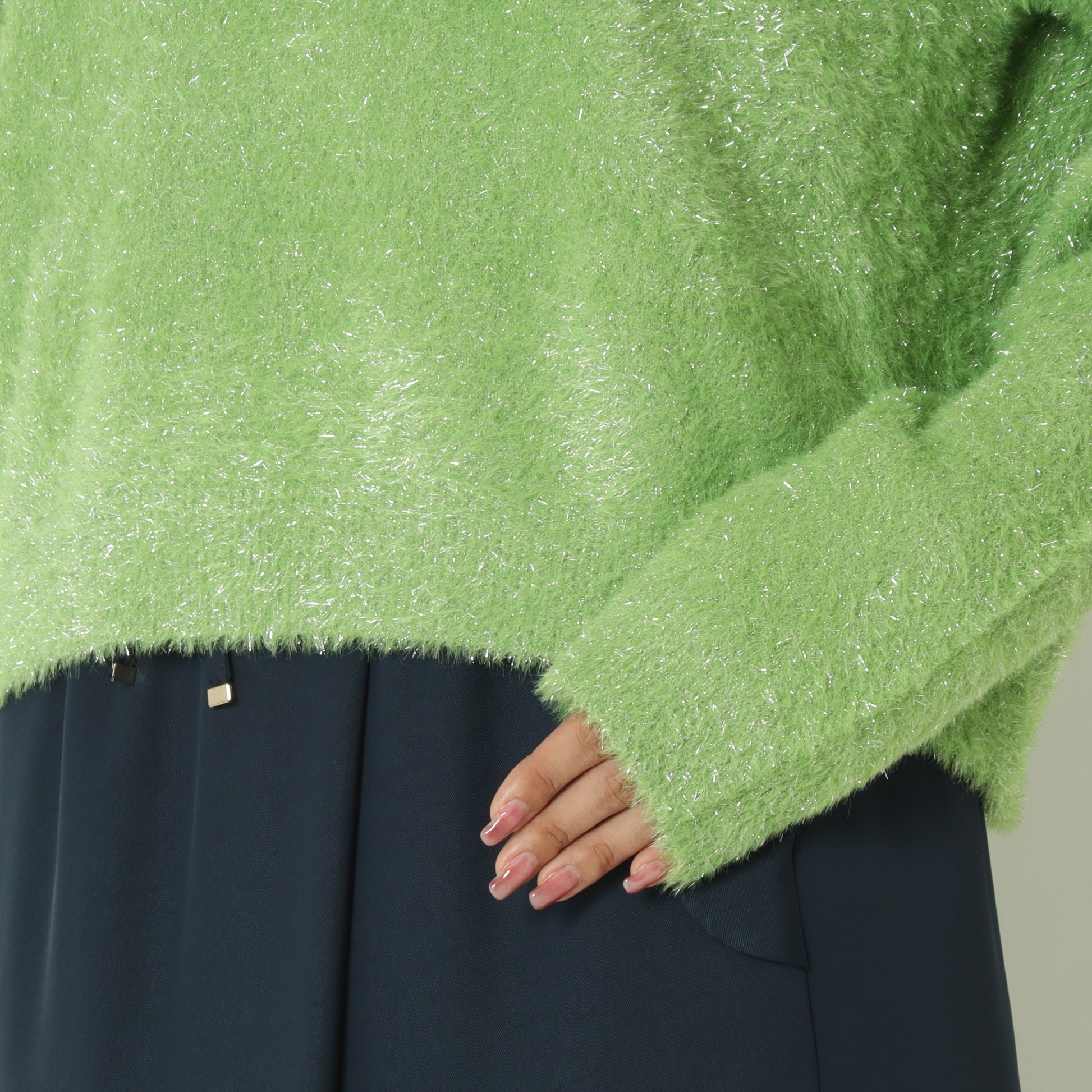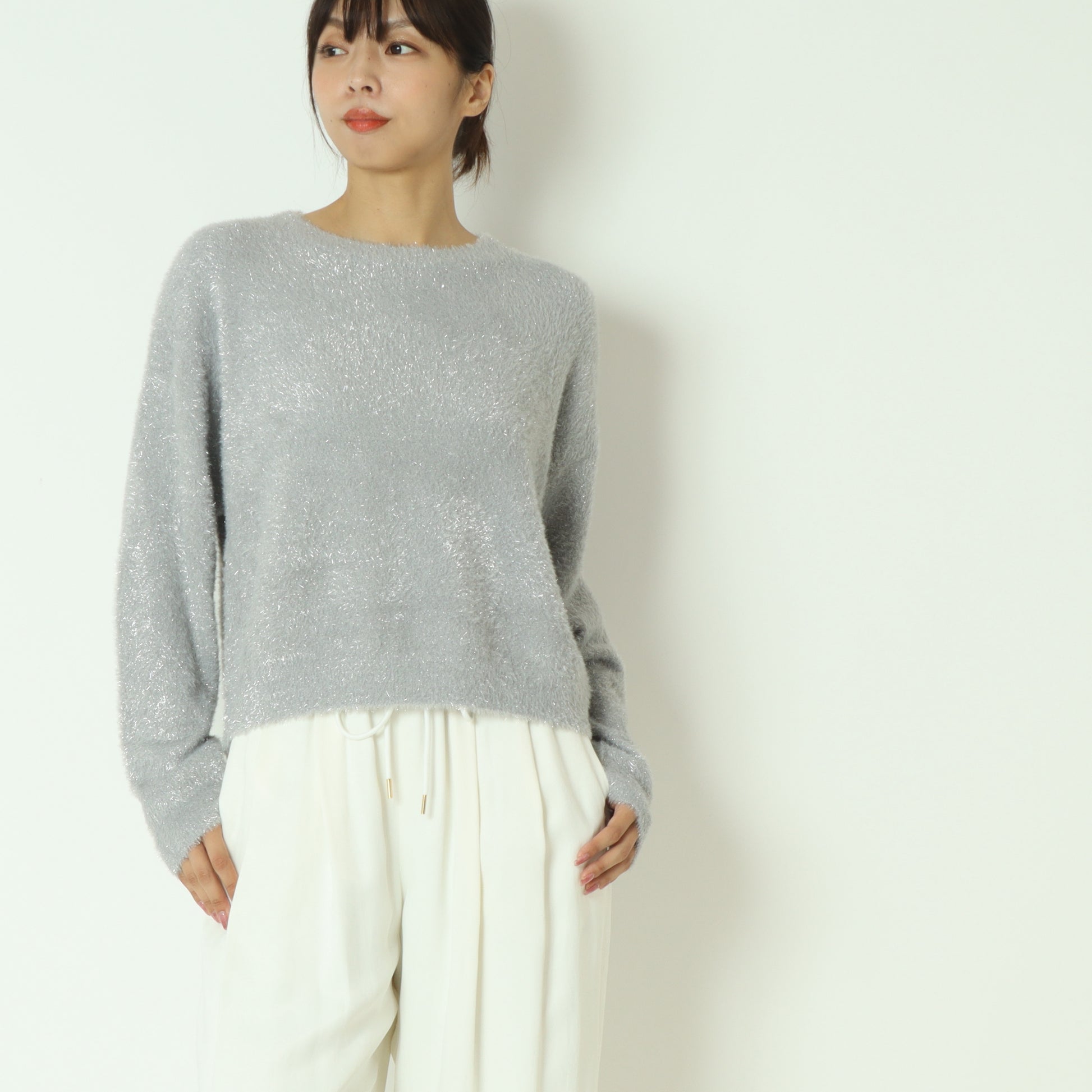 ふんわり柔らかな手触りと見た目が特徴のラメシャギーニット。