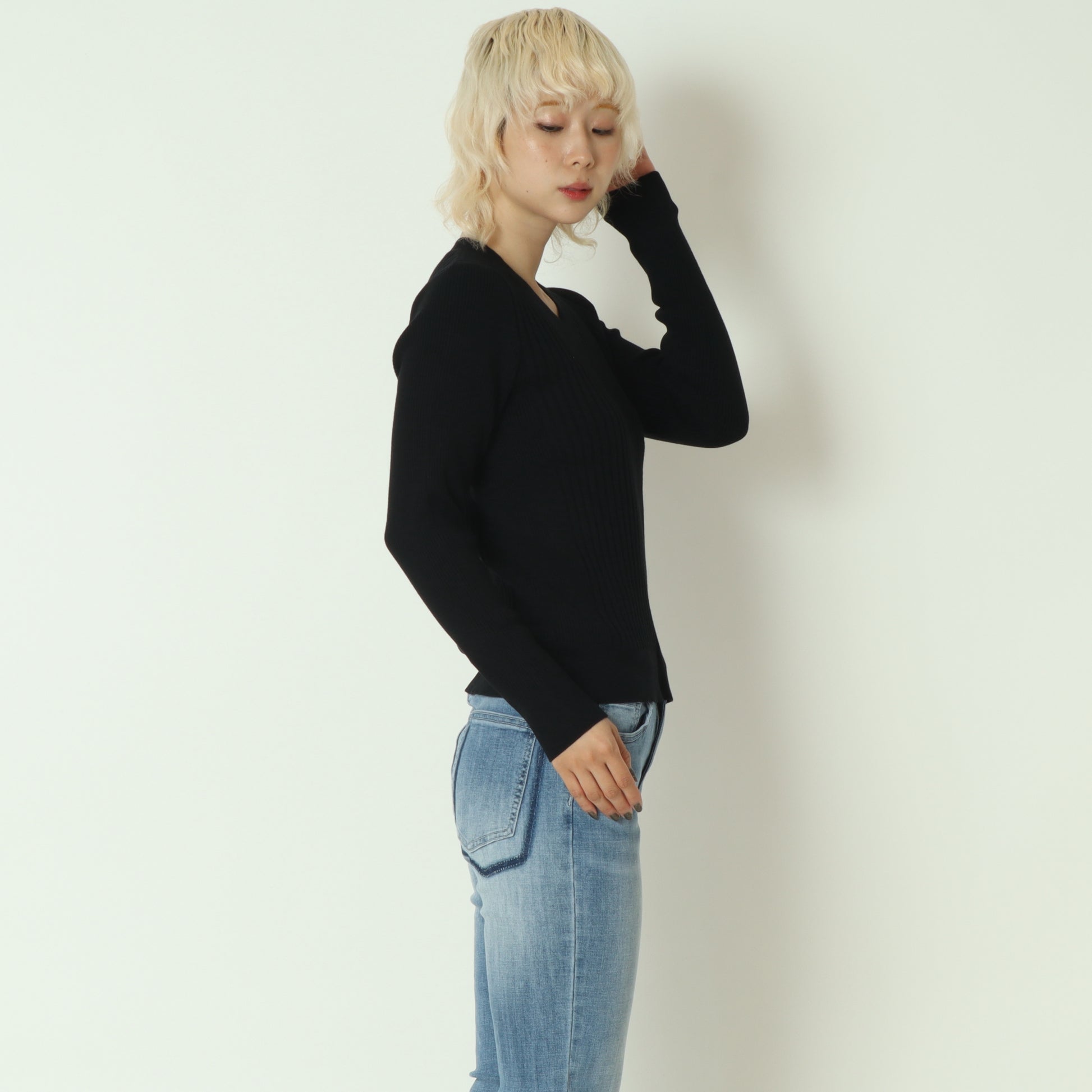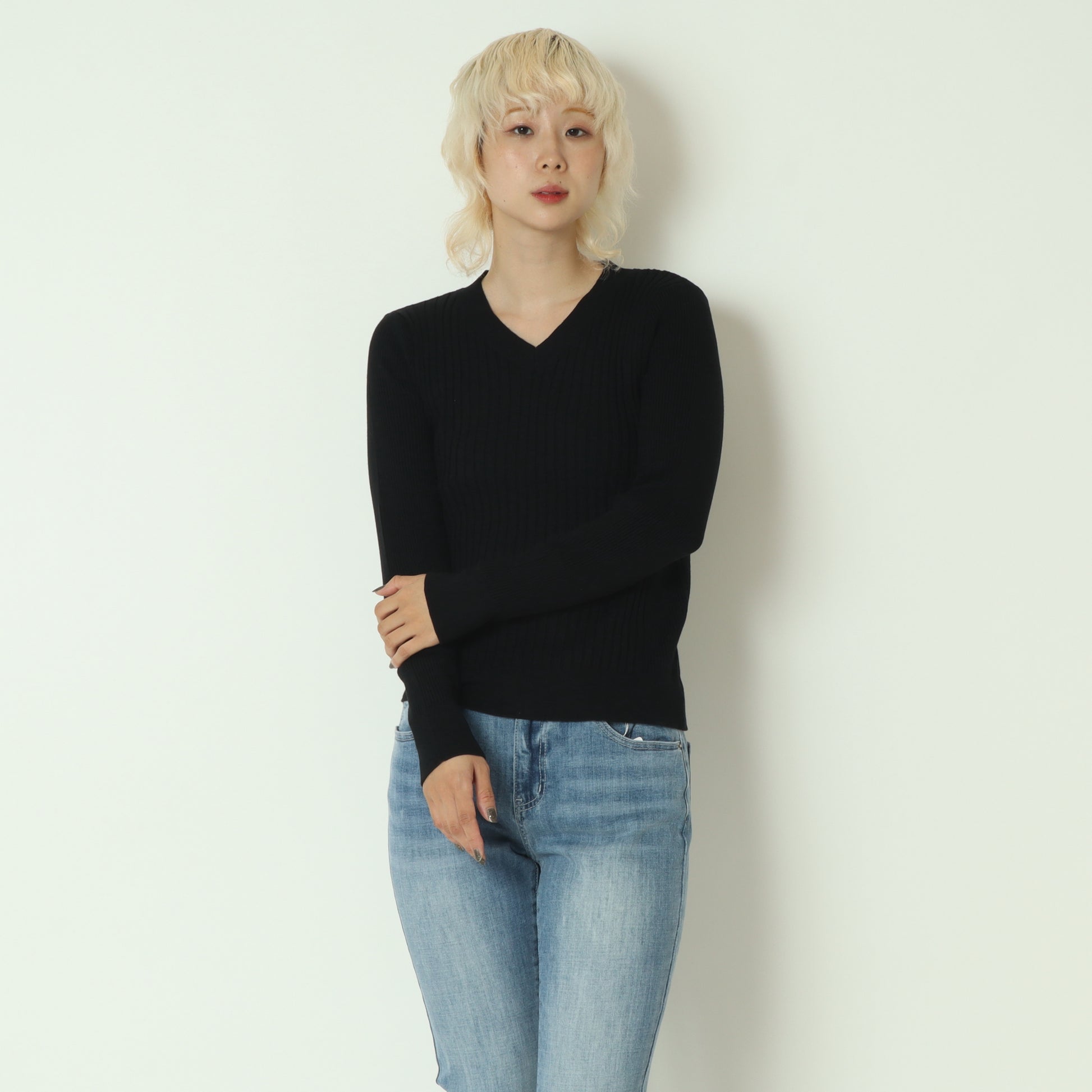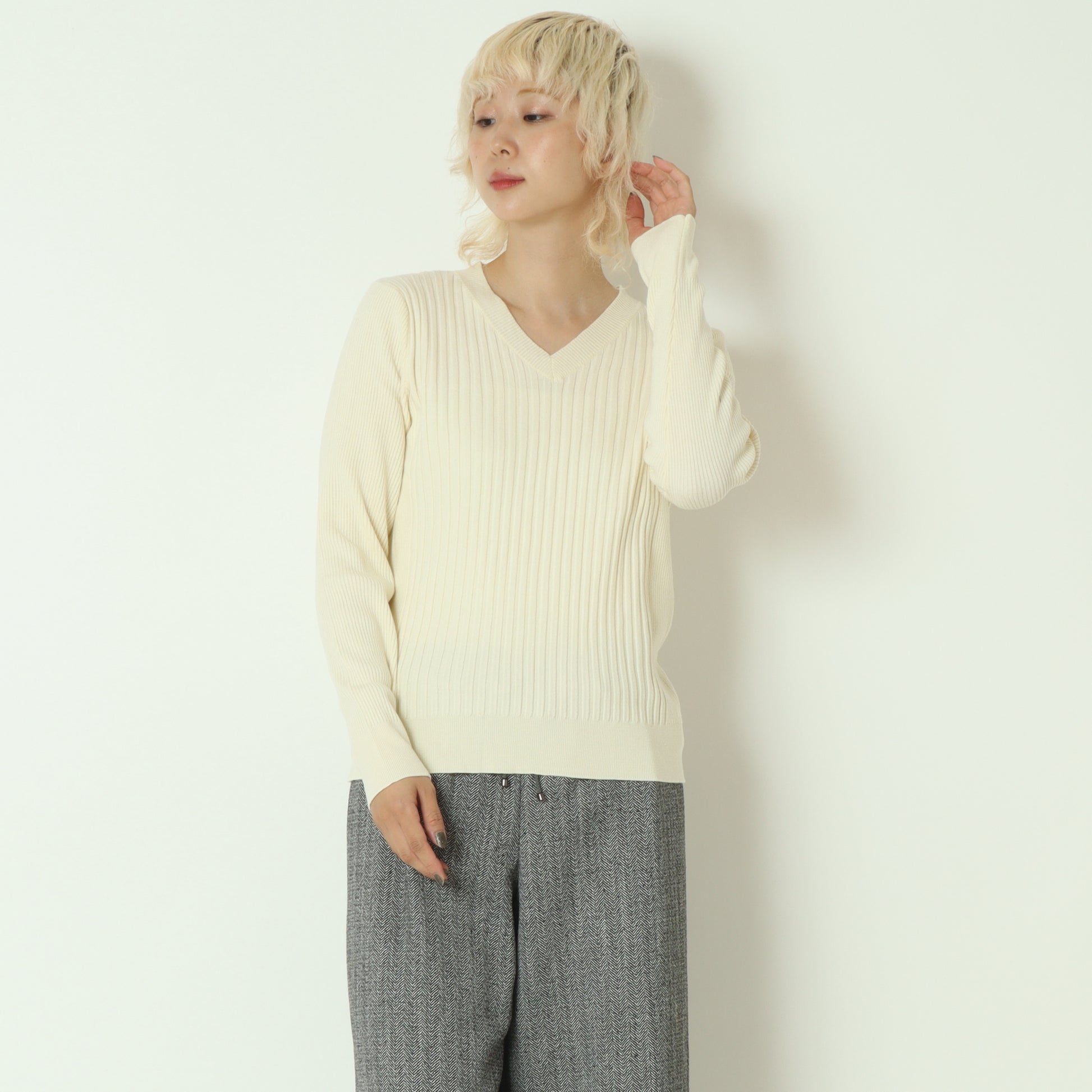 リブの太さが違うデザインがアクセントになってお洒落な着こなしに◎