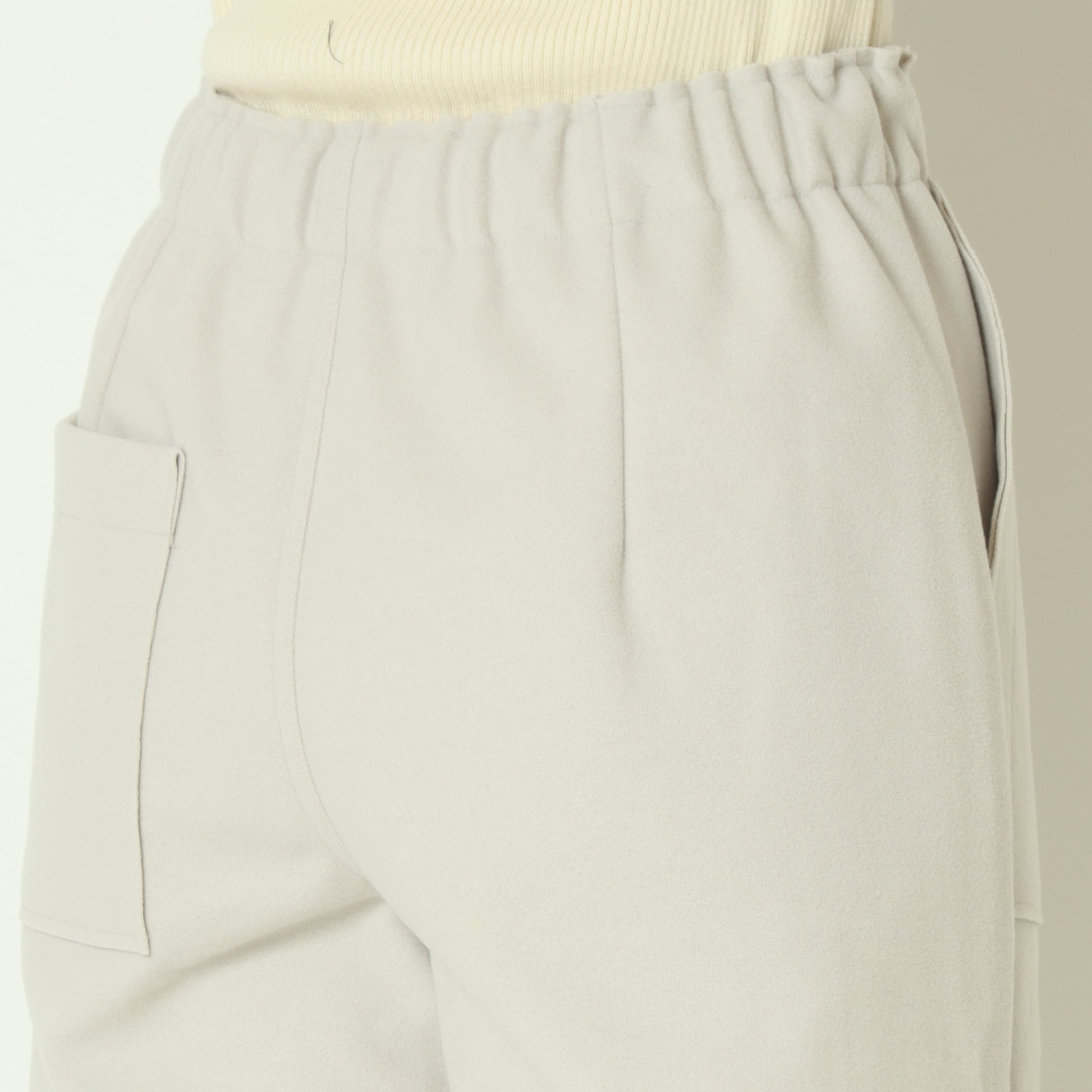 ウエストは後ろゴムになっているのでインスタイルでもすっきりときれいめに着こなしていただけます。