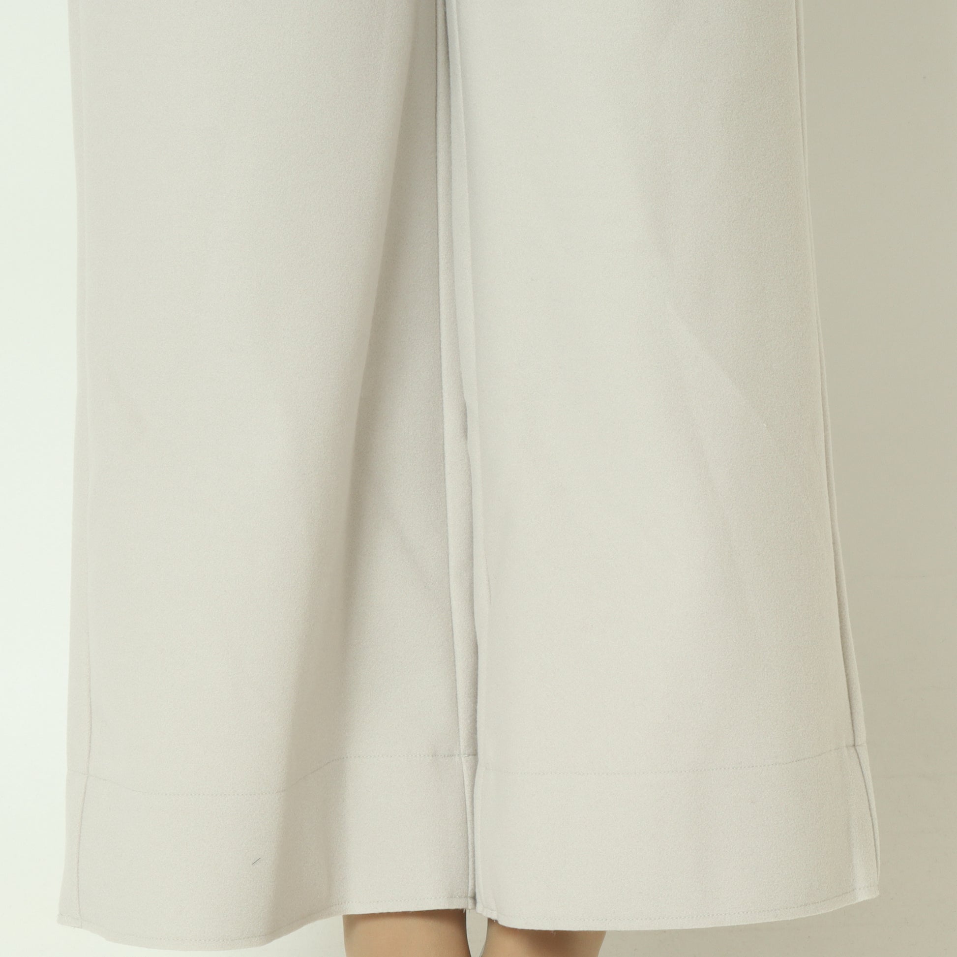 ウールのような温もりのある素材感のワイドパンツ。
