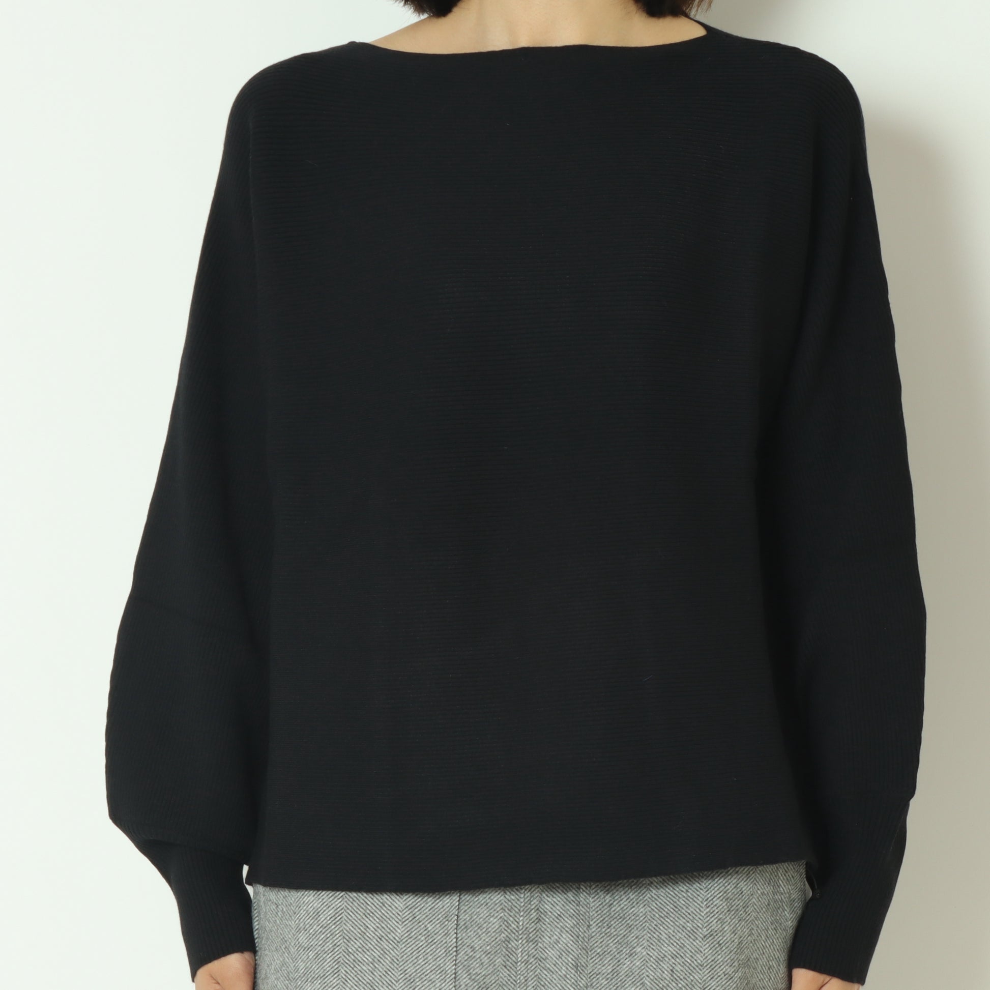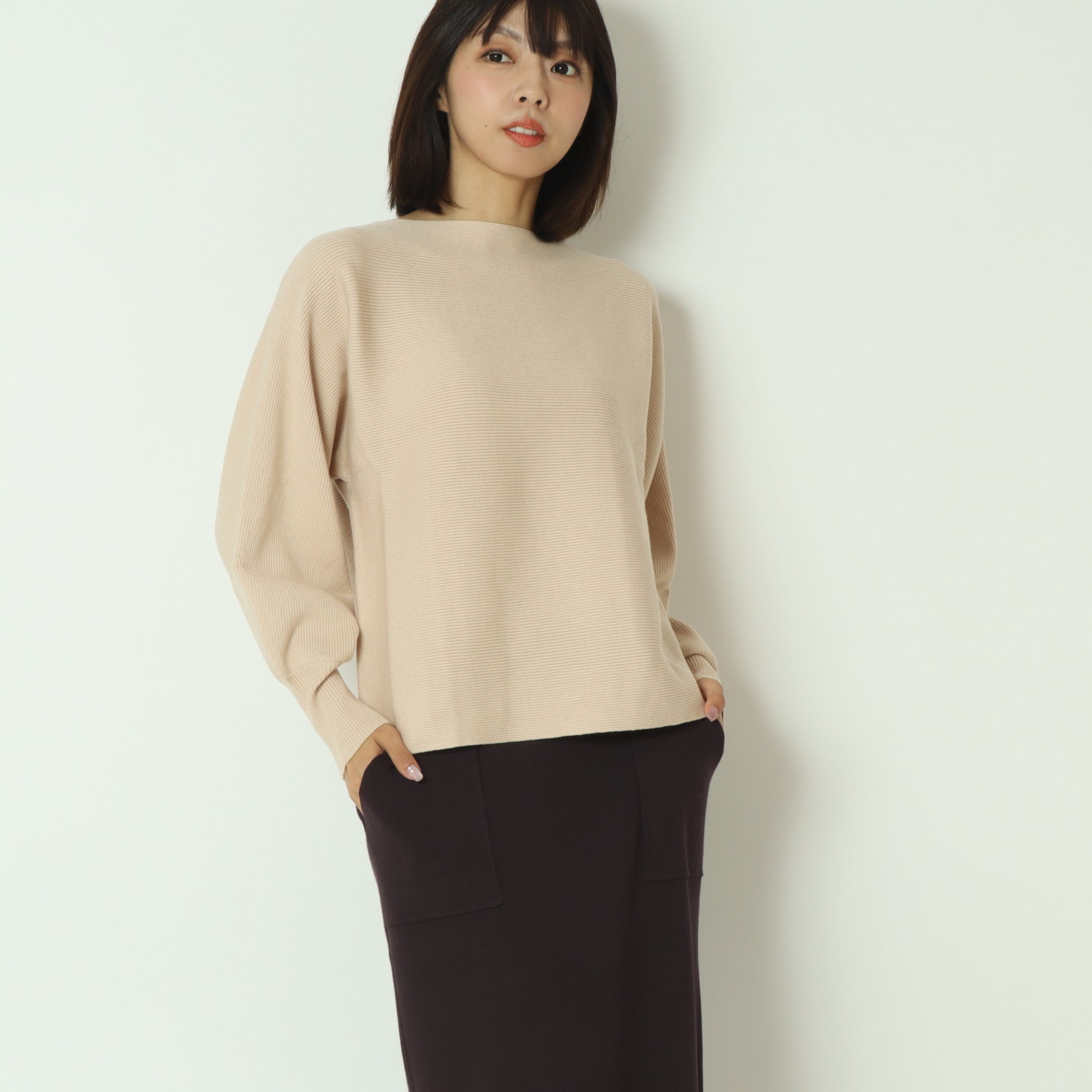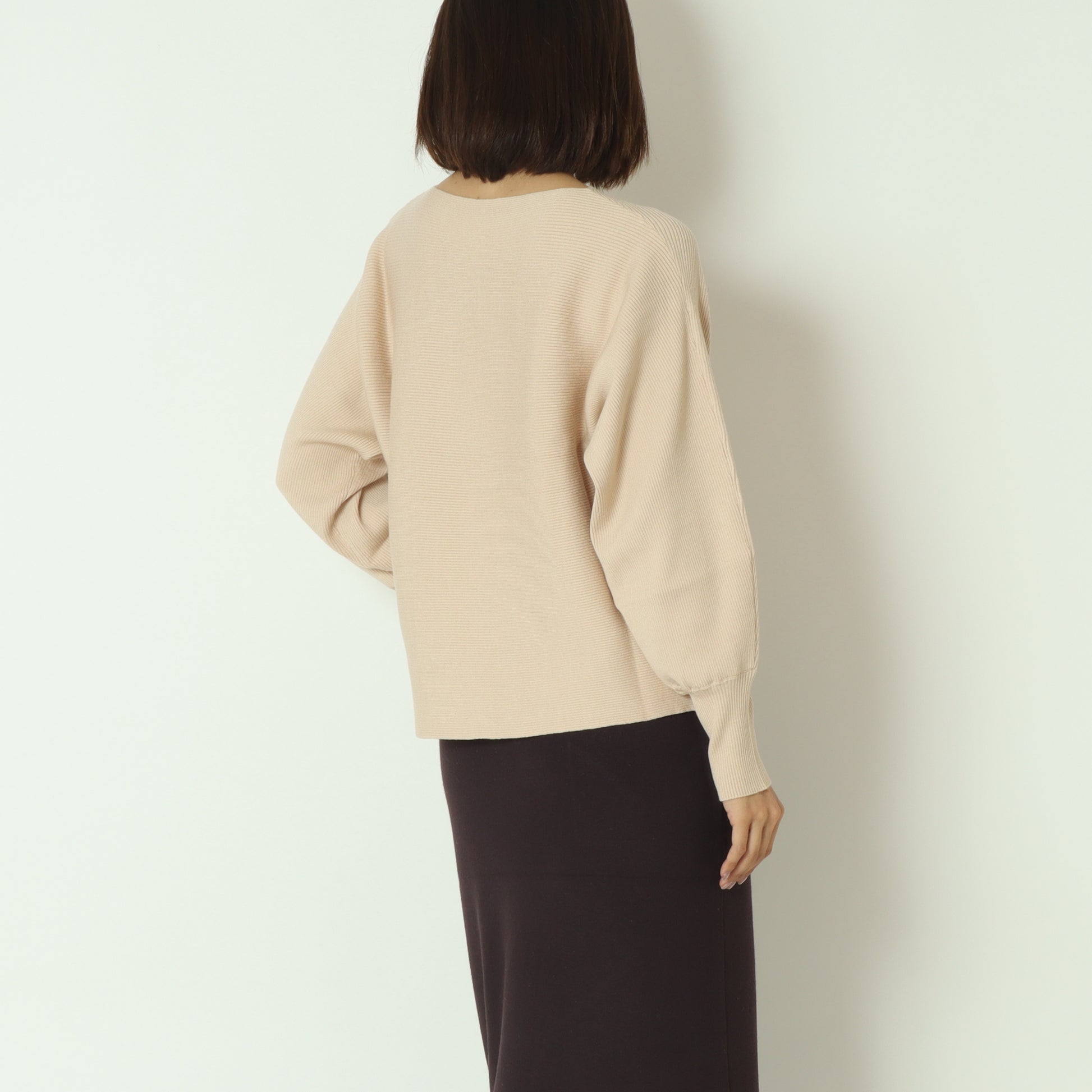 ゆったりとしたシルエットのドルマンスリーブリブ編みニット。