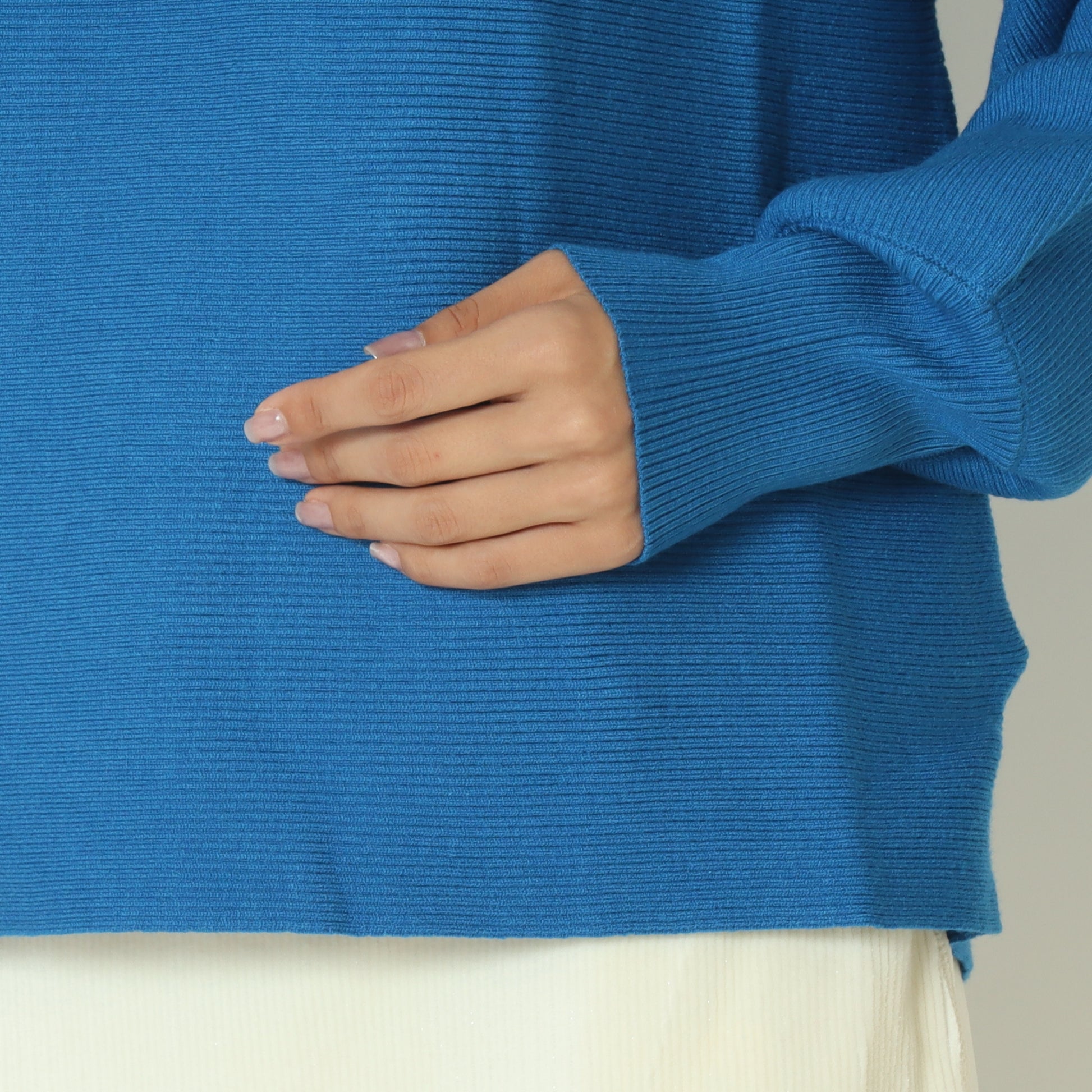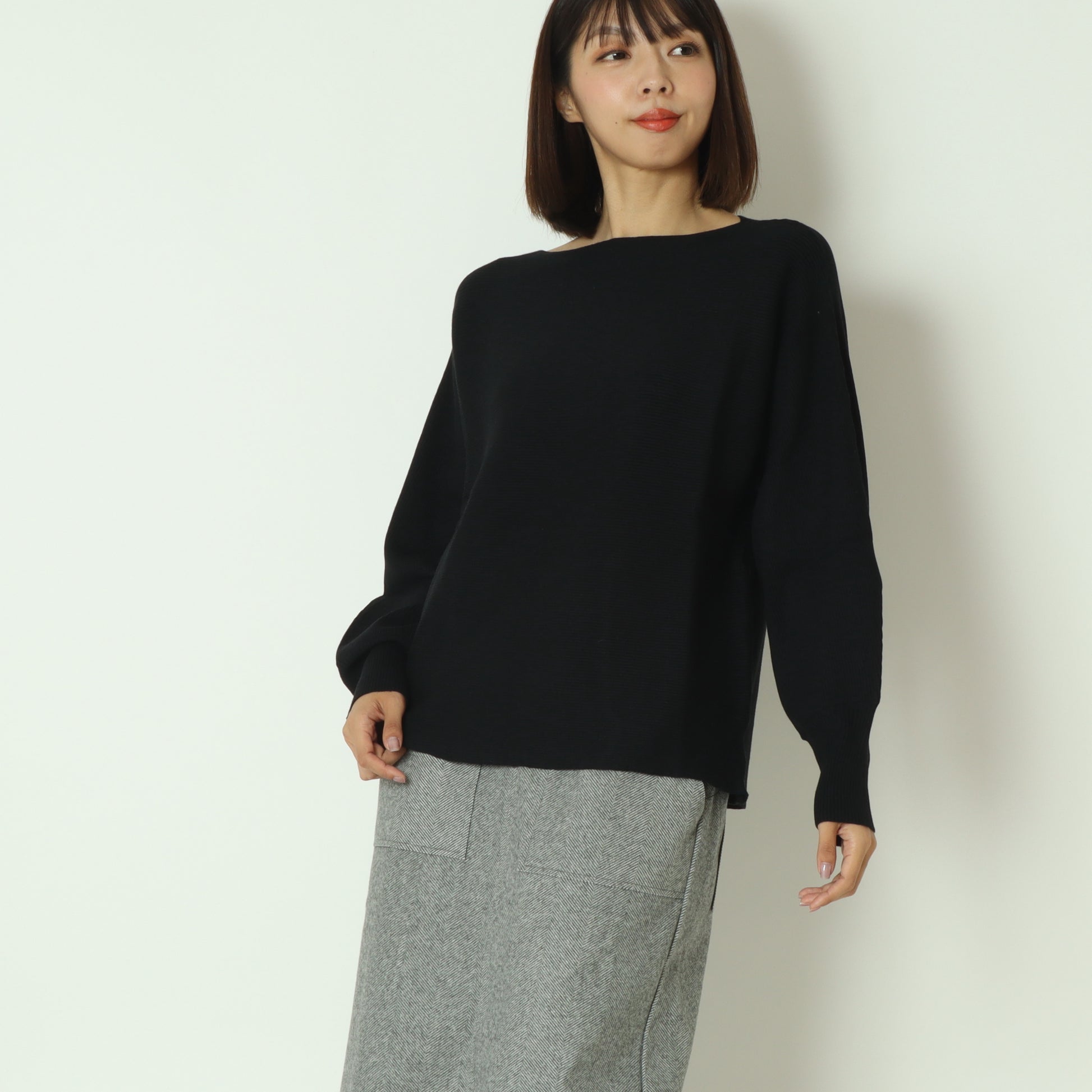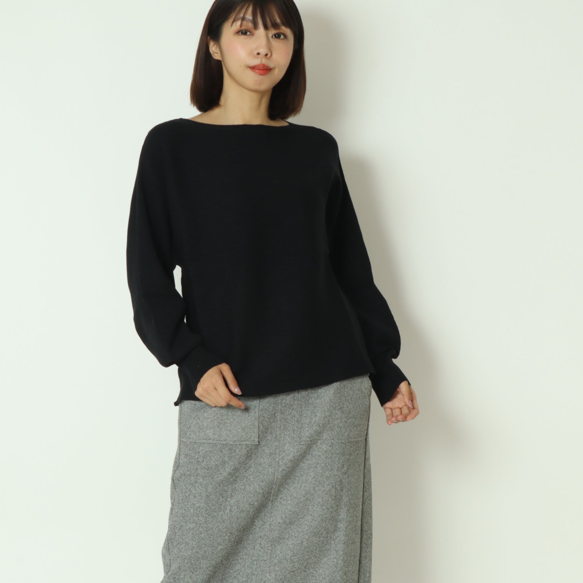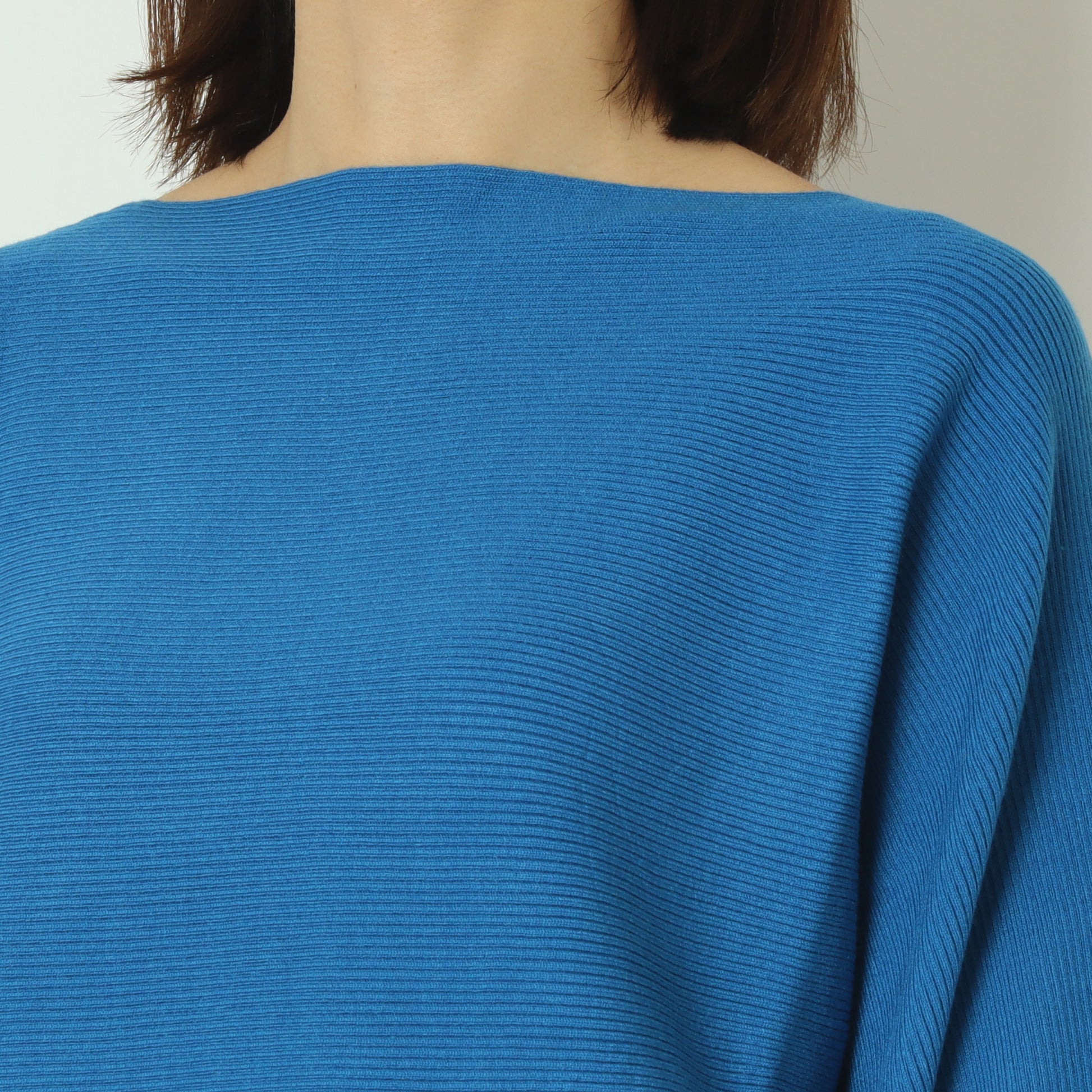 ゆったりとしたシルエットのドルマンスリーブリブ編みニット。