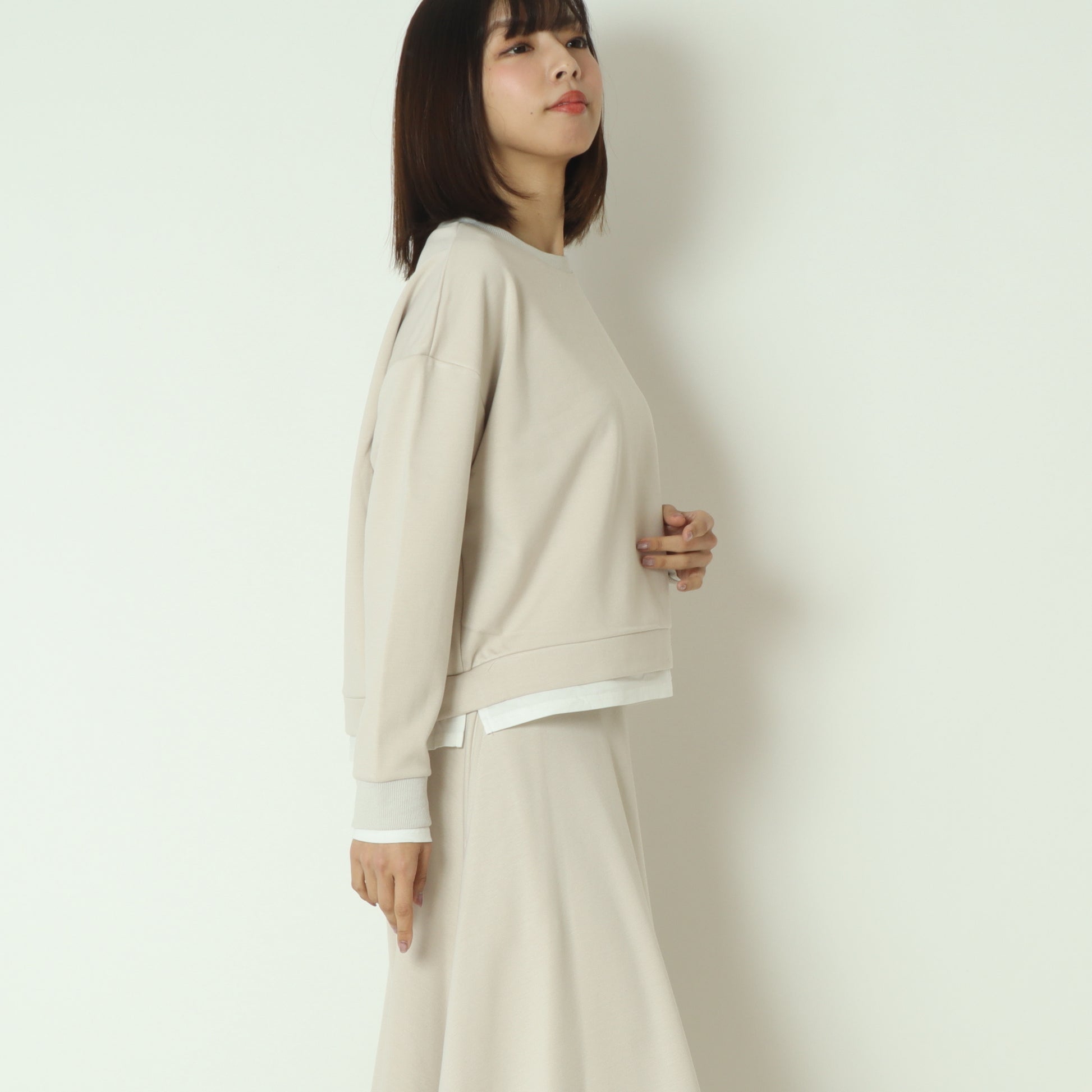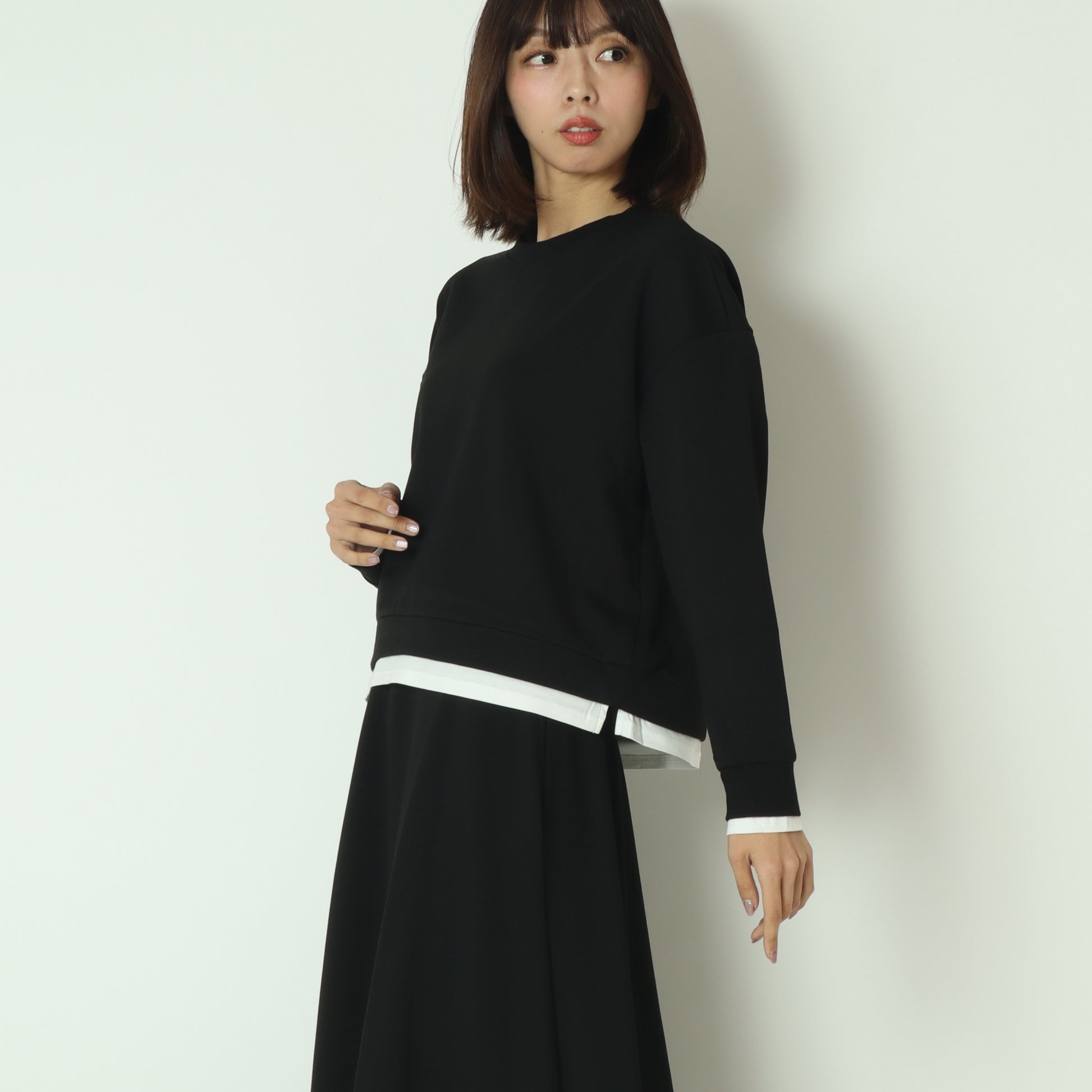 もちっとして触り心地の良いジャージー素材のレイヤード風プルオーバー。
