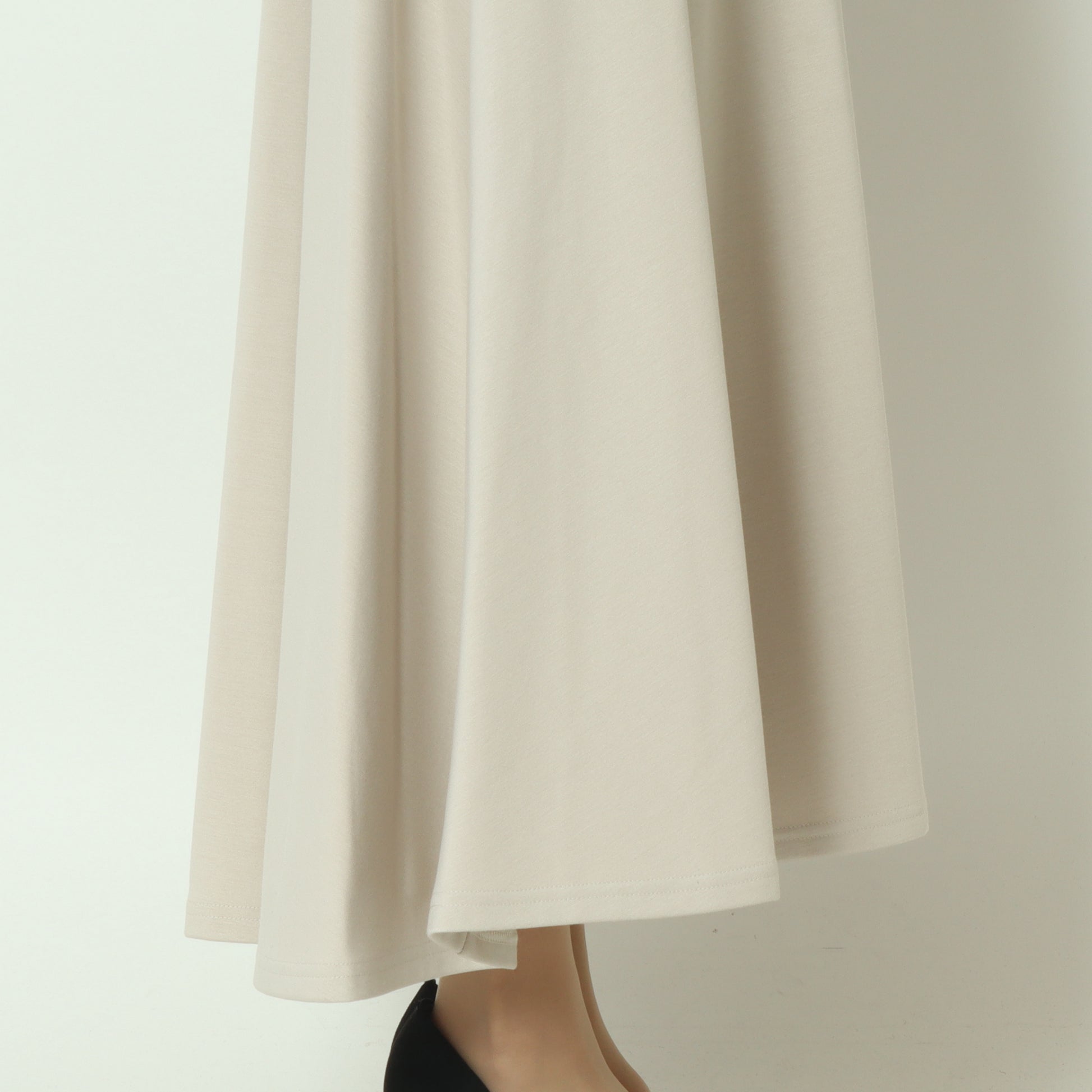もちっとして触り心地の良いジャージー素材のサーキュラースカート。