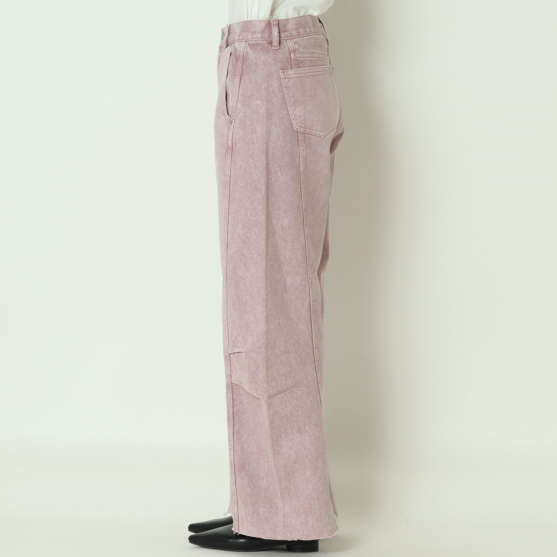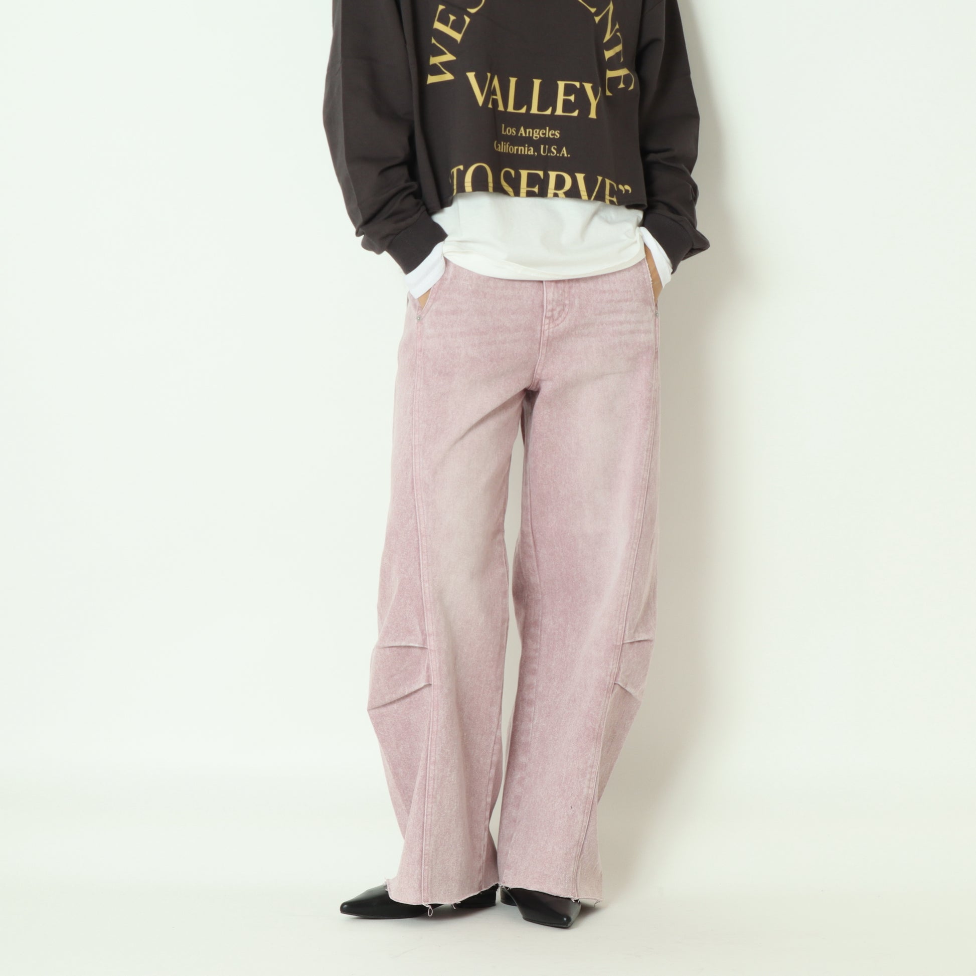 股上の浅いシンプルなワイドストレート型のパンツをベースに、