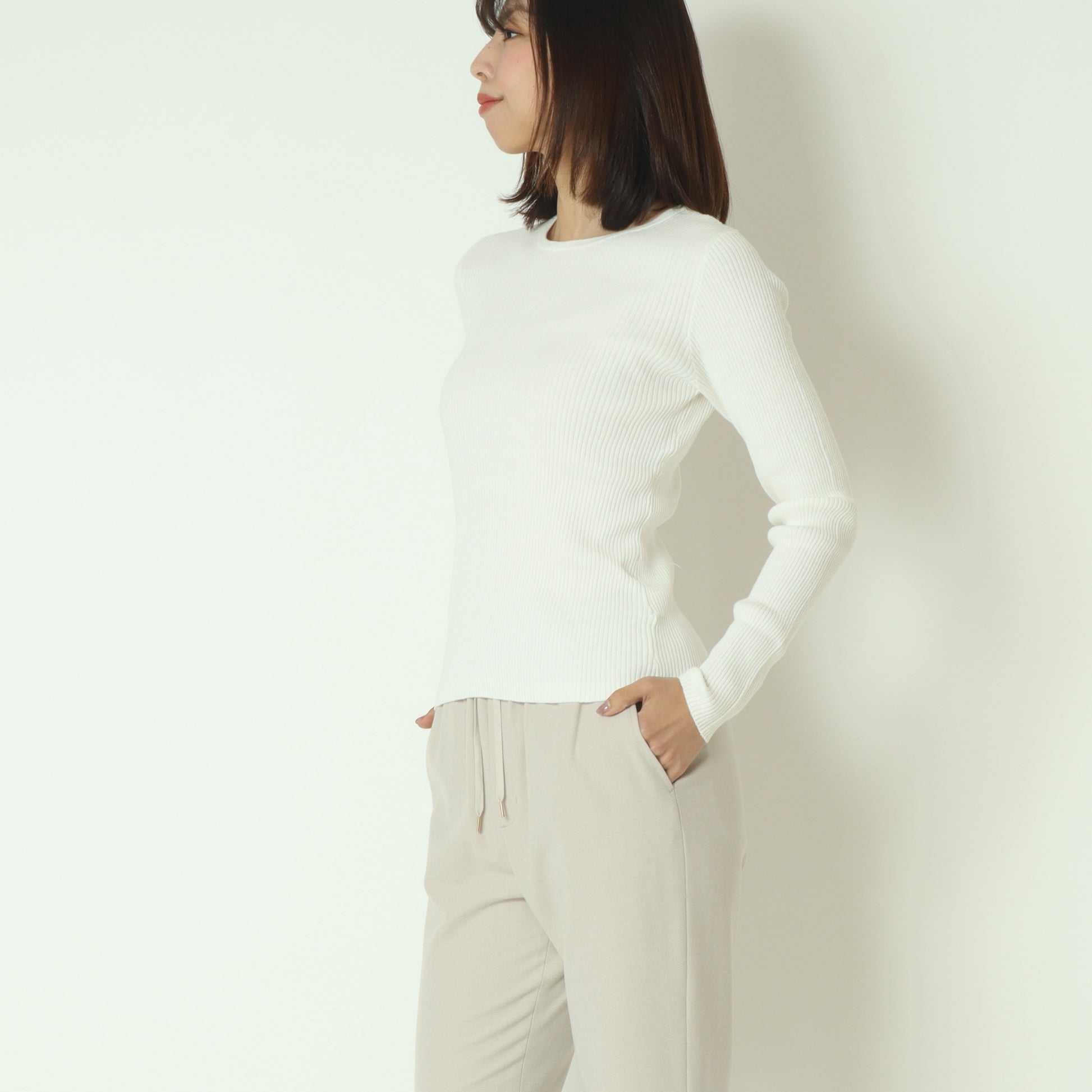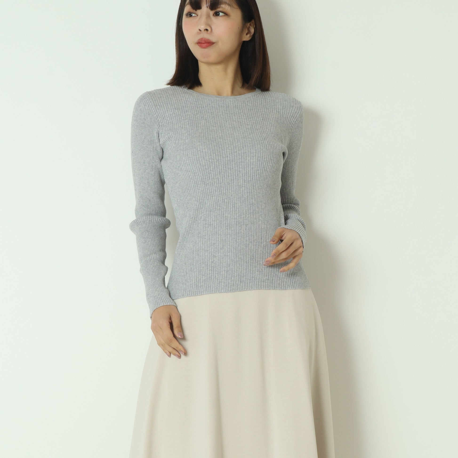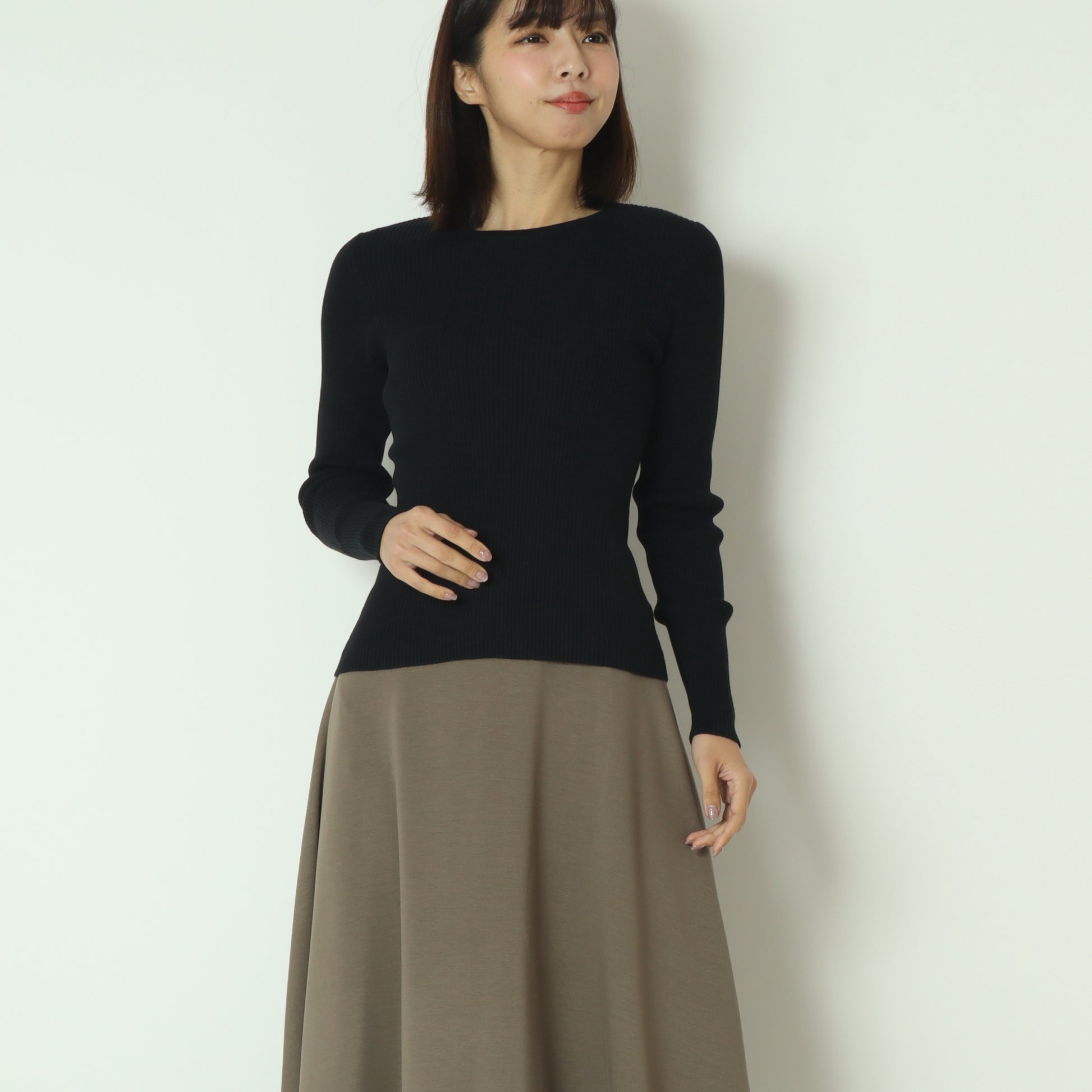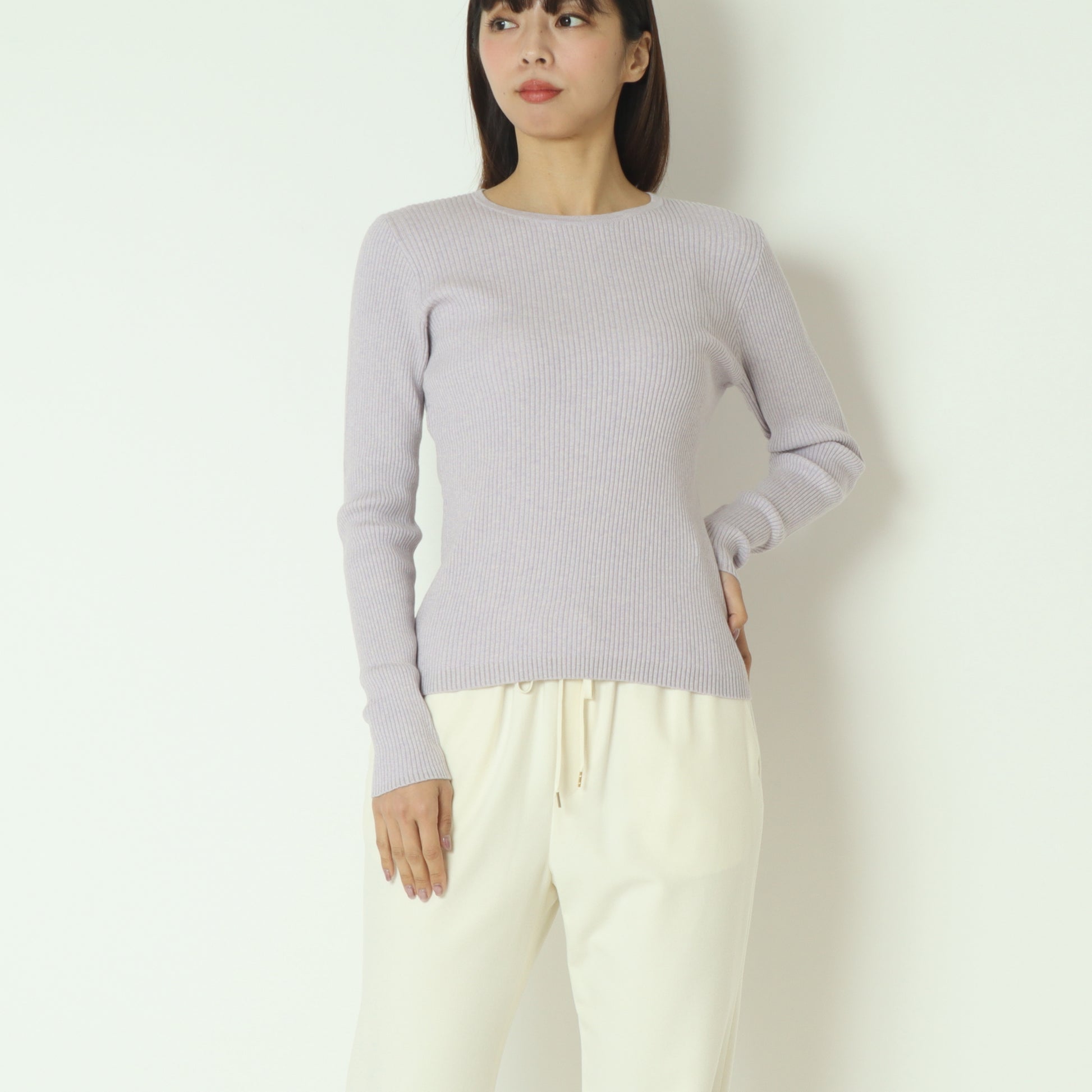 タイトすぎないリブ編みのクルーネックニットは、身体のラインをきれいに見せ、上品な印象を与えてくれます。