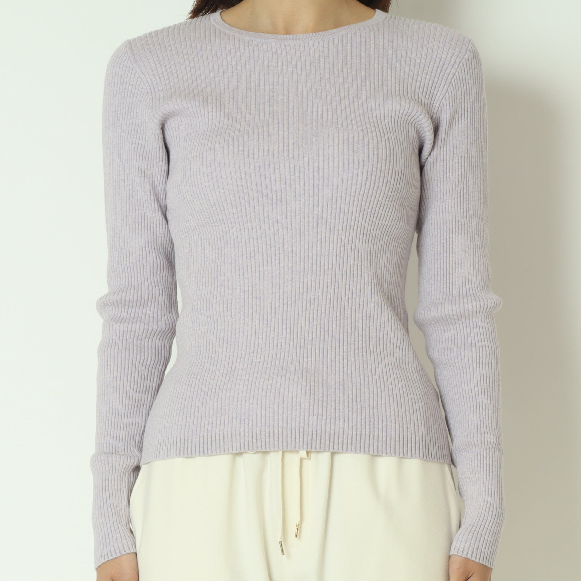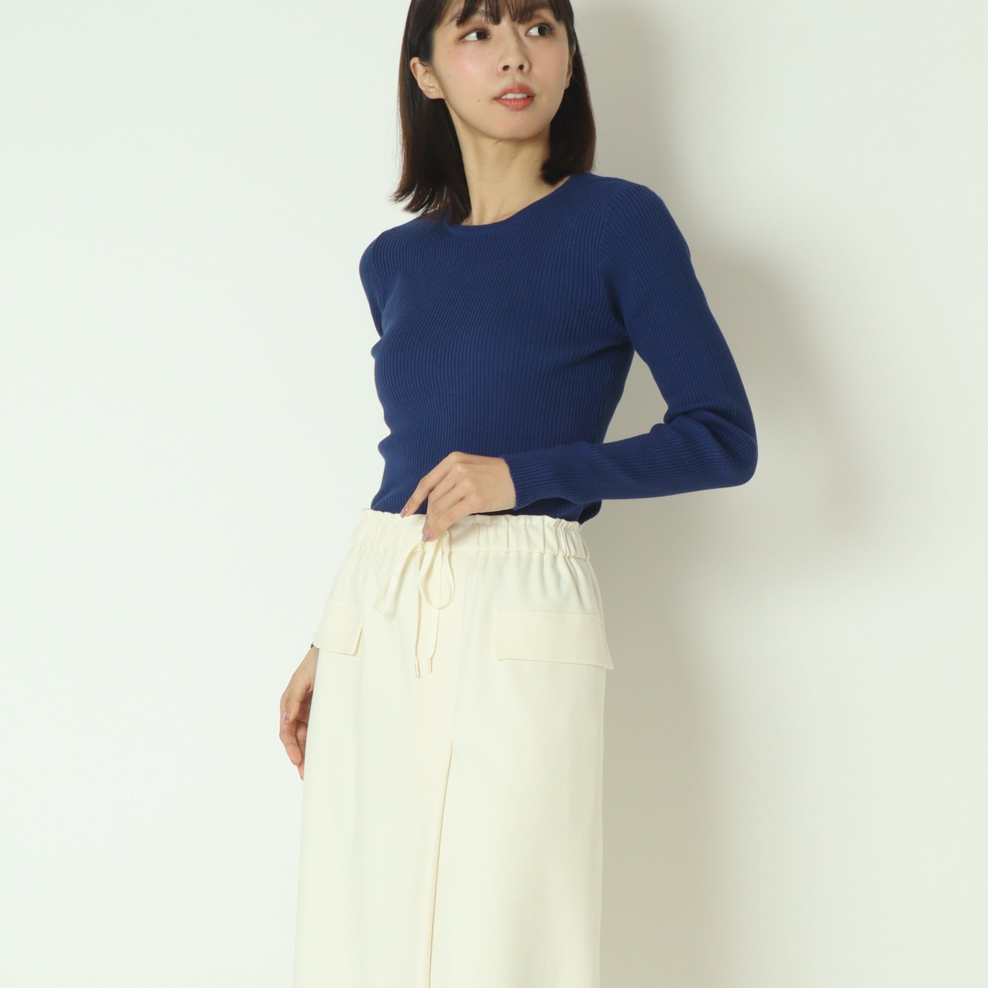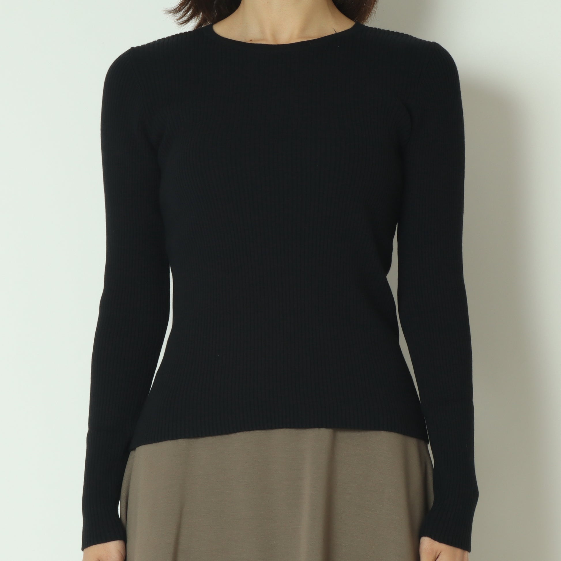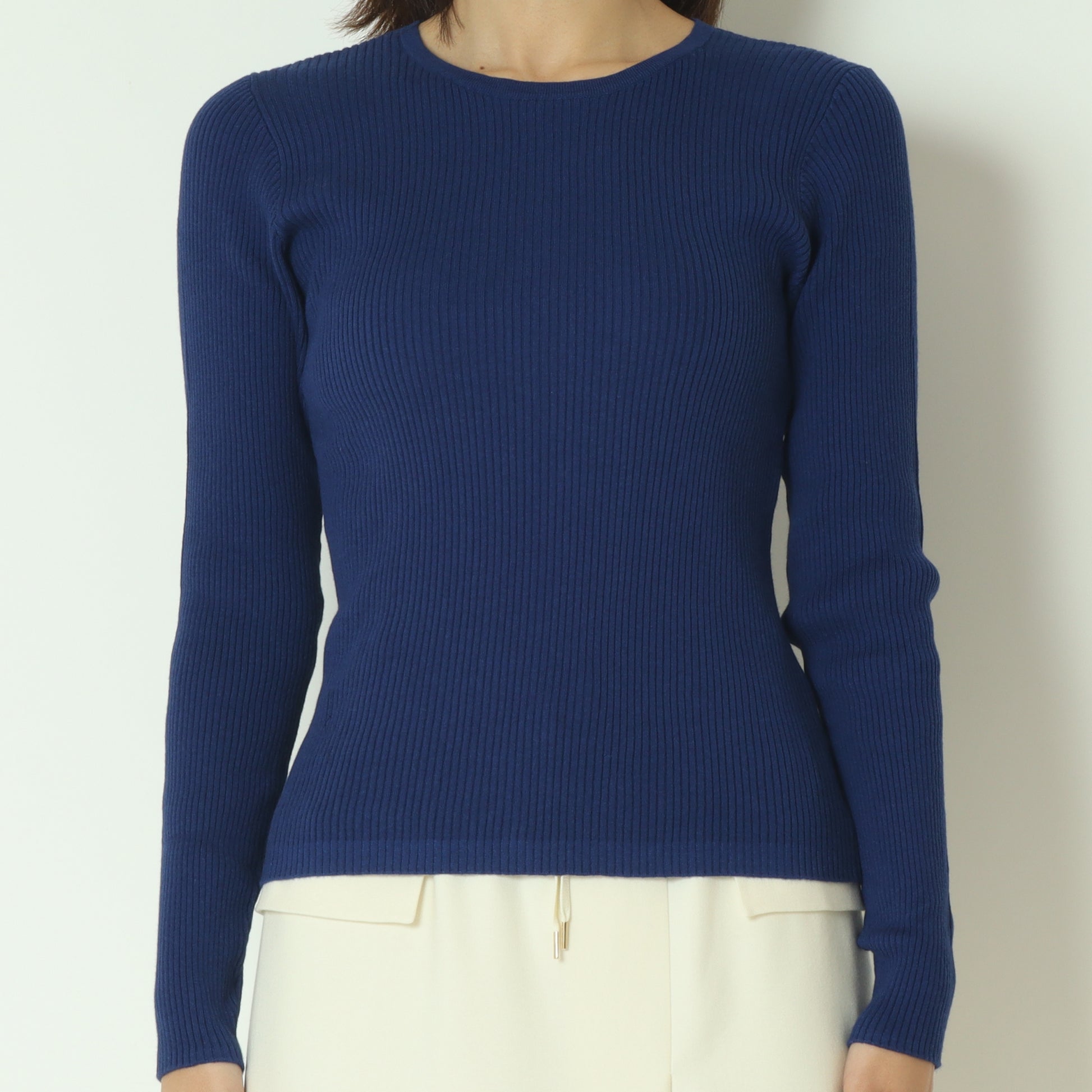 タイトすぎないリブ編みのクルーネックニットは、身体のラインをきれいに見せ、上品な印象を与えてくれます。