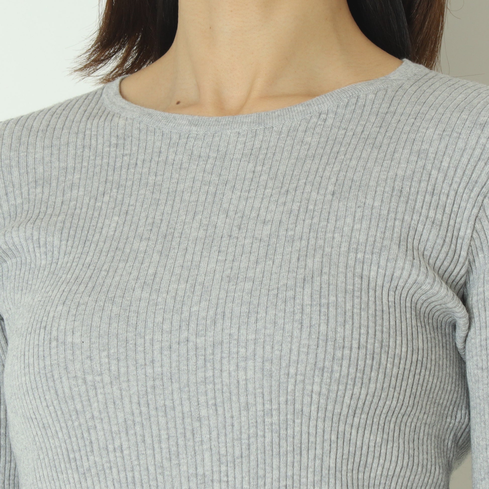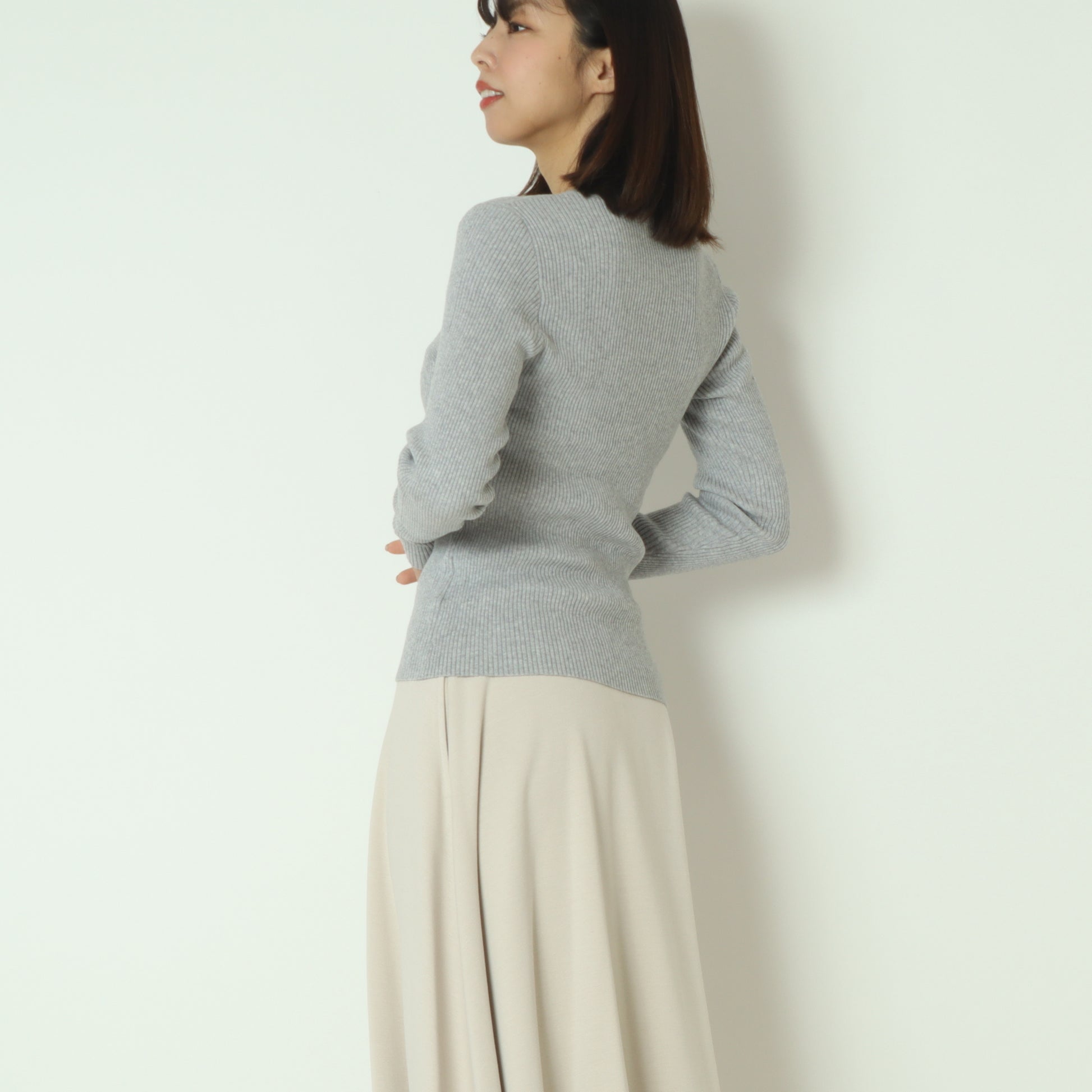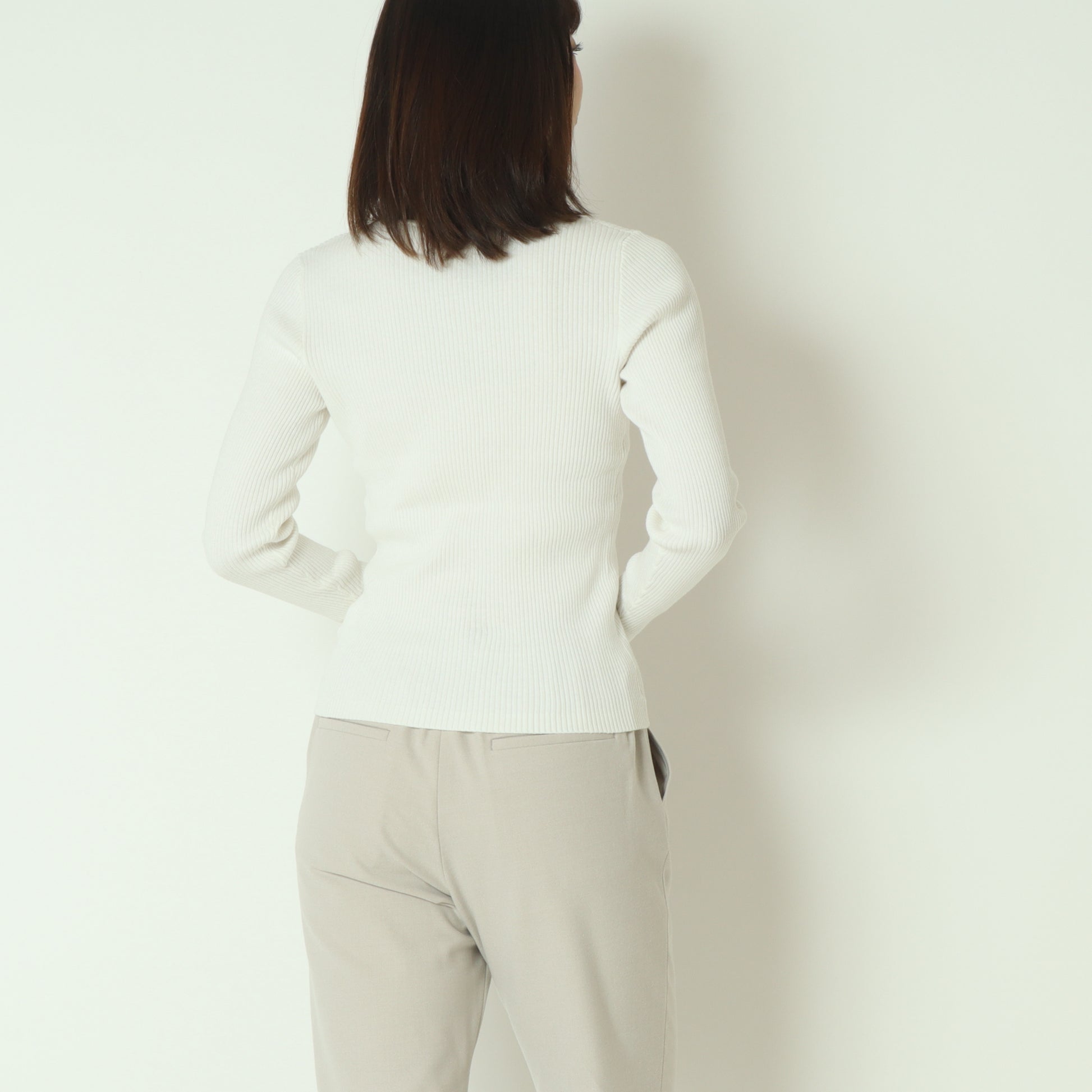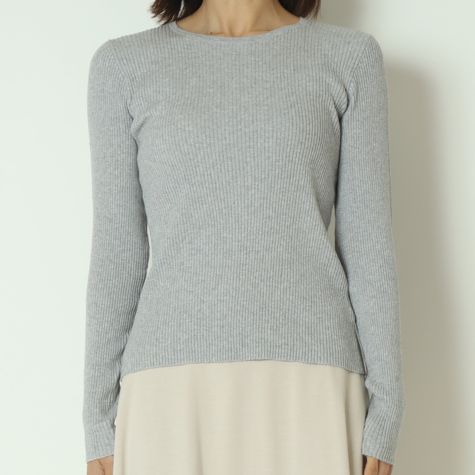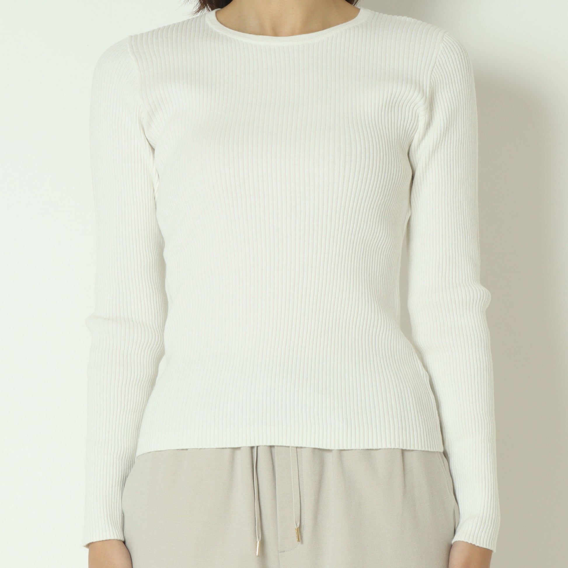 タイトすぎないリブ編みのクルーネックニットは、身体のラインをきれいに見せ、上品な印象を与えてくれます。