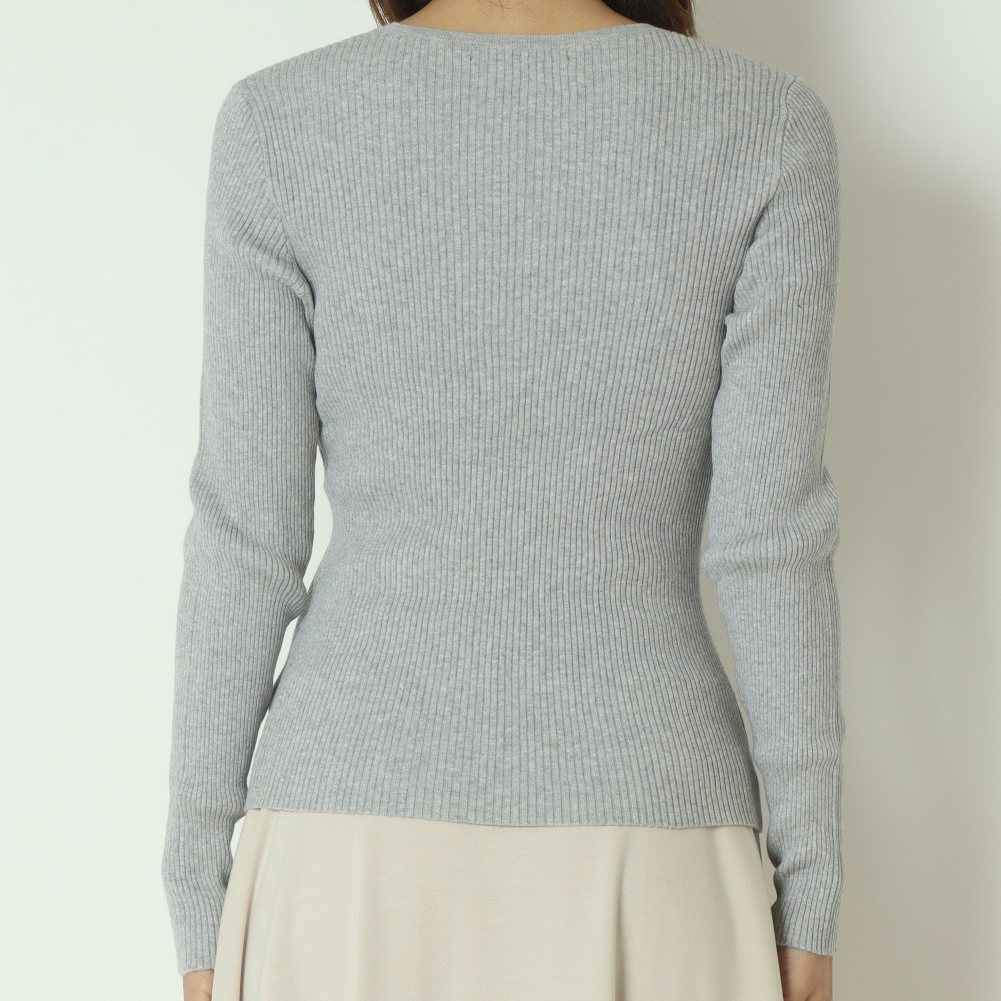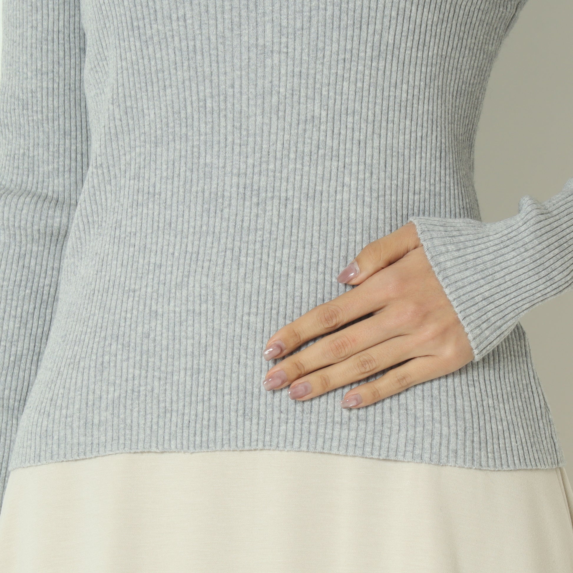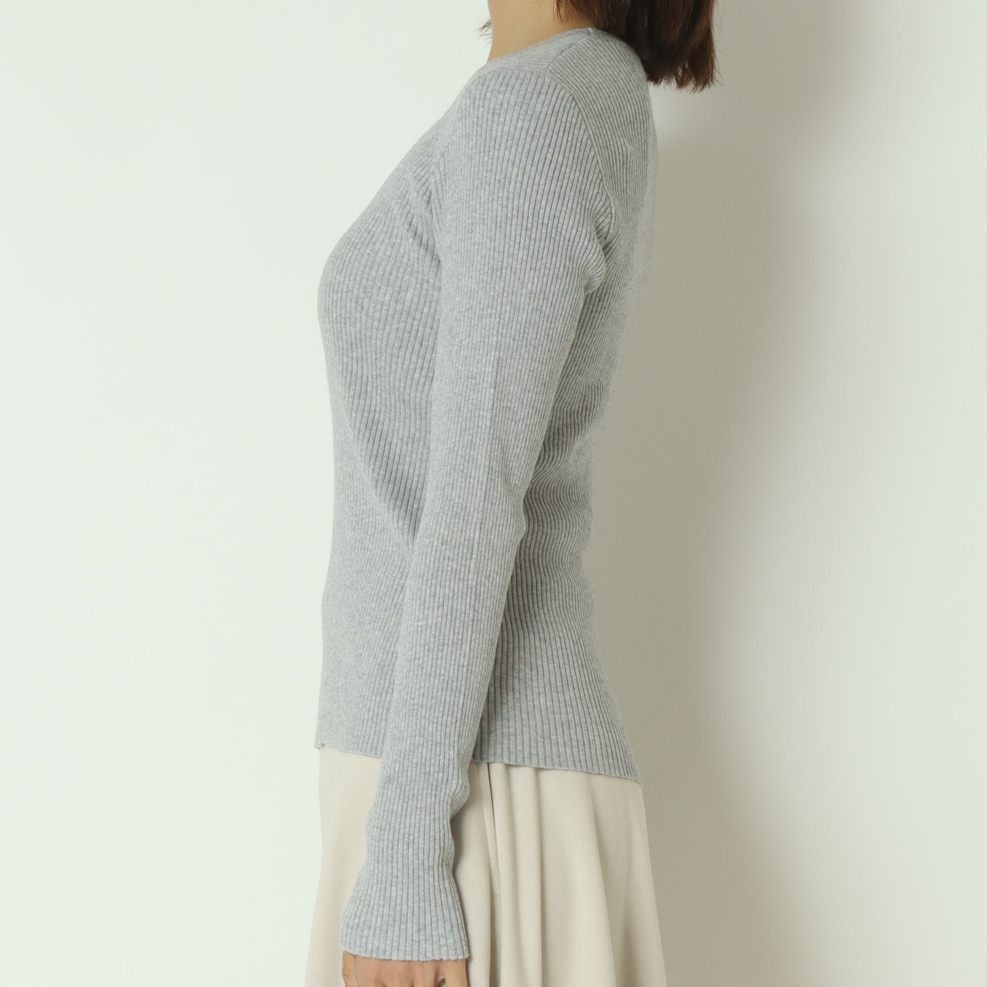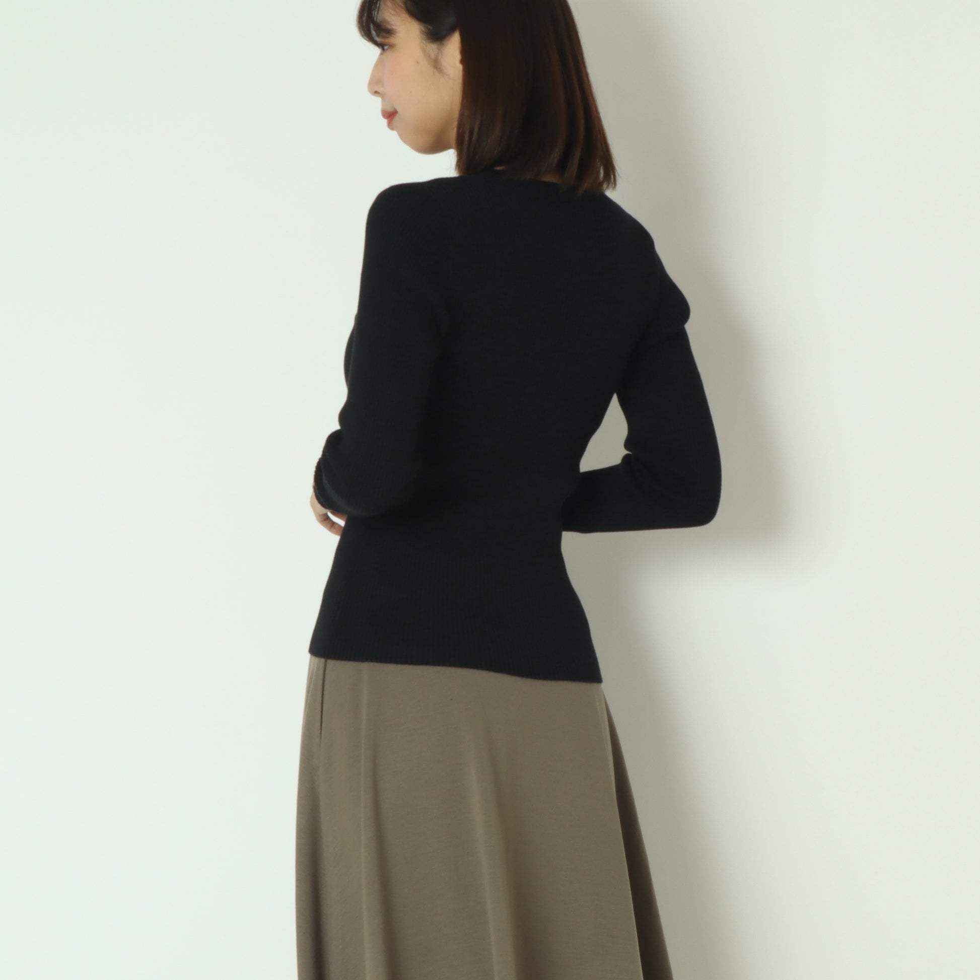 タイトすぎないリブ編みのクルーネックニットは、身体のラインをきれいに見せ、上品な印象を与えてくれます。