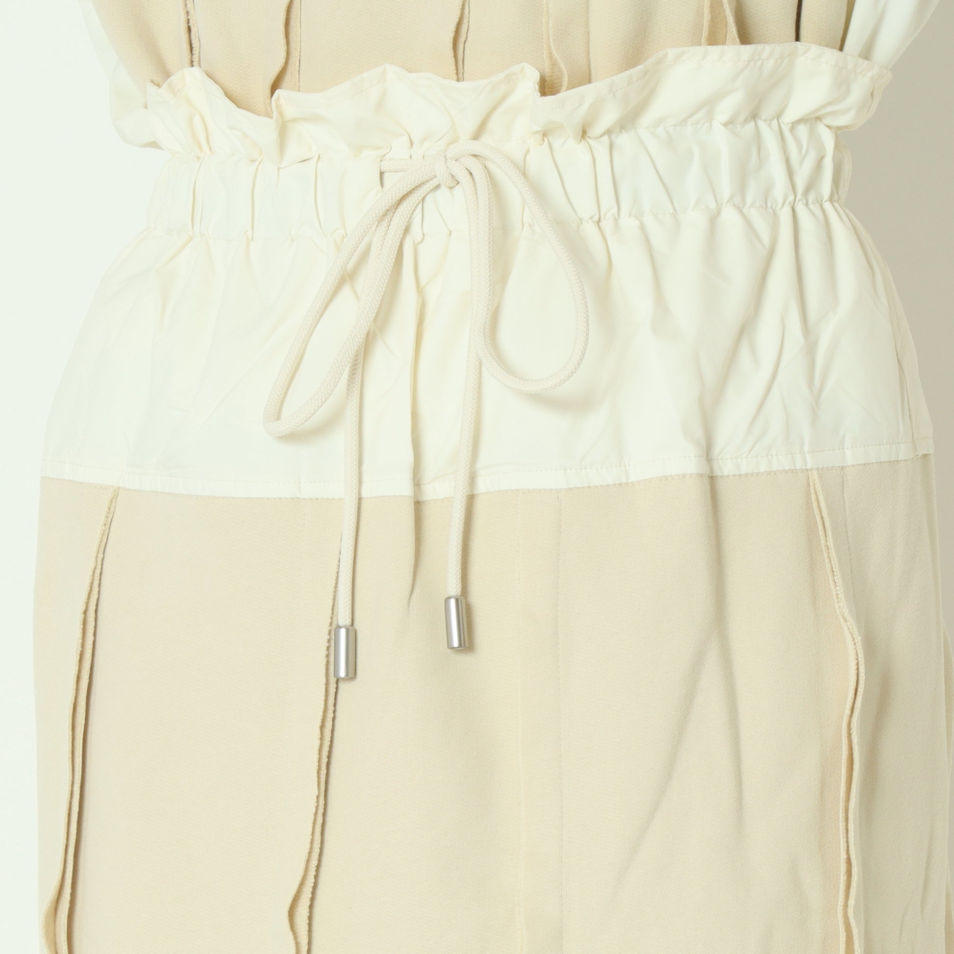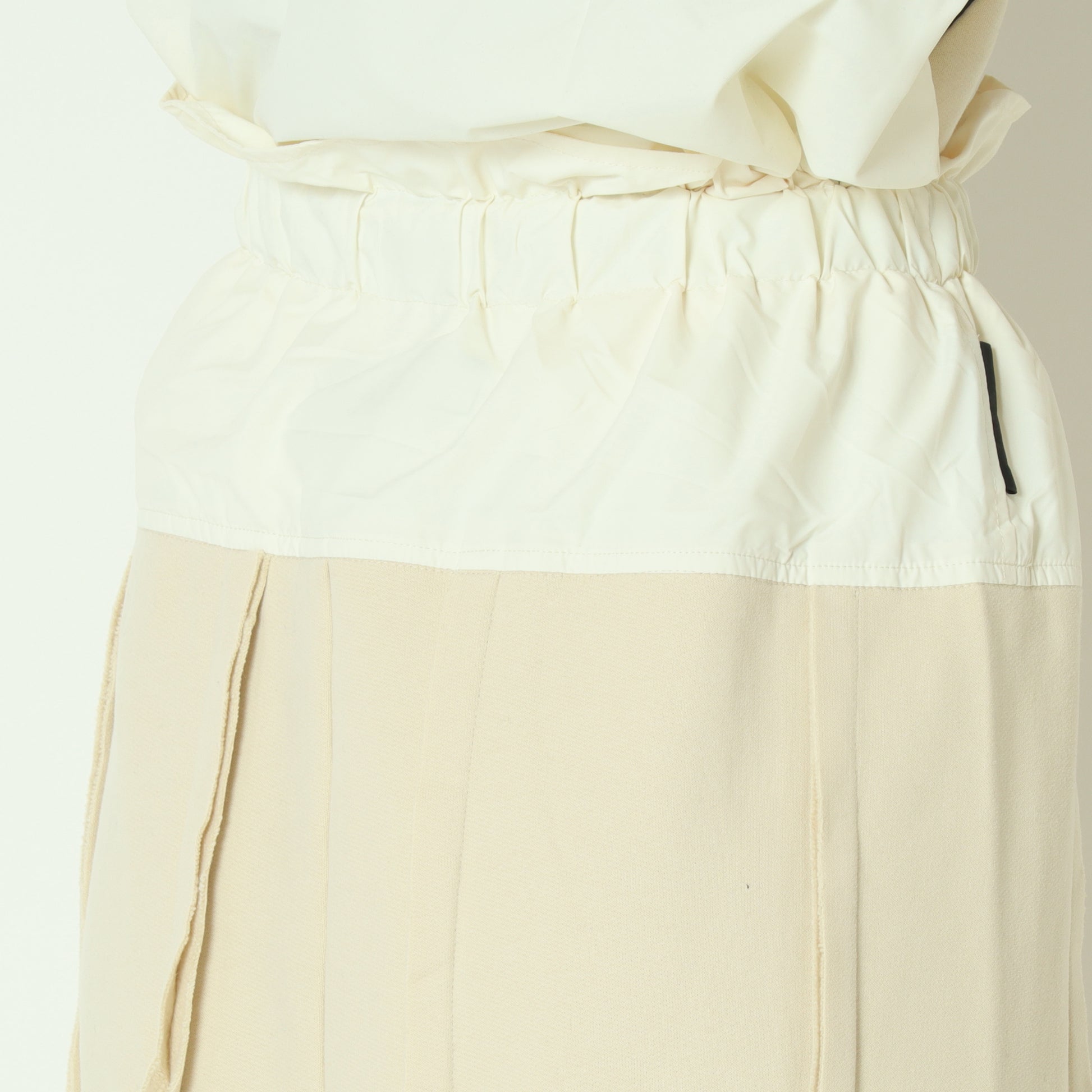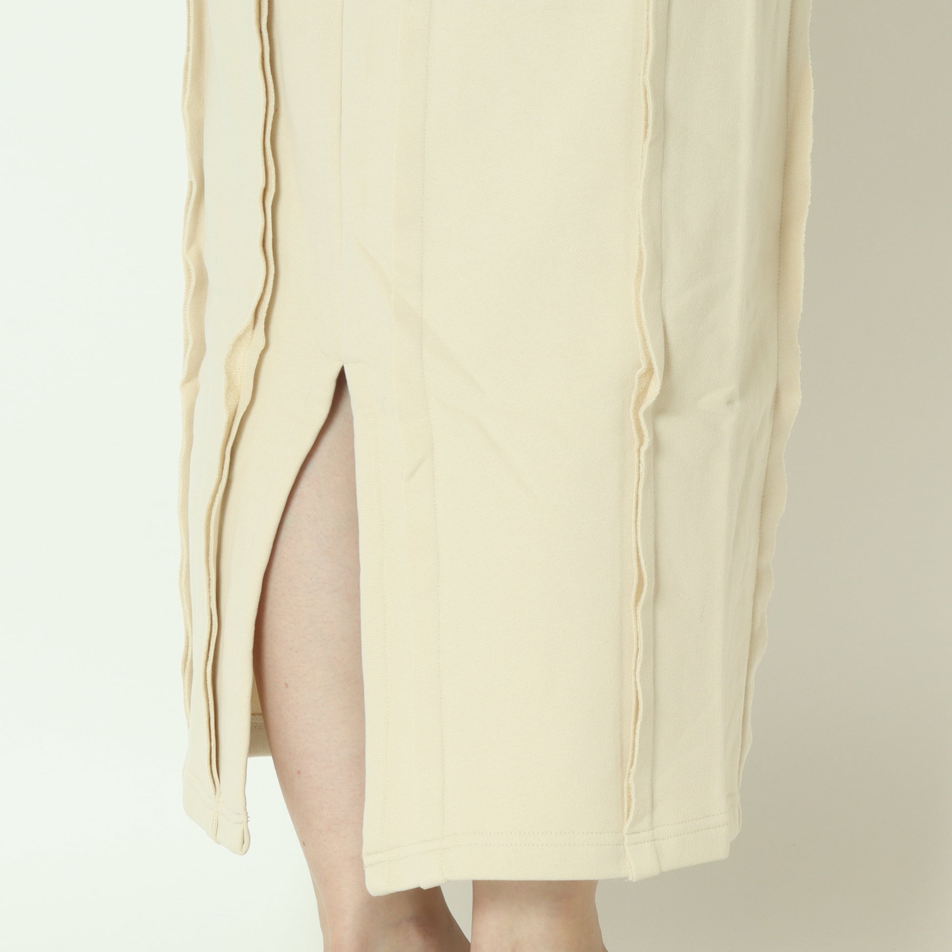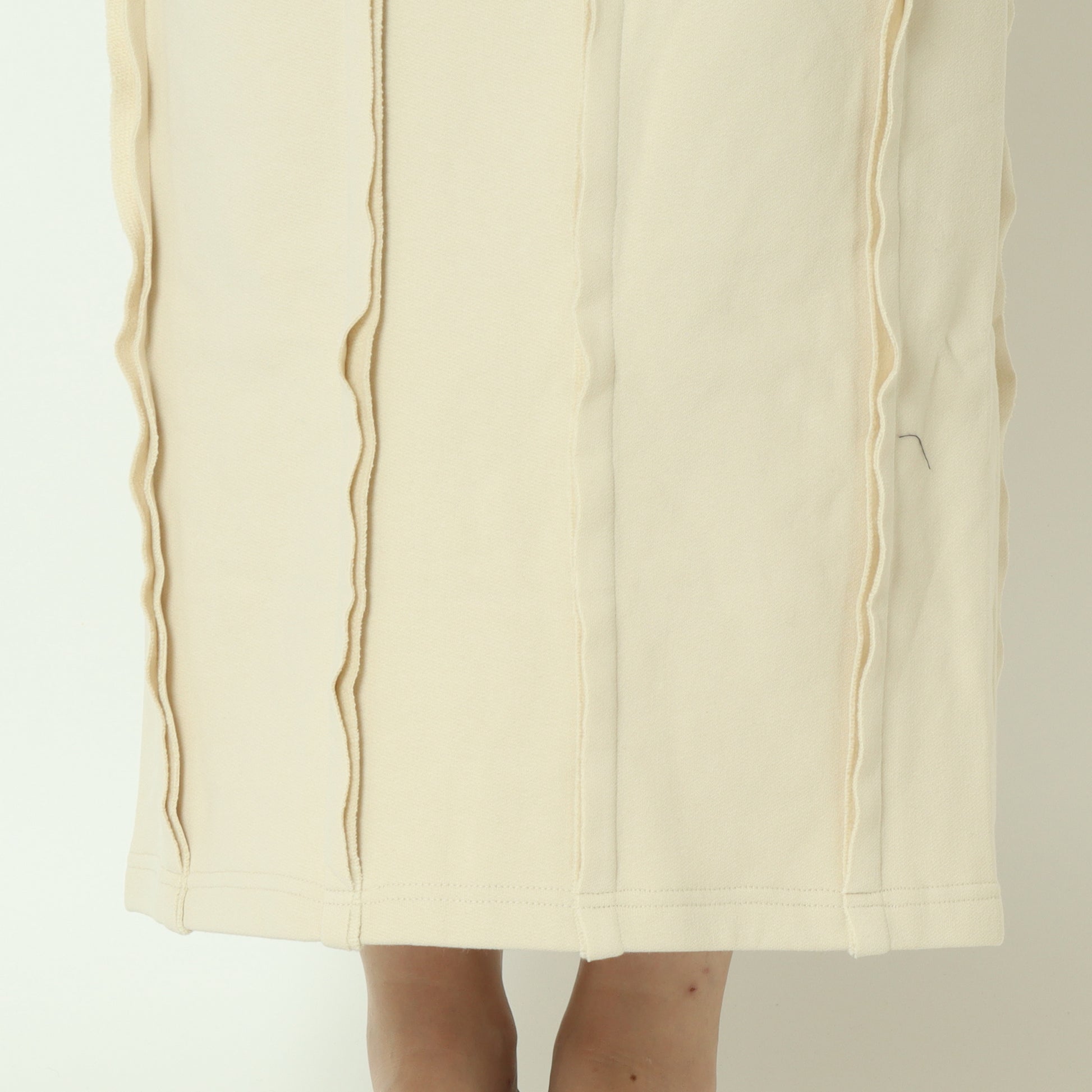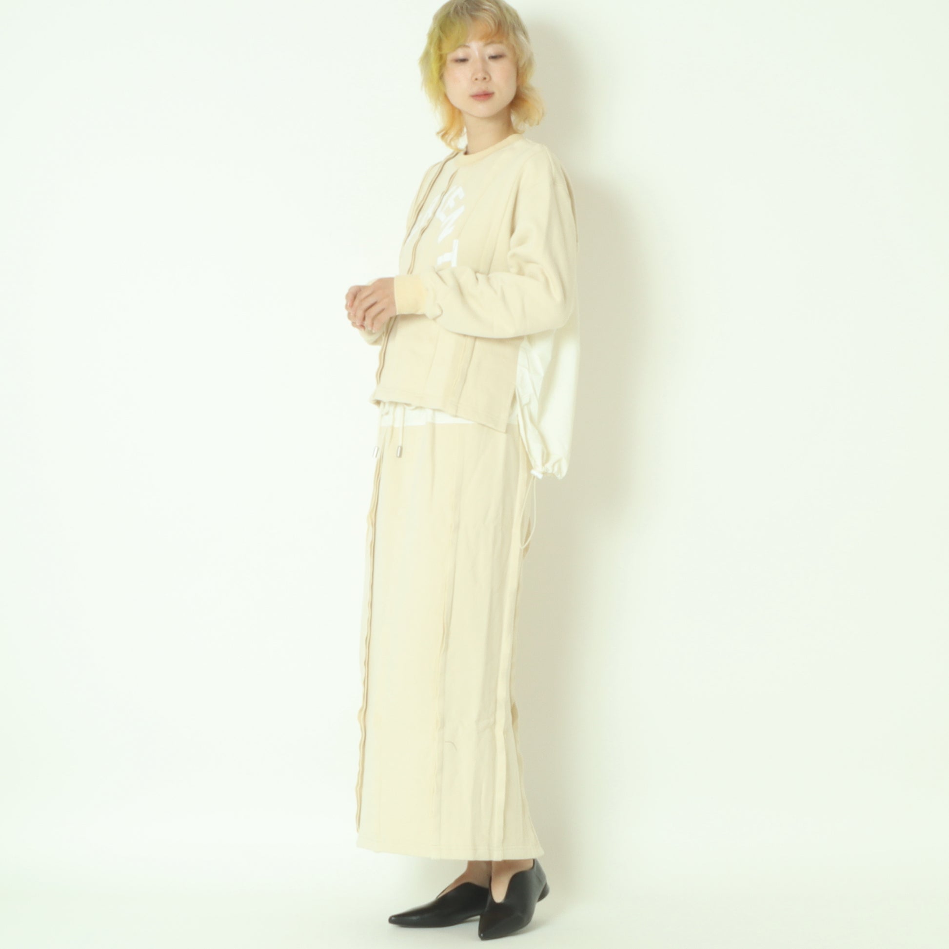 異素材をドッキングしたデザインのスウェットロングスカート。