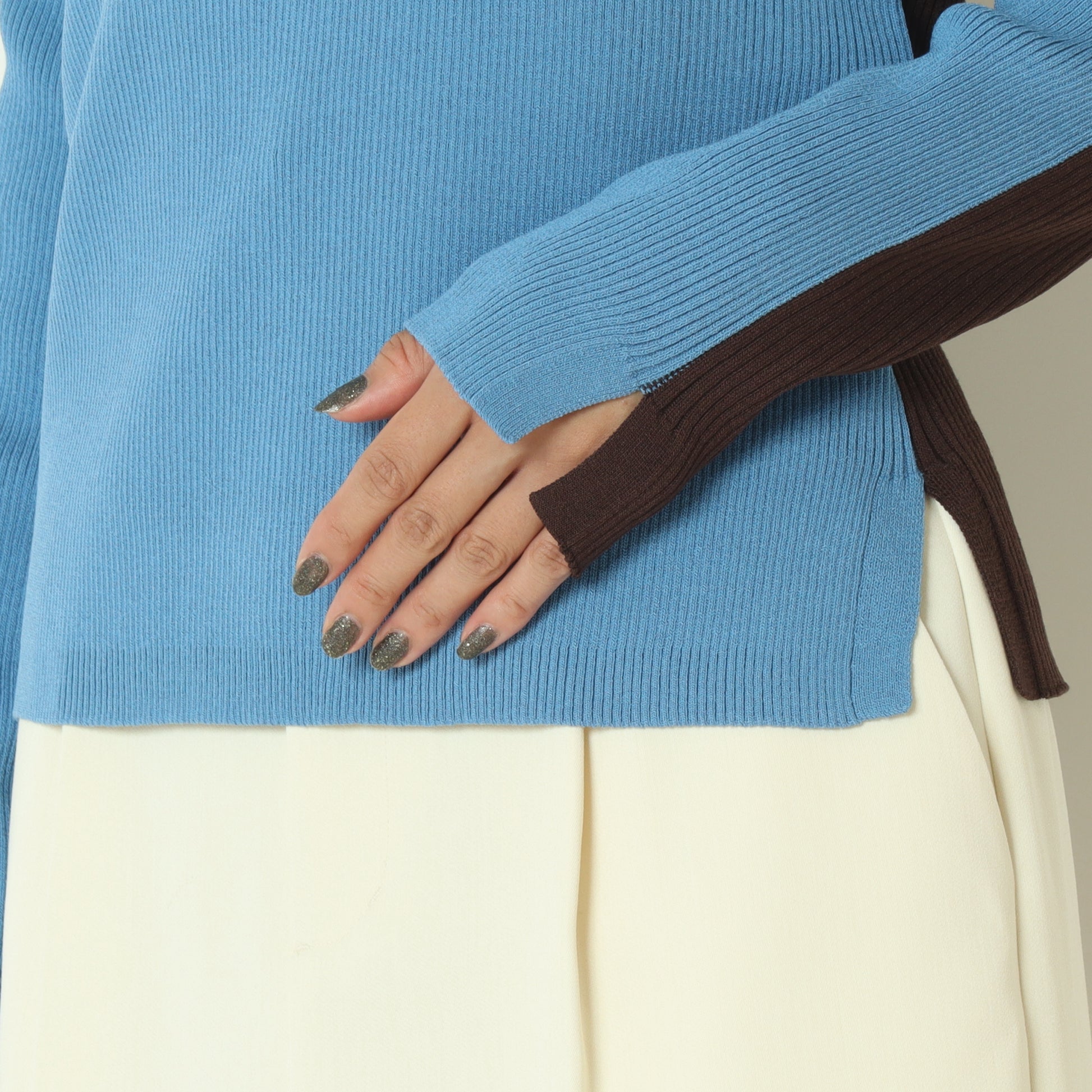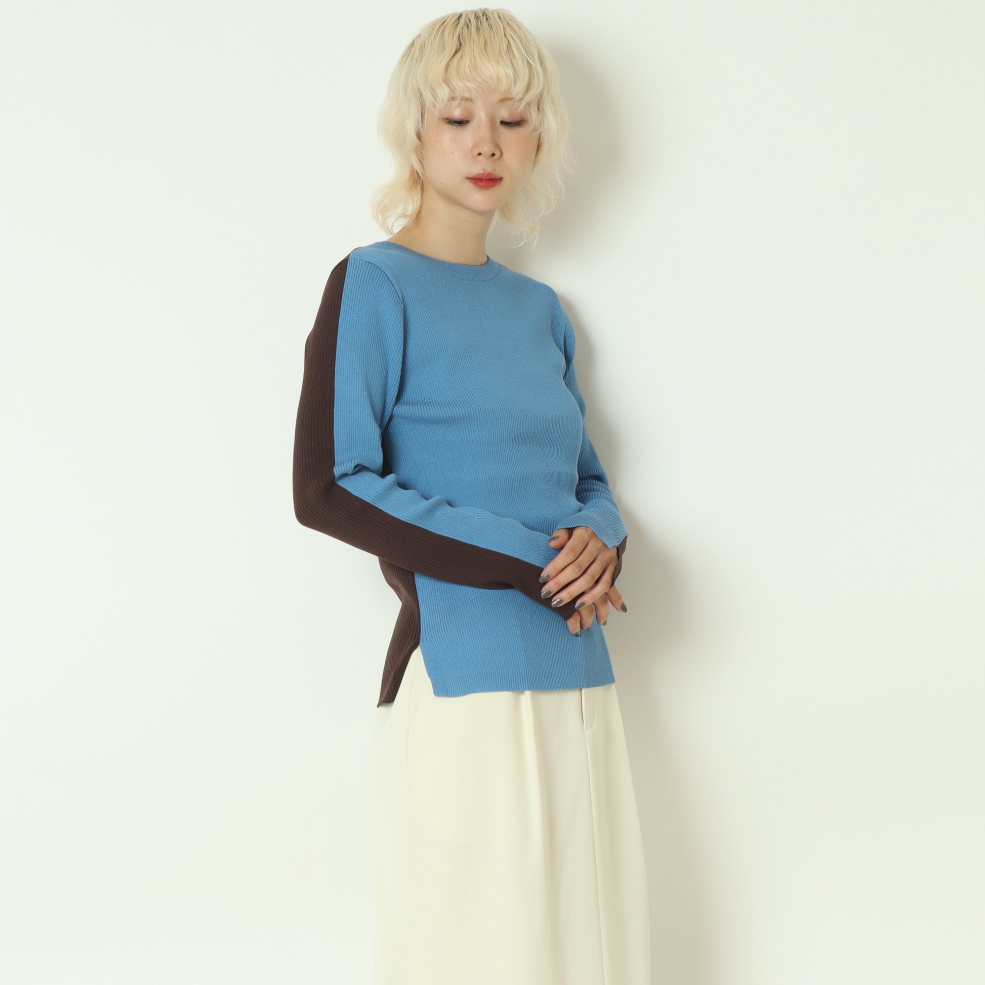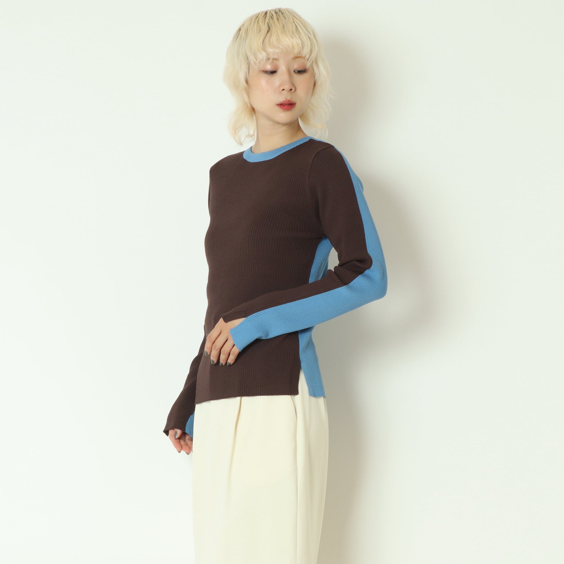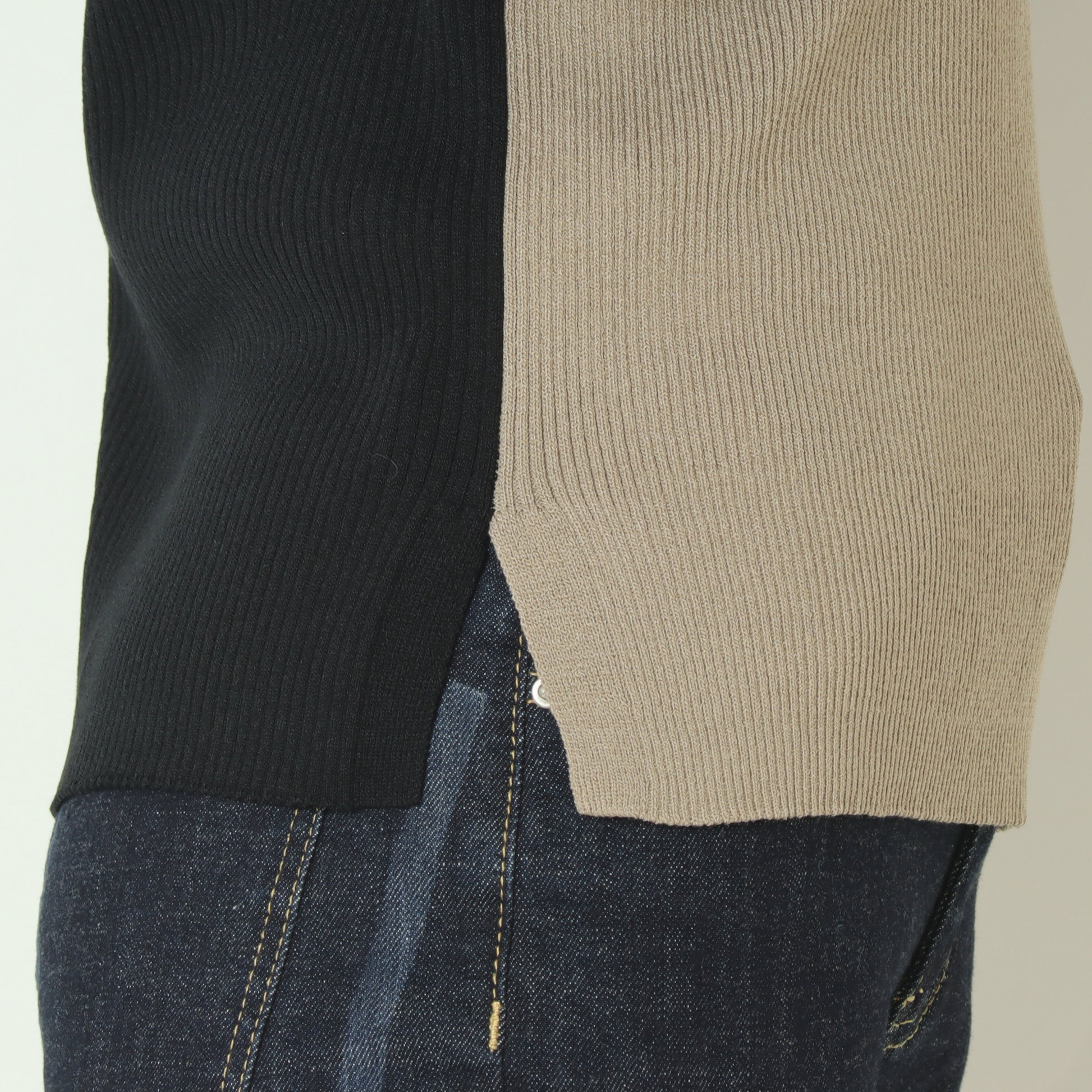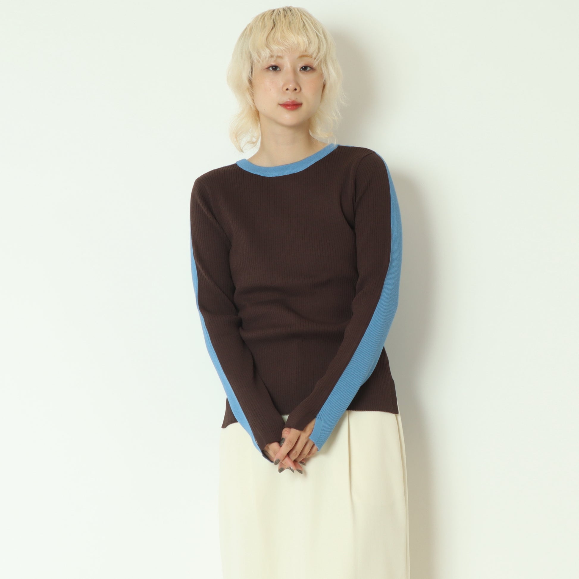 前後で異なるリブ×カラー配色がアクセントになり、着るだけでオシャレな着こなしに◎