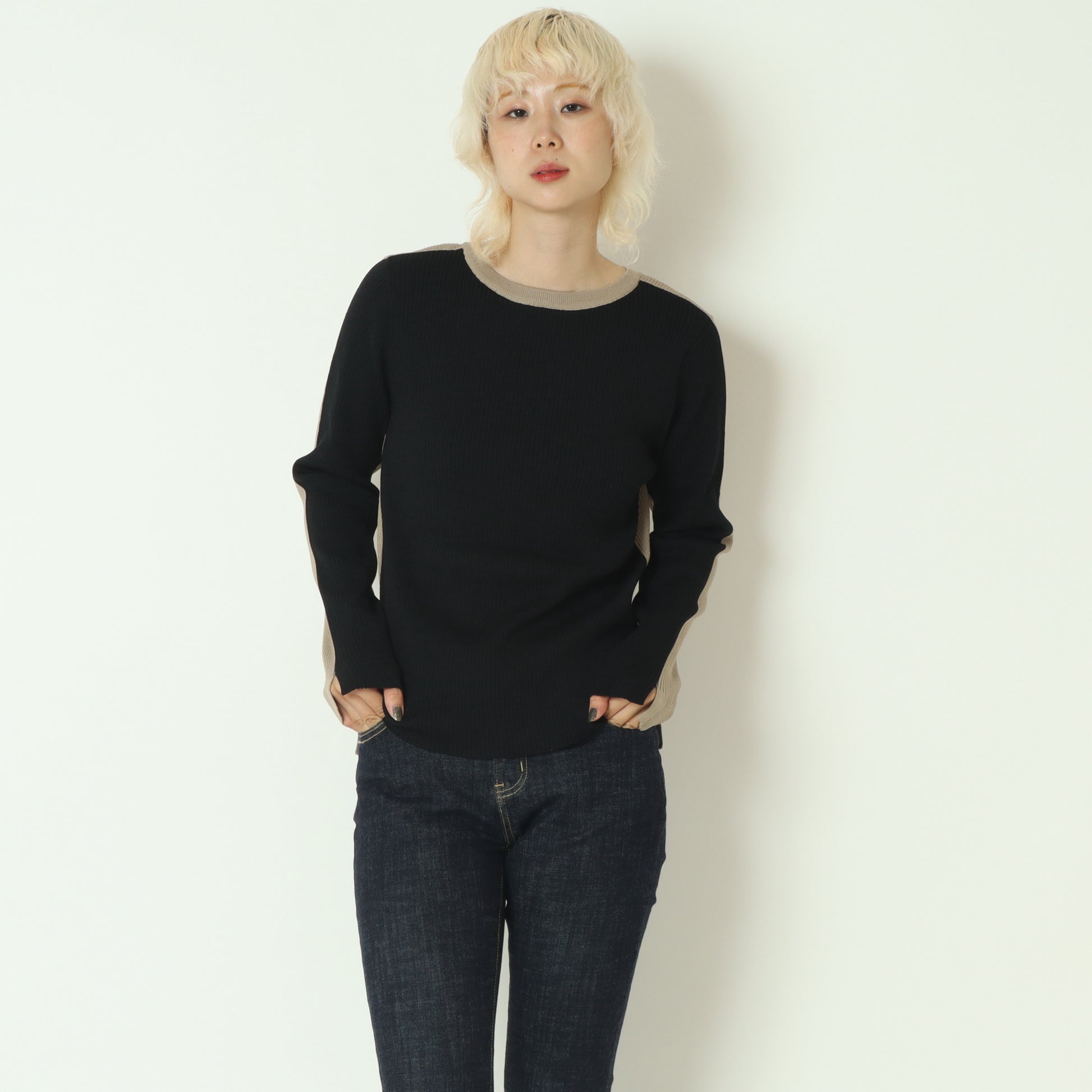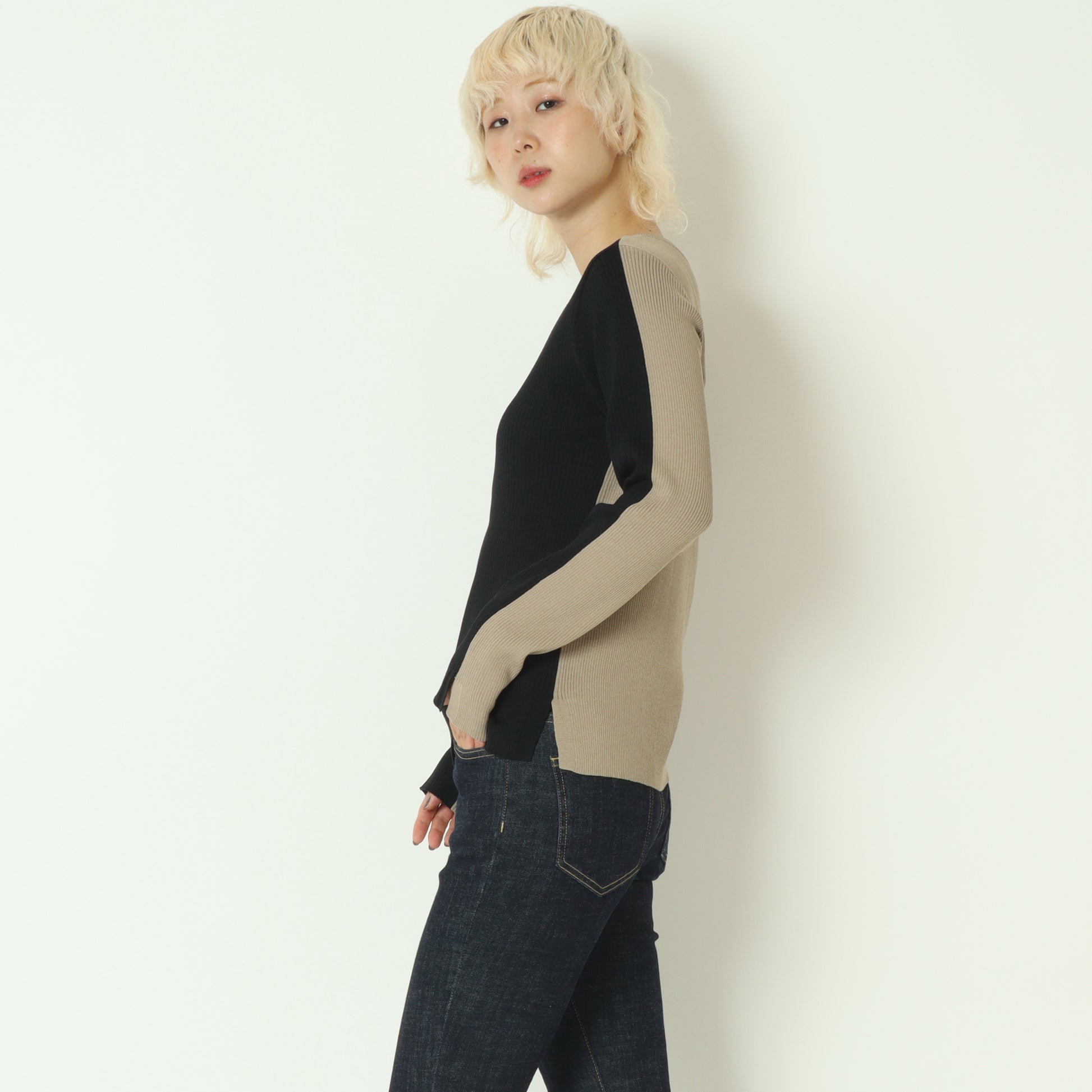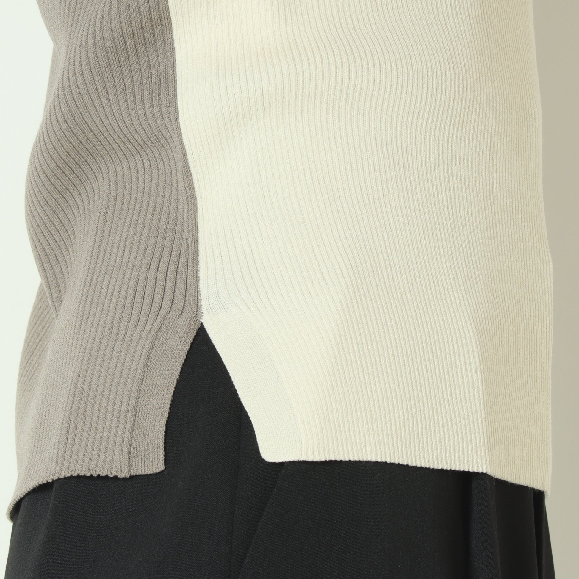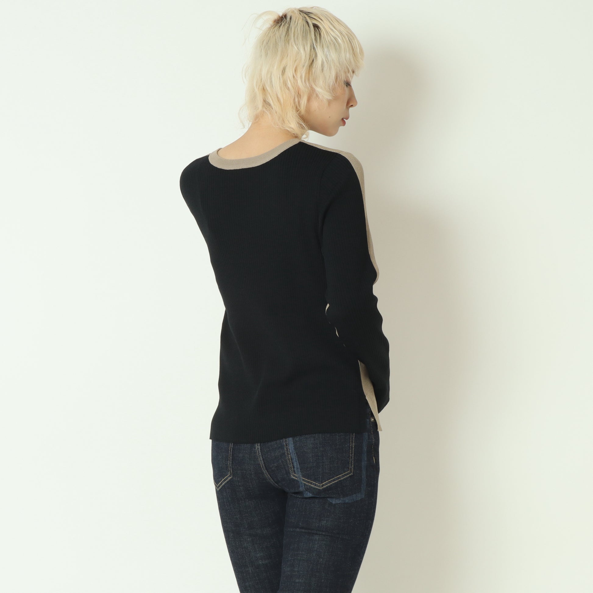 軽いタッチの糸で仕上げた前後2WAYデザインバイカラーニット。