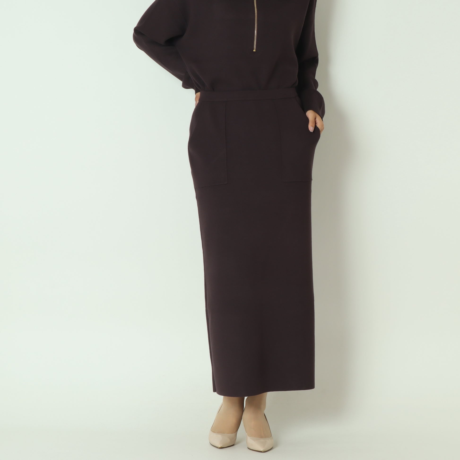 バックスリットが大人っぽい抜け感を演出するニットスカート。