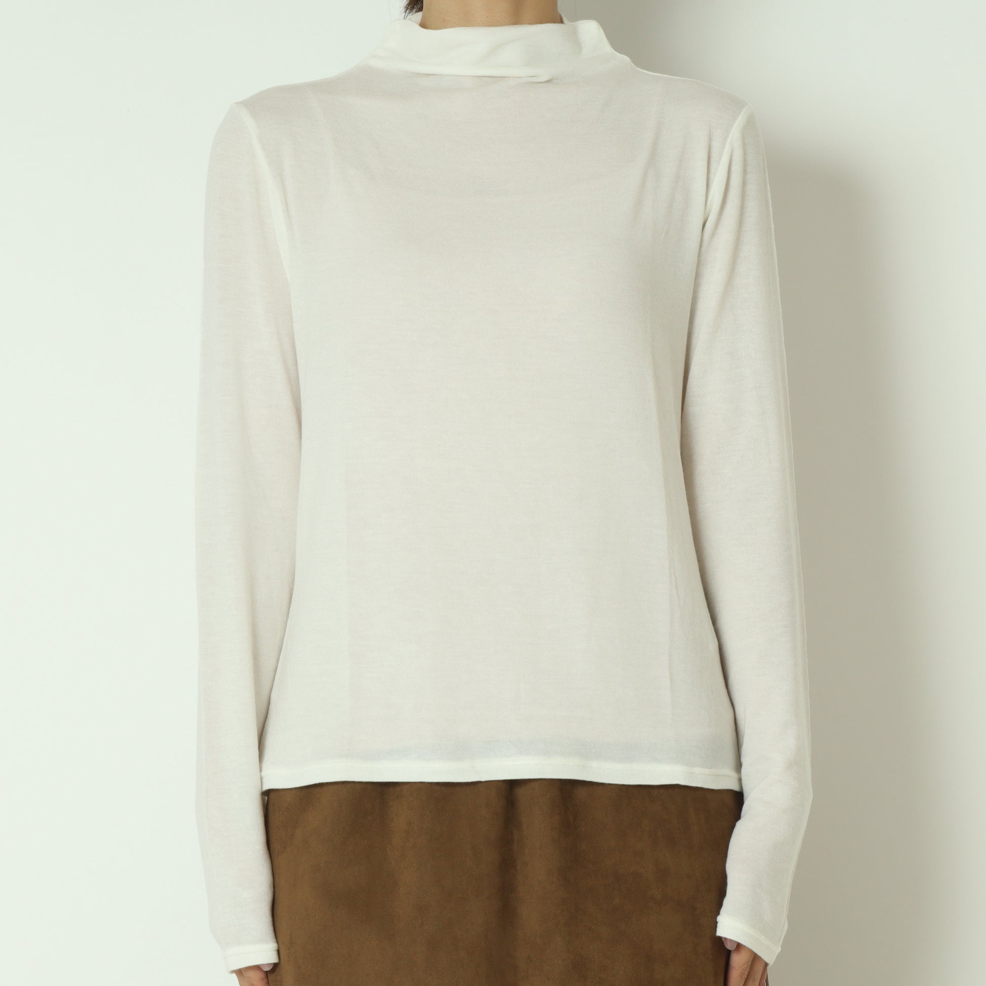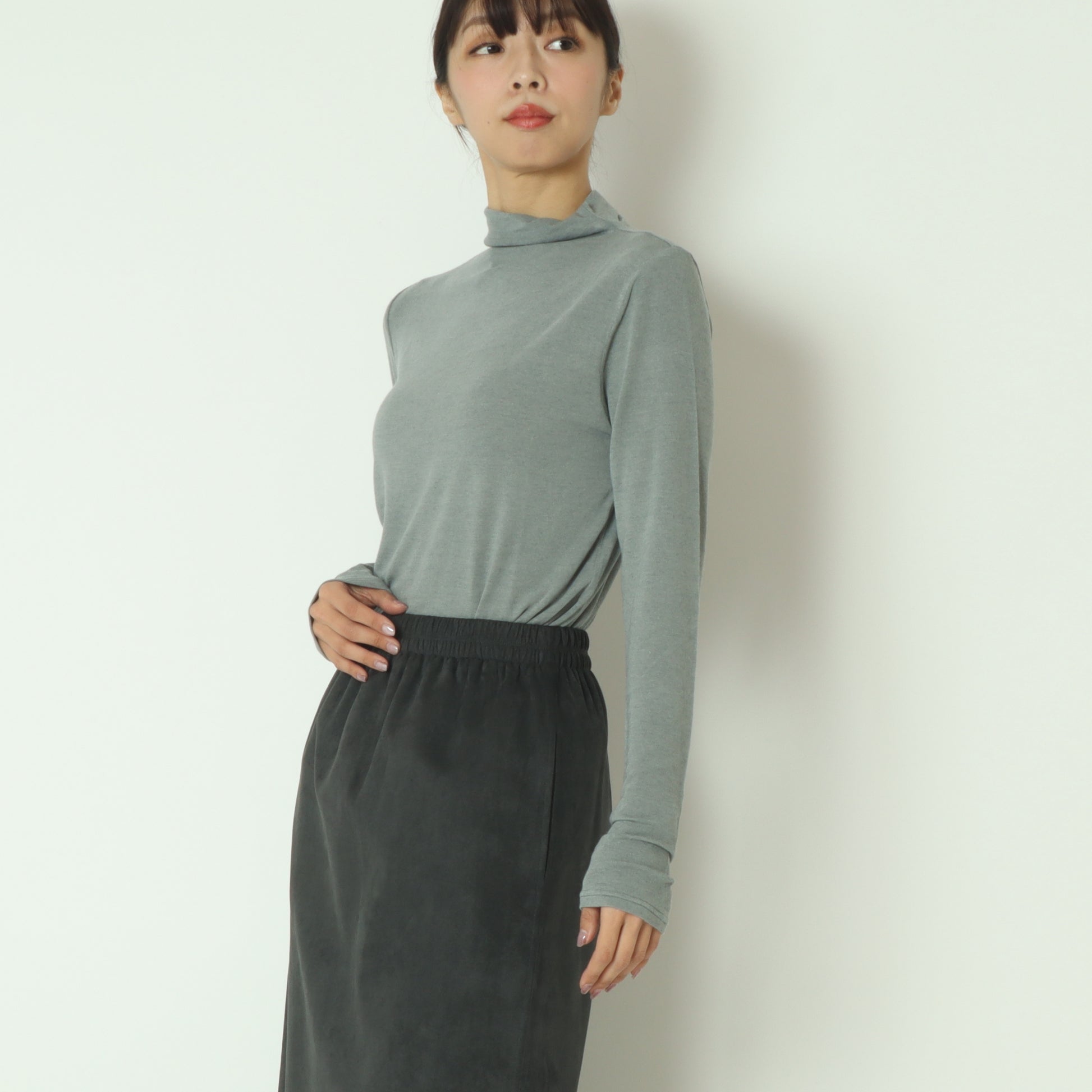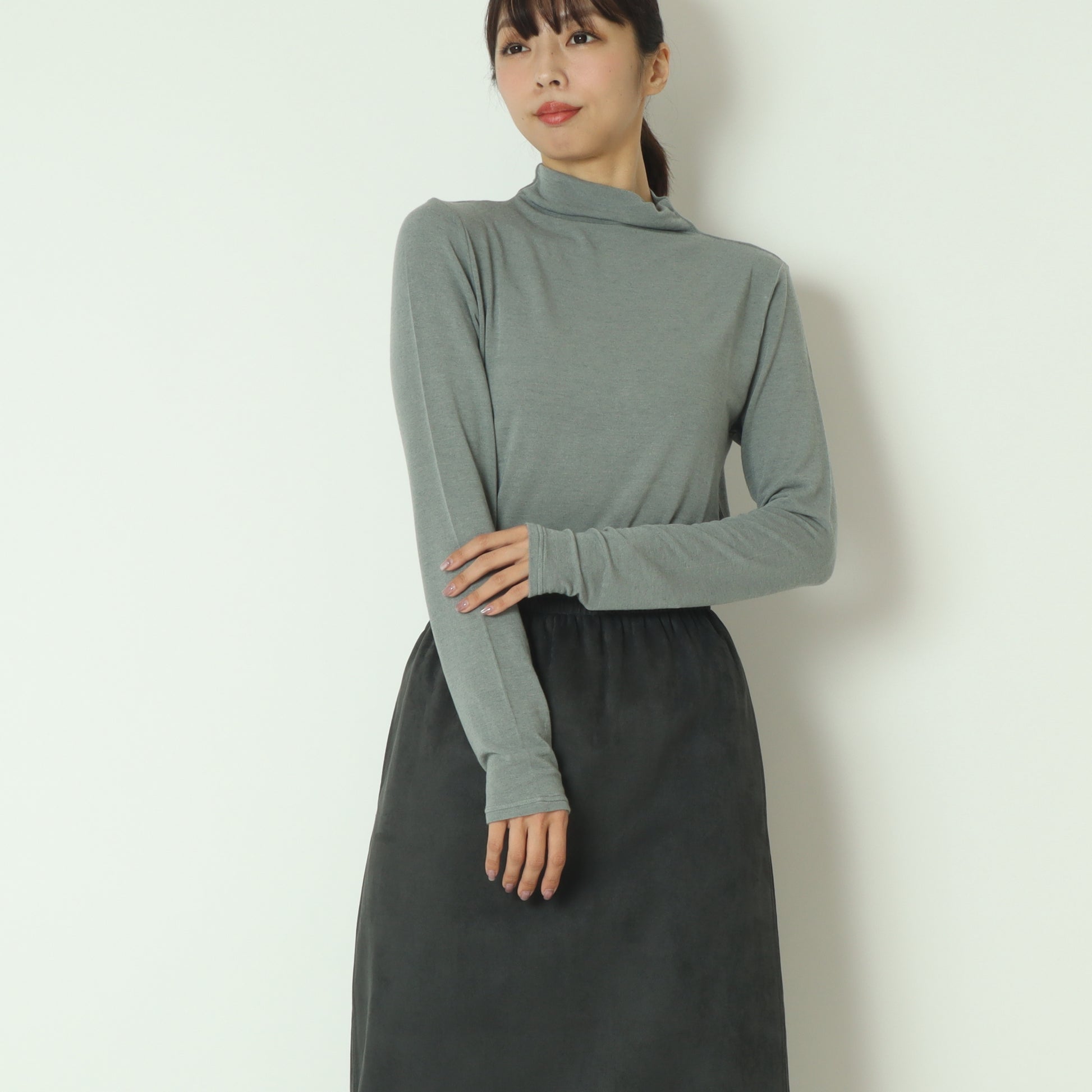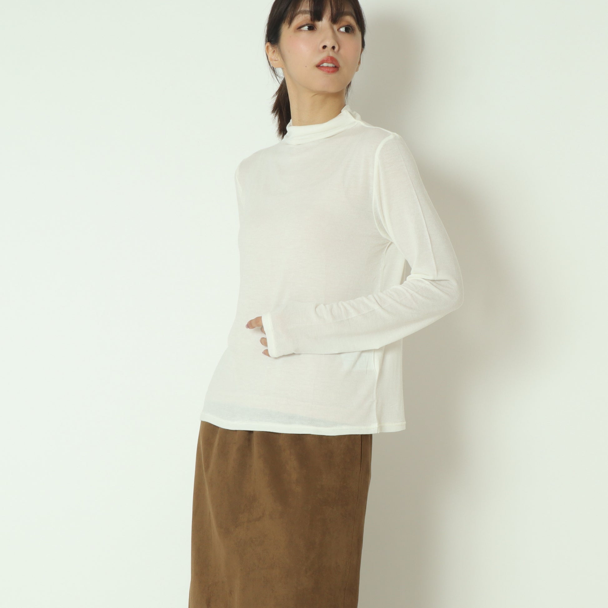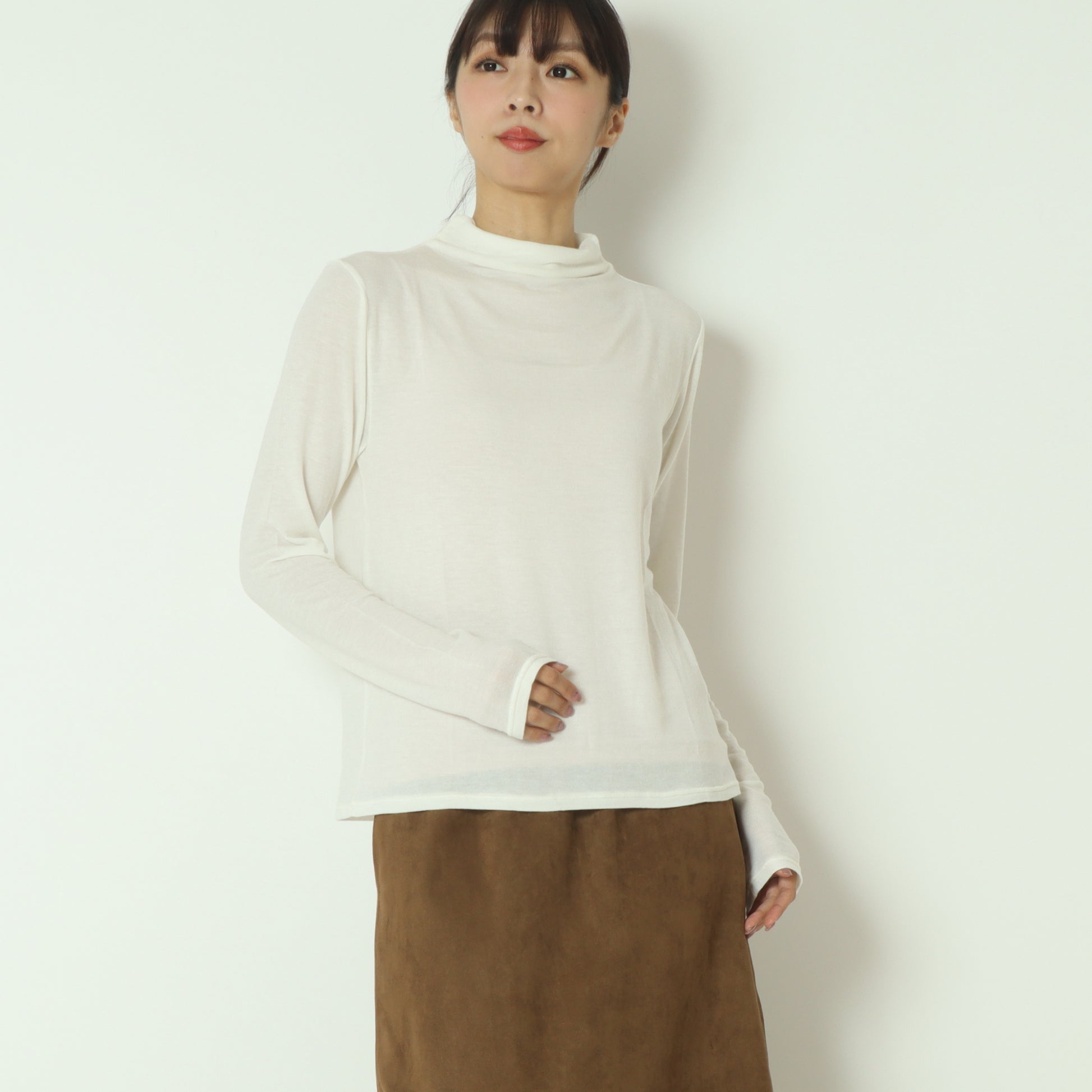短めのネックで顔周りがすっきりしてみえるモックネックインナー。